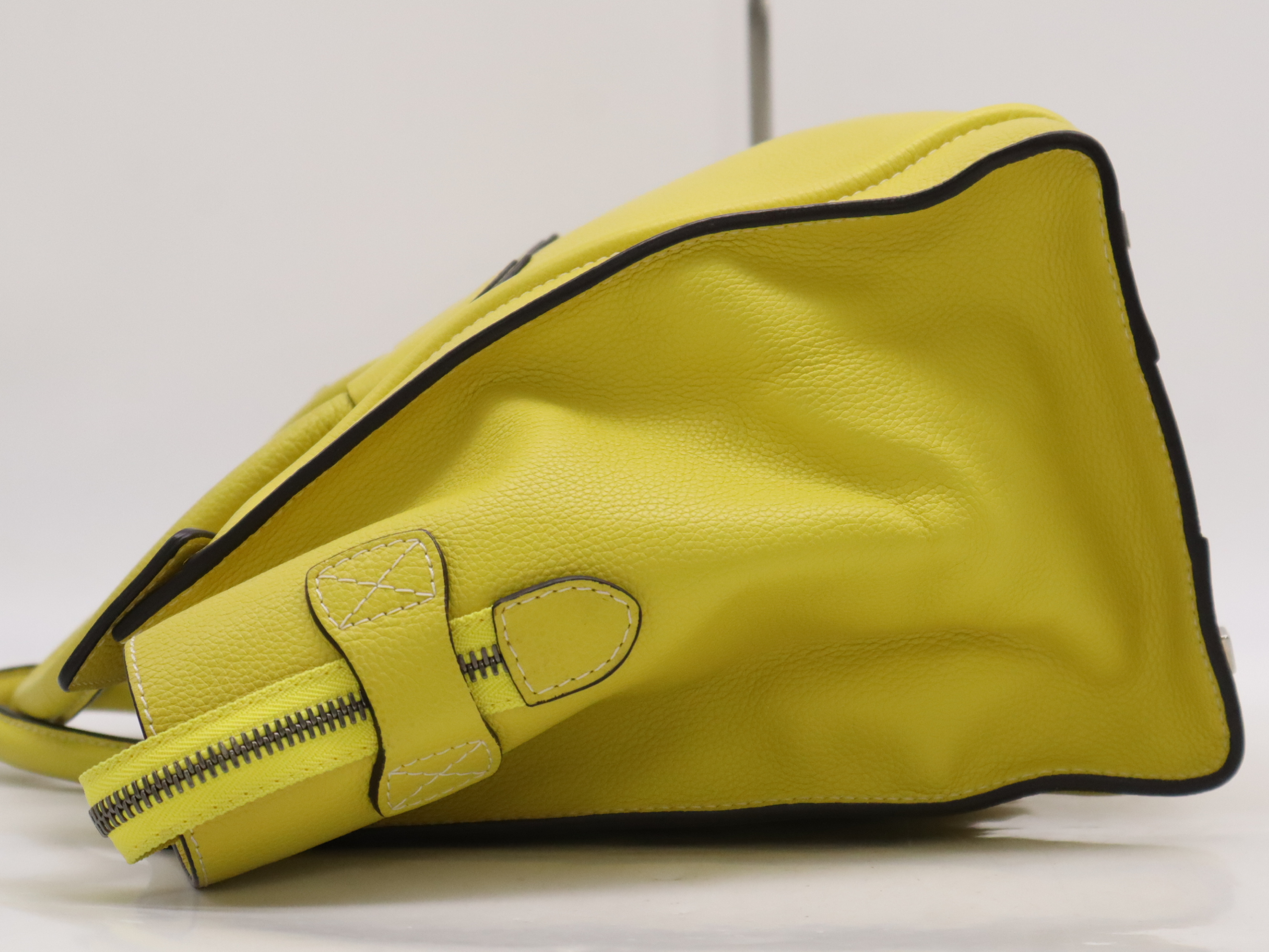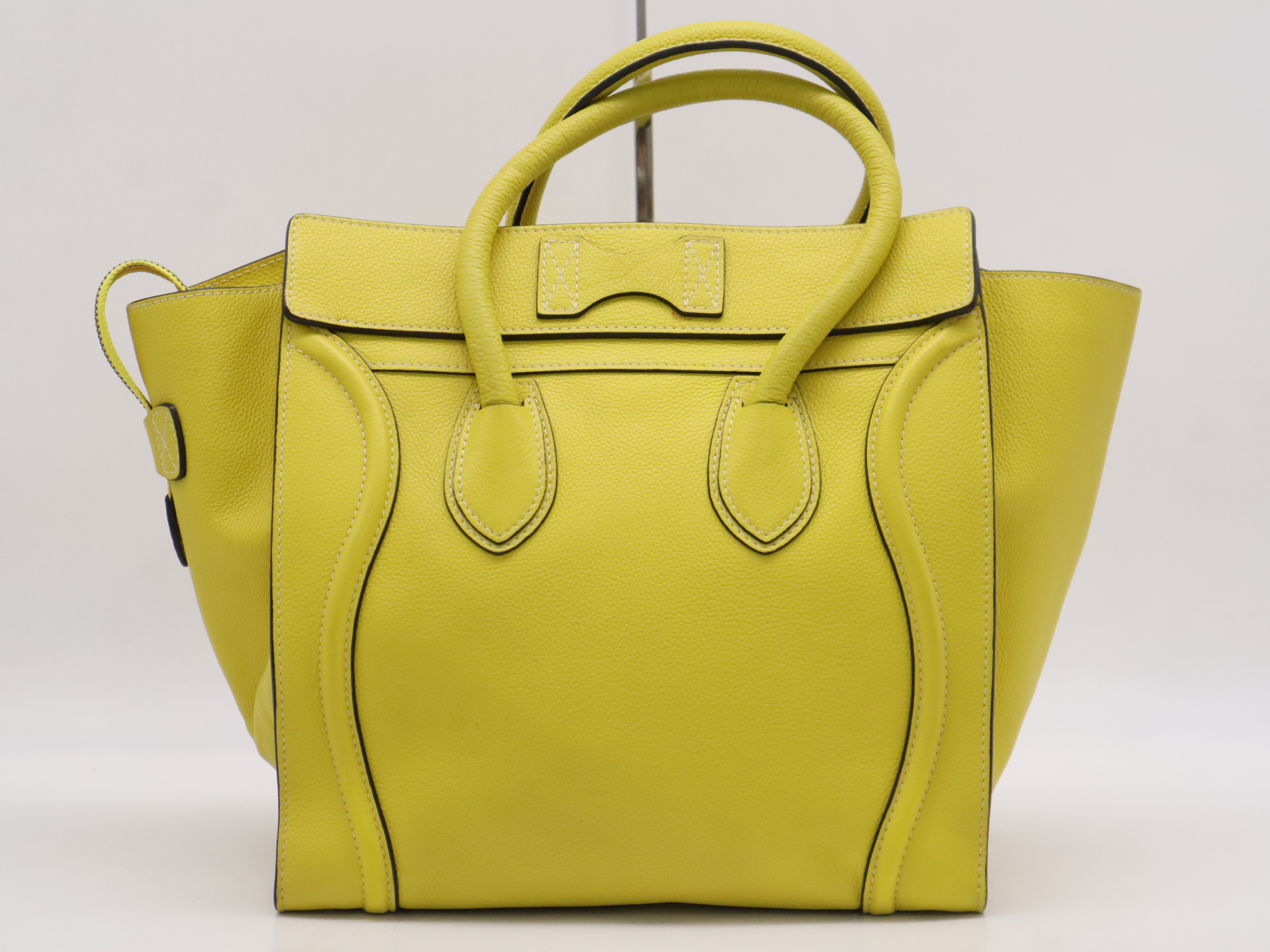 (10979_0454)CELINE レザーラゲージ ミニショッパー イエロー S-ZP-0112 トートバッグ