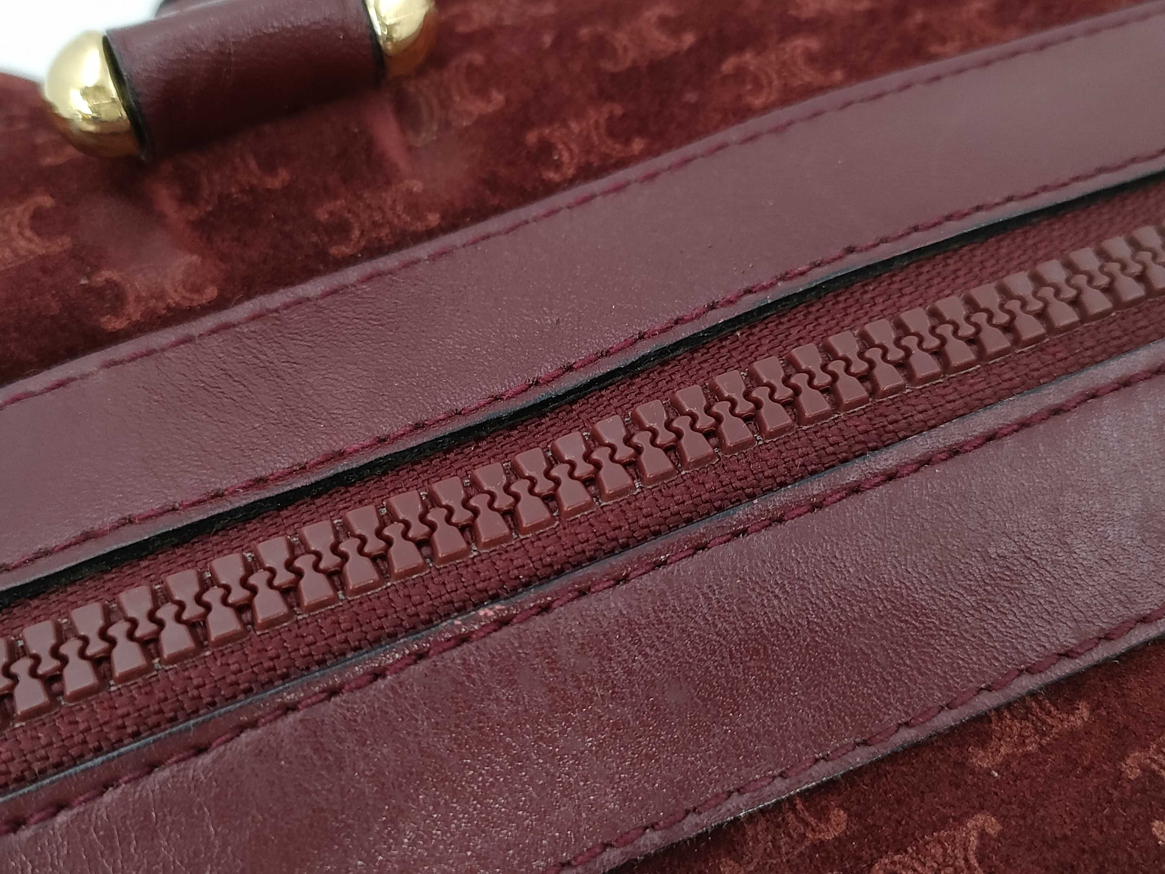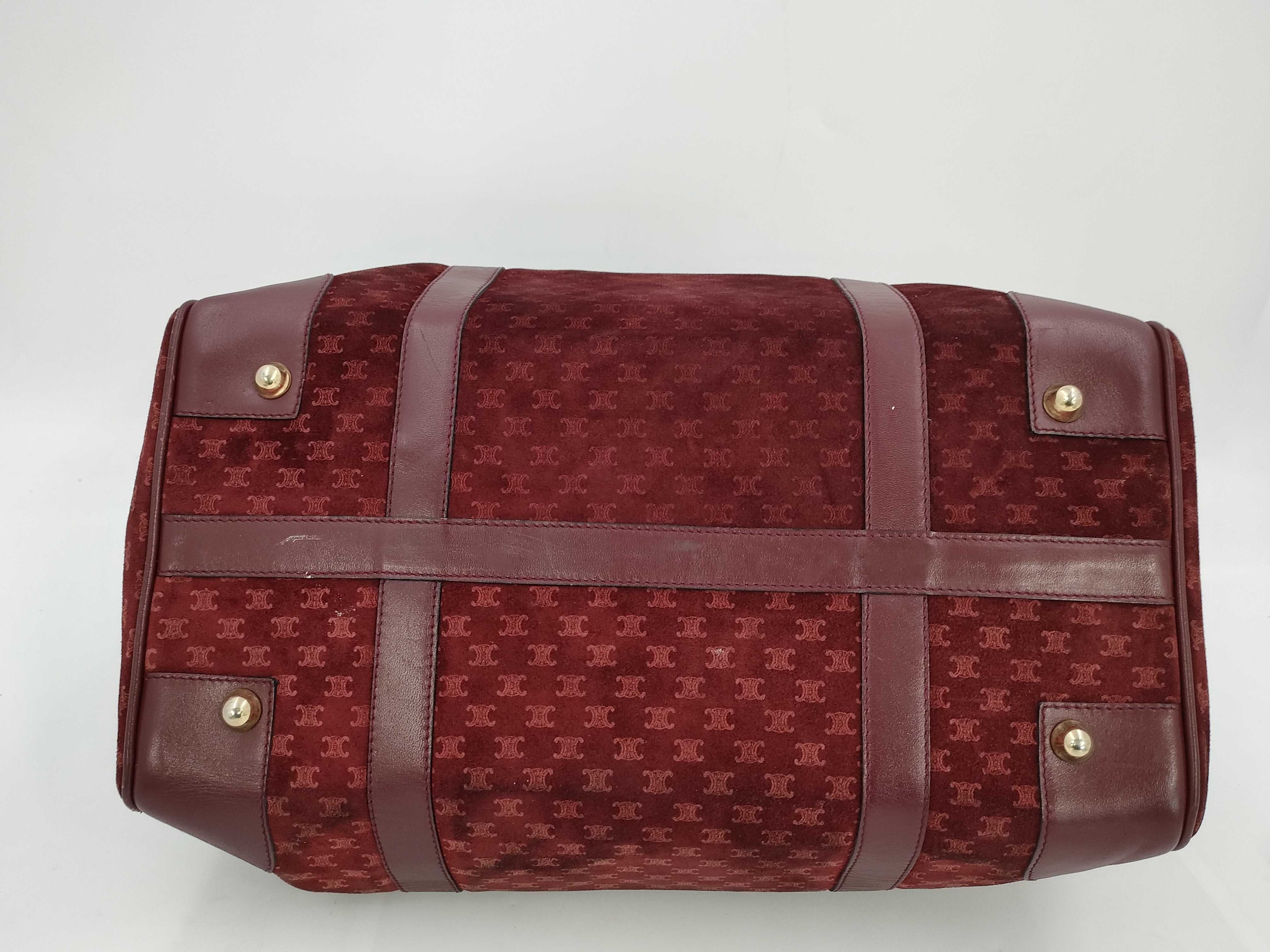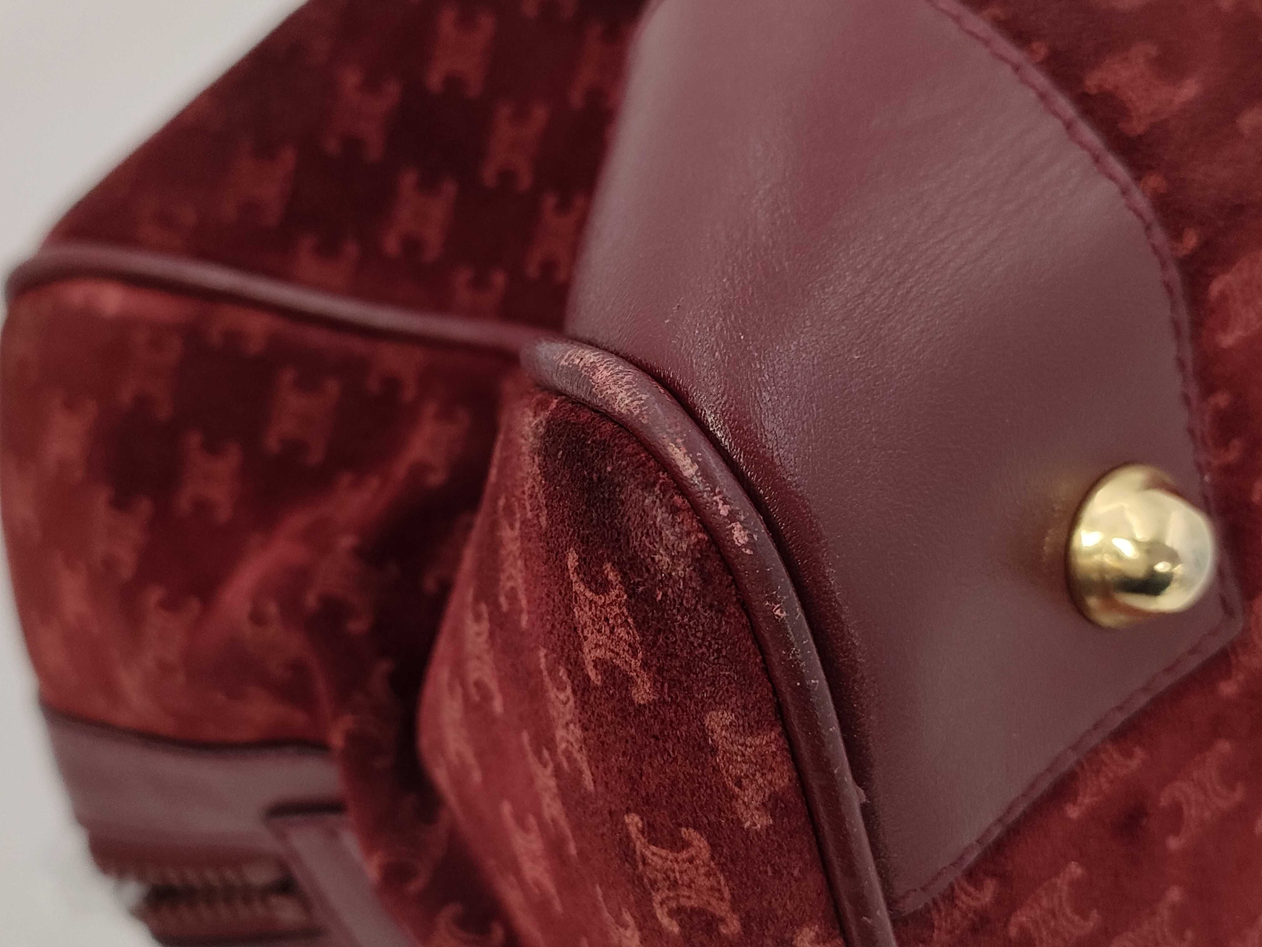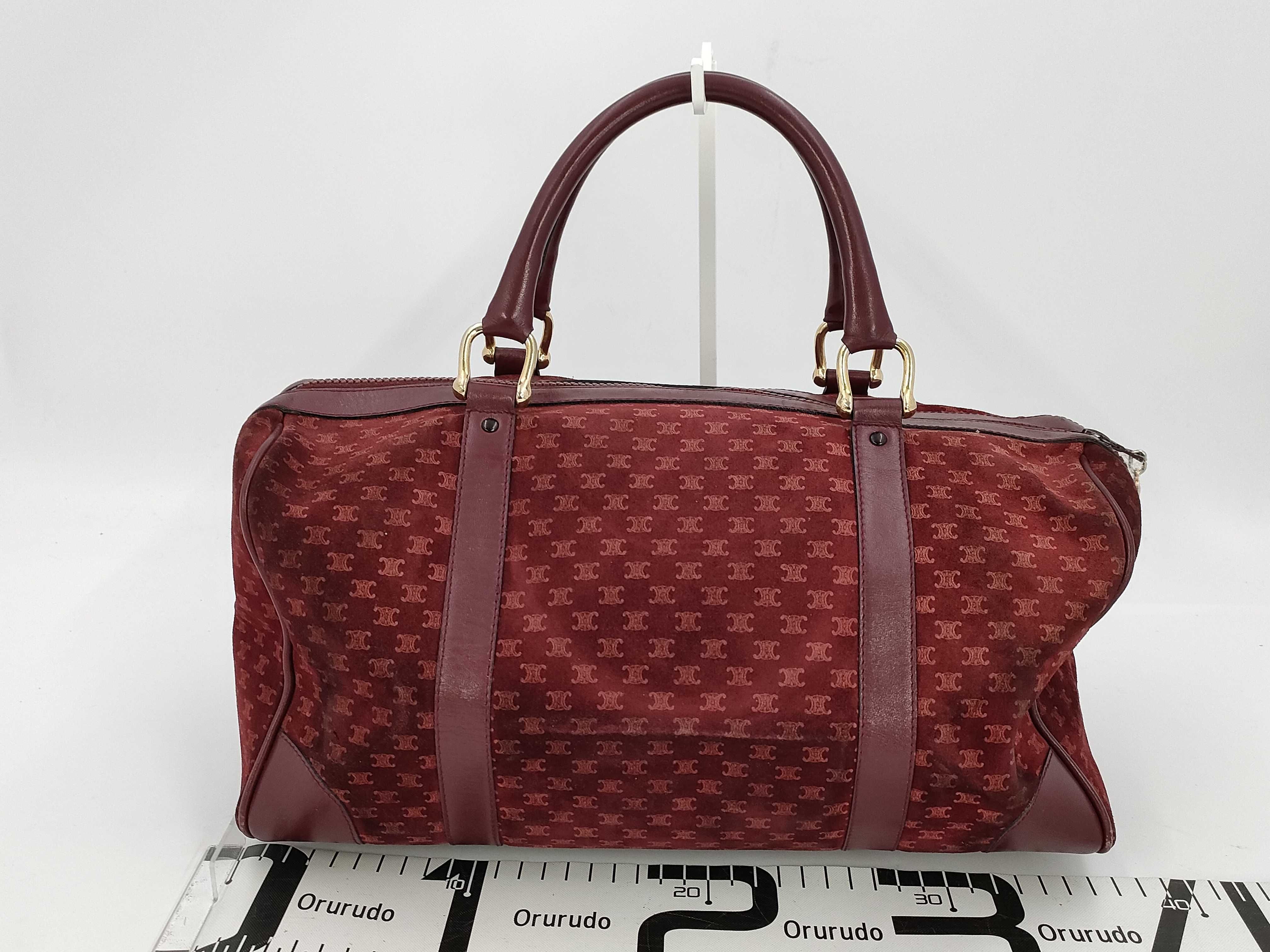 (10979_0504)CELINE マカダム トリオンフ スエード ボストンバック ボルドー ハンドバッグ