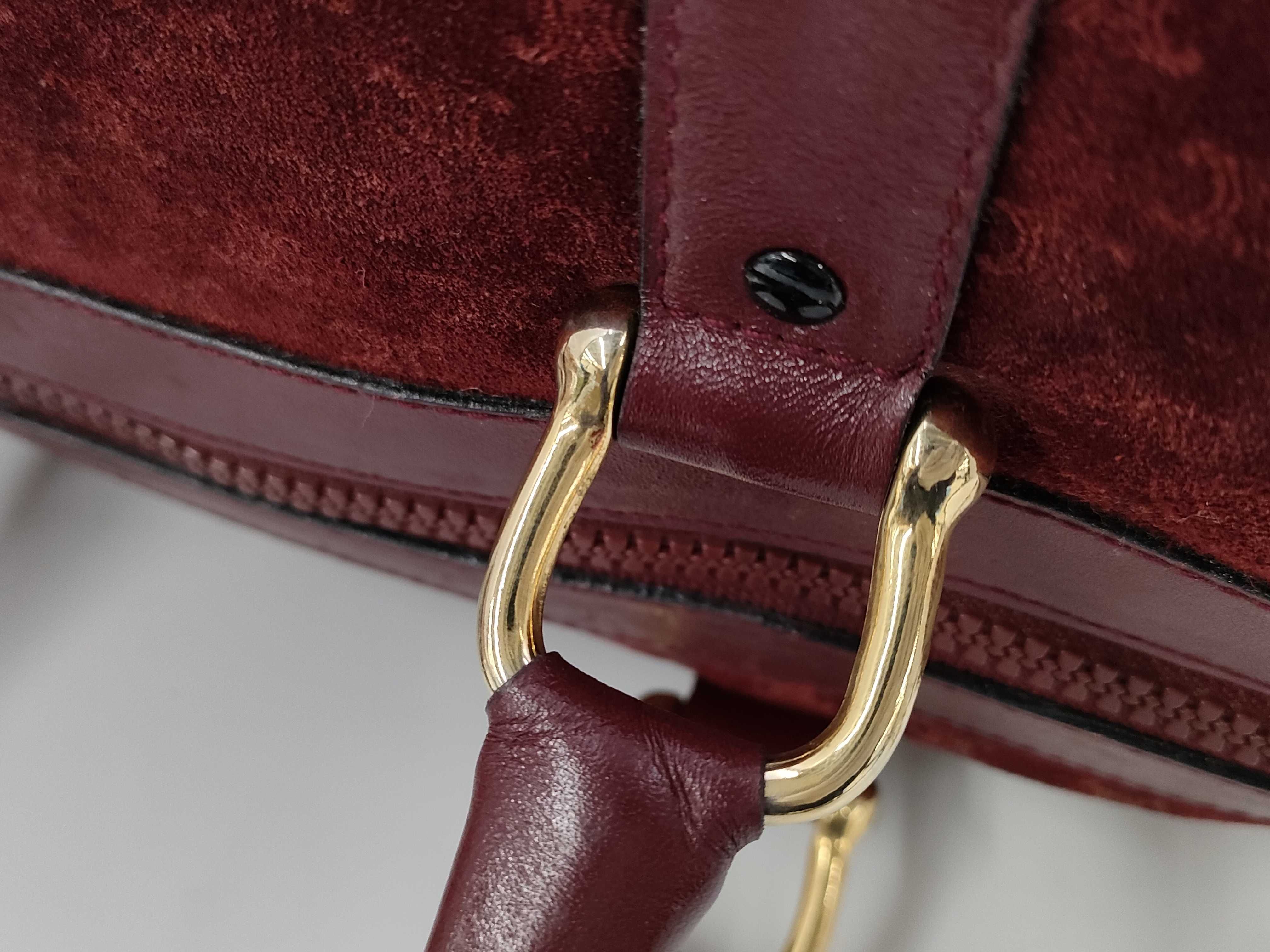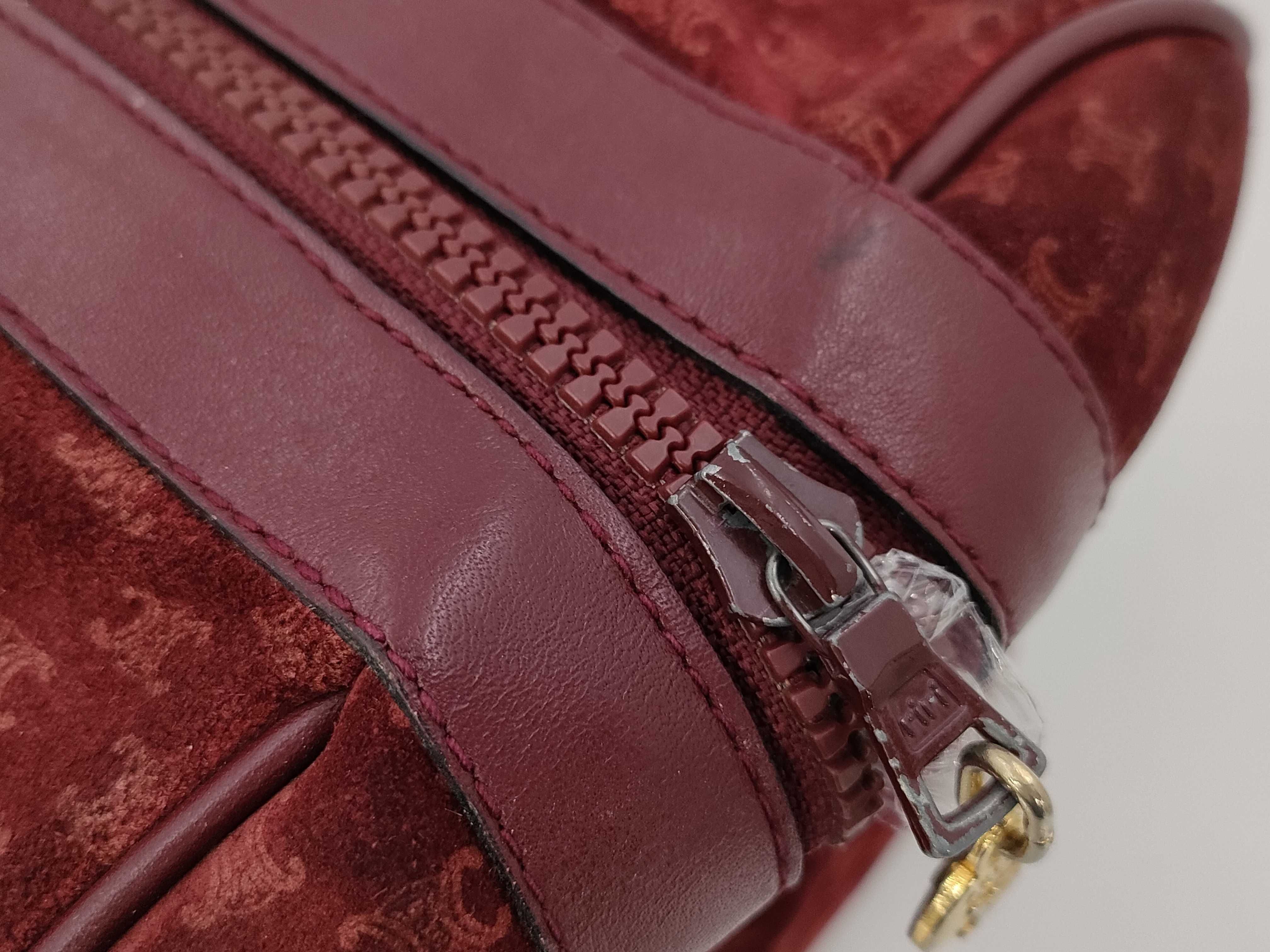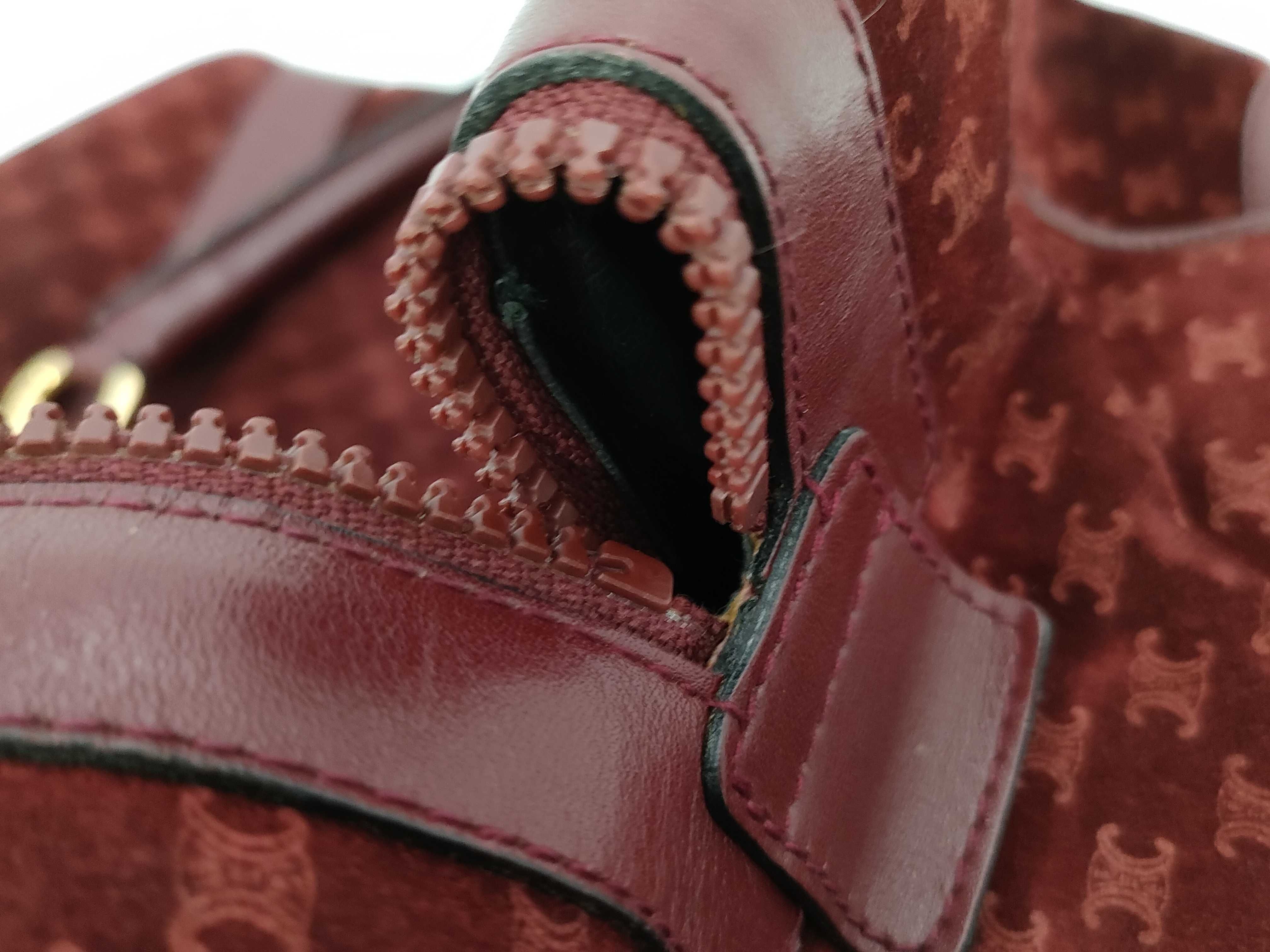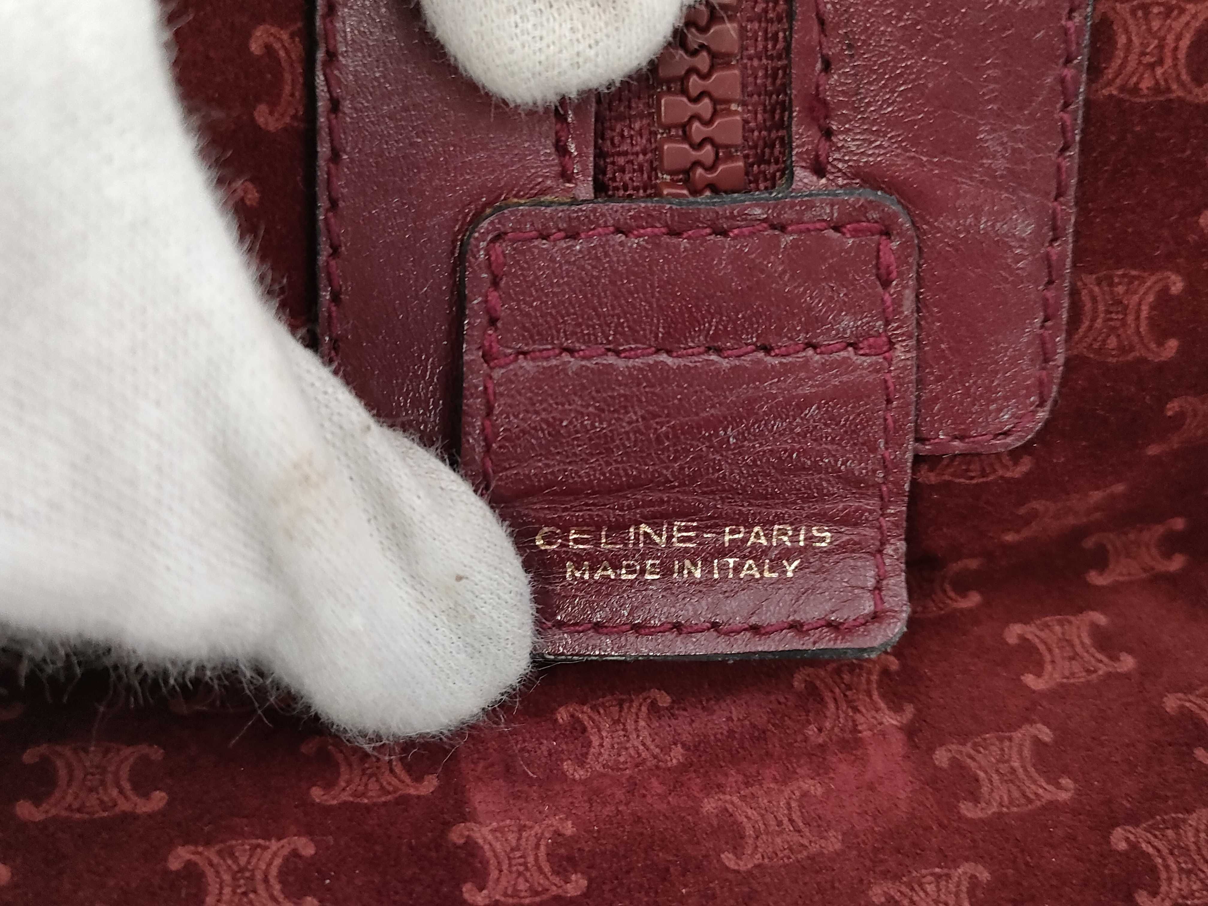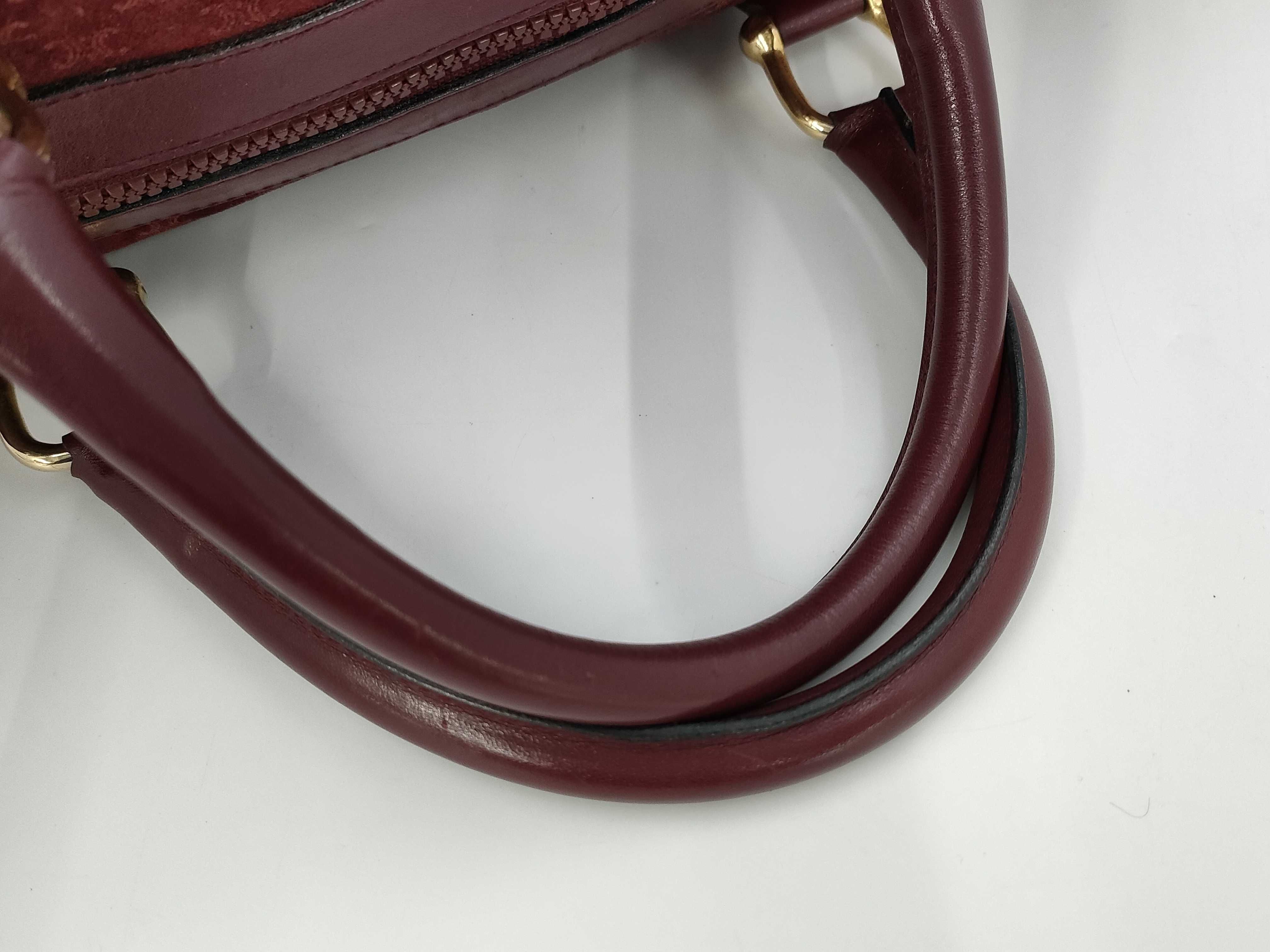 (10979_0504)CELINE マカダム トリオンフ スエード ボストンバック ボルドー ハンドバッグ