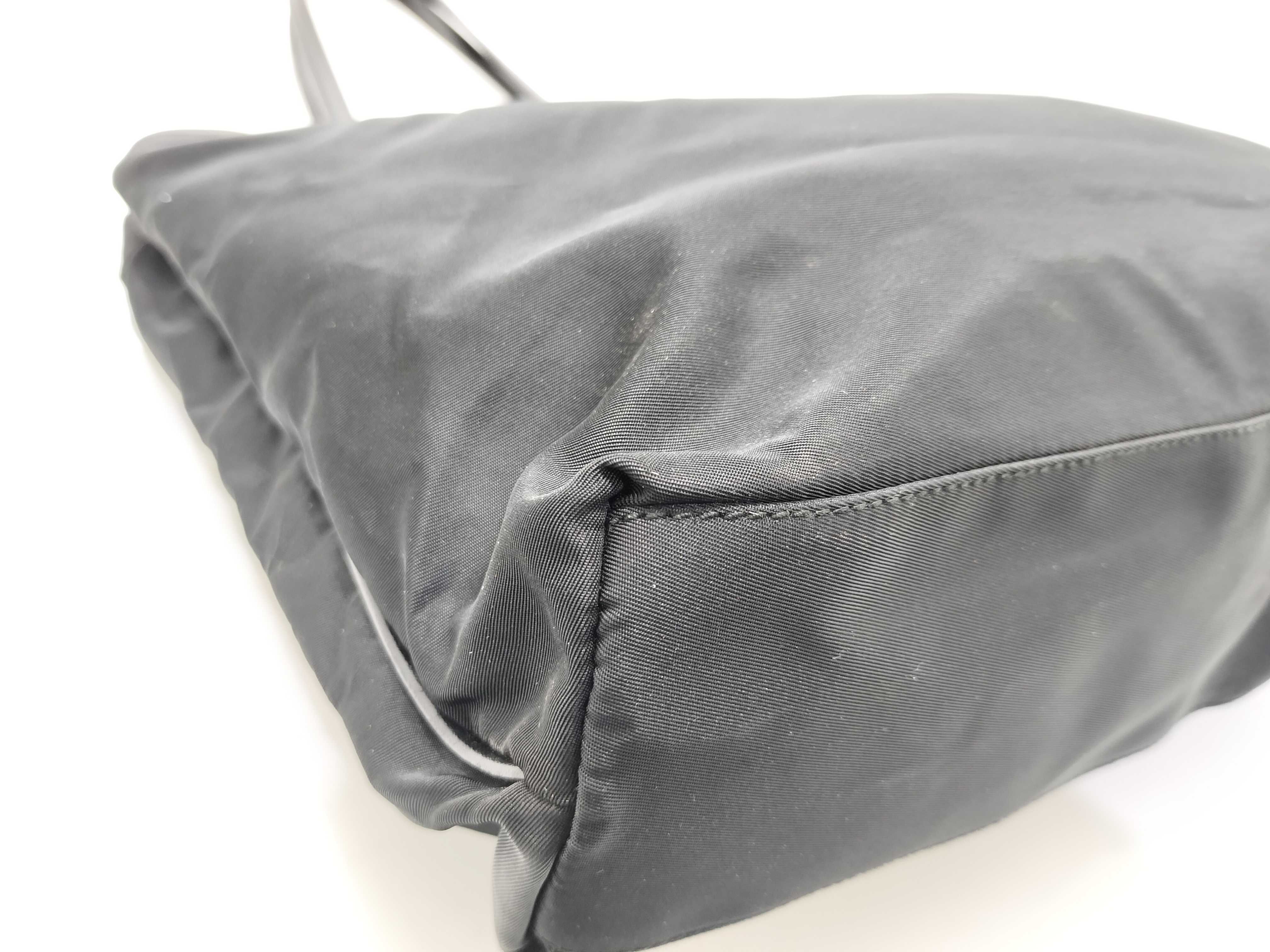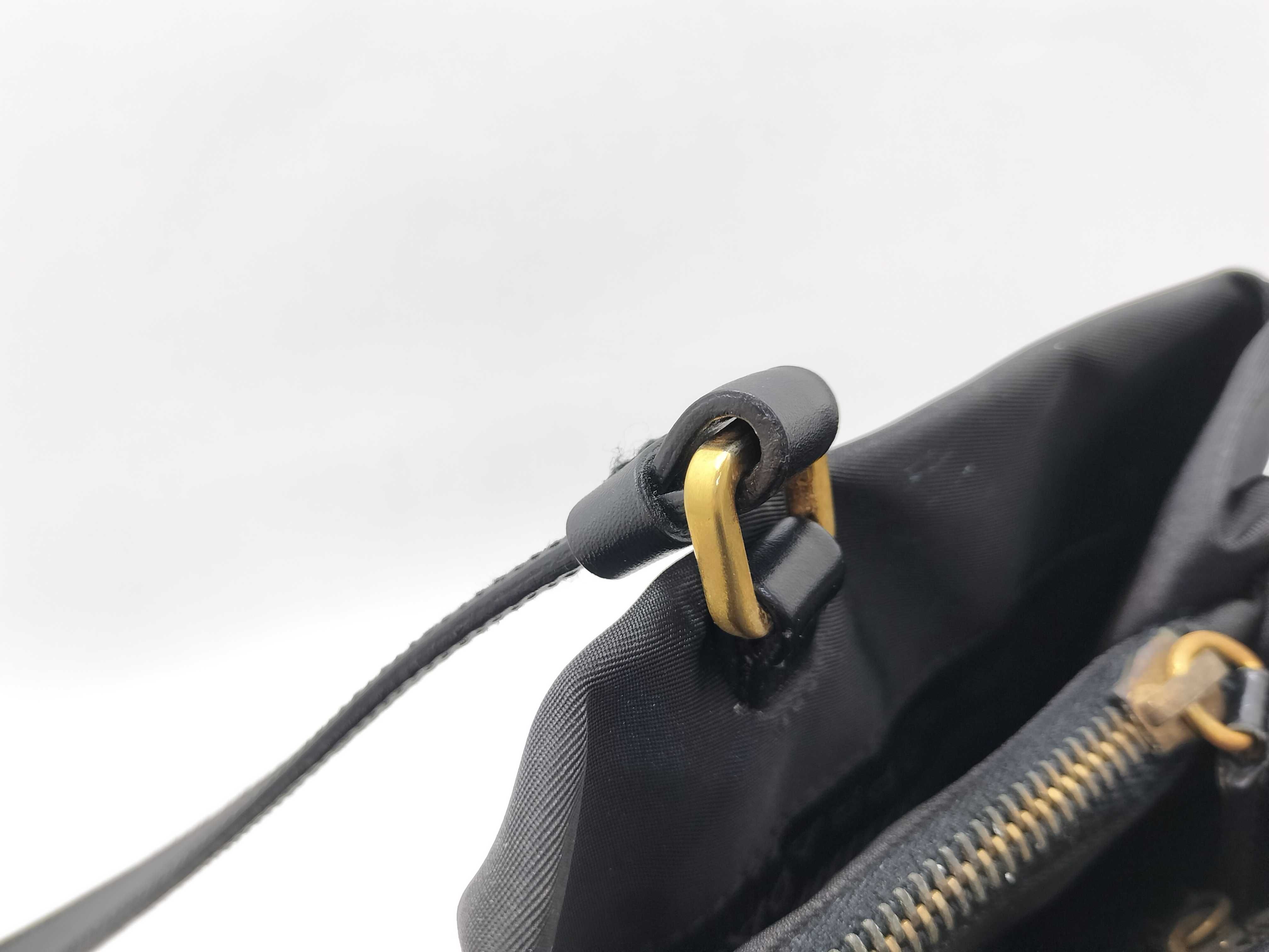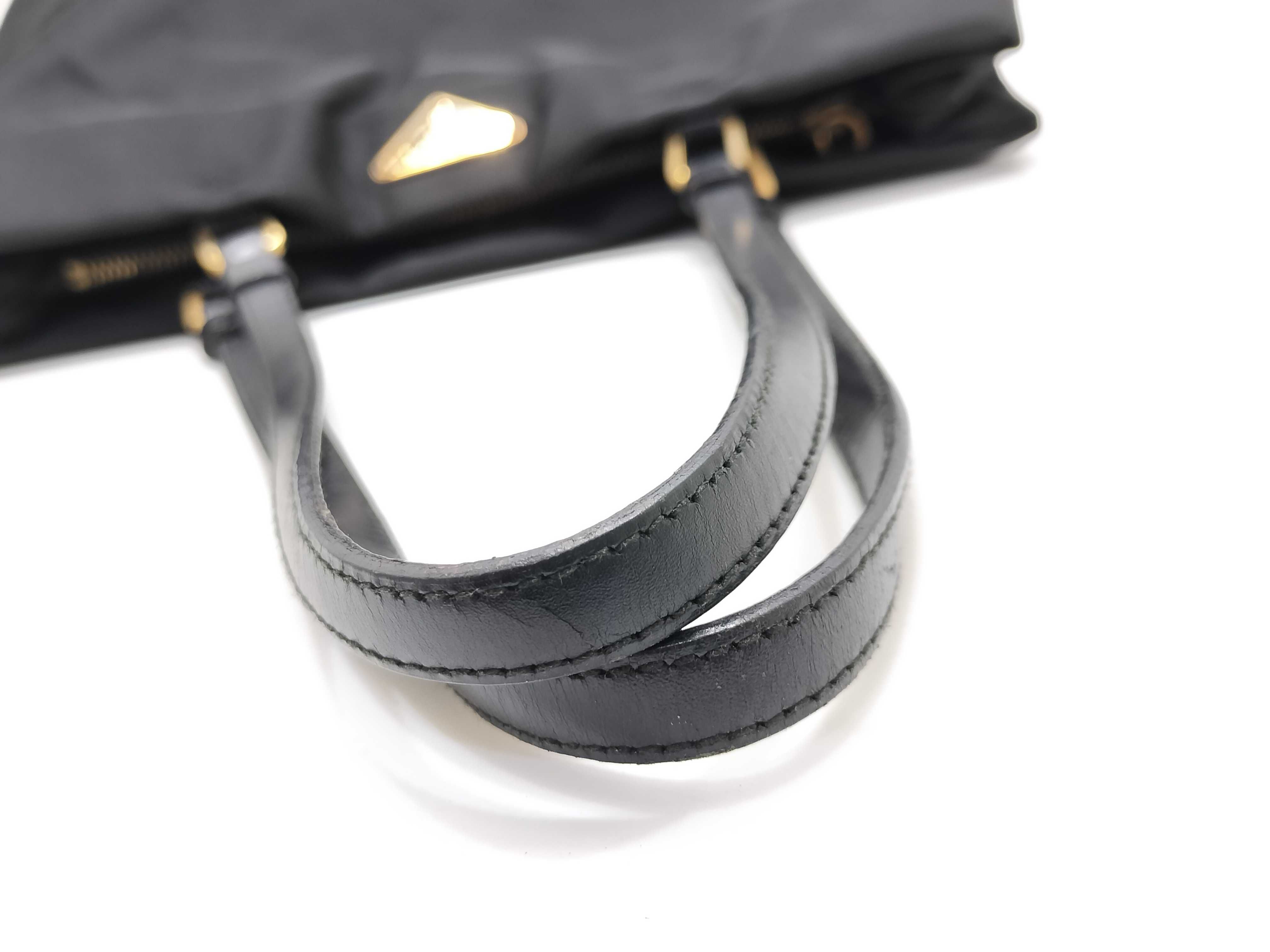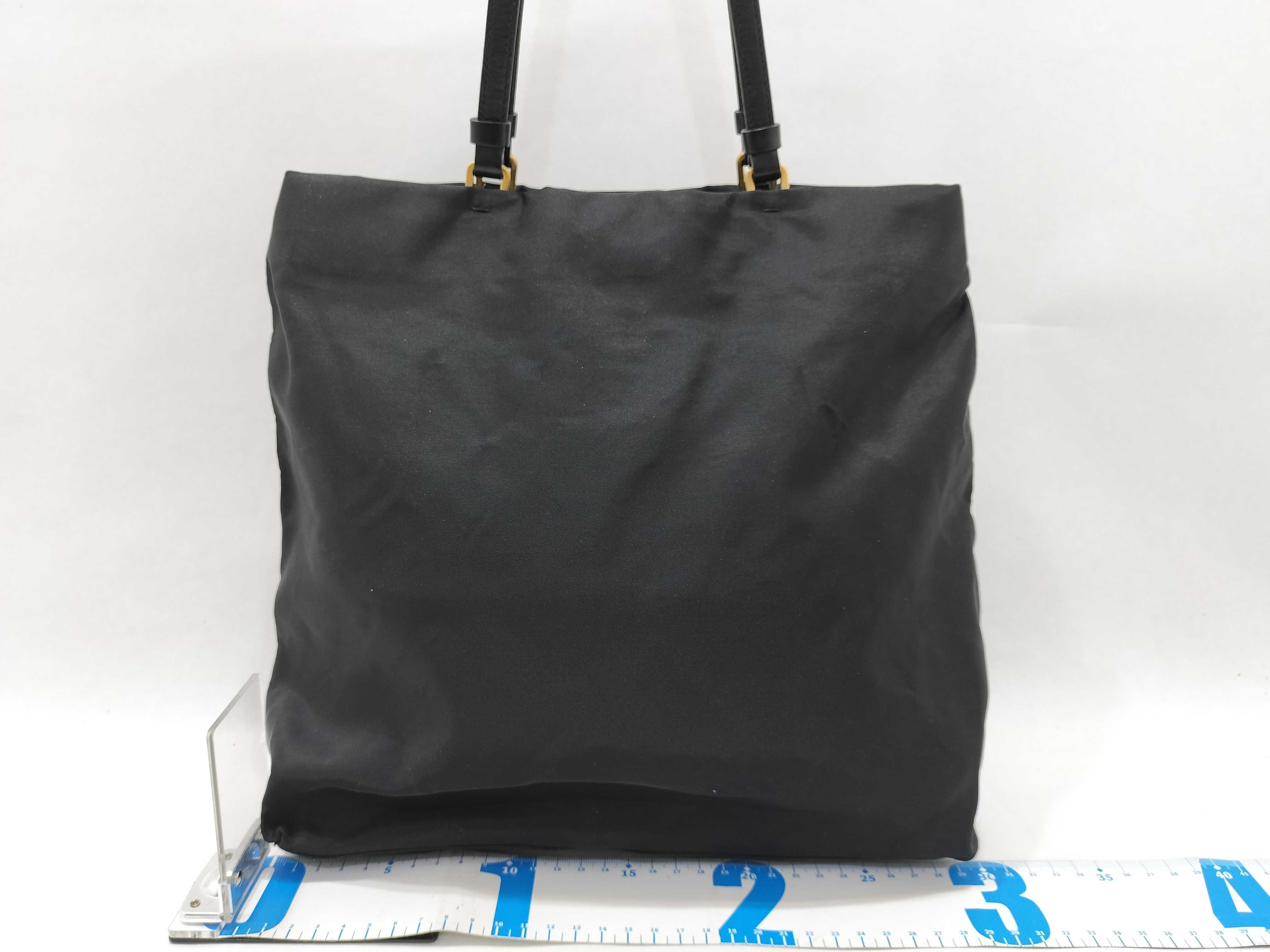 (10979_0657)PRADA ナイロン ナイロン 黒 レザー ハンド 肩掛け トートバッグ