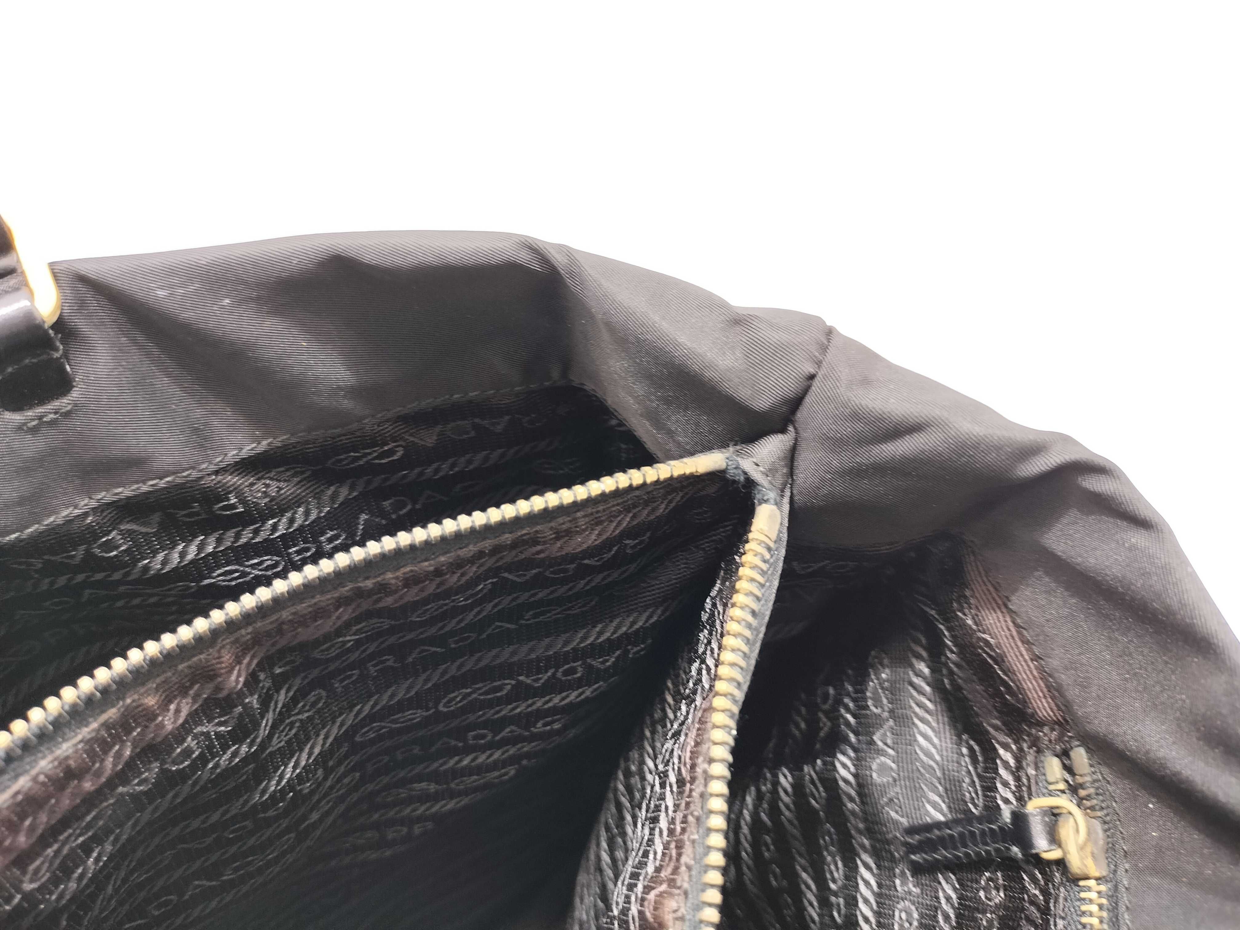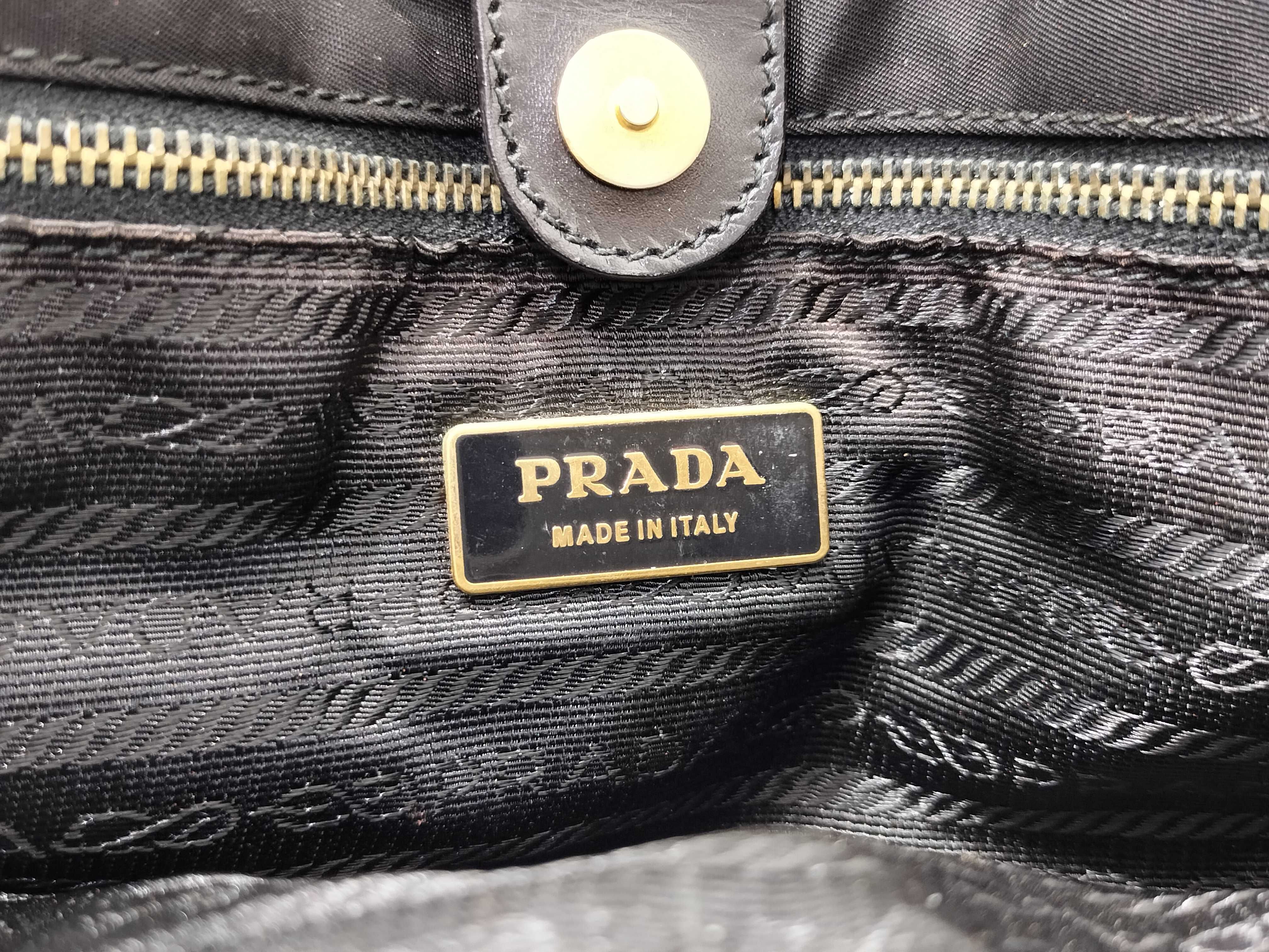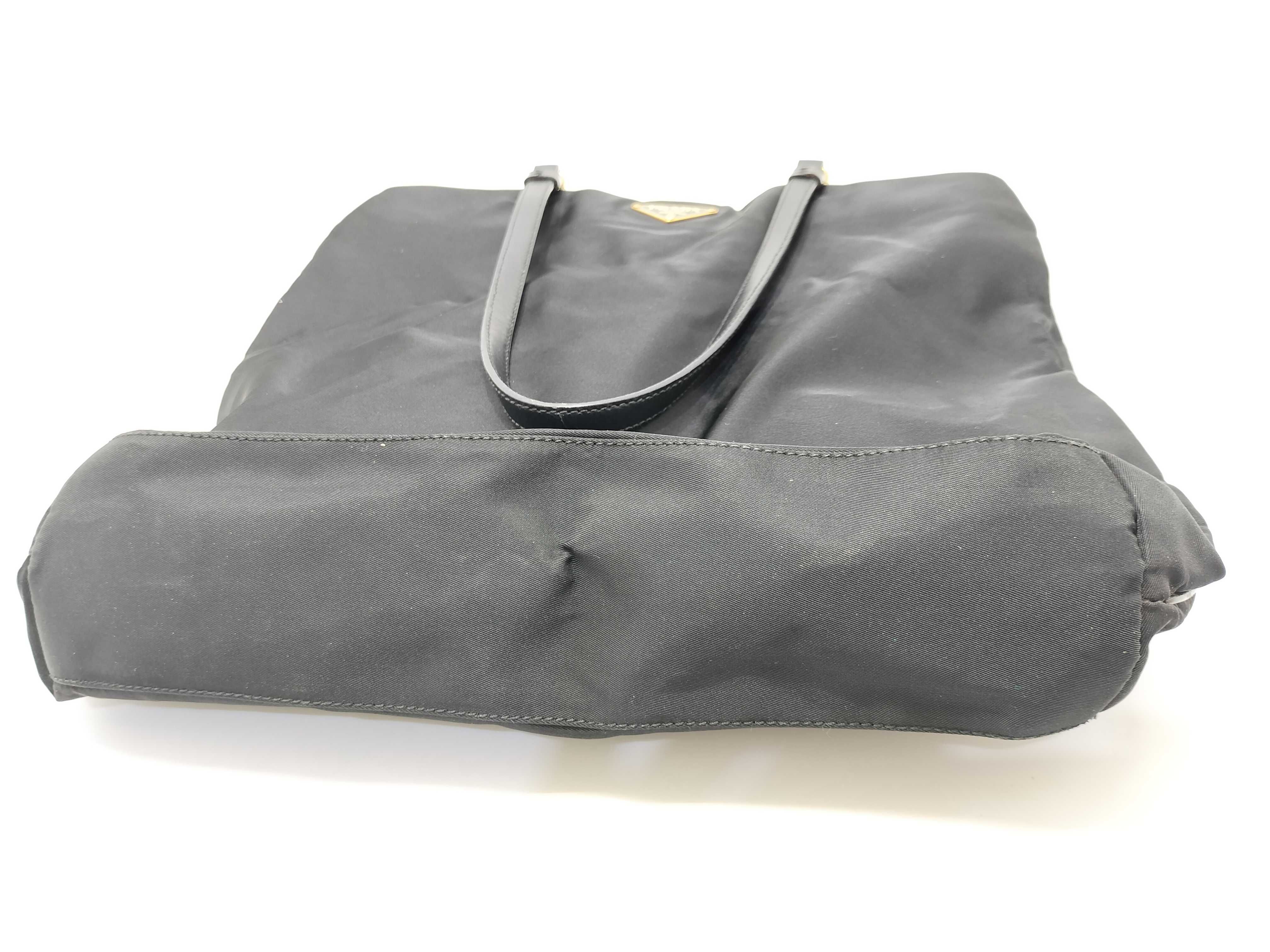 (10979_0657)PRADA ナイロン ナイロン 黒 レザー ハンド 肩掛け トートバッグ