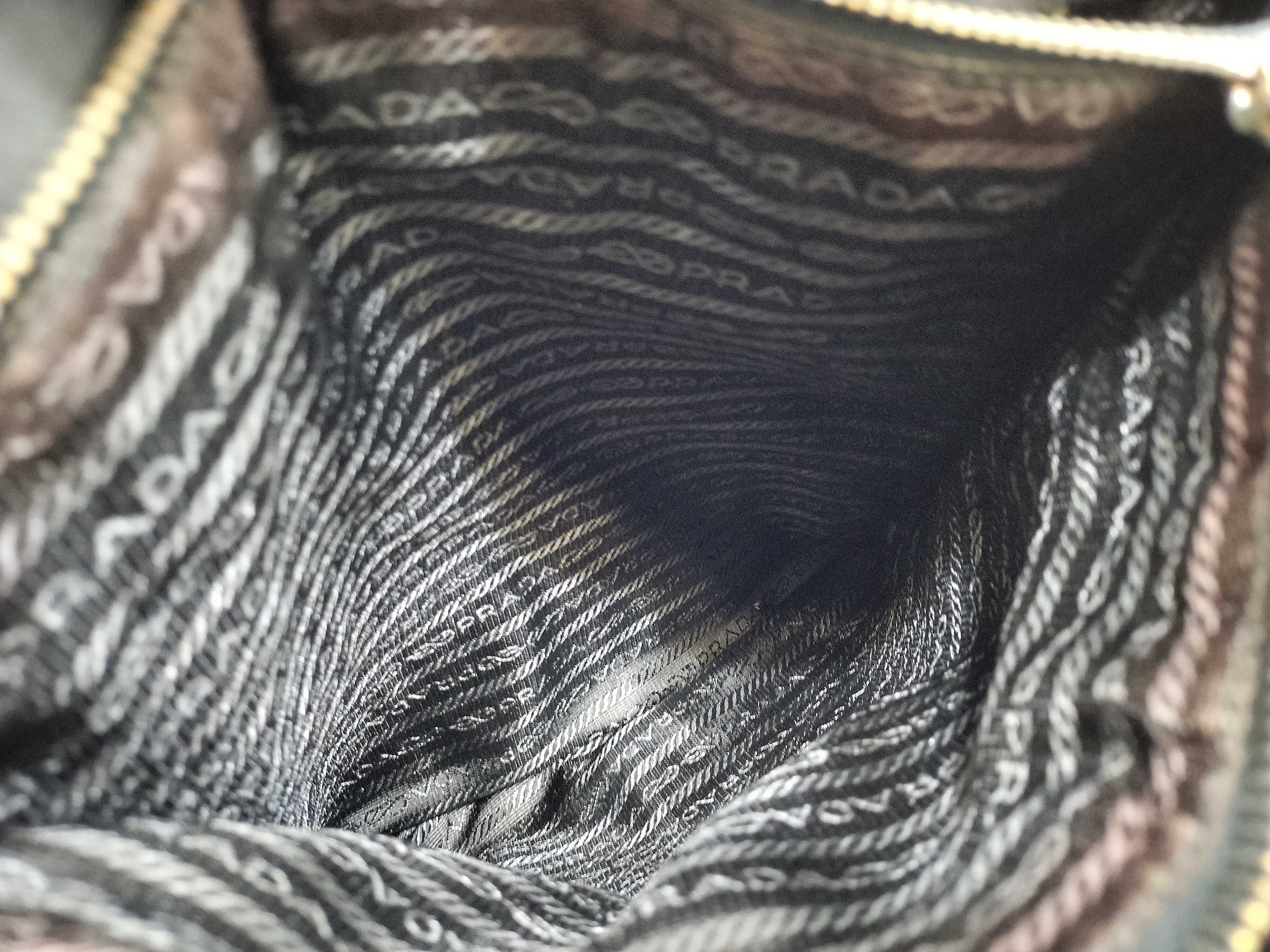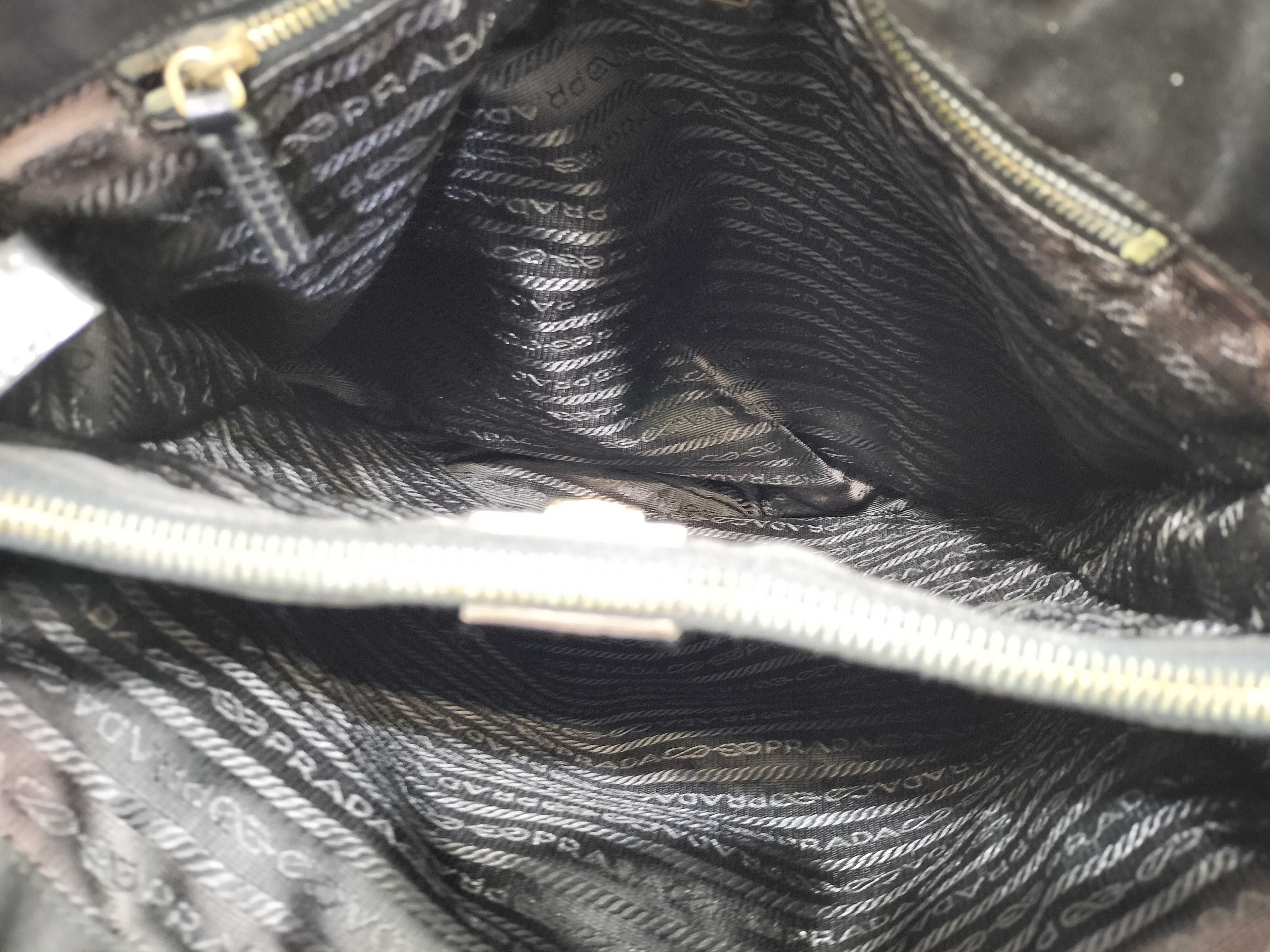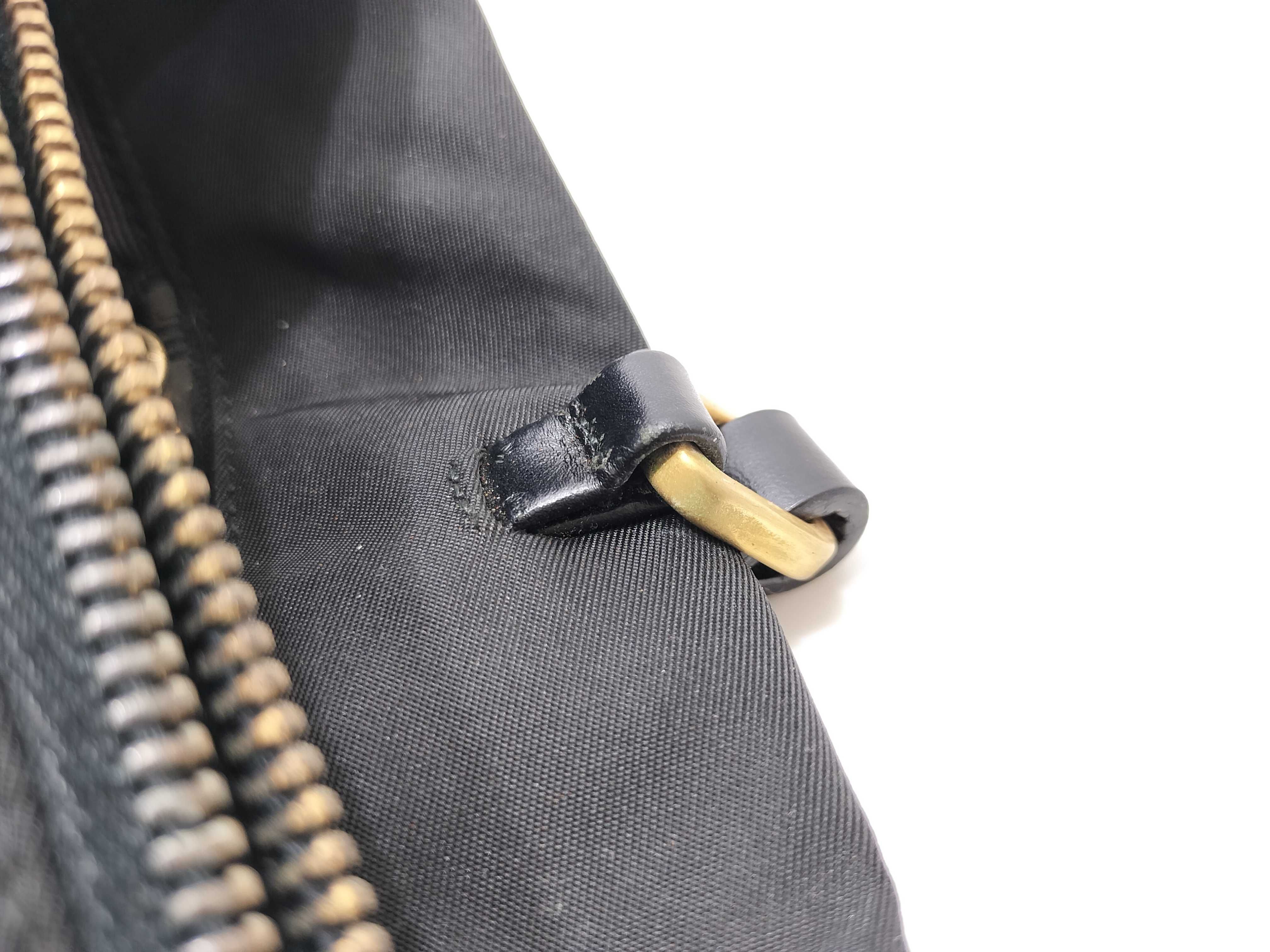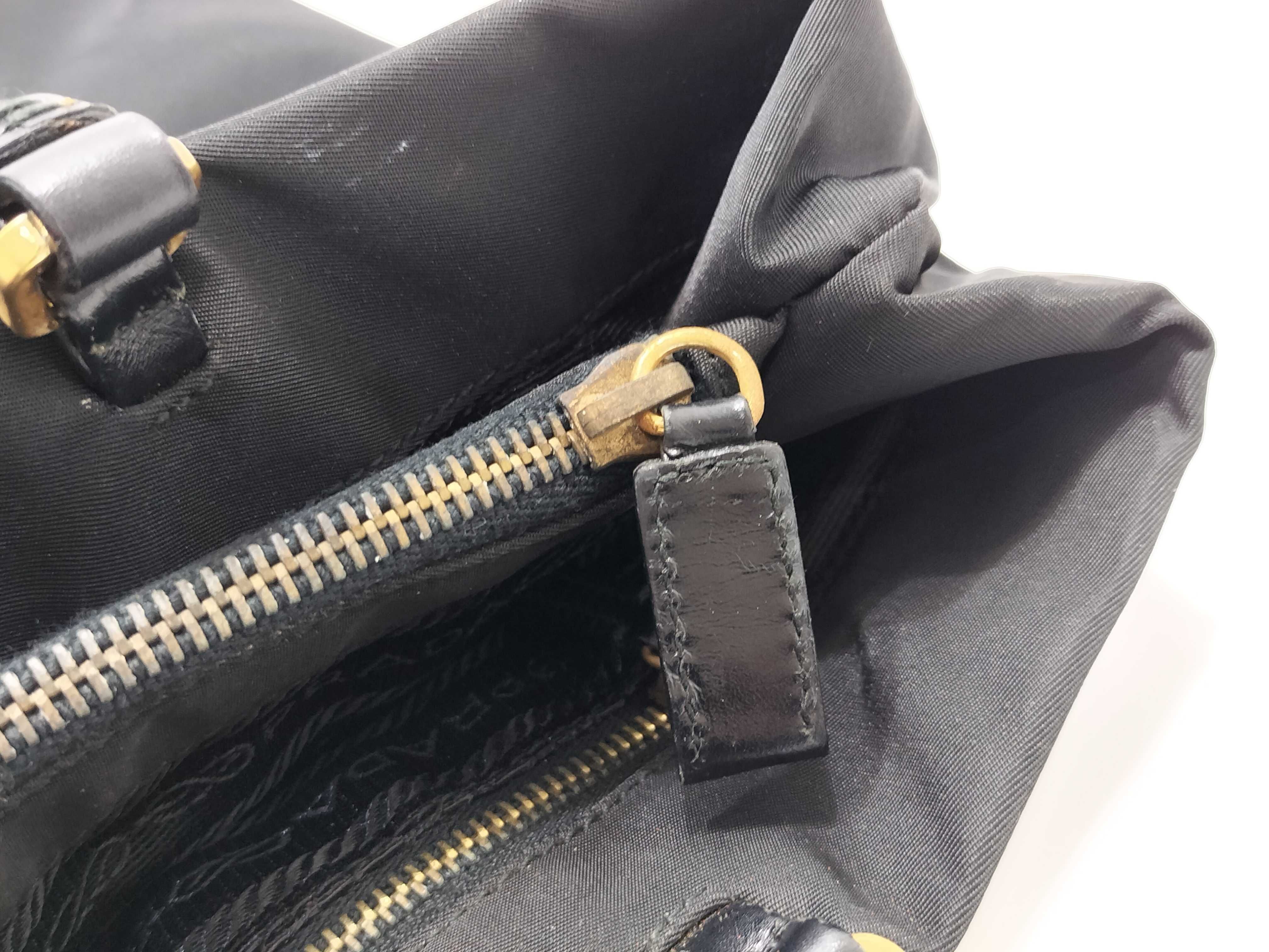 (10979_0657)PRADA ナイロン ナイロン 黒 レザー ハンド 肩掛け トートバッグ