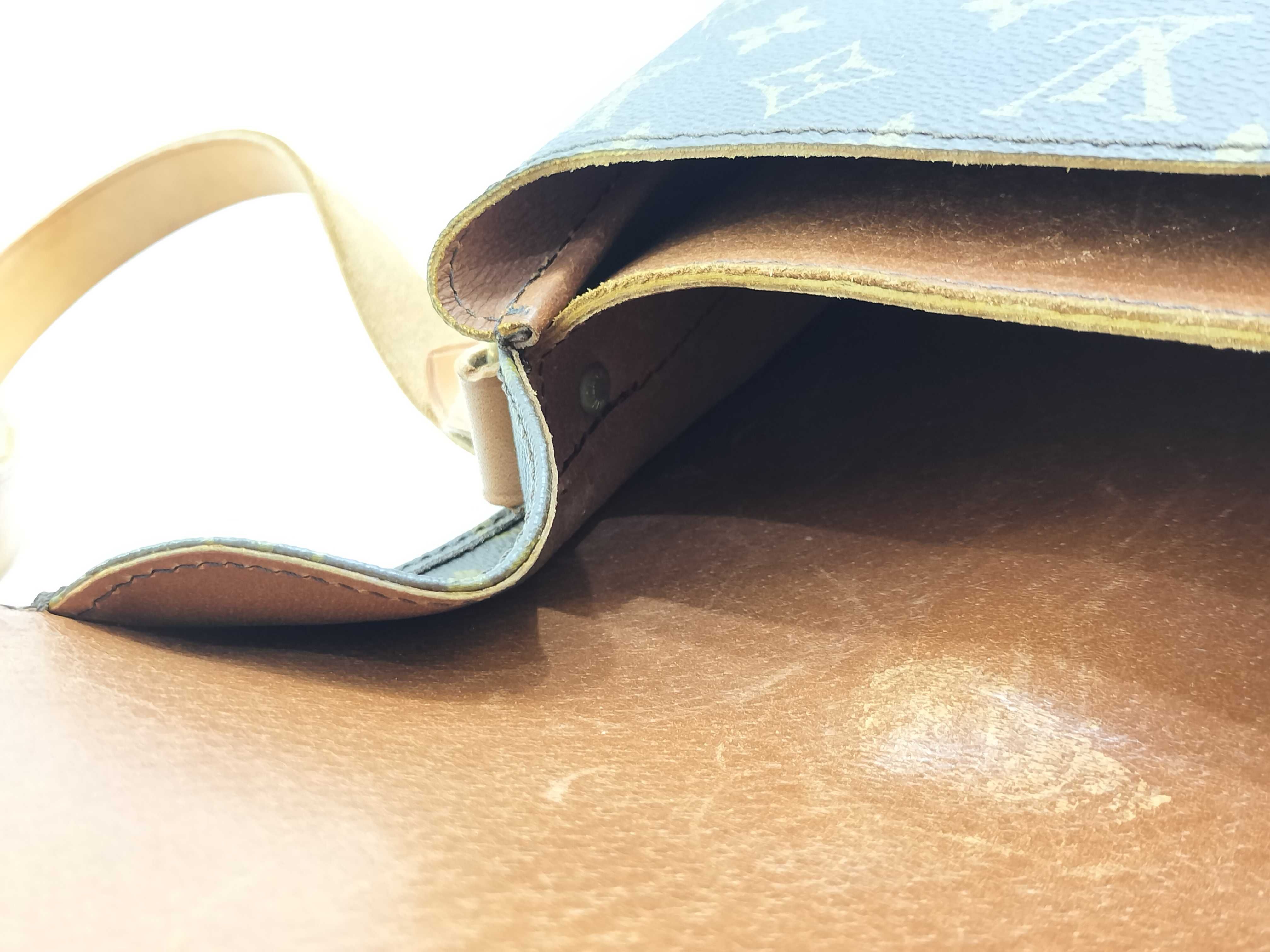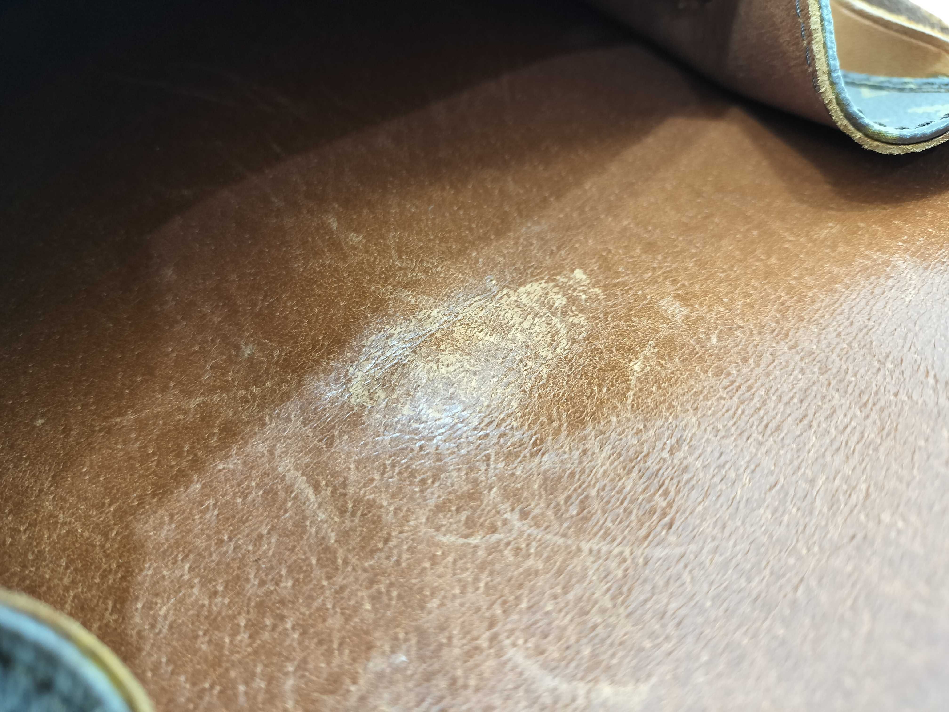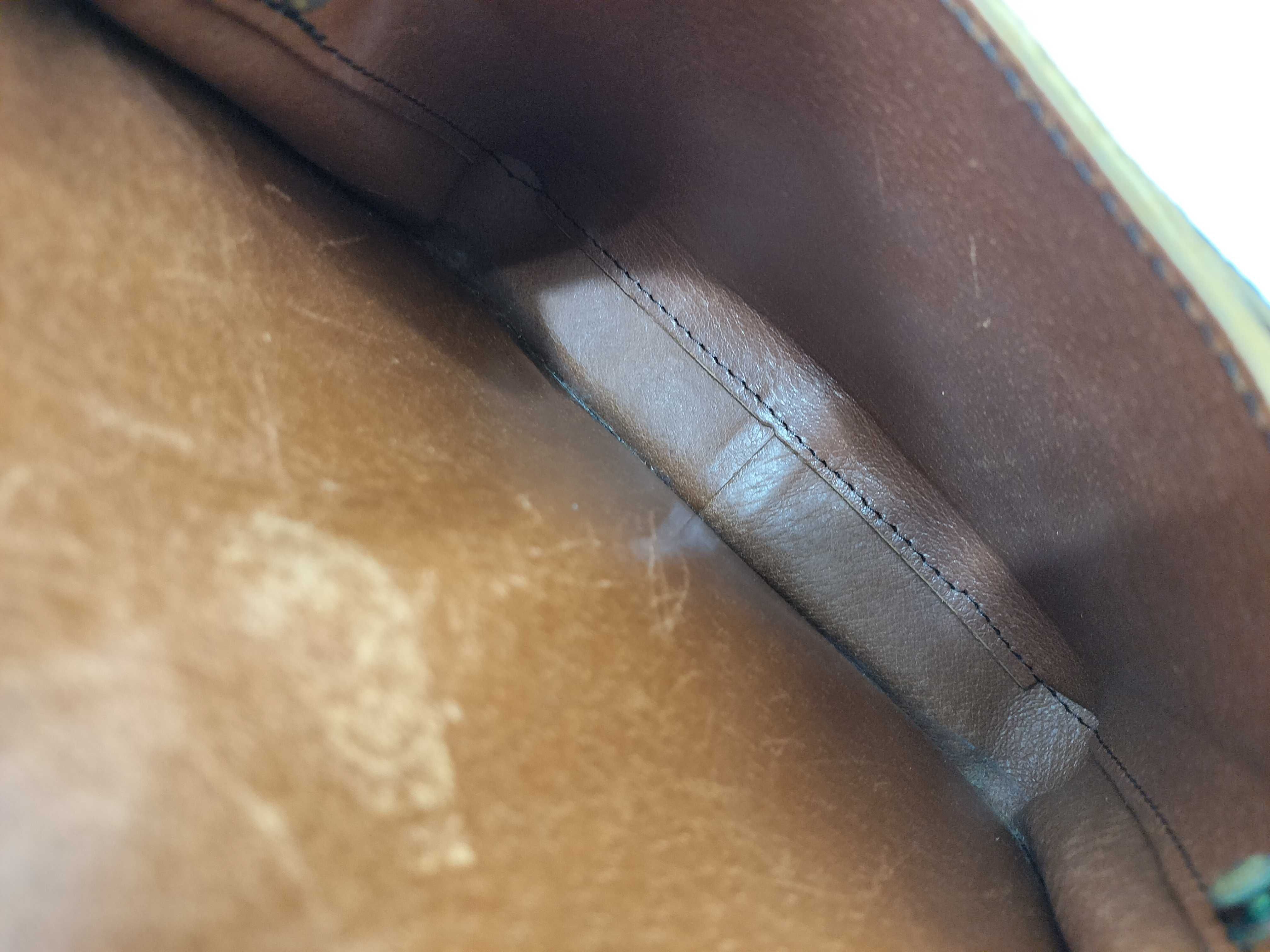 全体擦れ(小) 角擦れ(小) ヌメ革やけ汚れ(中) ヌメ革ヒビ(小) 持ち手・ショルダーひび(小) 付け根伸び切れ(大) 金具キズ(中) 内側汚れ(小) 擦れ剥げ(中) ショルダー擦れ毛羽立ち(中) 付け根ビス破損1箇所有【付属品