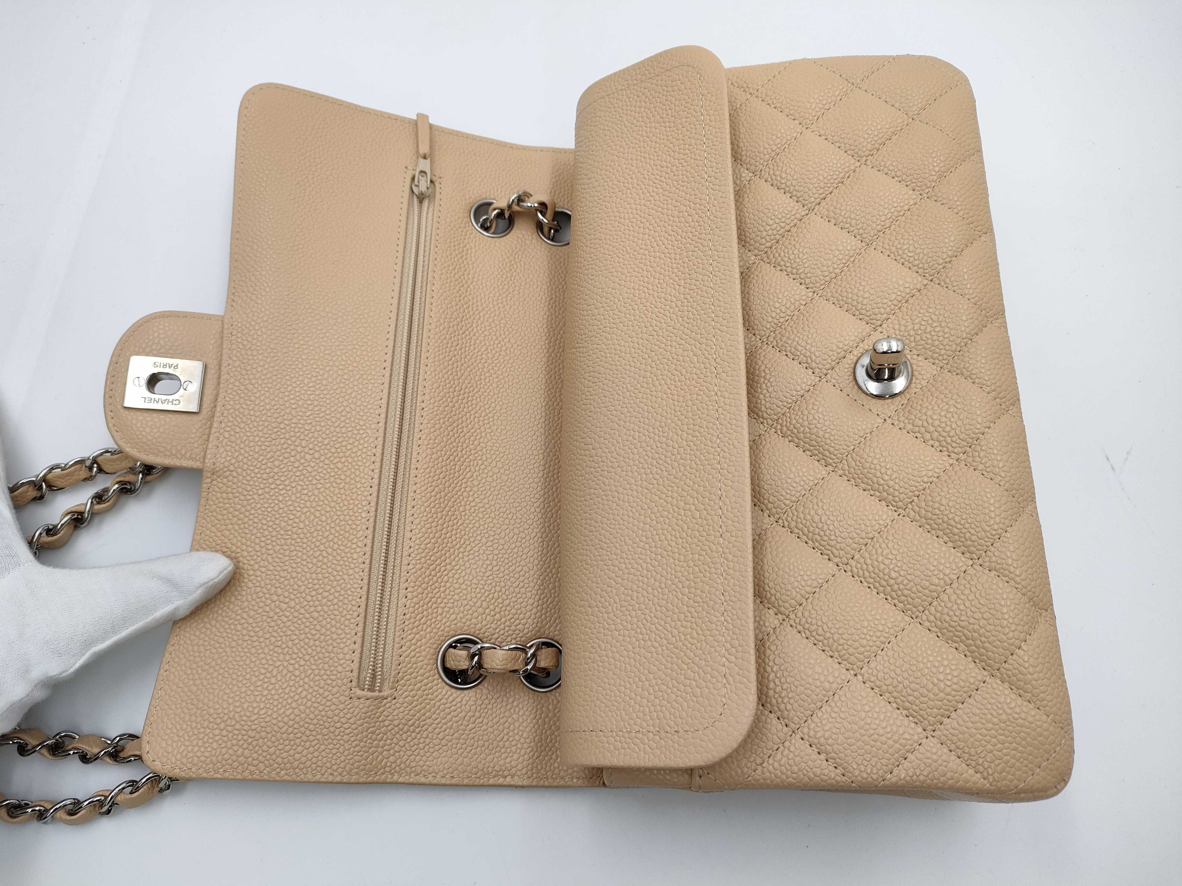 (B_0003)CHANEL シャネル ダブルフラップ 25 キャビア ベージュ A01112 18940569 ショルダーバッグ