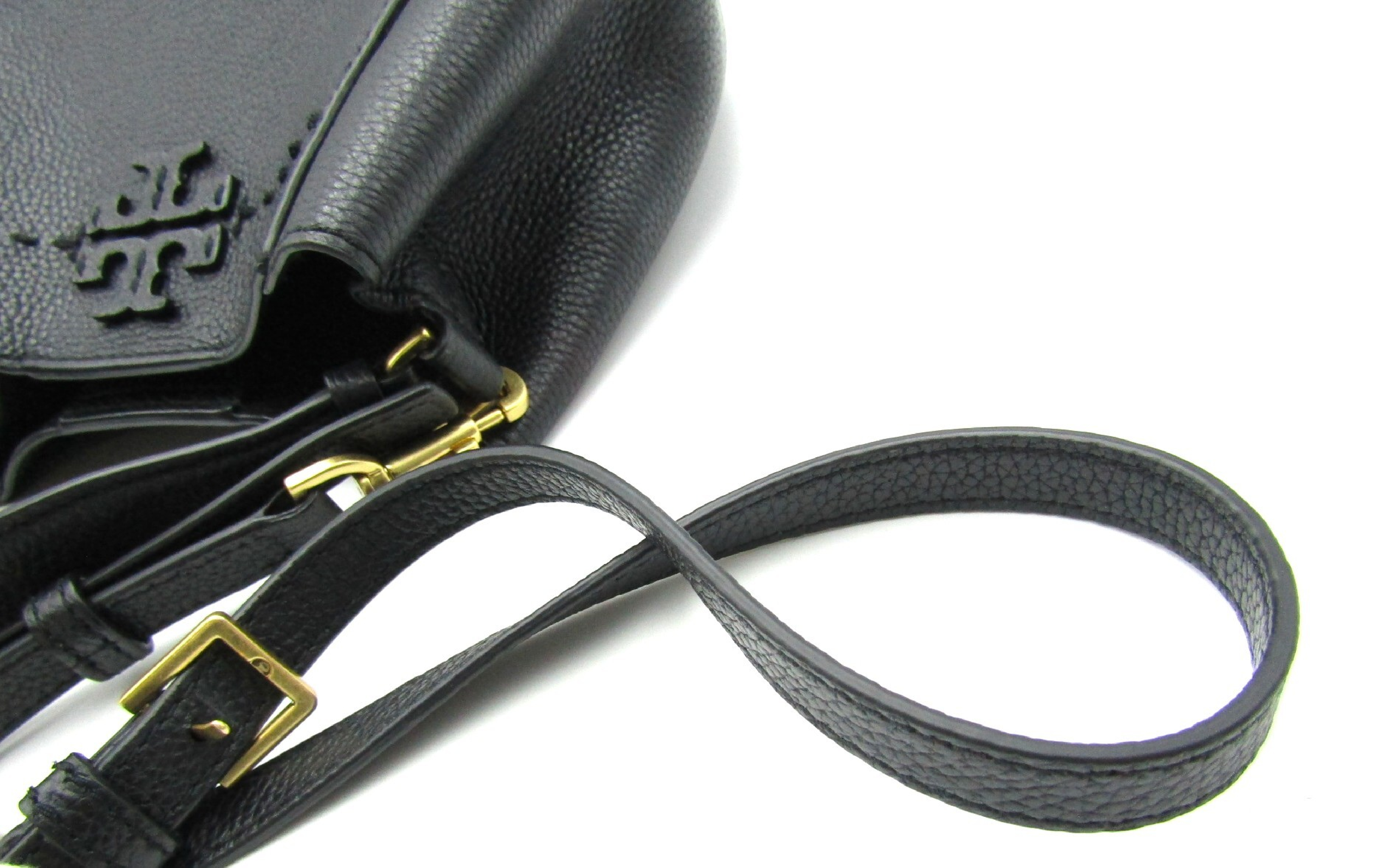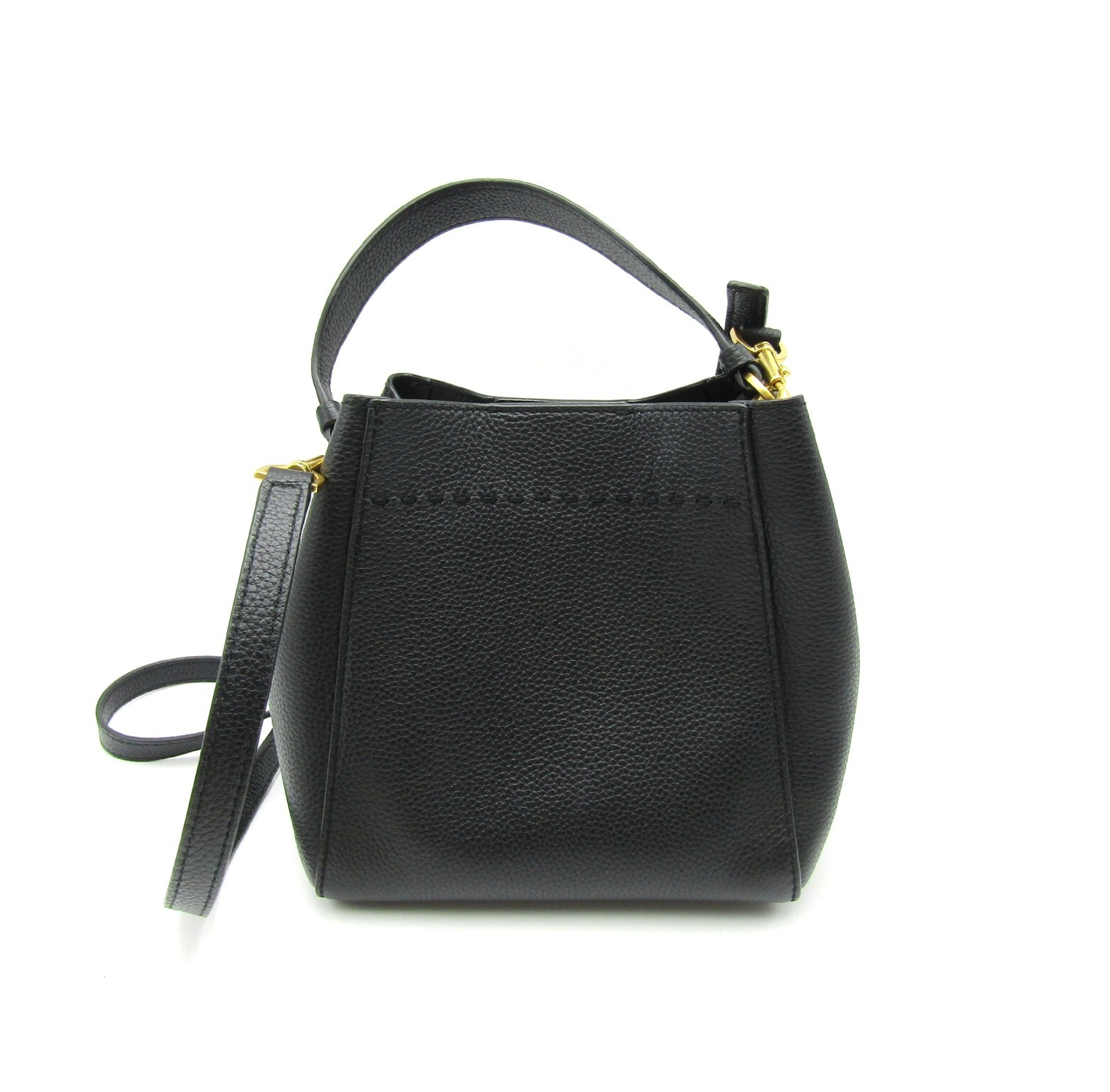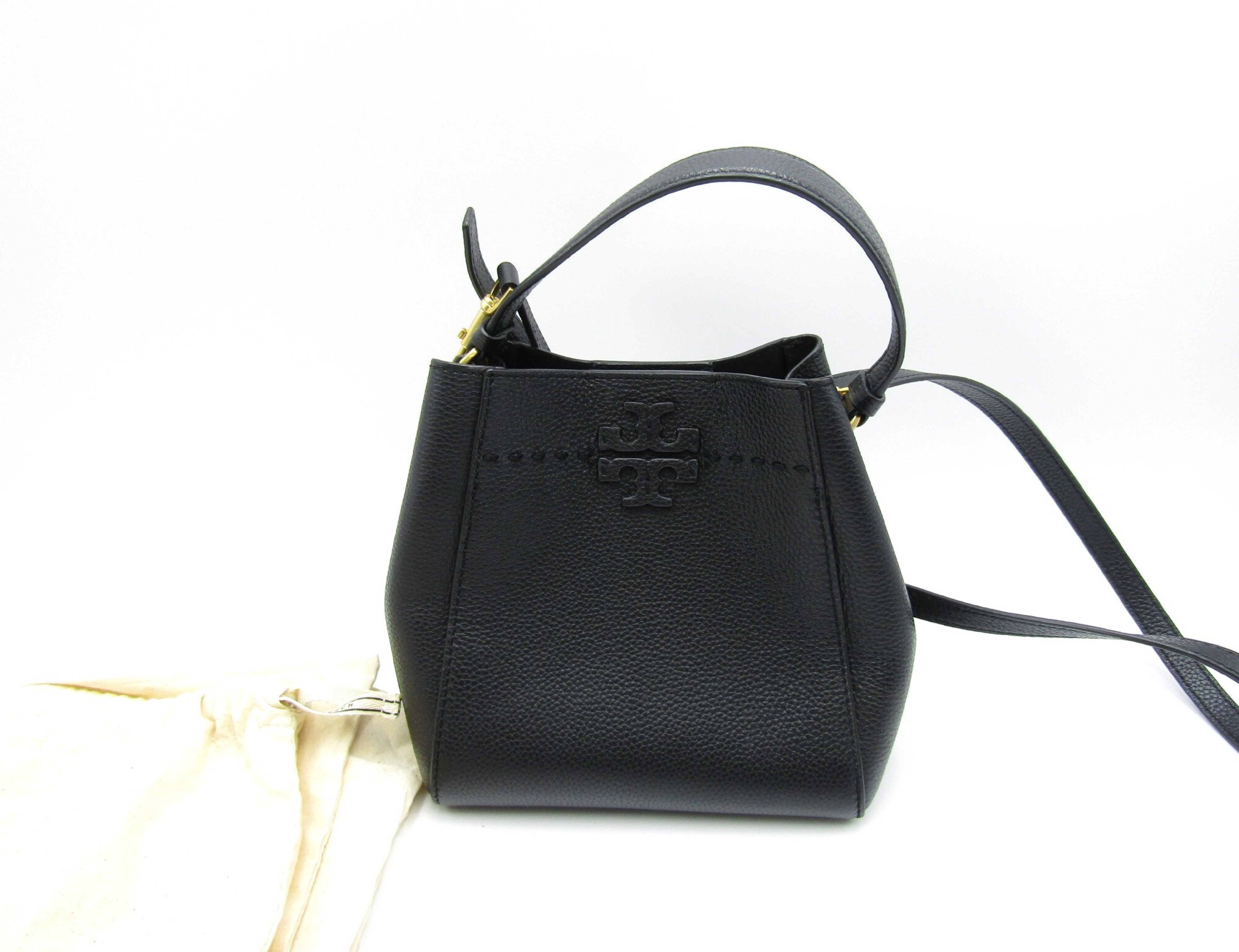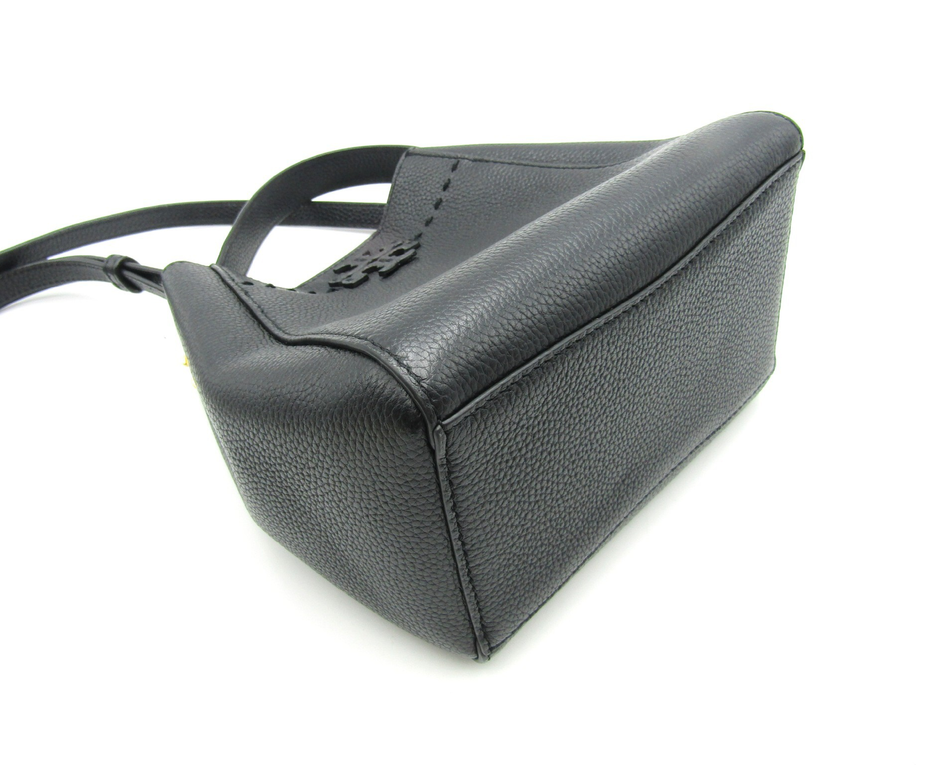 (F_0400)Tory Burch トリーバーチ マックグロースモールバケット 74956 2Way ブラック レザー G金具 ハンドバッグ