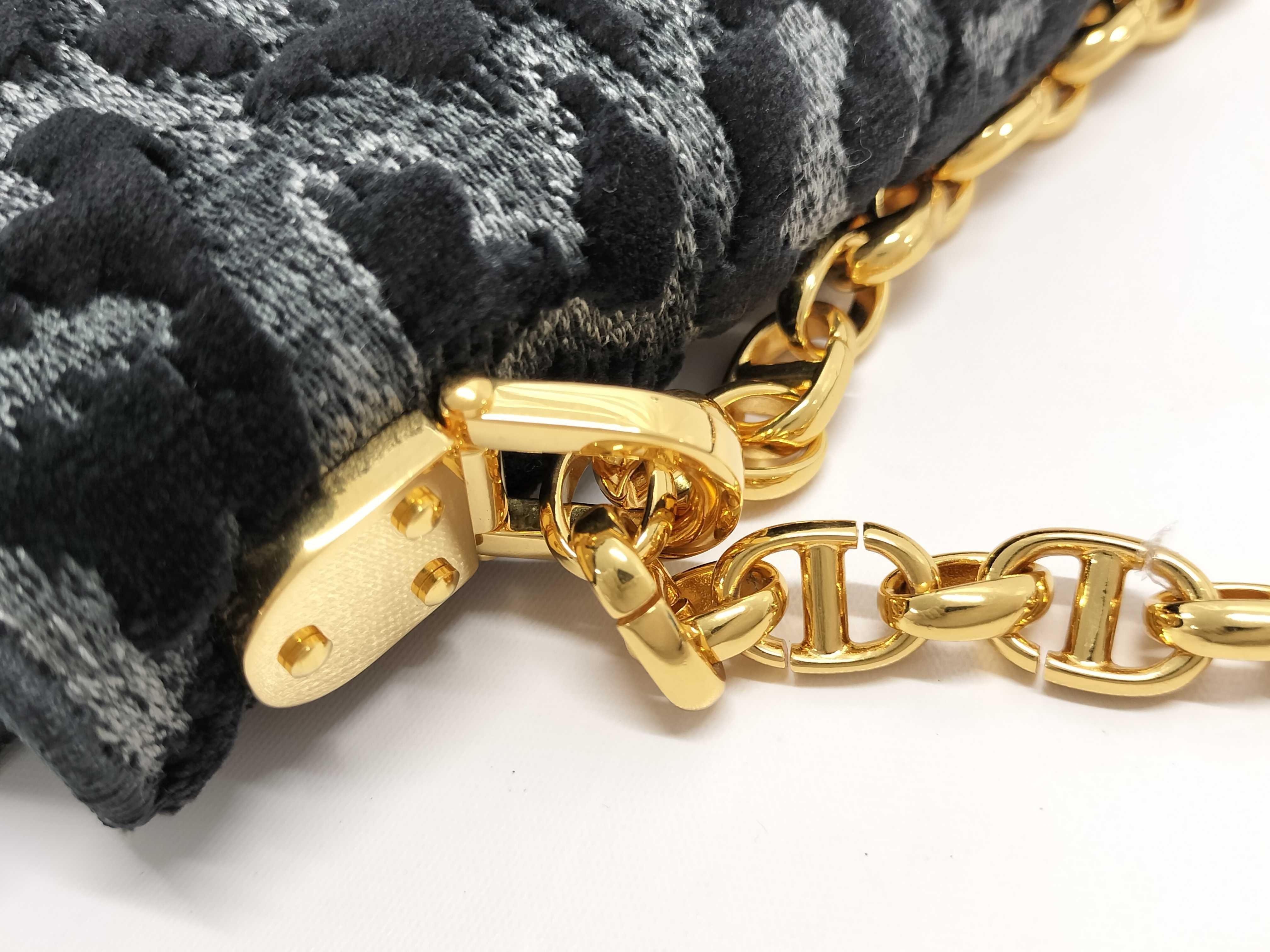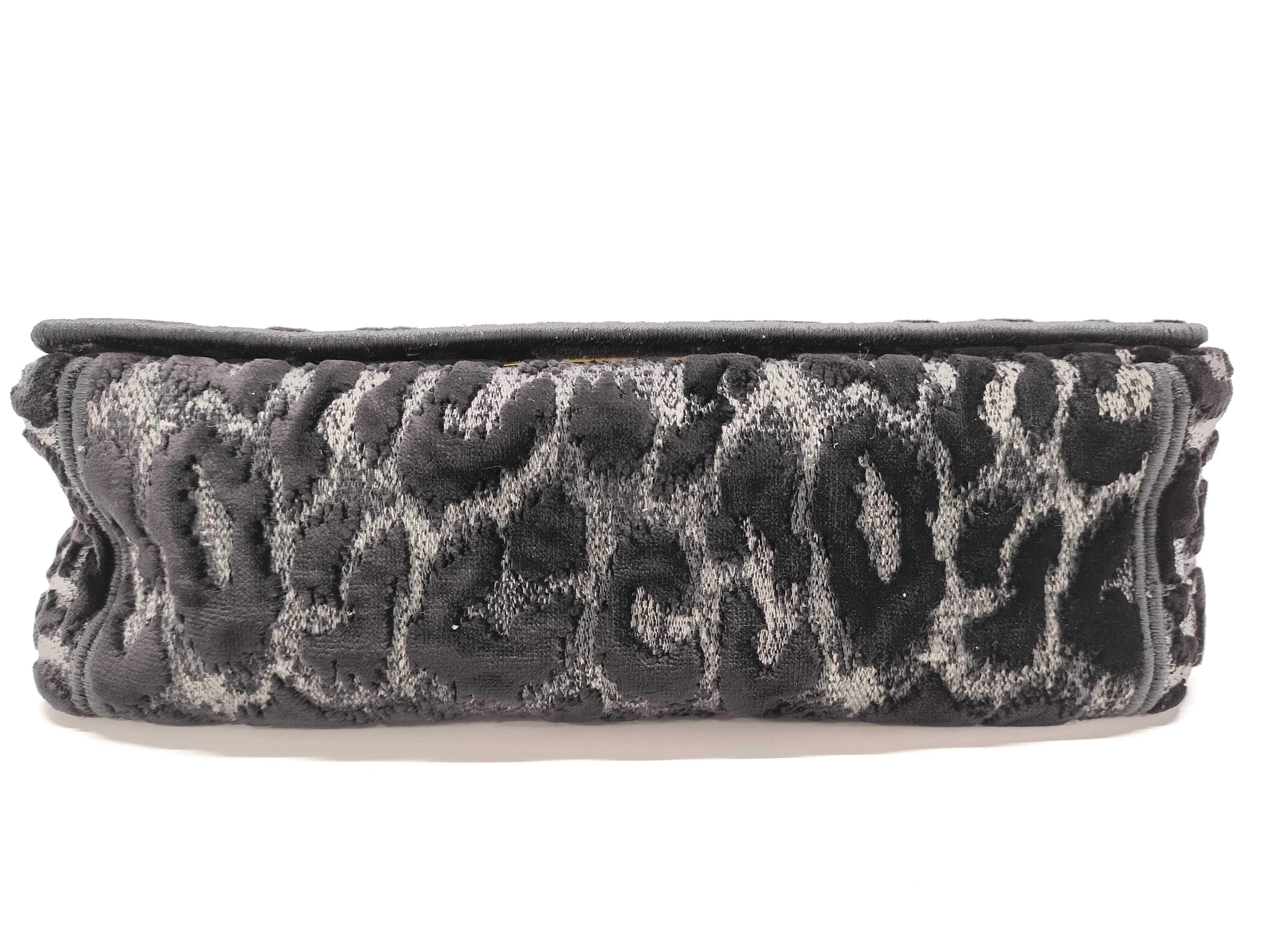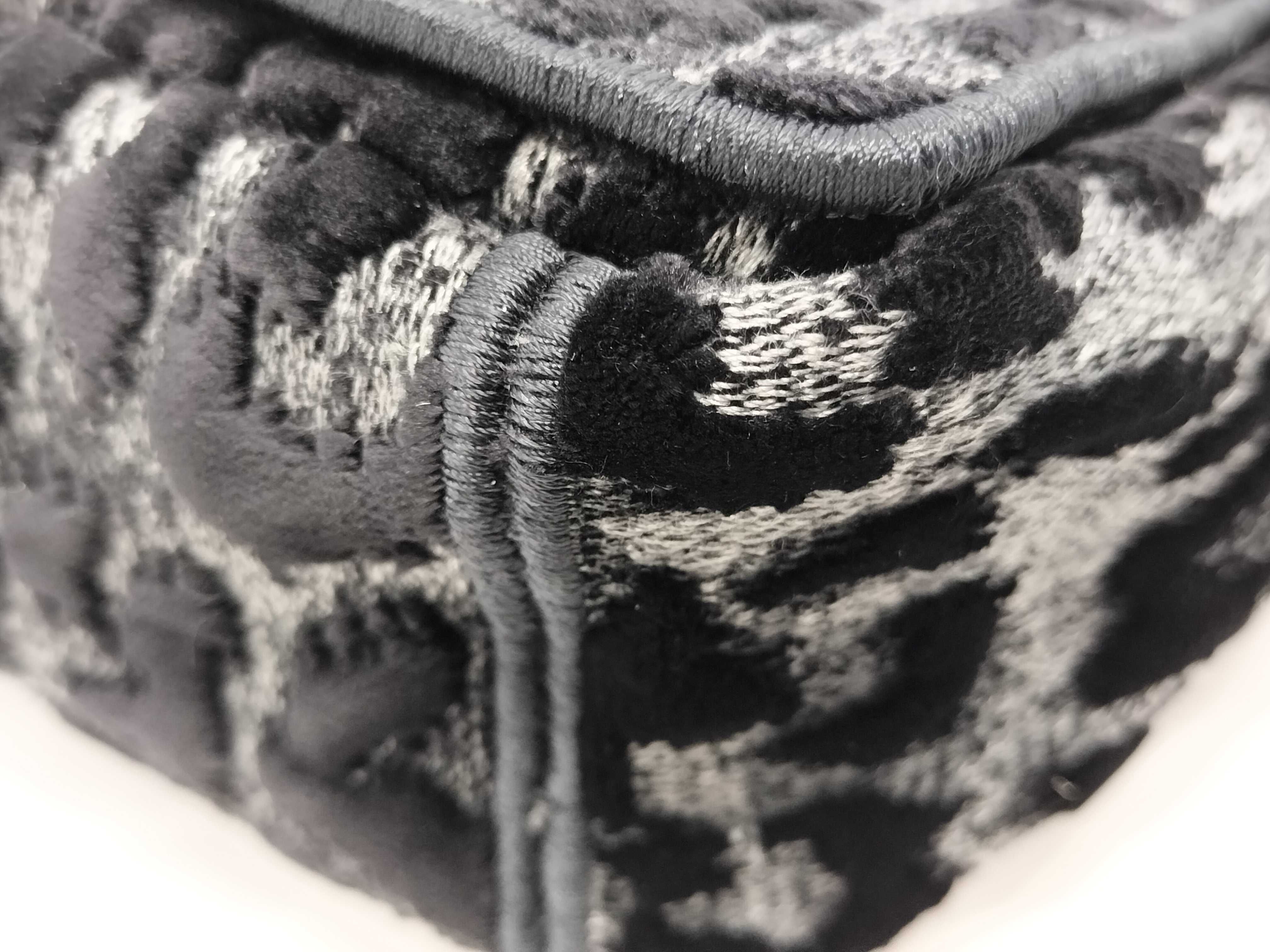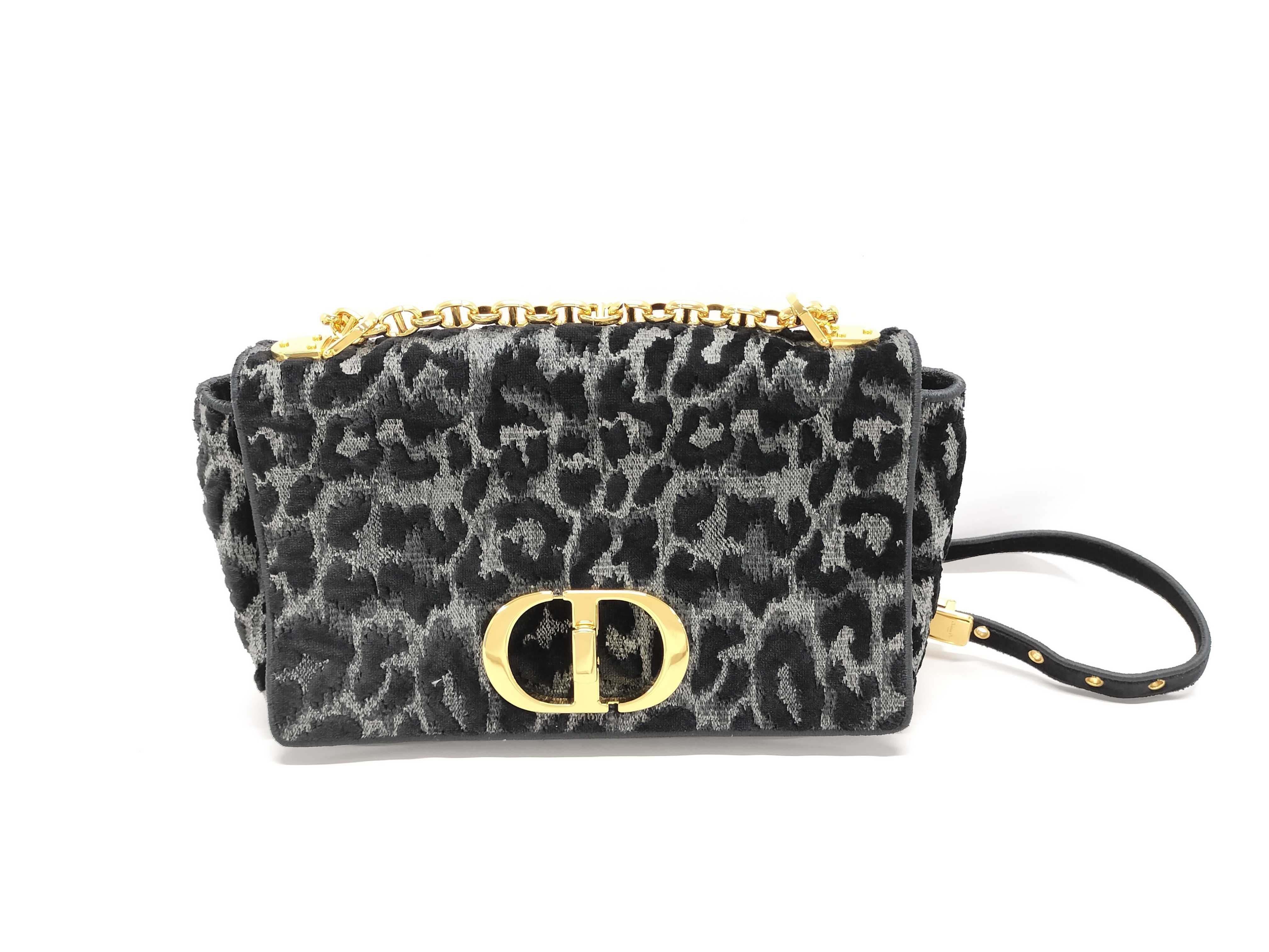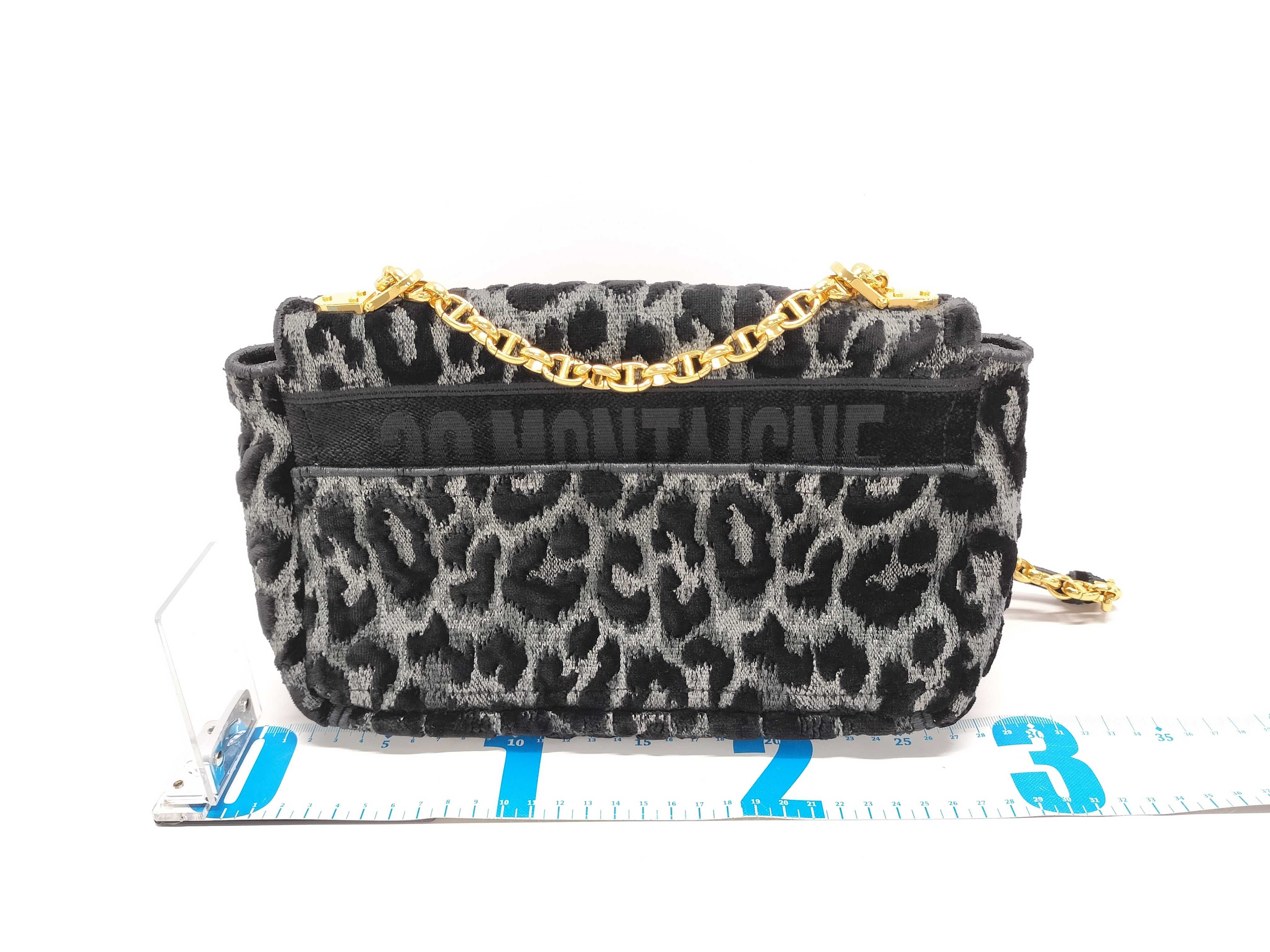 (F_0460)Dior カロ レオパード グレー ブラック ゴールド金具 ベルベット キャンバス ショルダーバッグ ショルダーバッグ