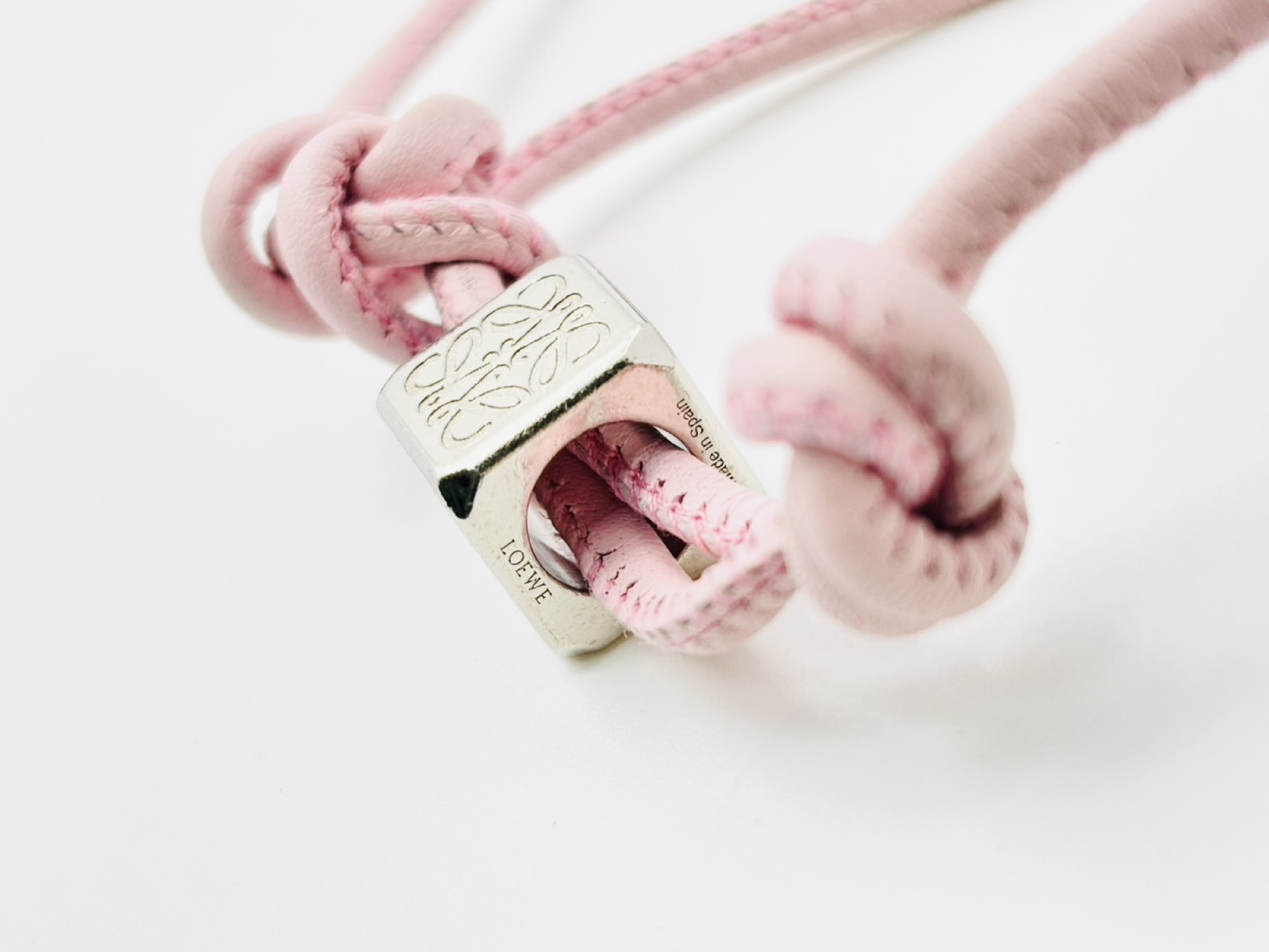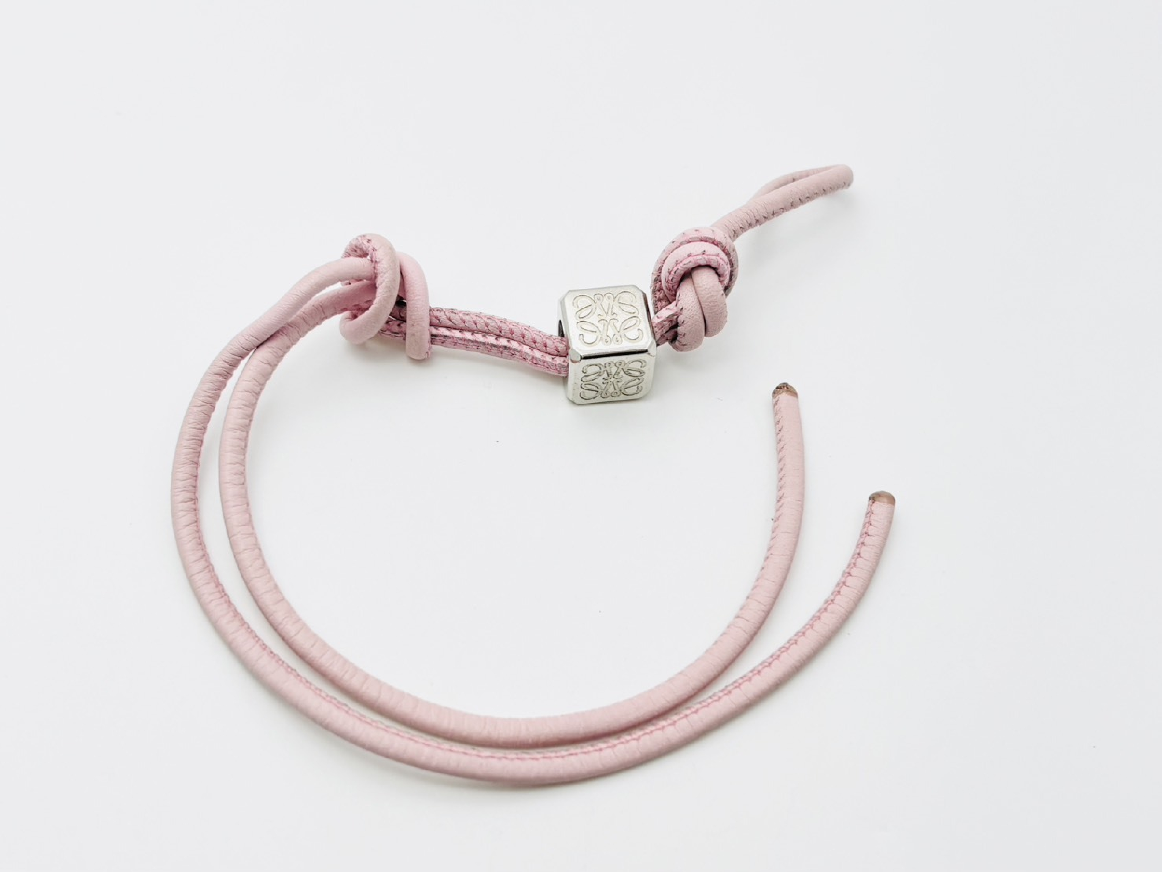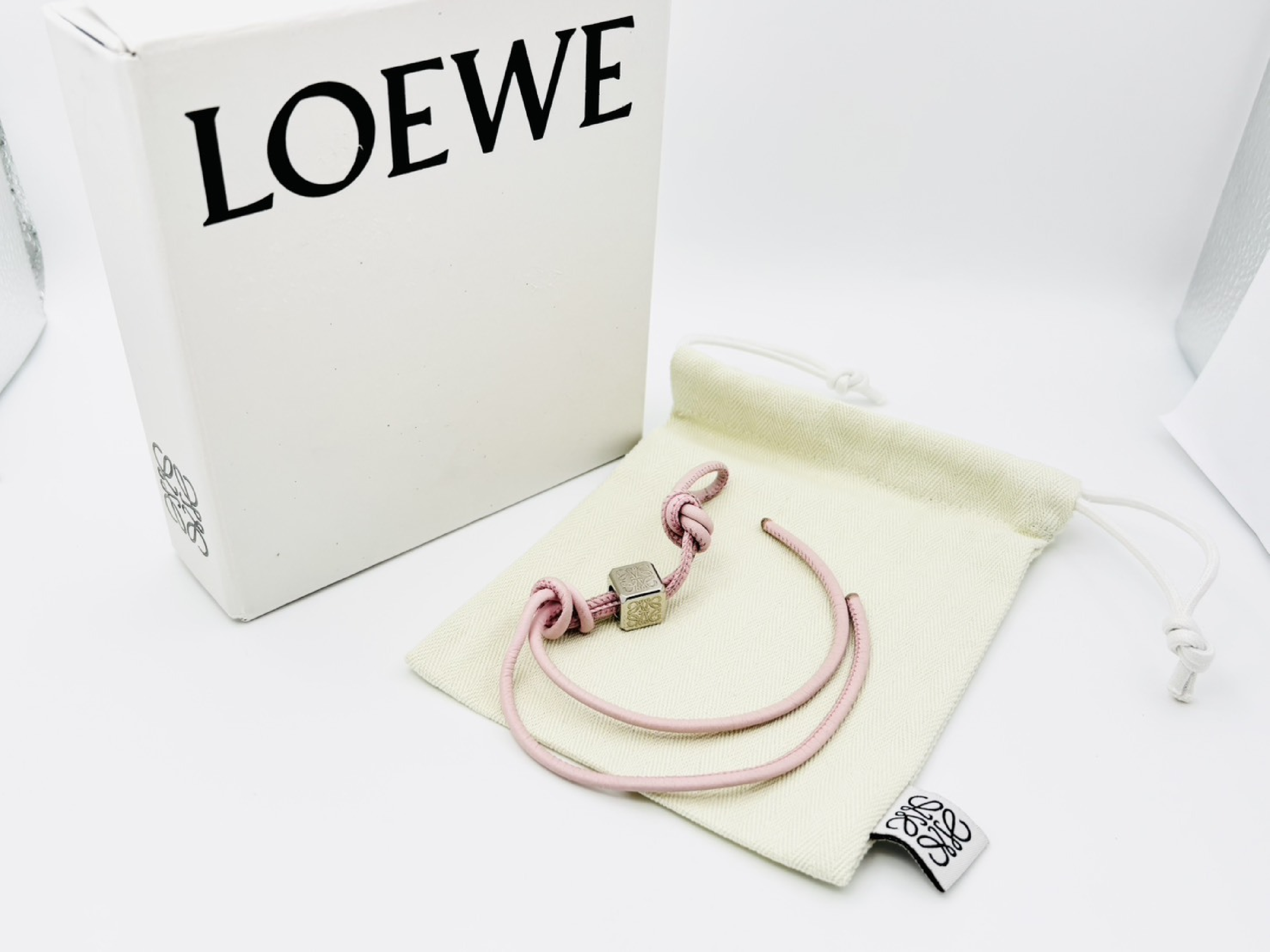(H_0243)LOEWE ロエベ アナグラム ダイスキューブ レザーチャーム ストラップ ピンク×シルバー その他小物