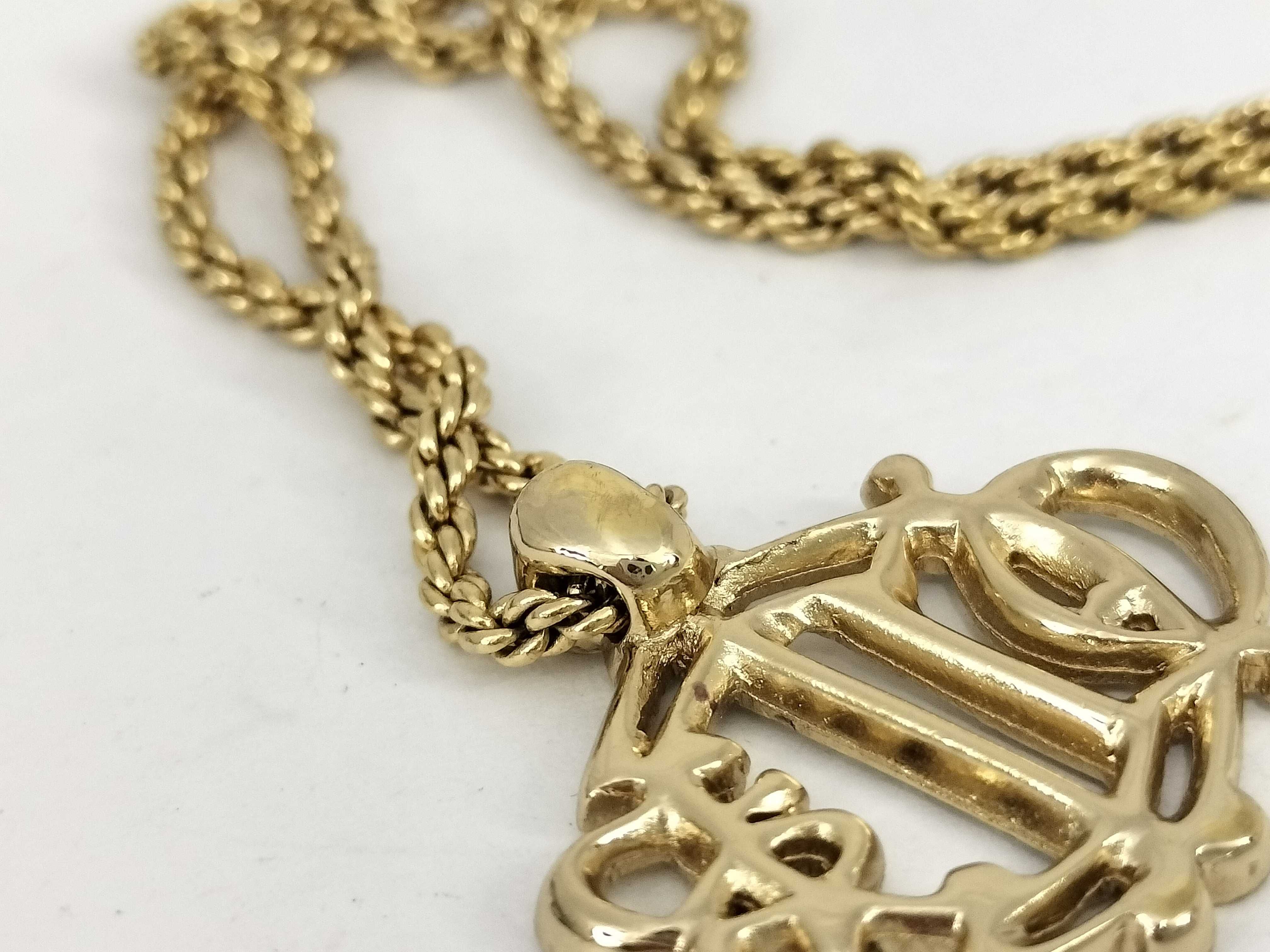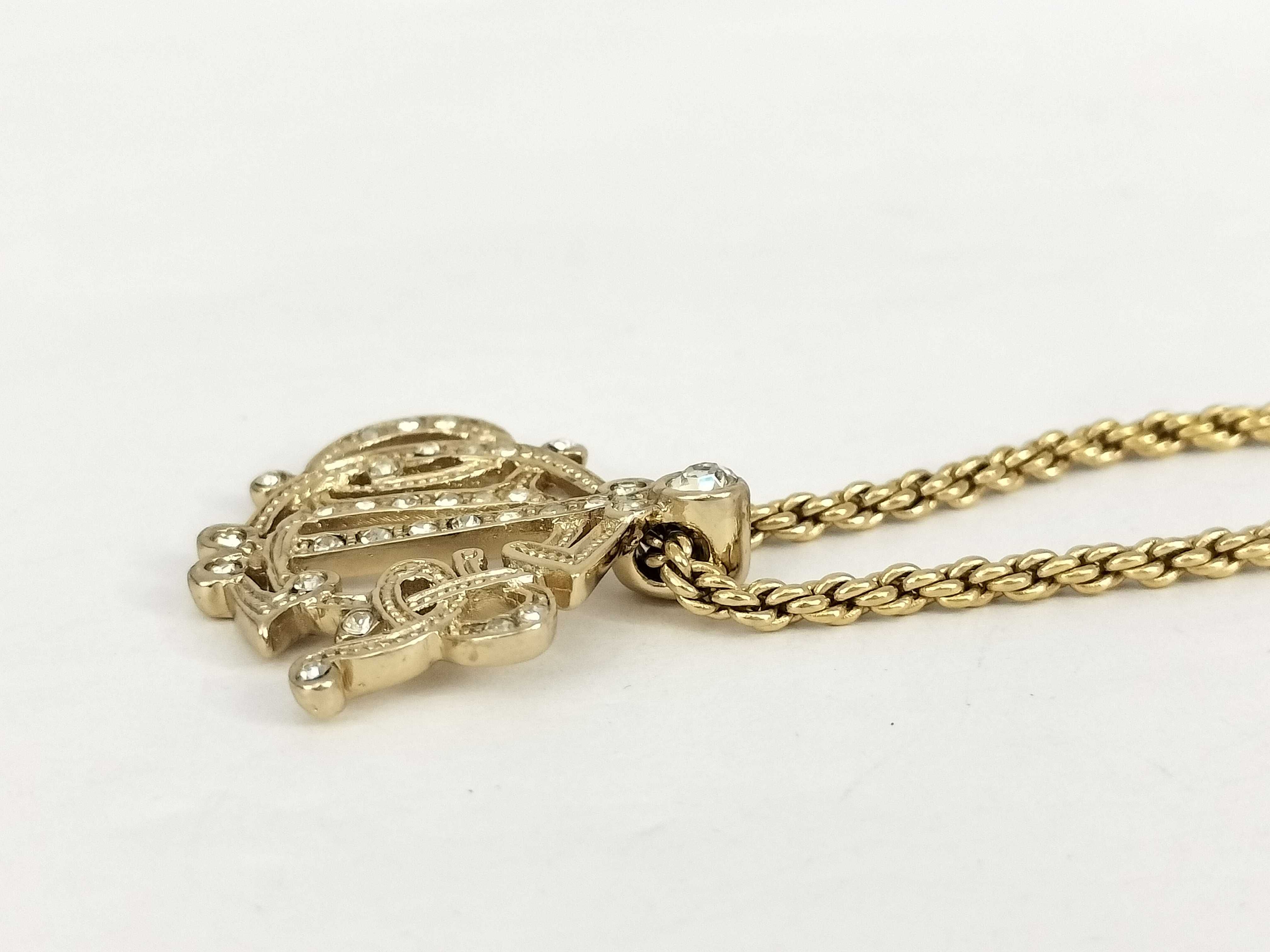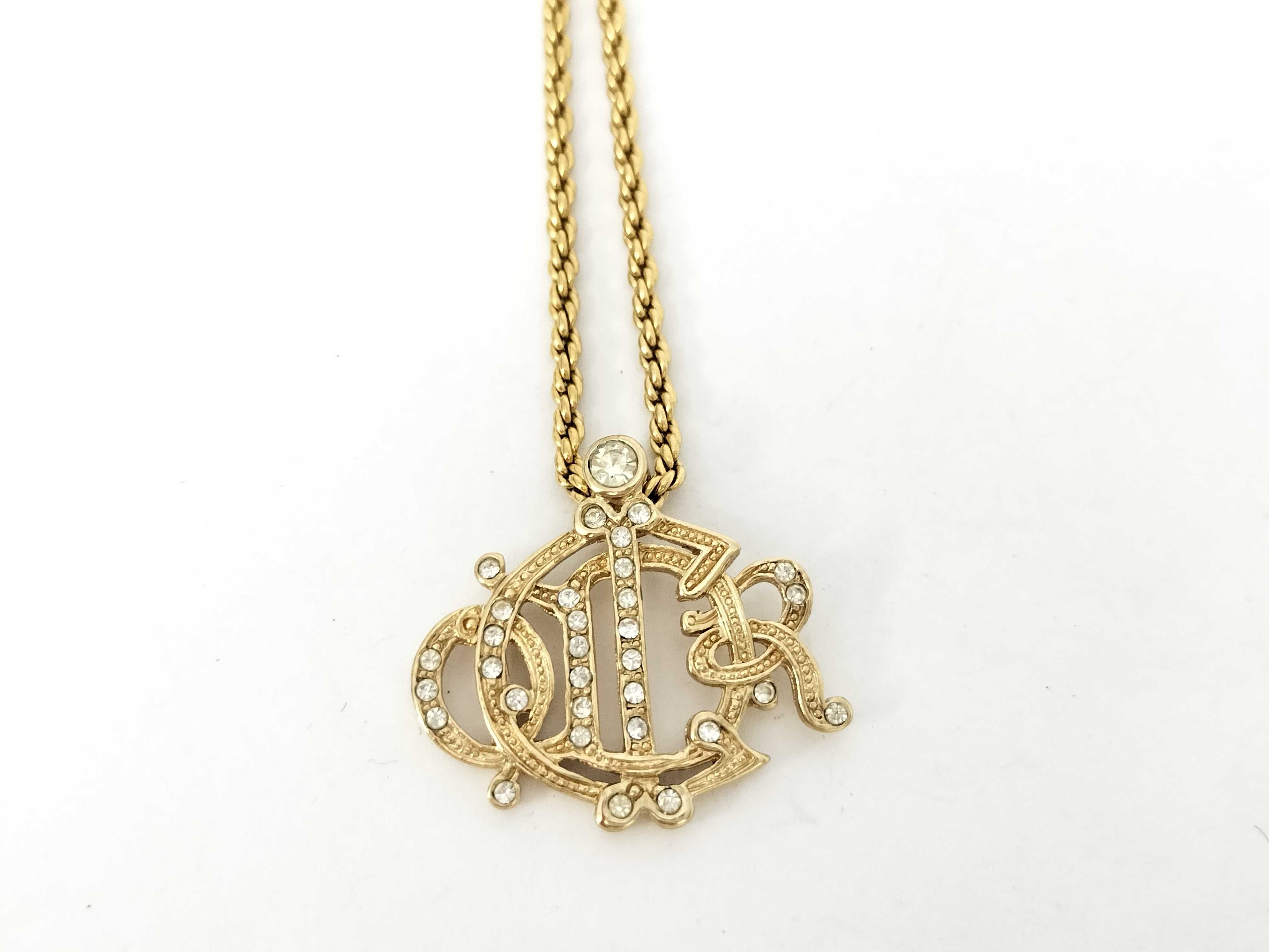 (H_0524)Dior クリスチャンディオール/ネックレス/エンブレム/旧ロゴ/Dior/ラインストーン/GP/ゴールドカラー ネックレス