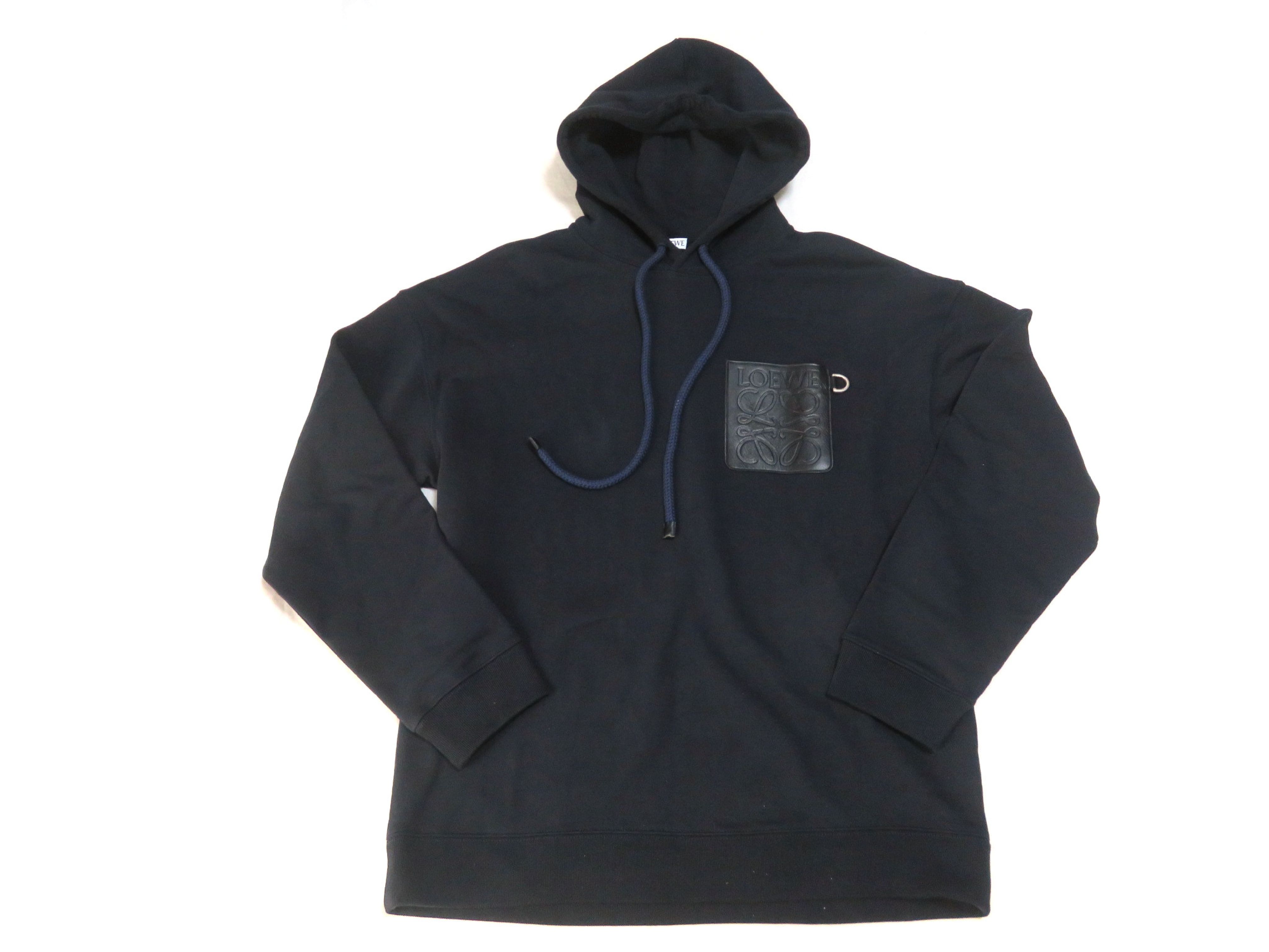 (I_0285)LOEWE ロエベ パーカー フーディ H526Y25J12 レザーパッチポケット アナグラム #M ネイビー コットン トップス