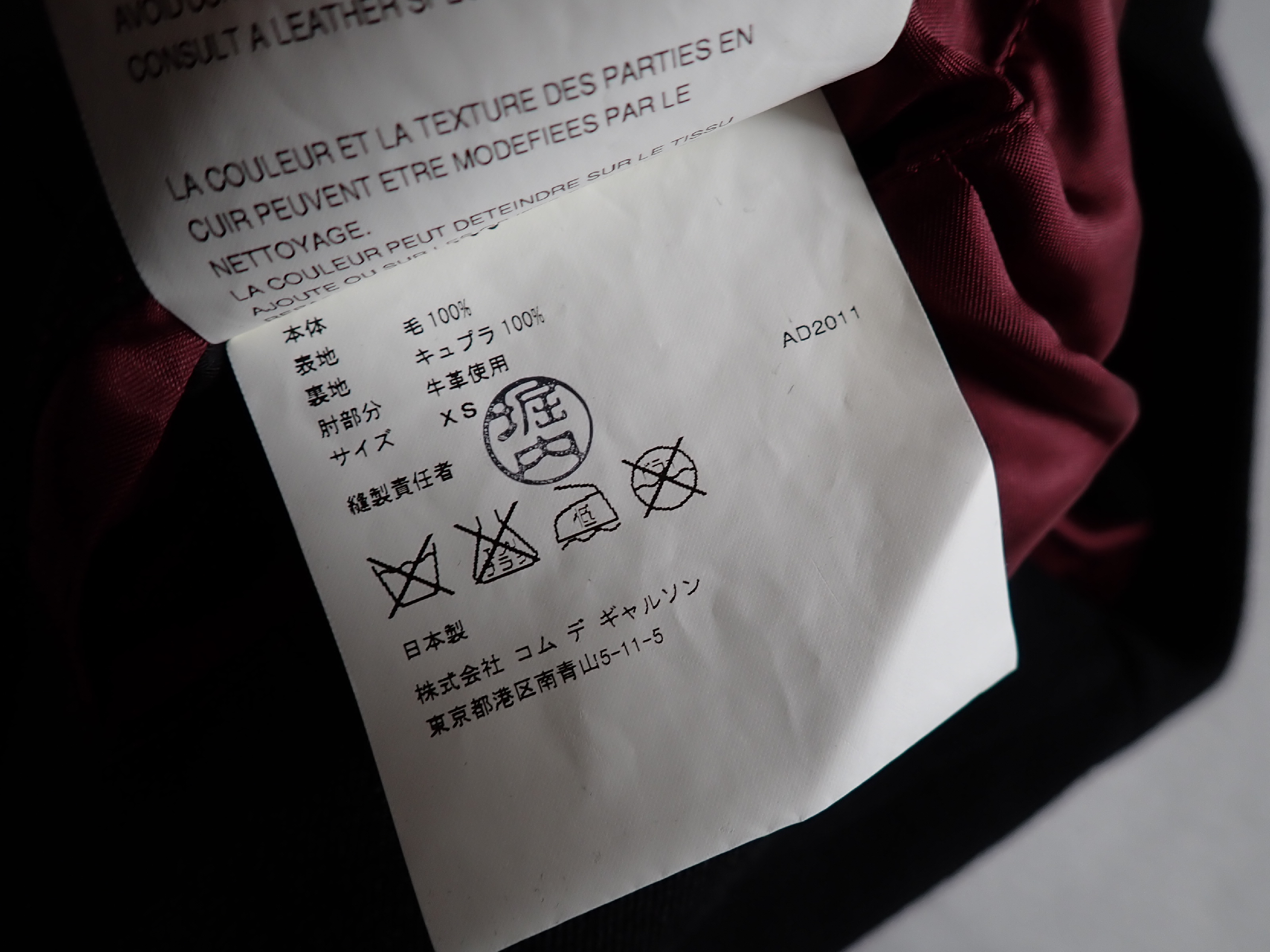 (I_0442)COMME des GARCONS 【AD2011】ジュンヤワタナベ コムデギャルソン レザーパッチ テーラードジャケット JUNYA WATANABE COMME des GARCONS XS ジャケット