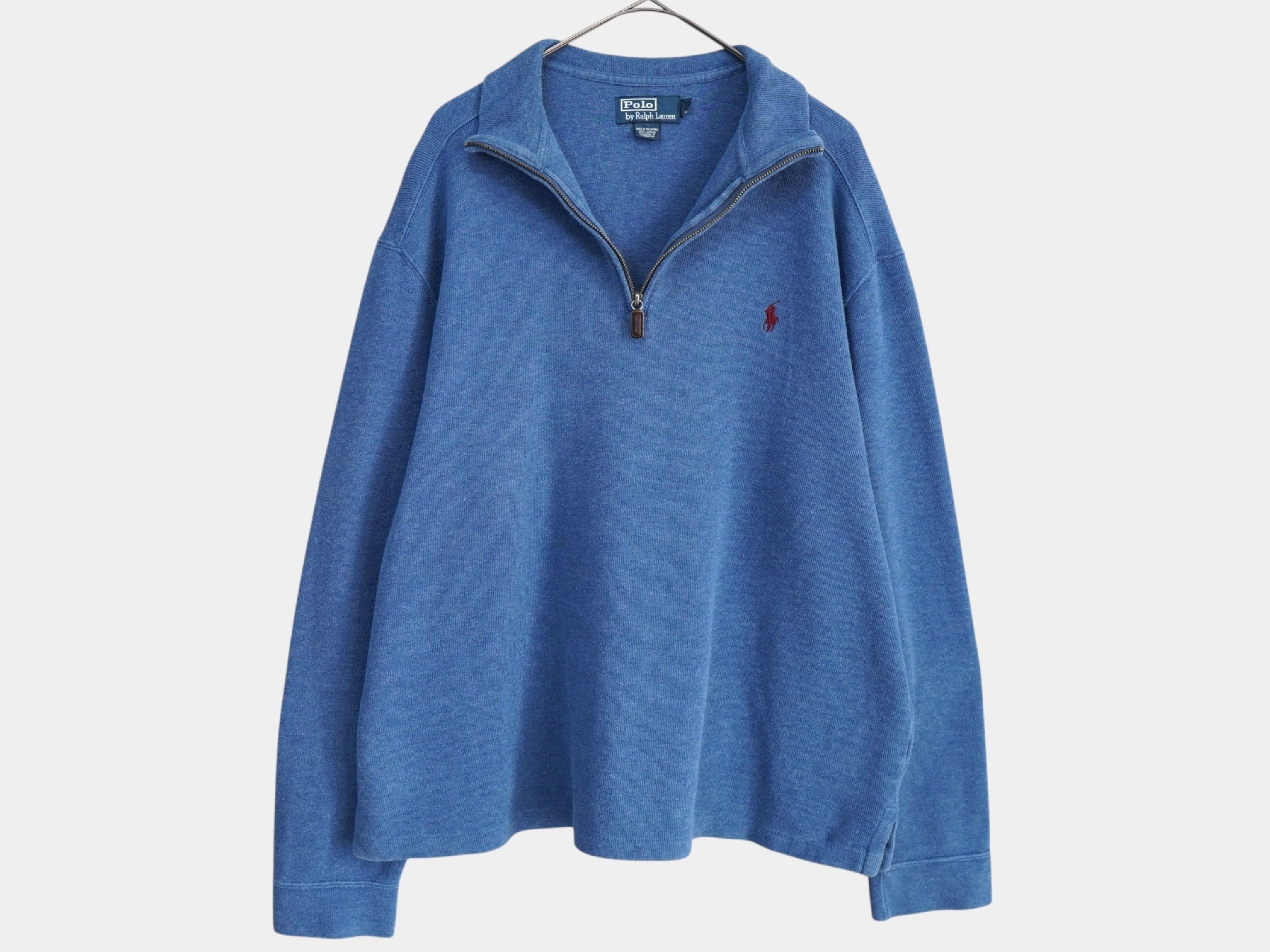 (I_0491)ポロ ラルフローレン ロゴ ハーフジップ スウェット ブルー XLサイズ トップス