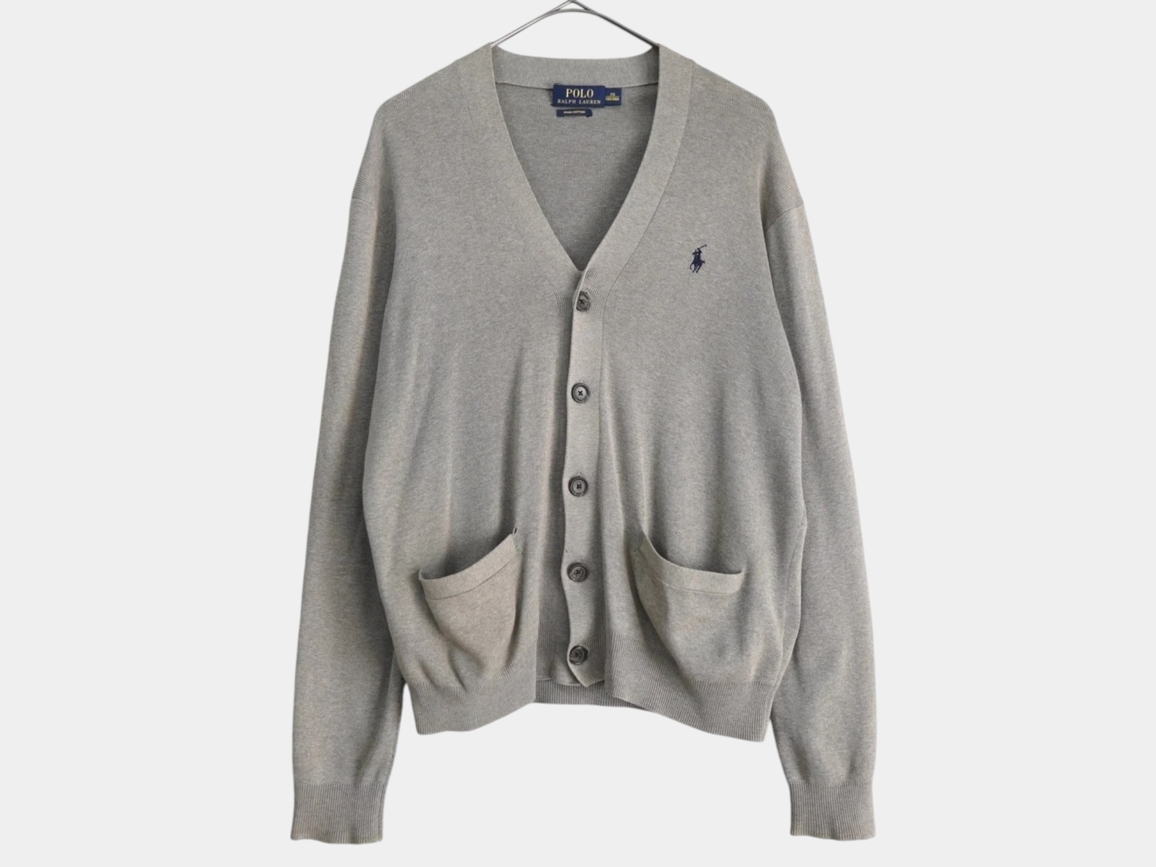 (I_0519)POLO by Ralph Lauren ポロ ラルフローレン ロゴ 刺繍 グレー XSサイズ カーディガン
