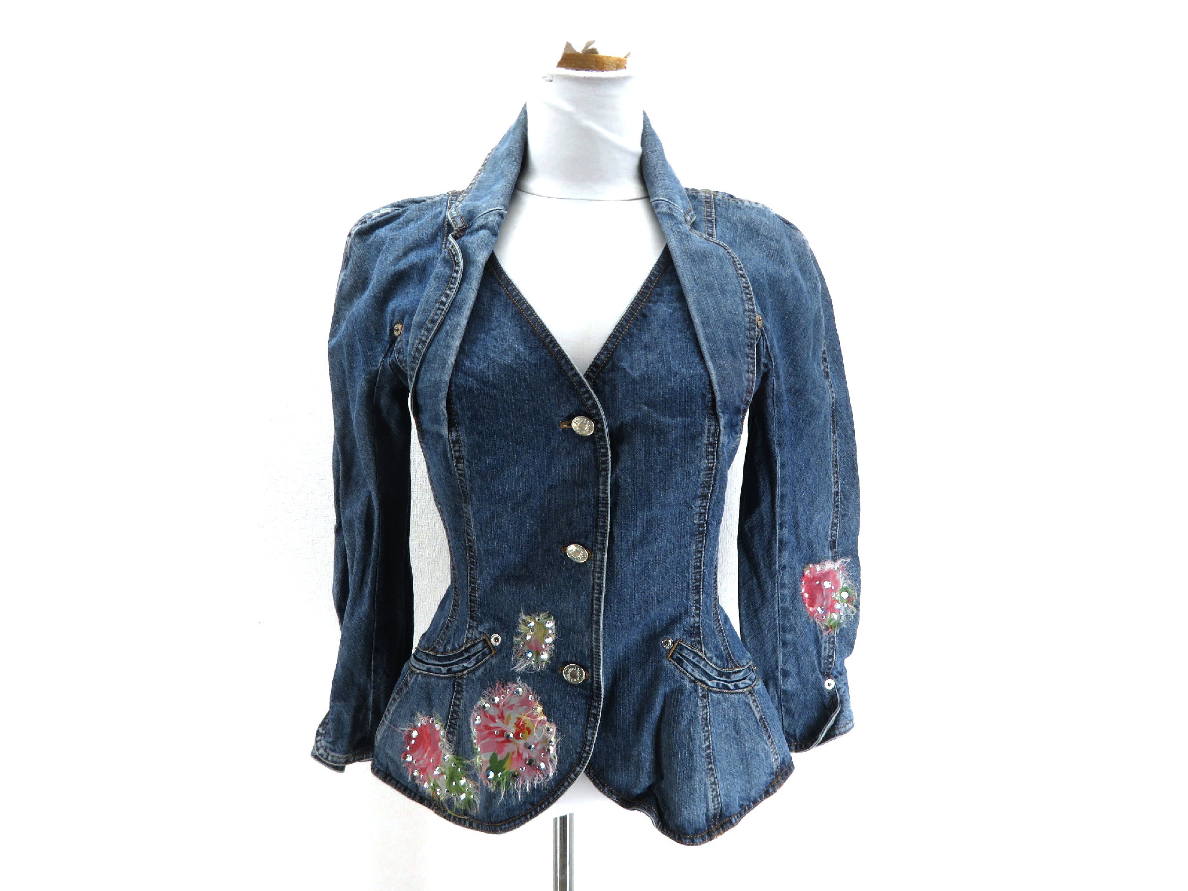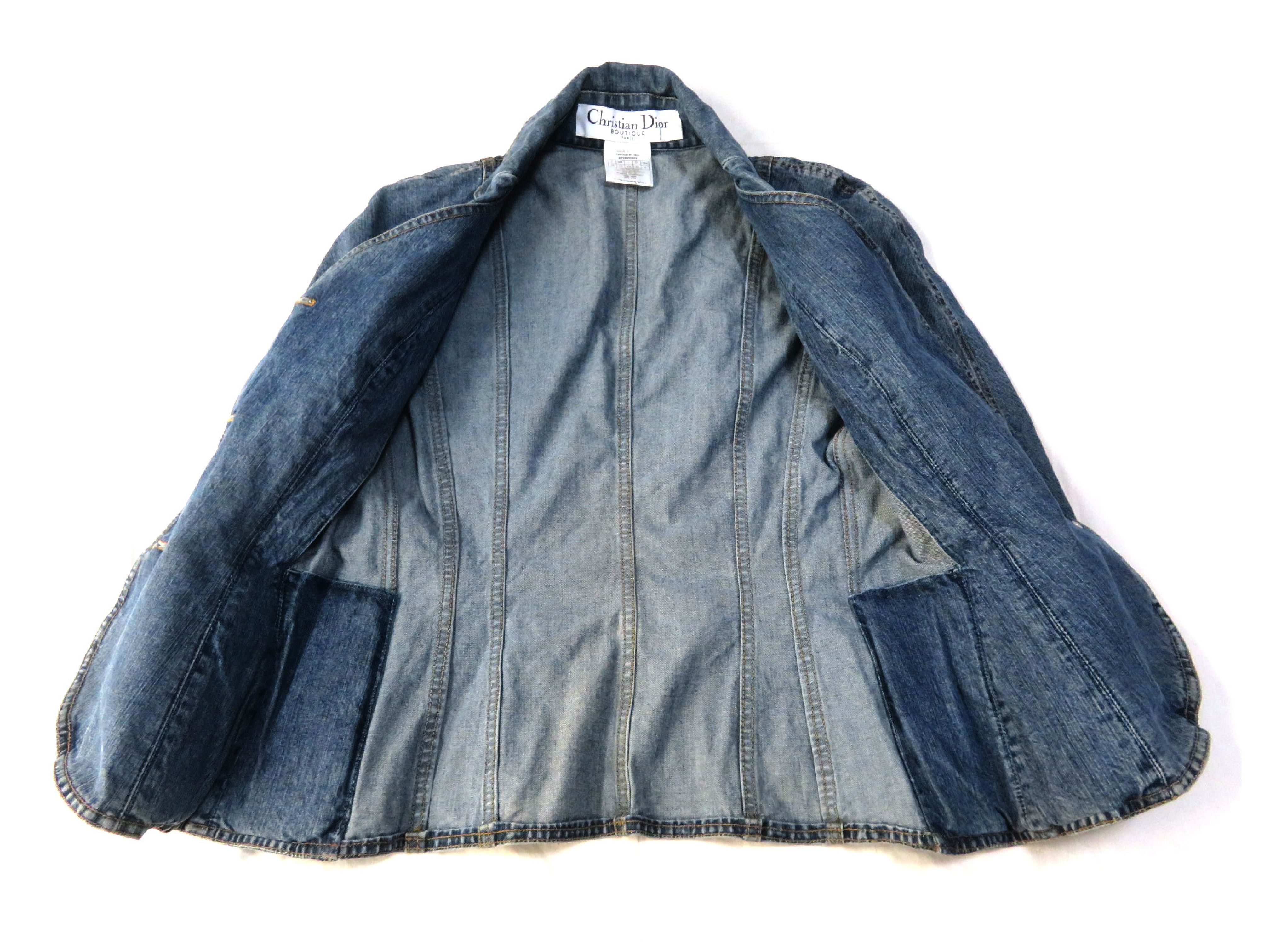 (I_0521)Dior クリスチャンディオール ガリアーノ期 デニムジャケット 花 ビジュー刺繍 ジャケット