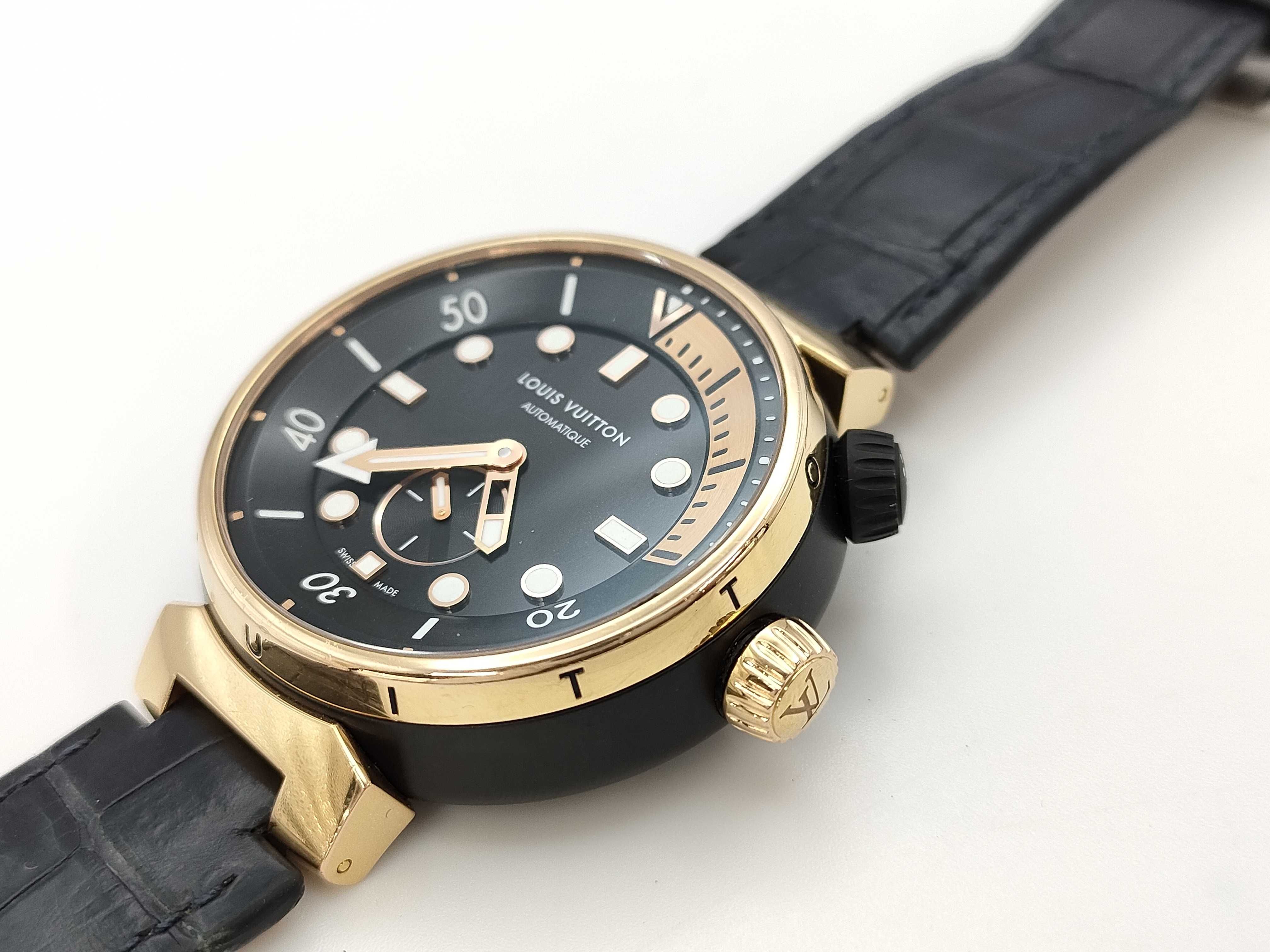 (L_0004)▼LOUIS VUITTON タンブール ストリート ダイバー QA123 UG6490 オートマ 黒文字盤 メンズ腕時計