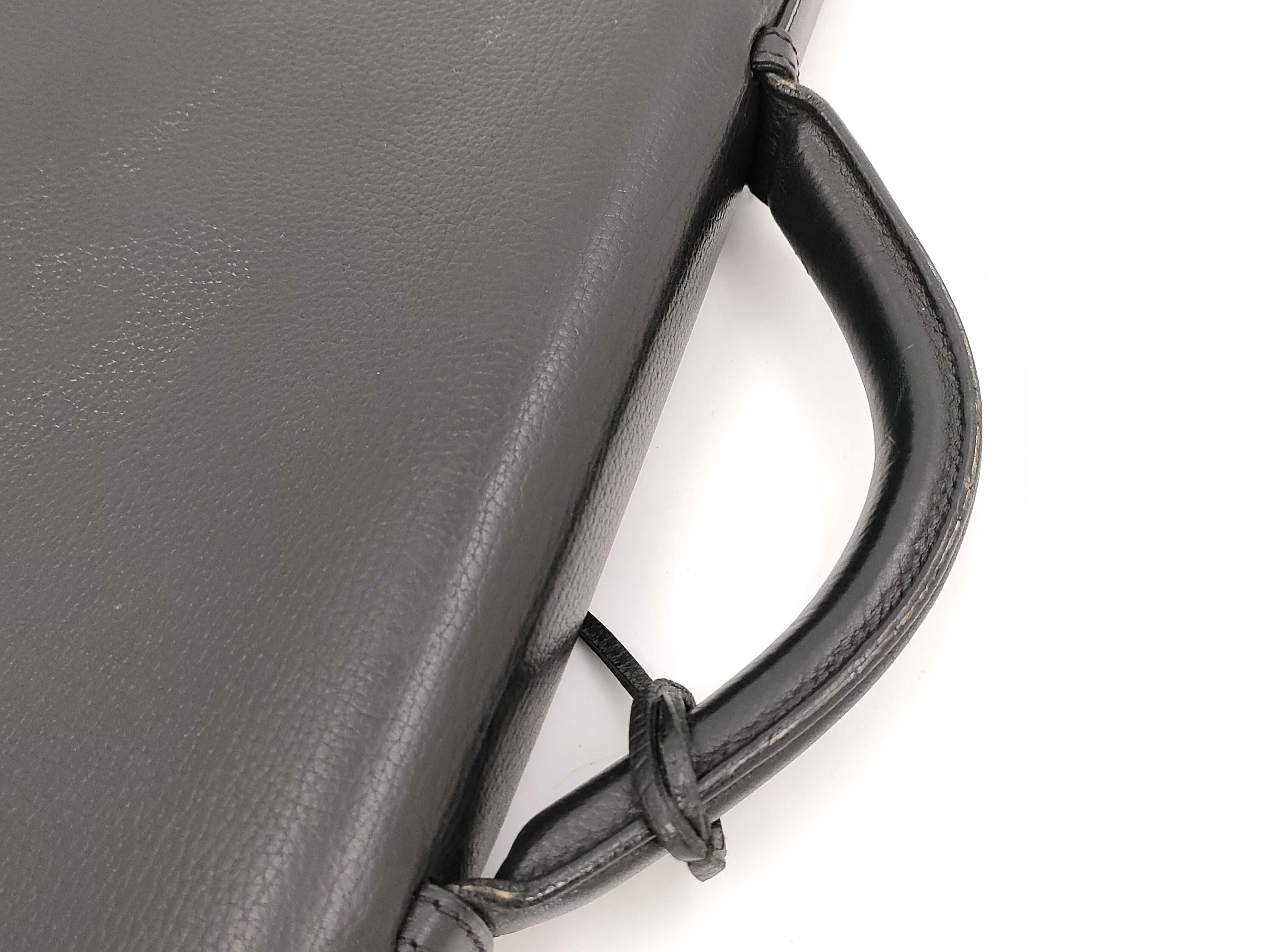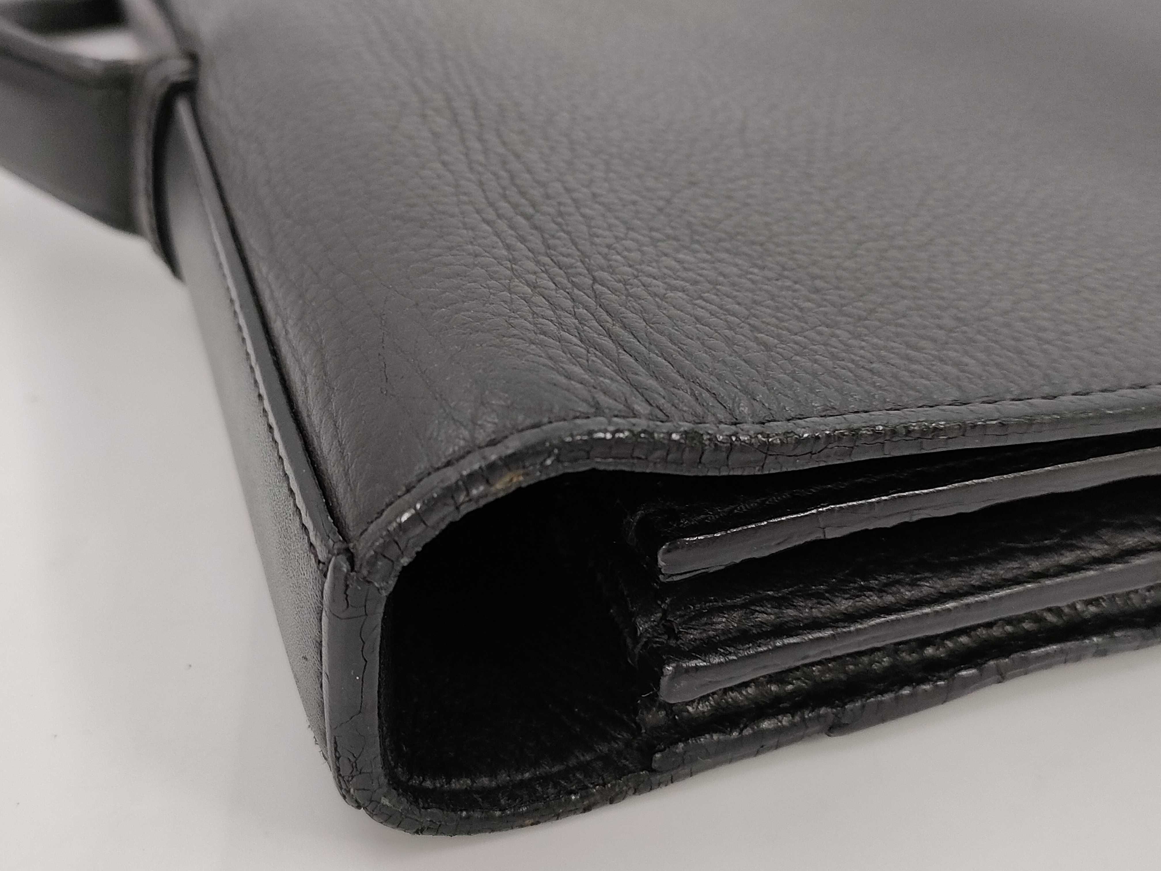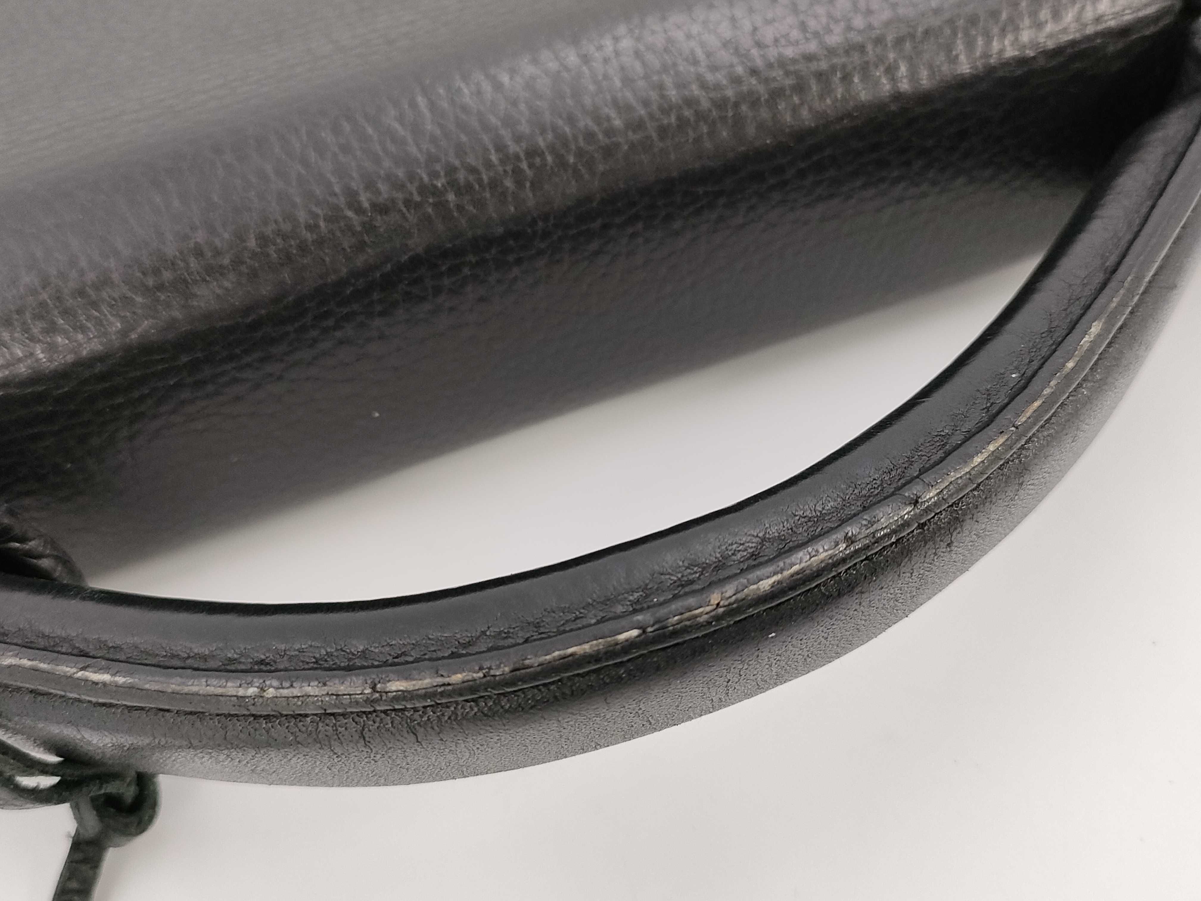 全体擦れ押し跡(中) 型崩れ(中) 角縁擦れコバヒビ割れ(中) 金具擦れ傷くすみ(中) 持ち手擦れ薄ヒビ(中) コバひび割れ(中) フラップ縁コバヒビ割れ剥がれ(中) 内側擦れ汚れしわ(中) 間口縁コバヒビ(中) 内側擦れ汚れ(中) 保管臭(小)【付属品