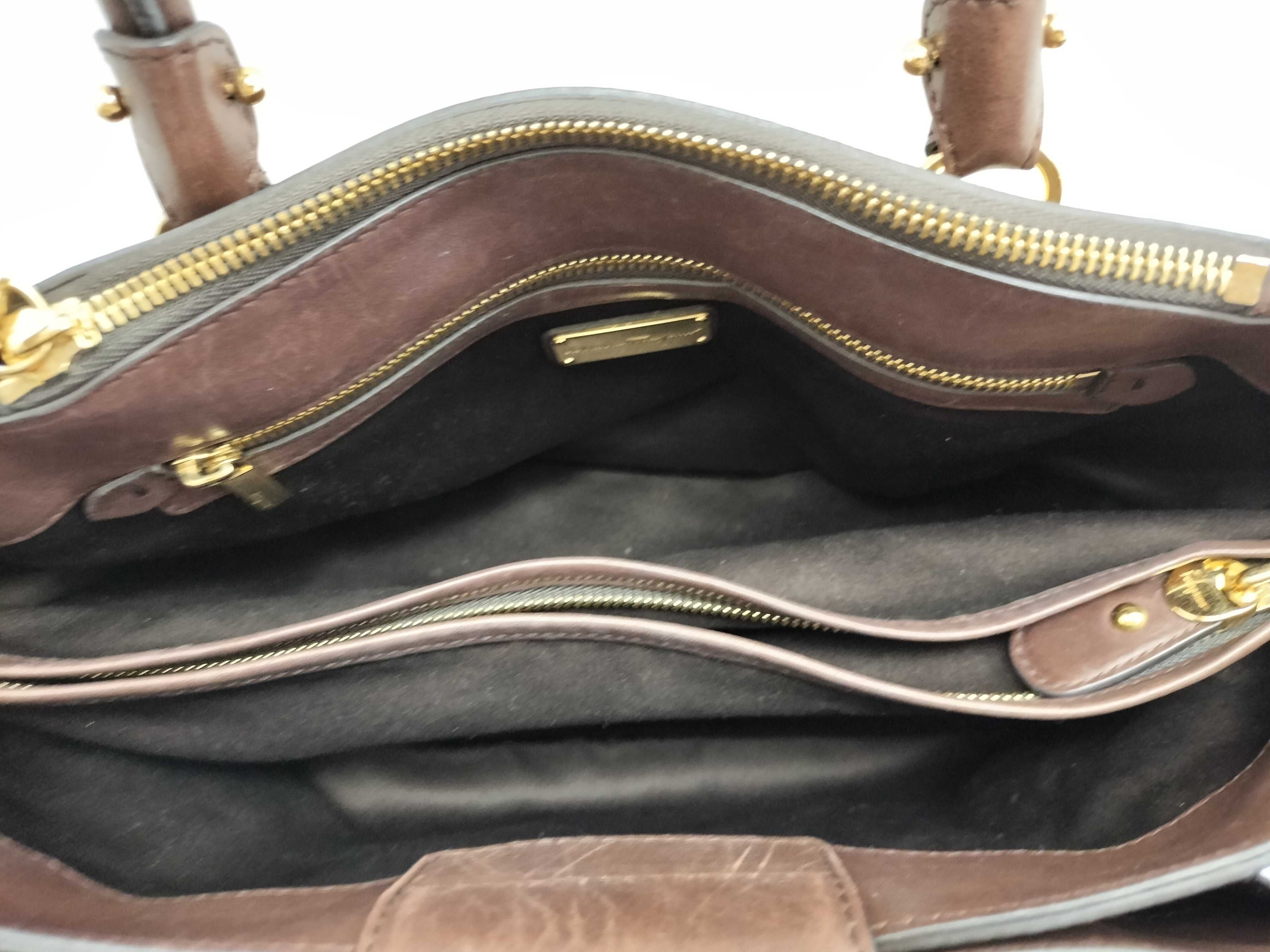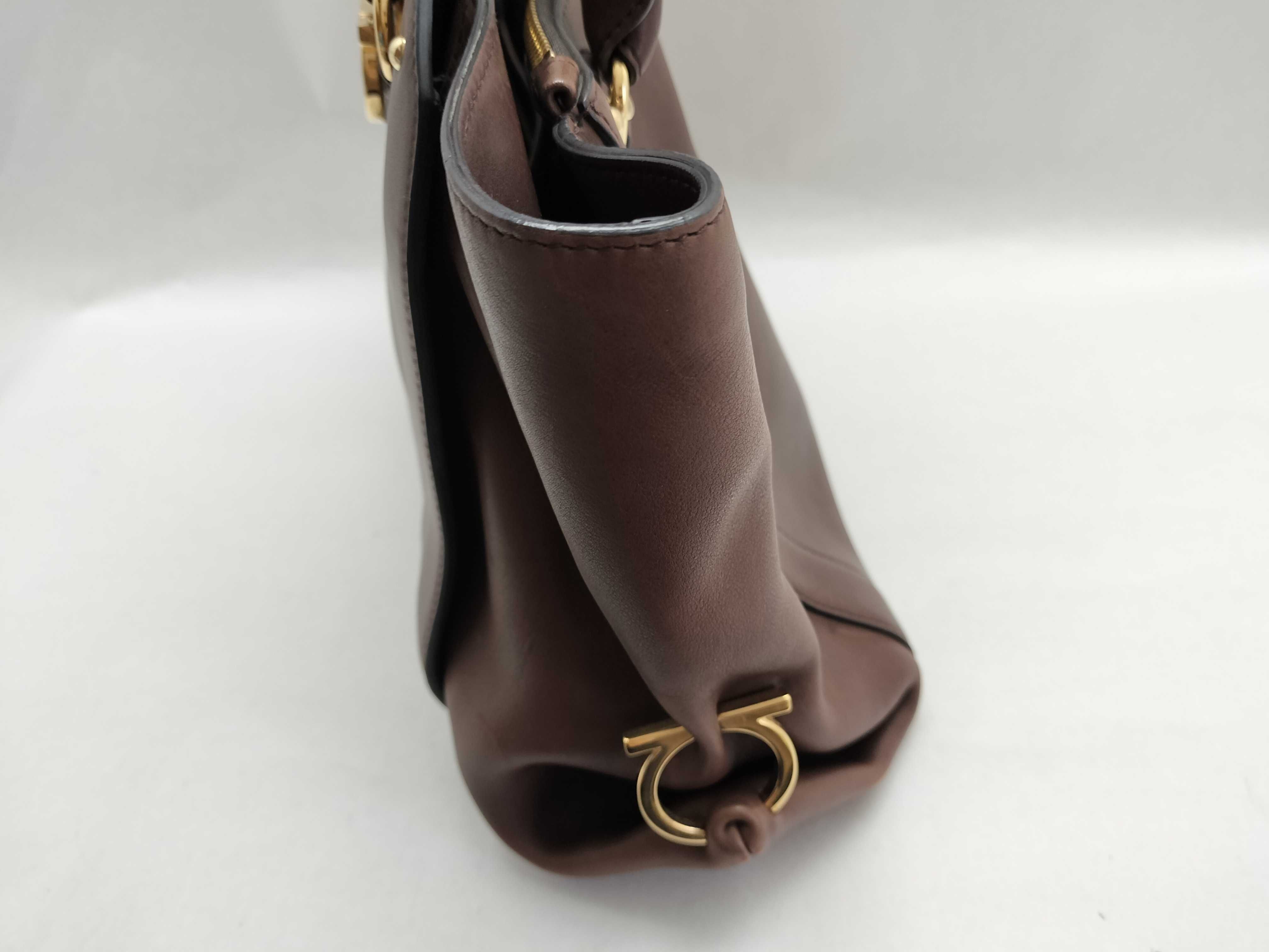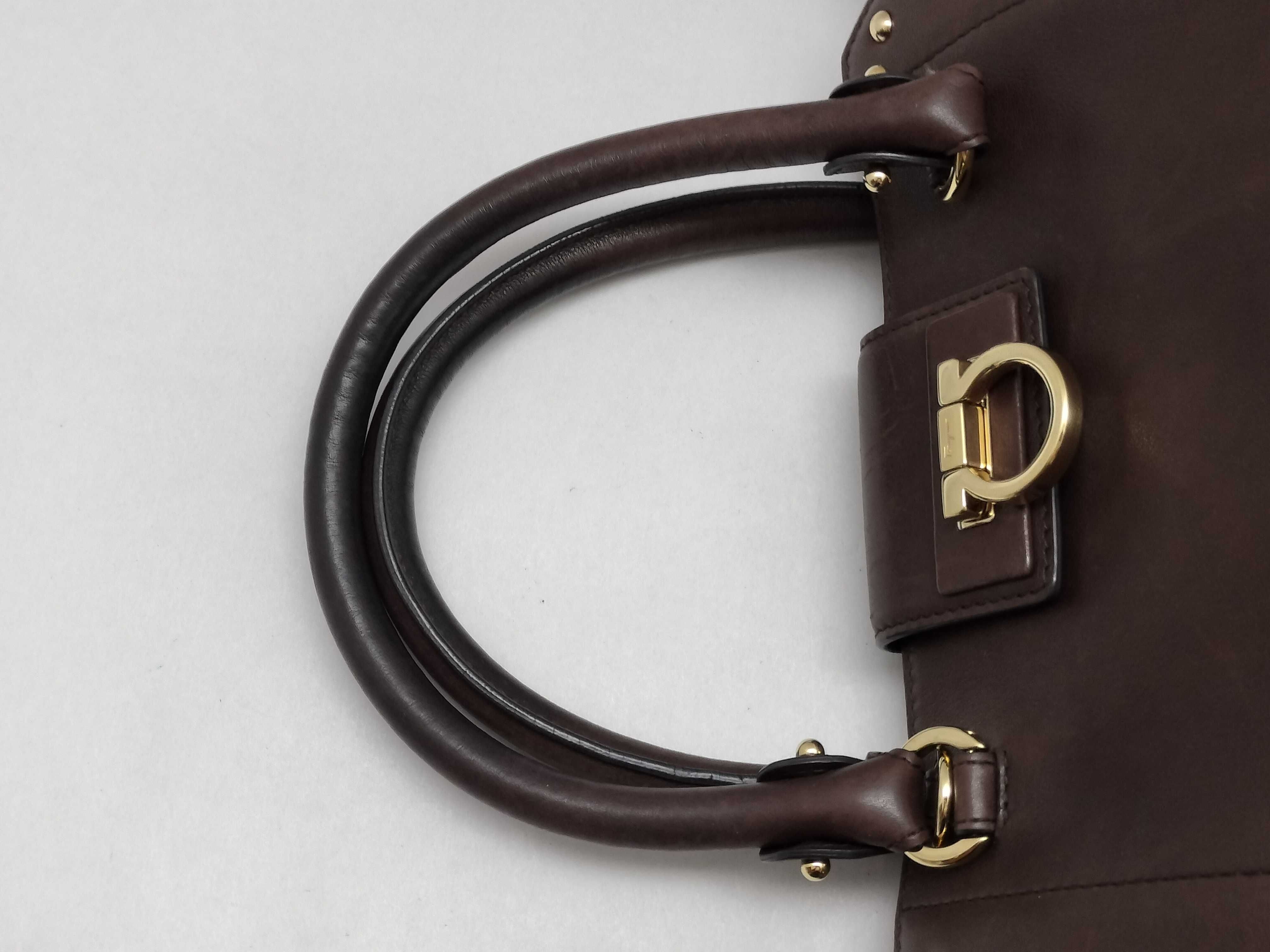(G_0104)Salvatore Ferragamo SG-Ferragamo Gancini Top Handle Brown Leather Bag ハンドバッグ