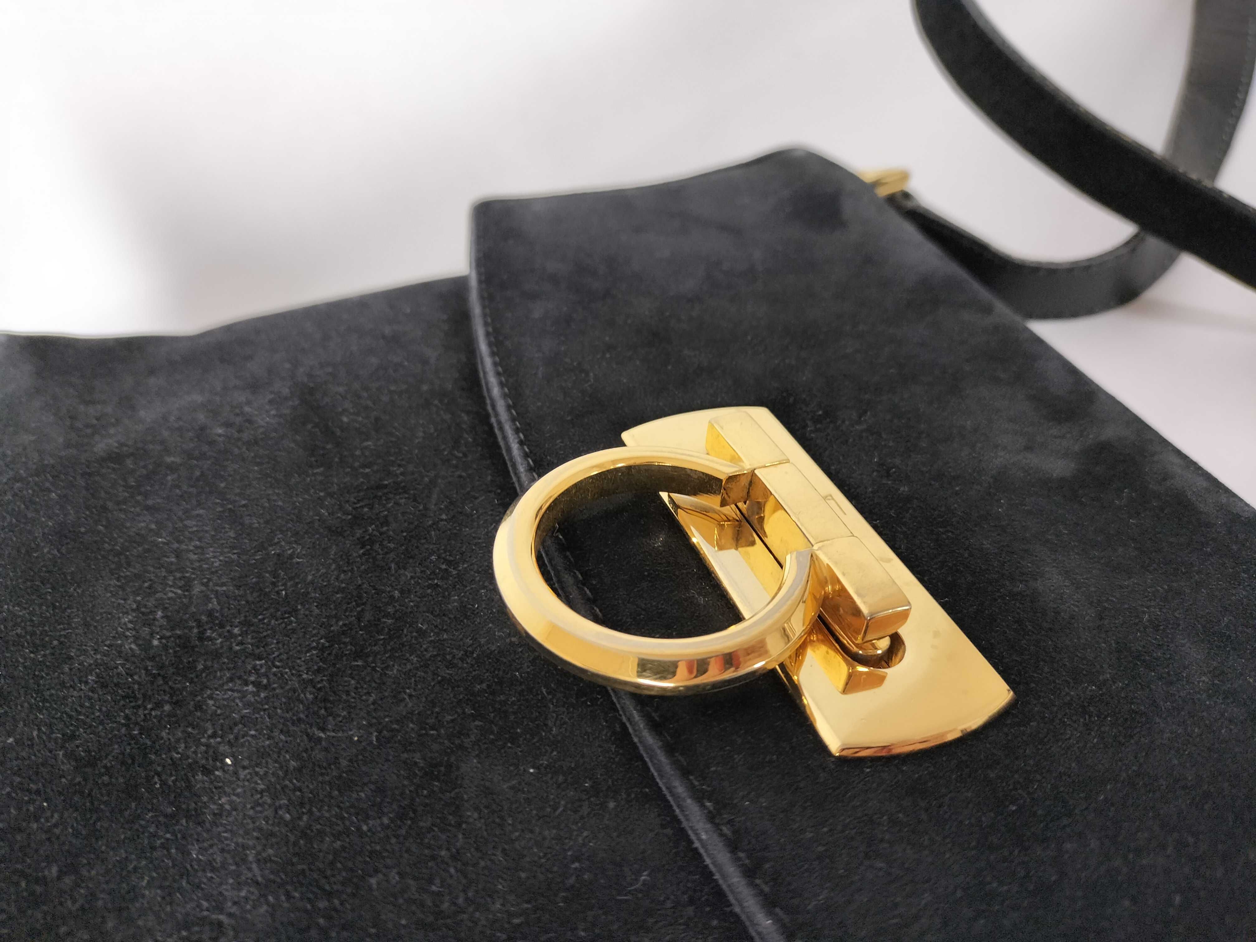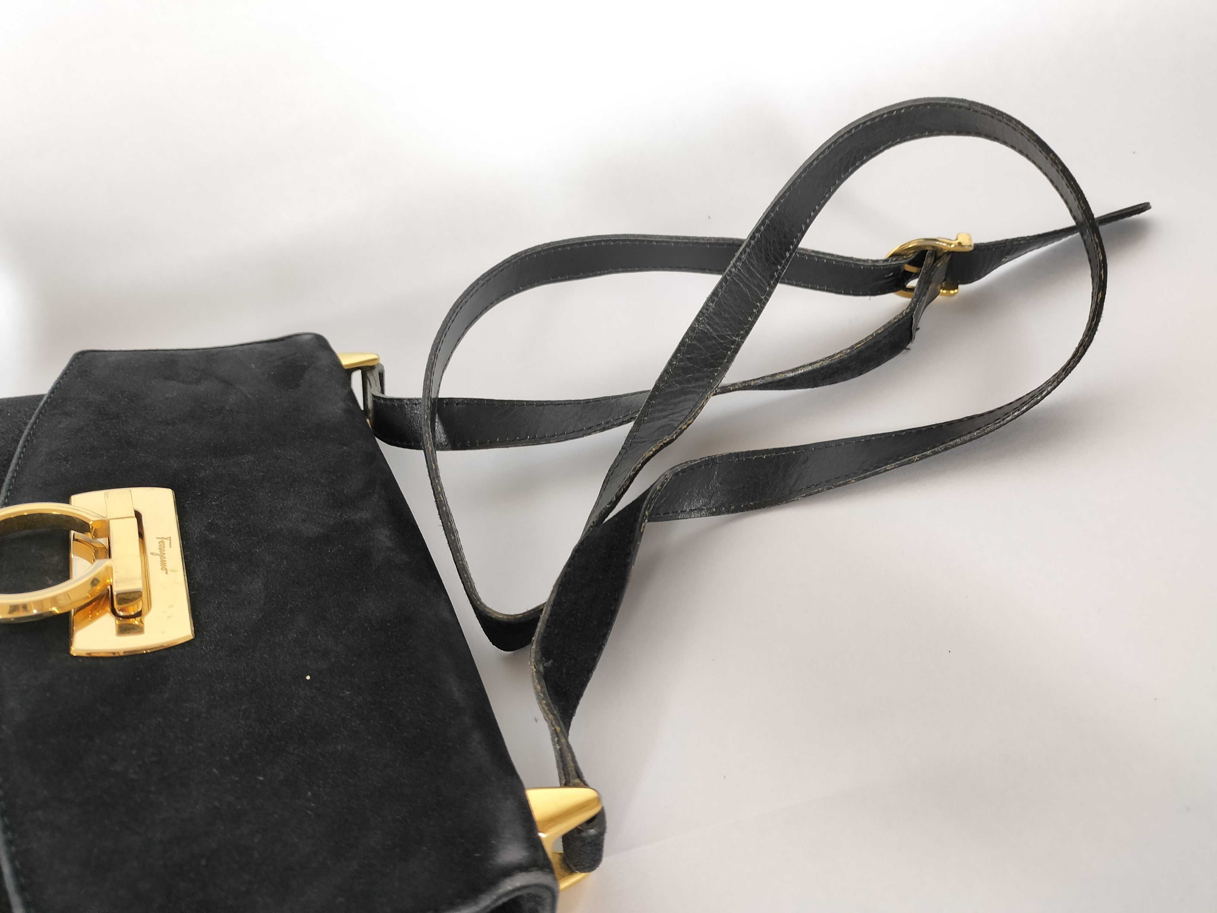 (G_0106)Salvatore Ferragamo ガンチーニ サルヴァトーレフェラガモ ガンチーニ スウェード ショルダーバッグ AN21 2692 ブラック ショルダーバッグ