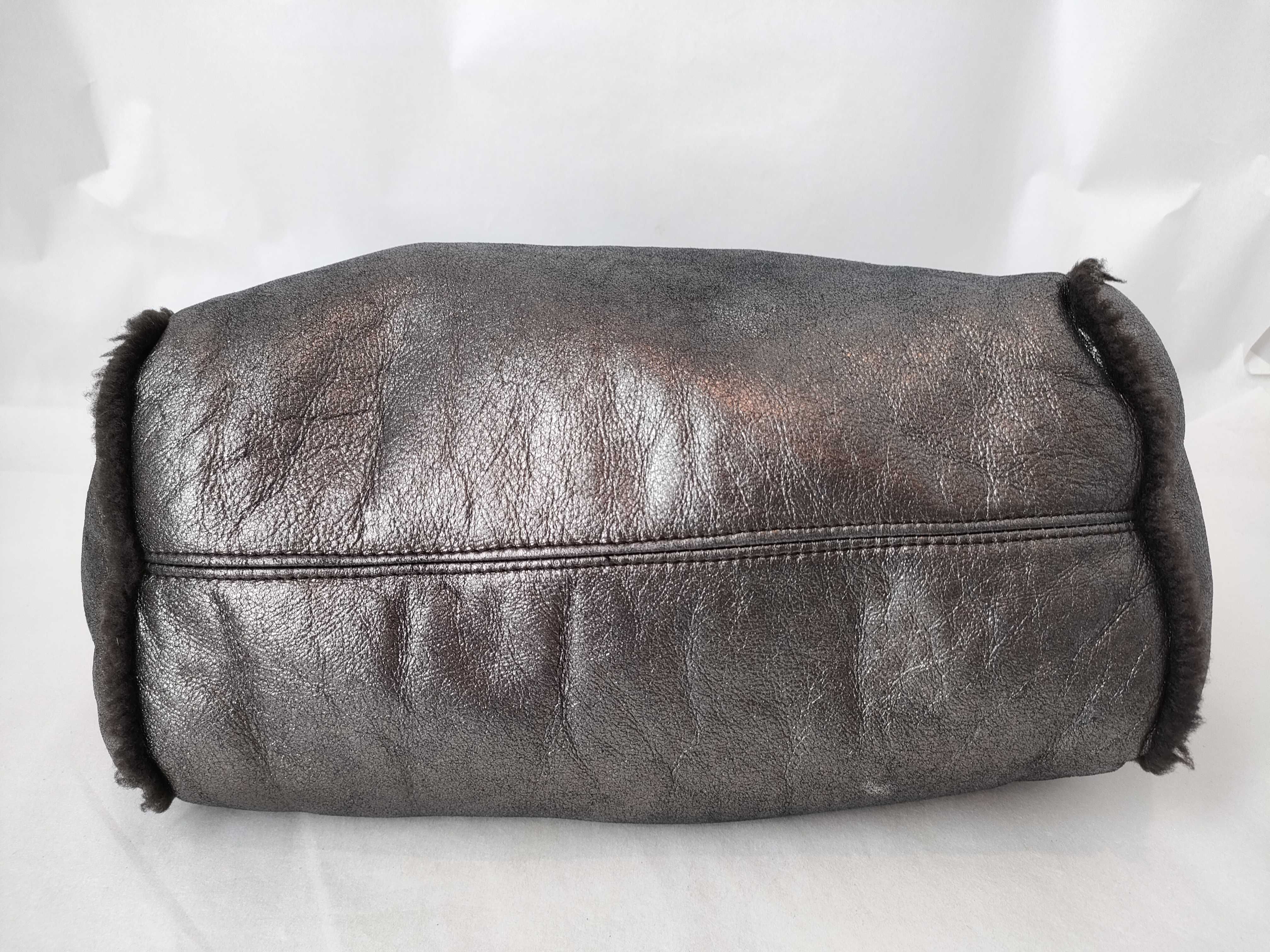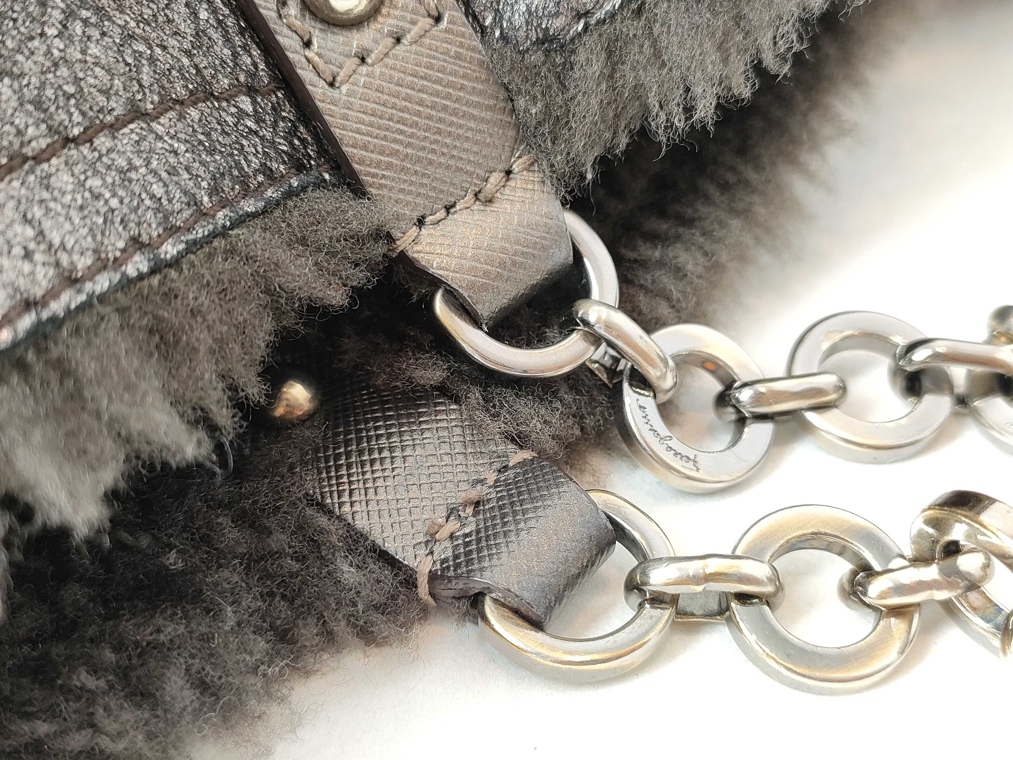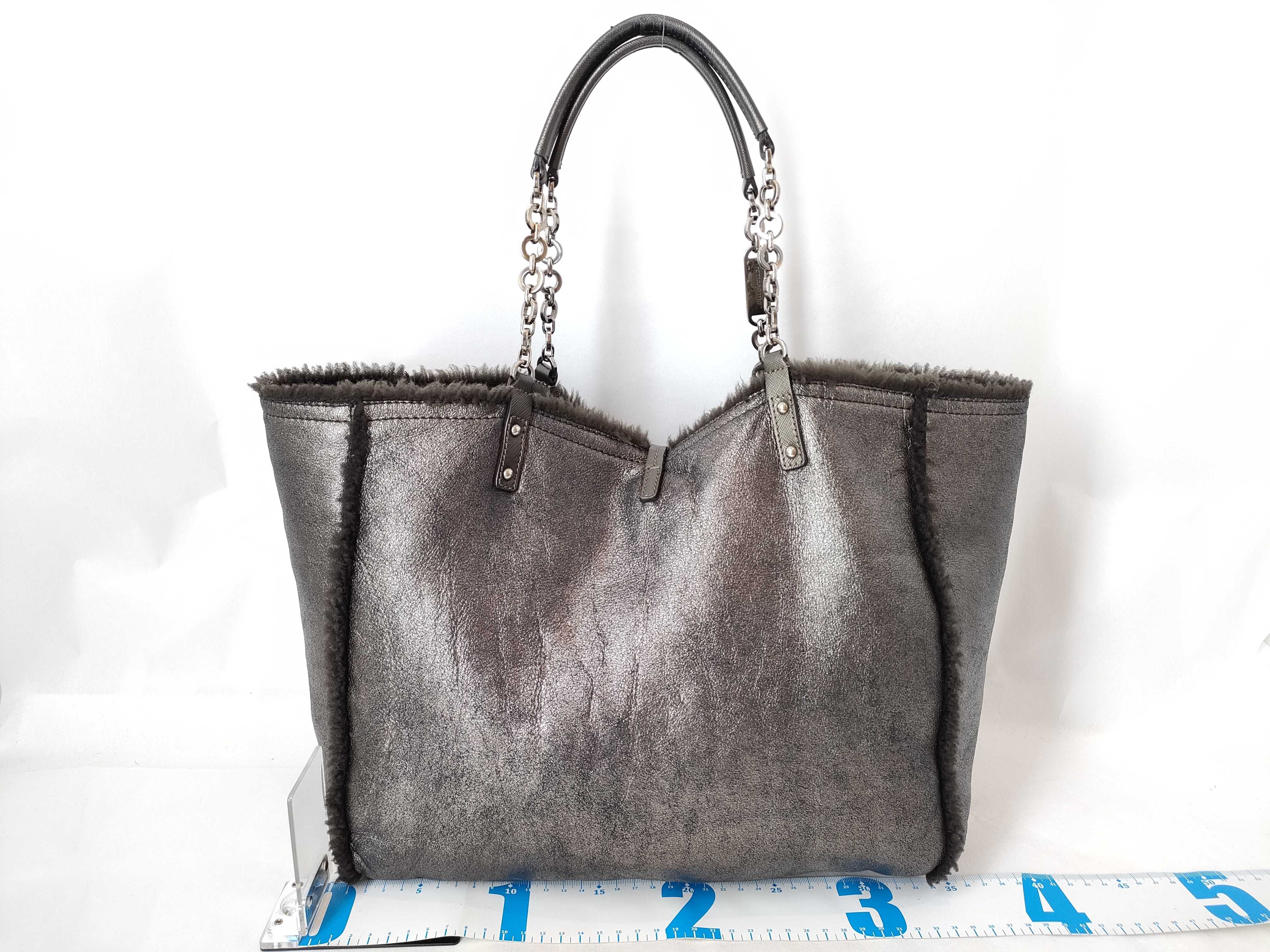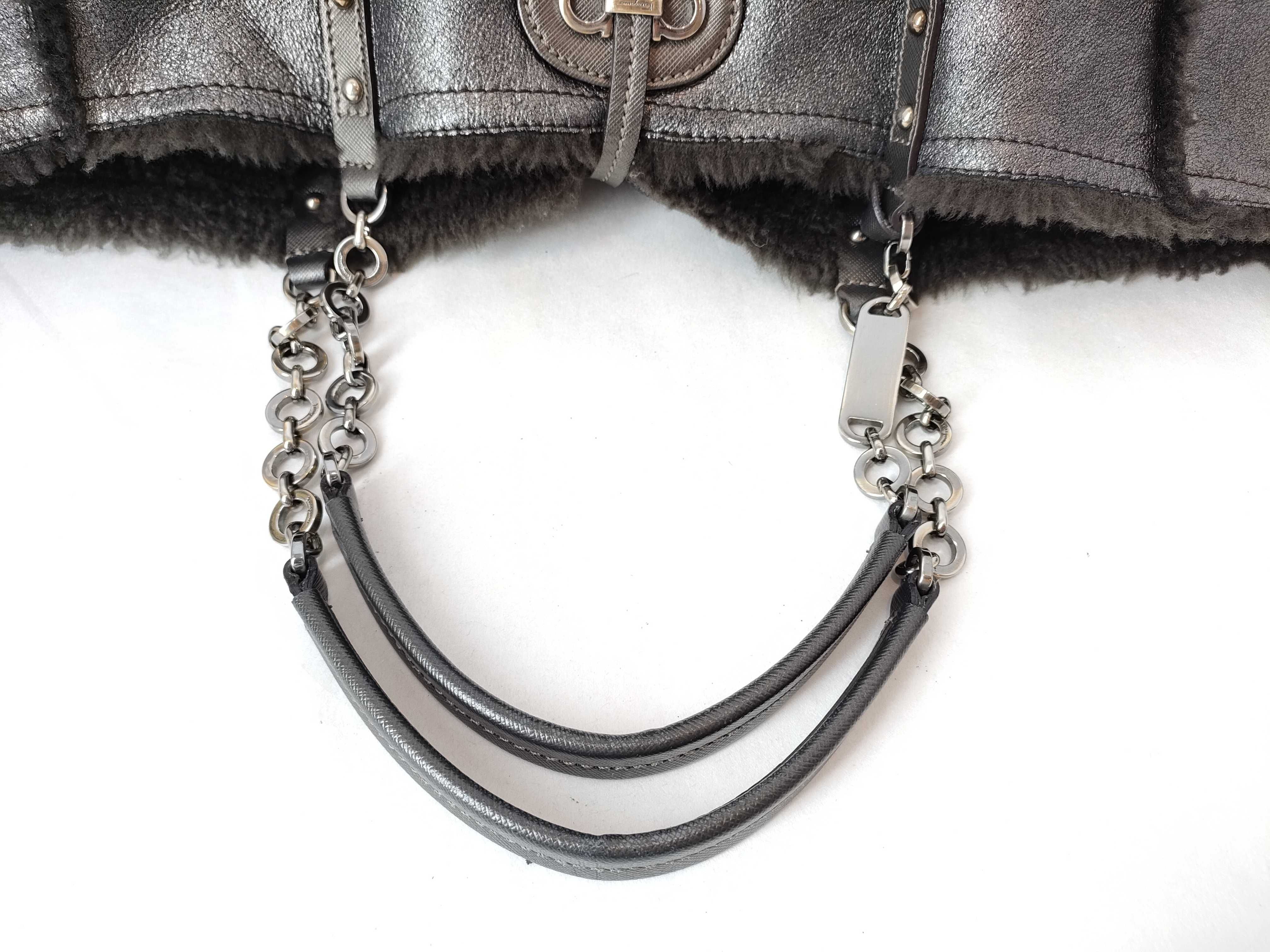 (G_0112)Salvatore Ferragamo ガンチーニ フェラガモ ダブルガンチーニ リバーシブル ファー×スエード チェーンショルダーバッグ ポーチ付き グレー トートバッグ