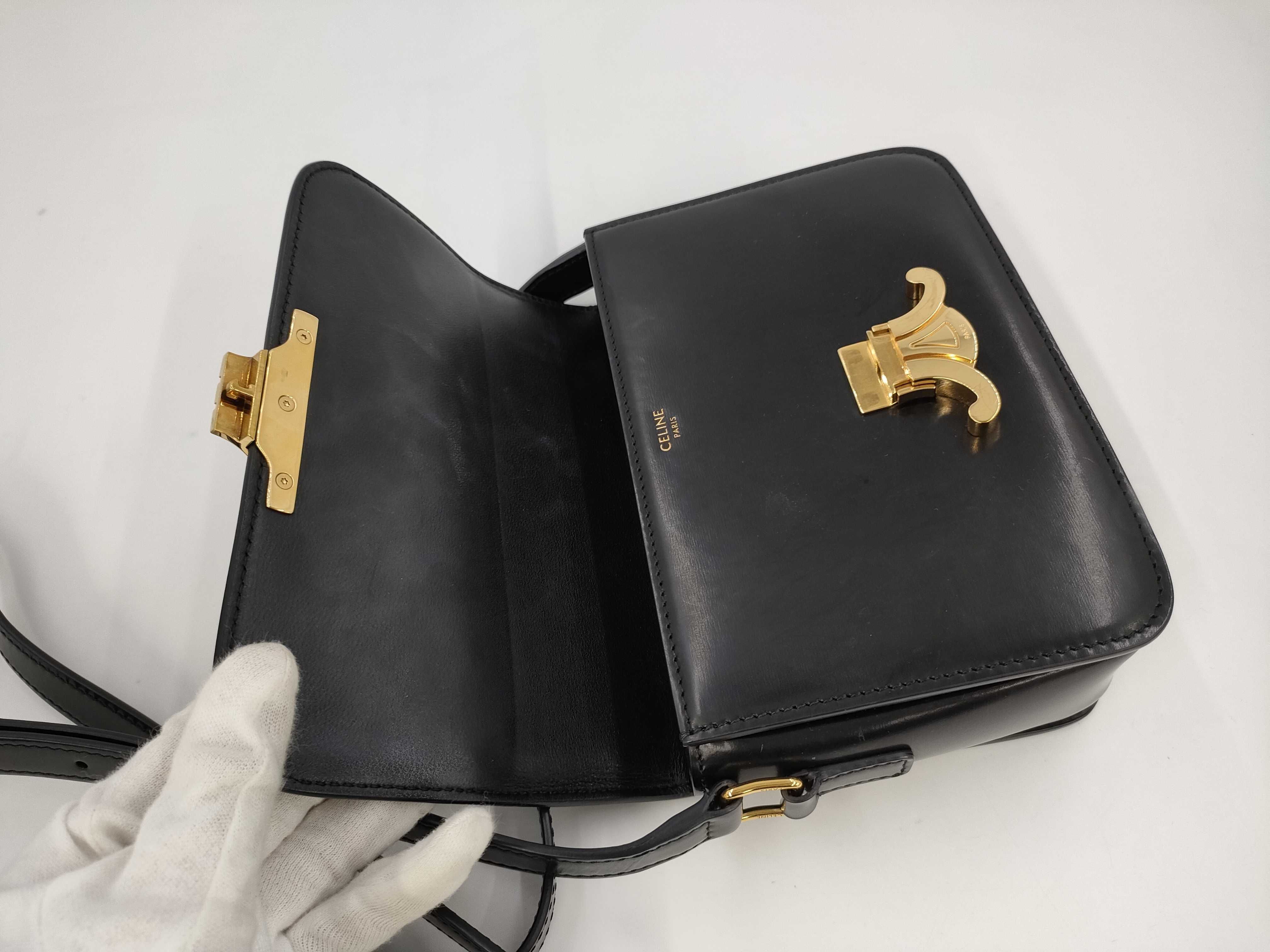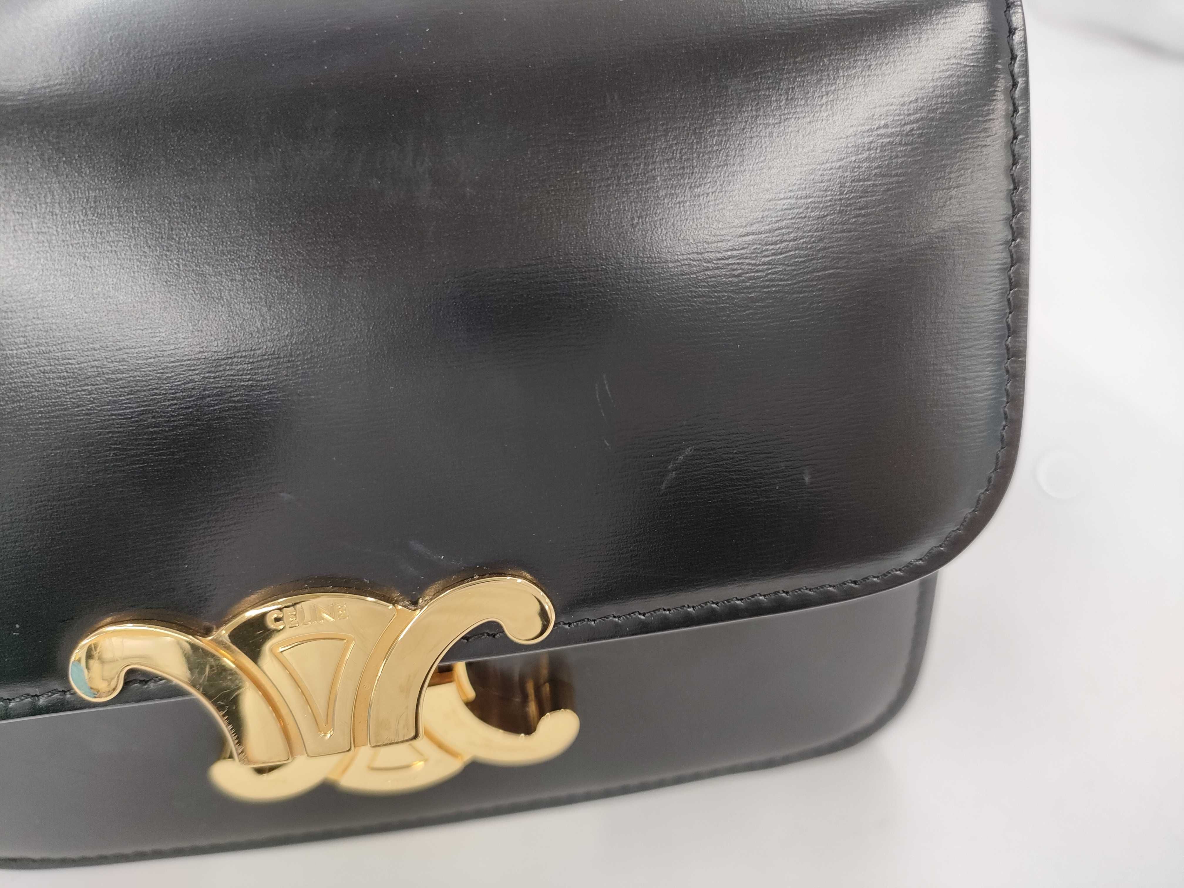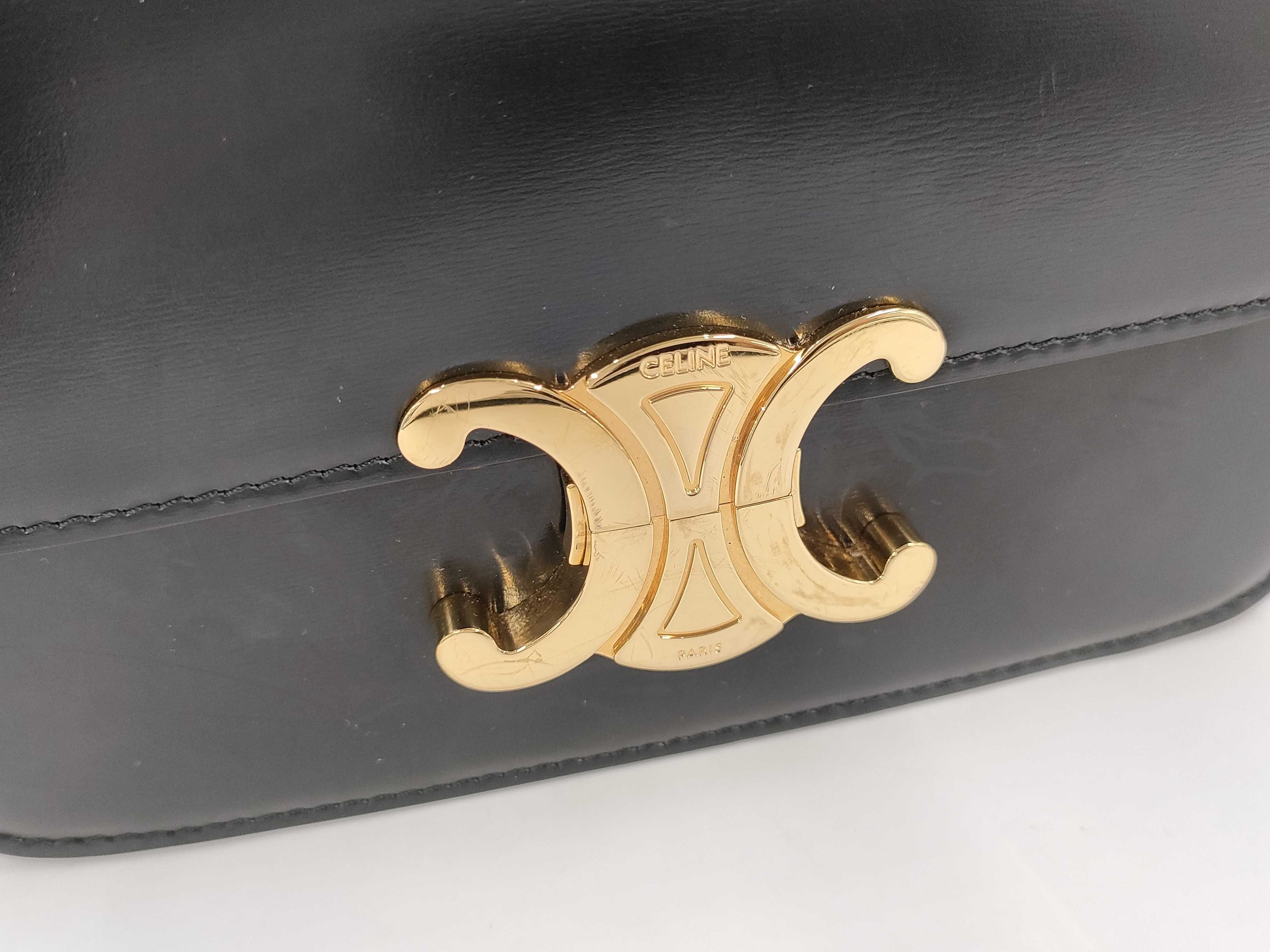 (G_0128)CELINE CELINE セリーヌ トリオンフ カーフレザー ミニ ブラック 黒 ゴールド金具 ショルダーバッグ ショルダーバッグ