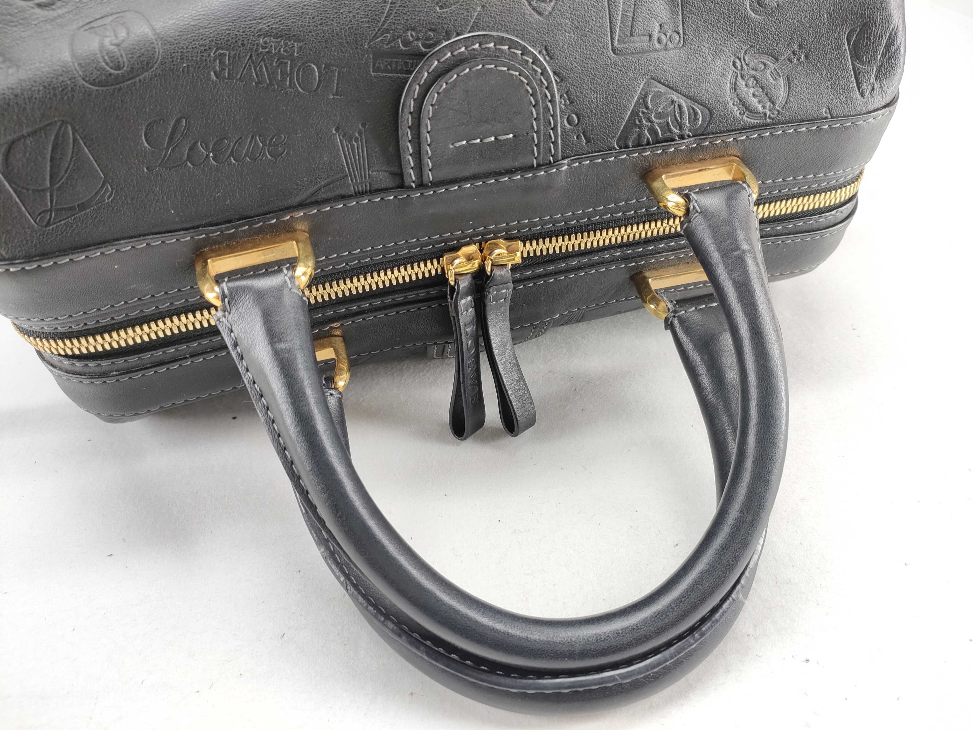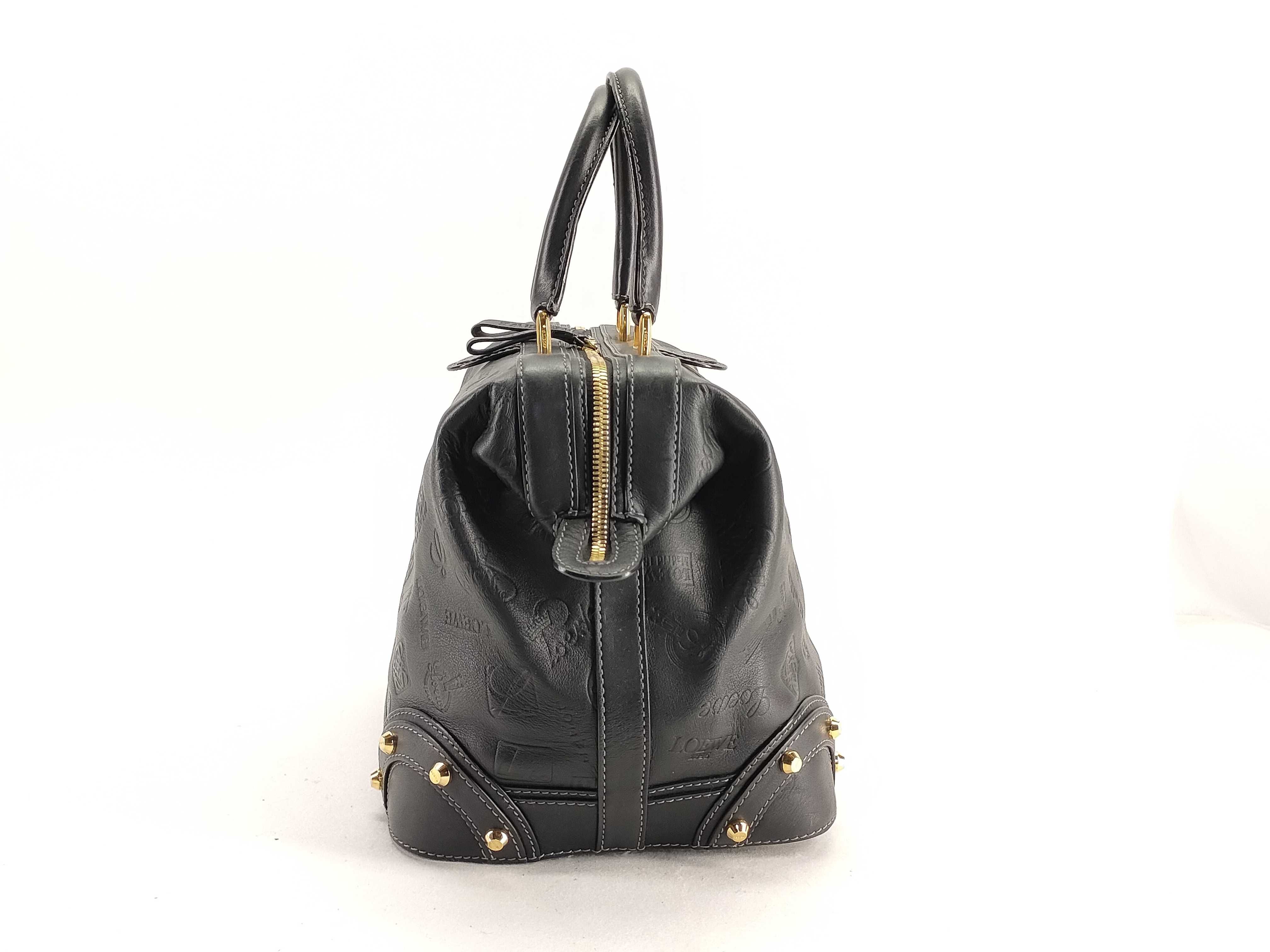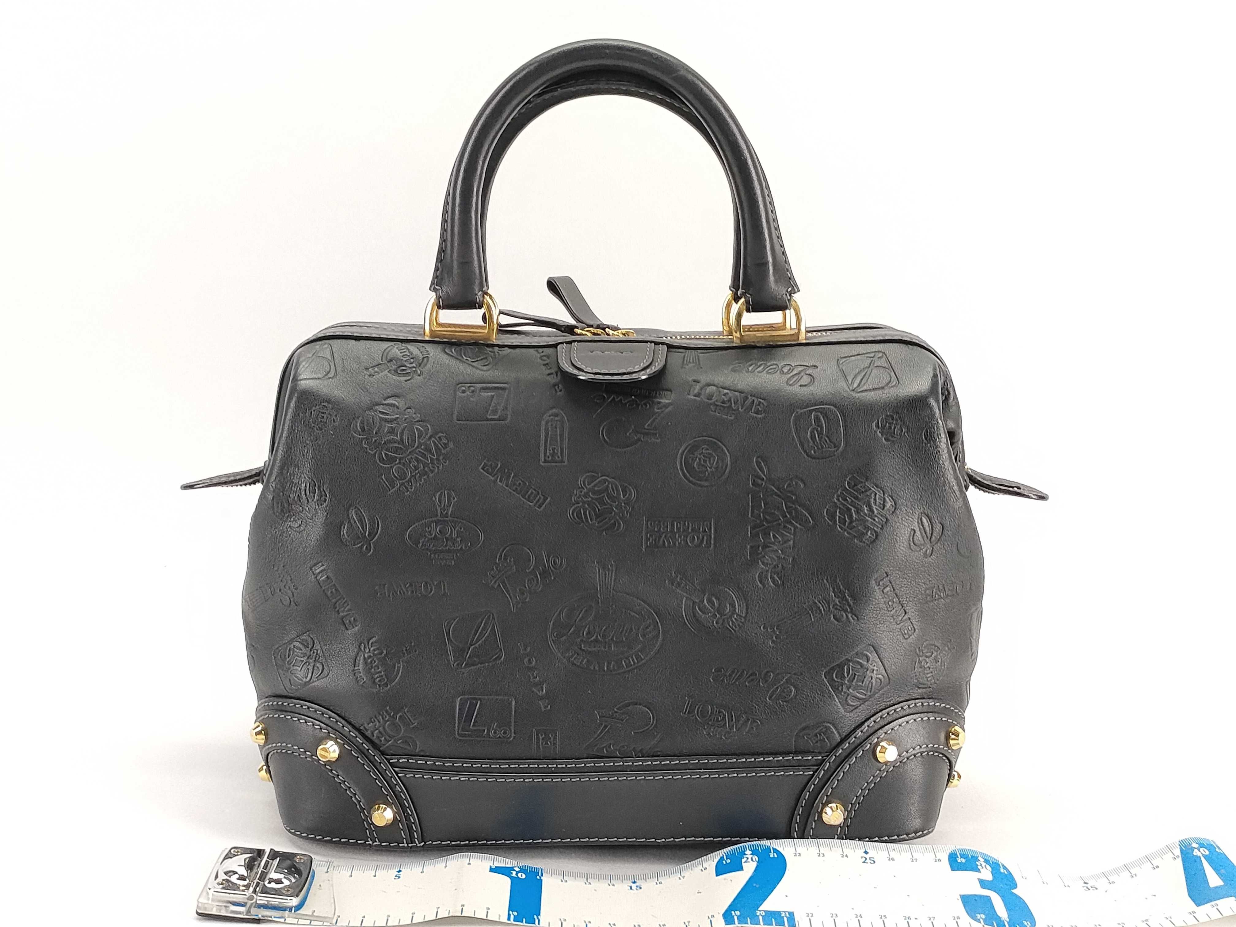 (G_0169)LOEWE ロエベ アナグラム レザー ハンドバッグ ブラック ボストンバッグ