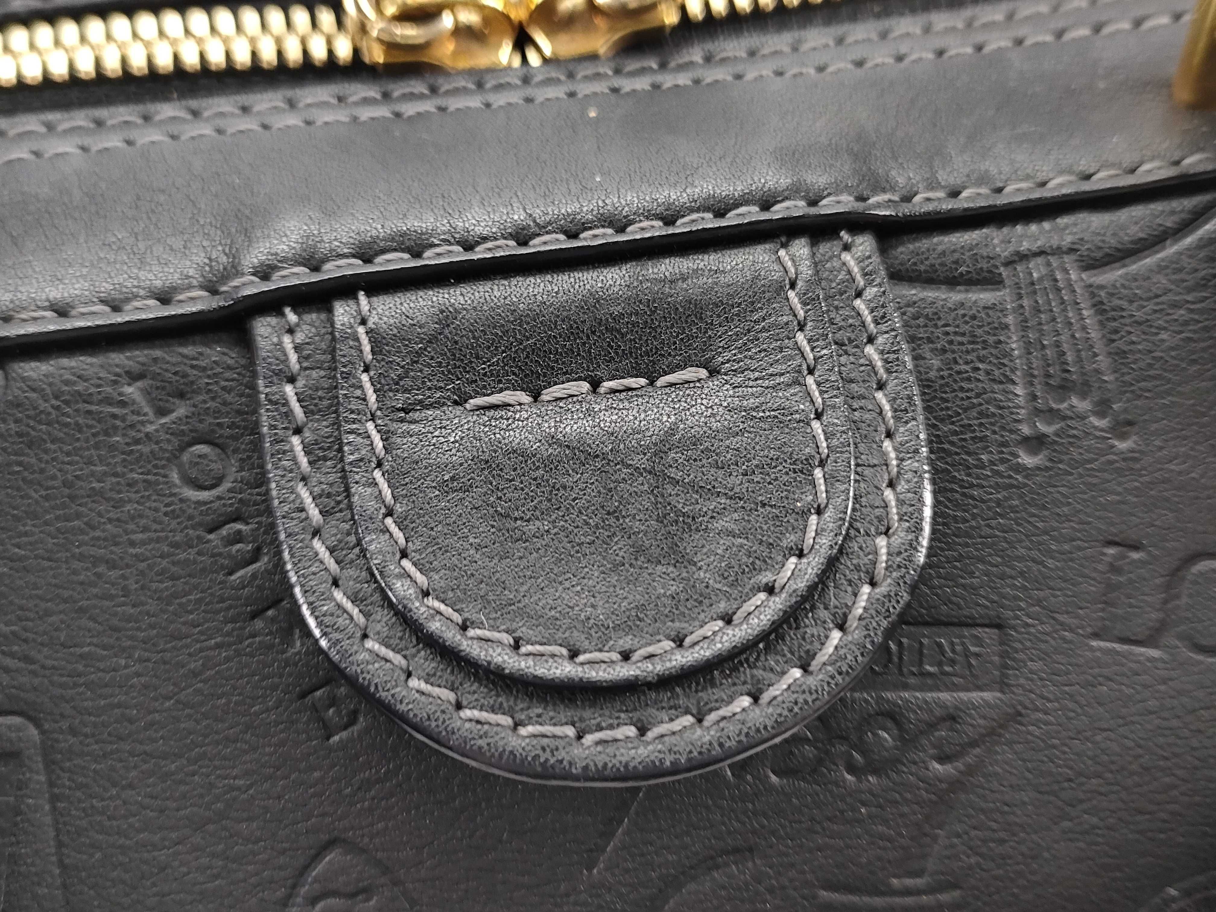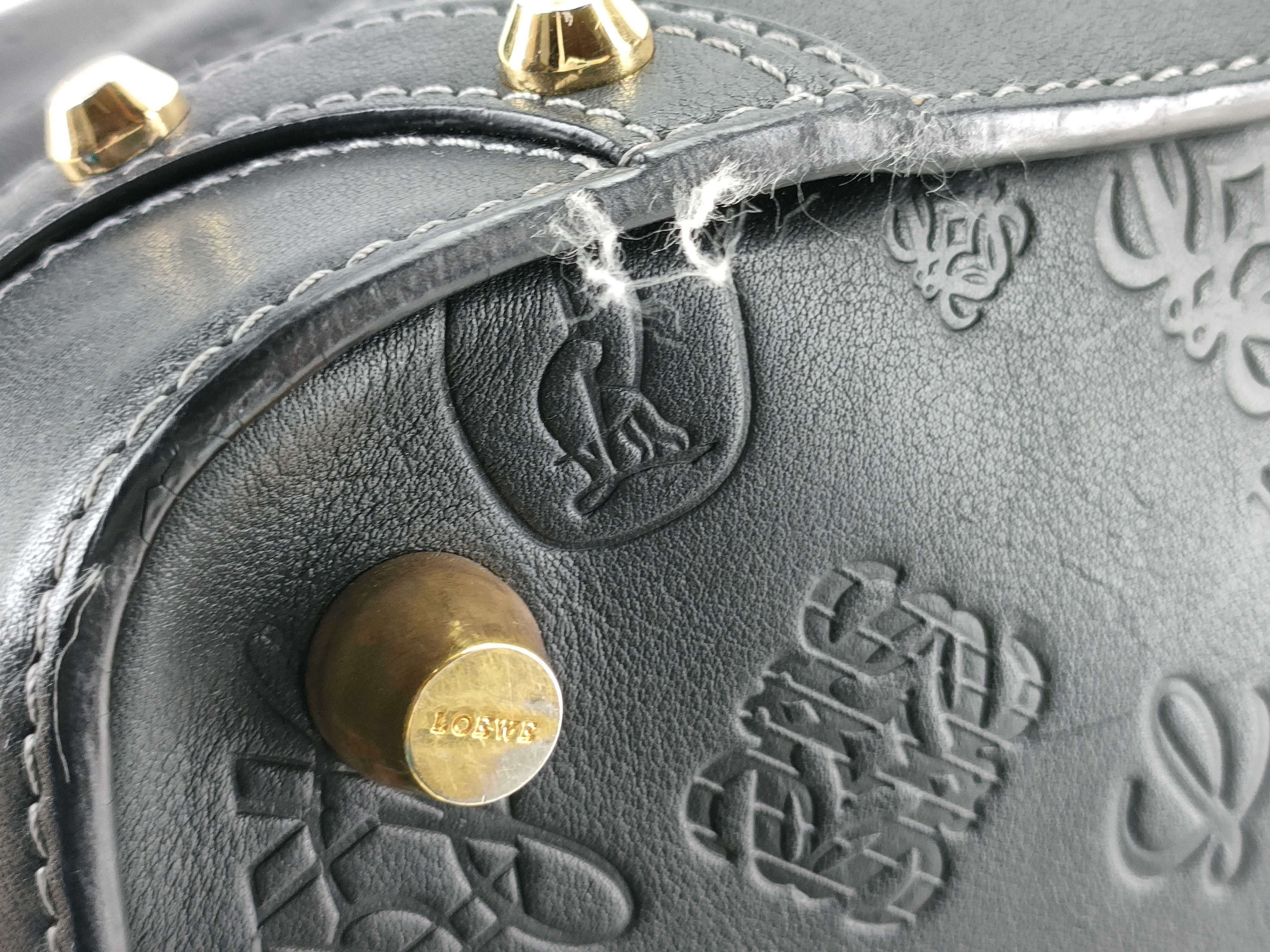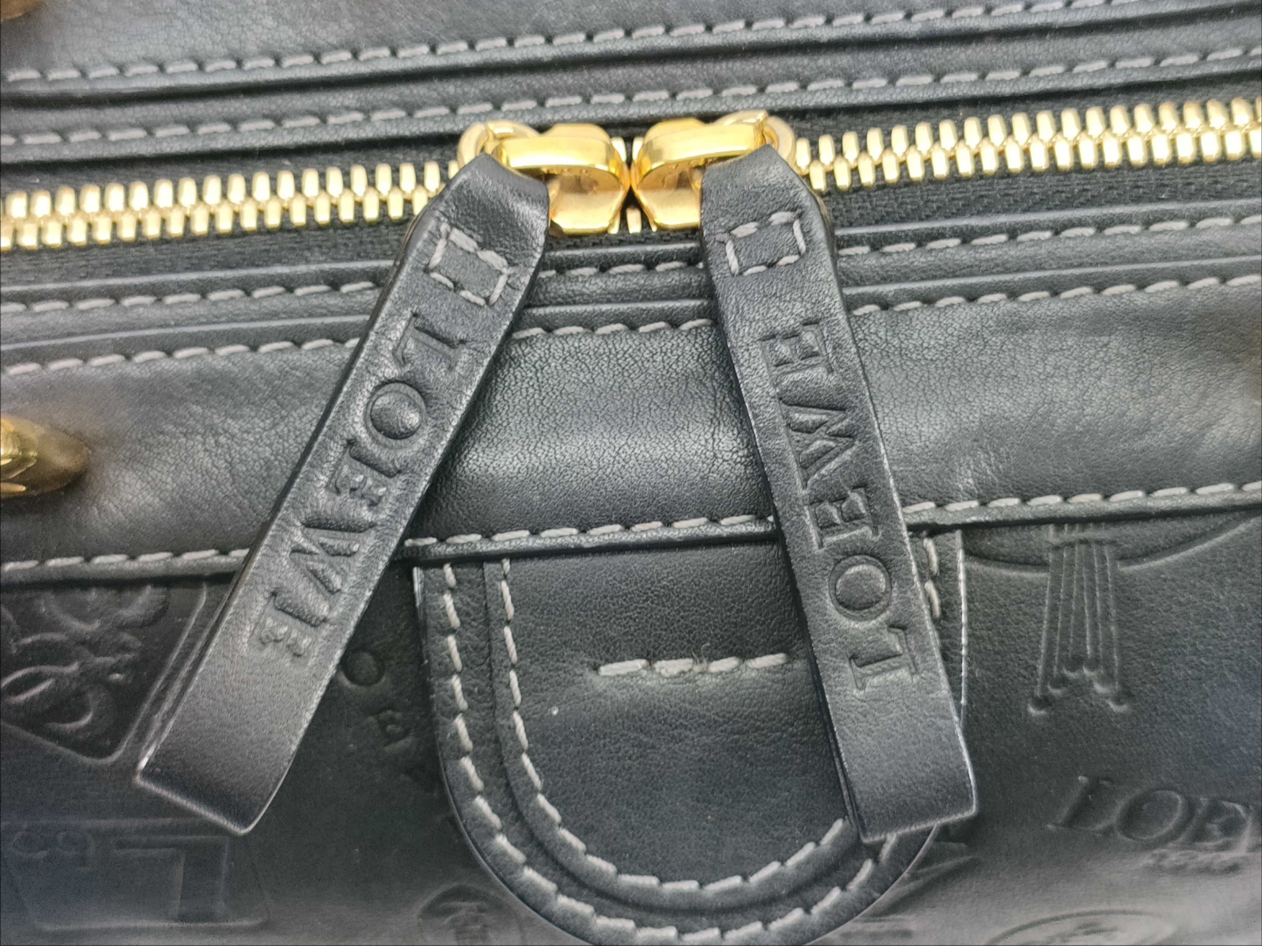 (G_0169)LOEWE ロエベ アナグラム レザー ハンドバッグ ブラック ボストンバッグ
