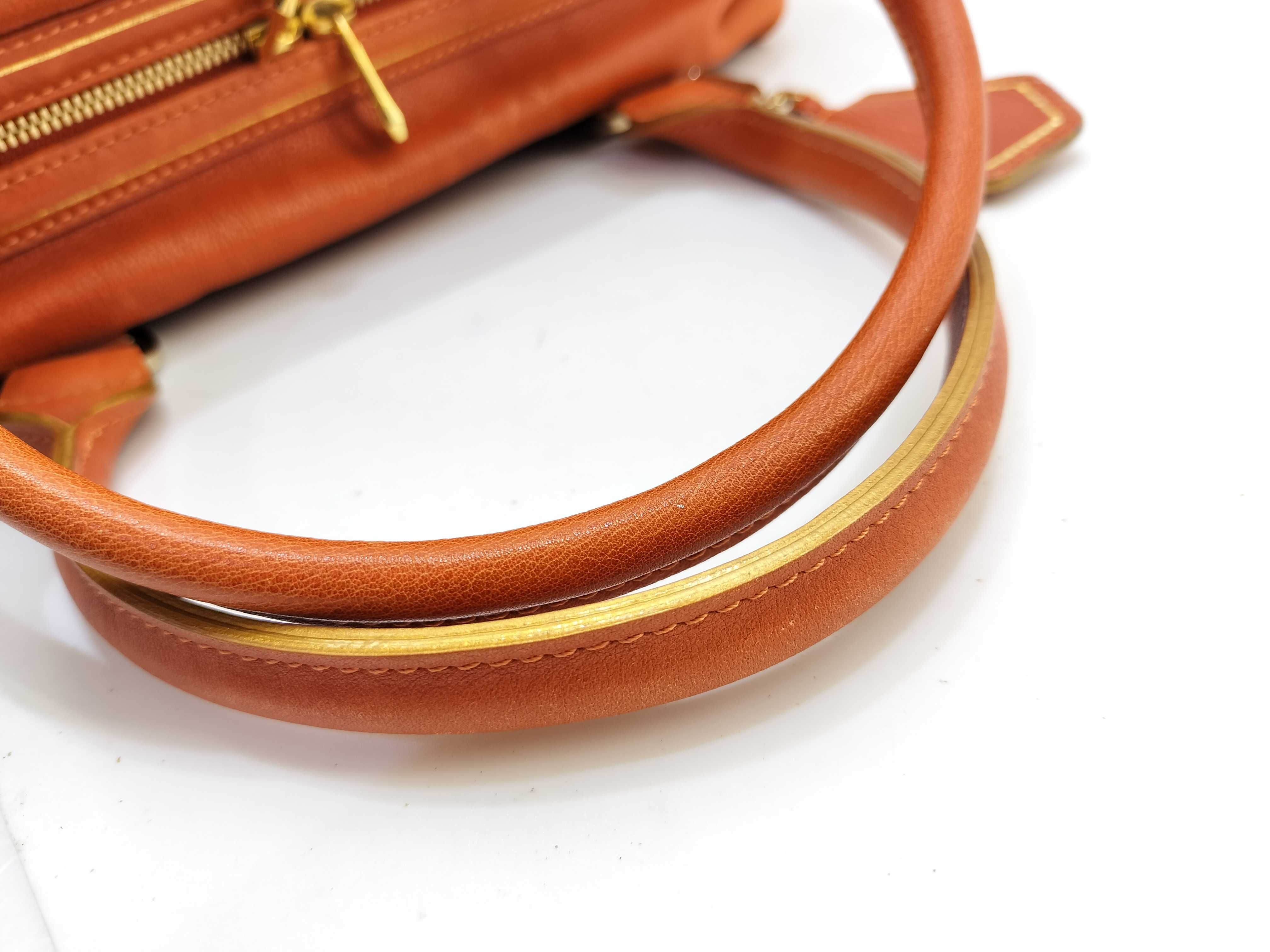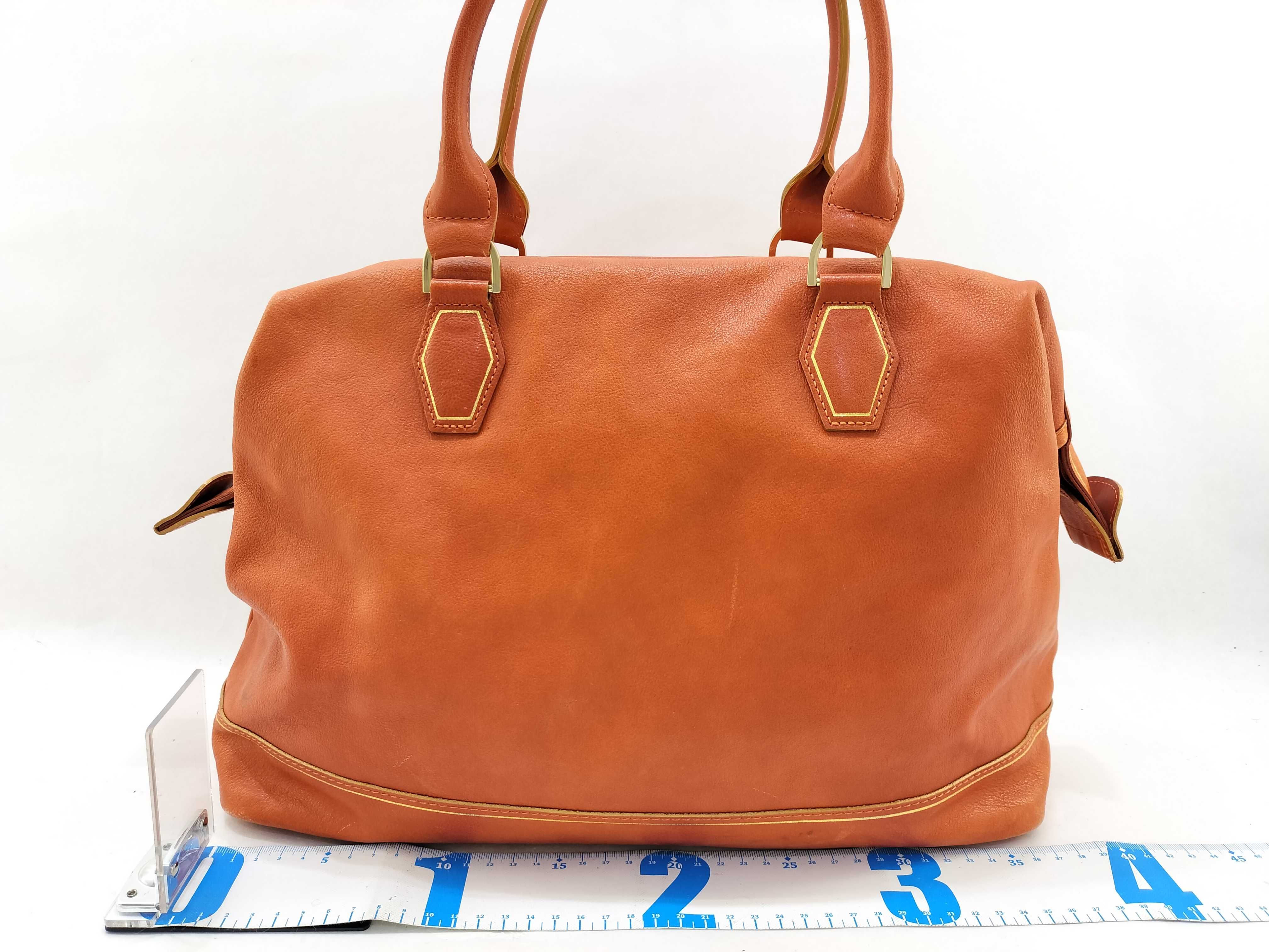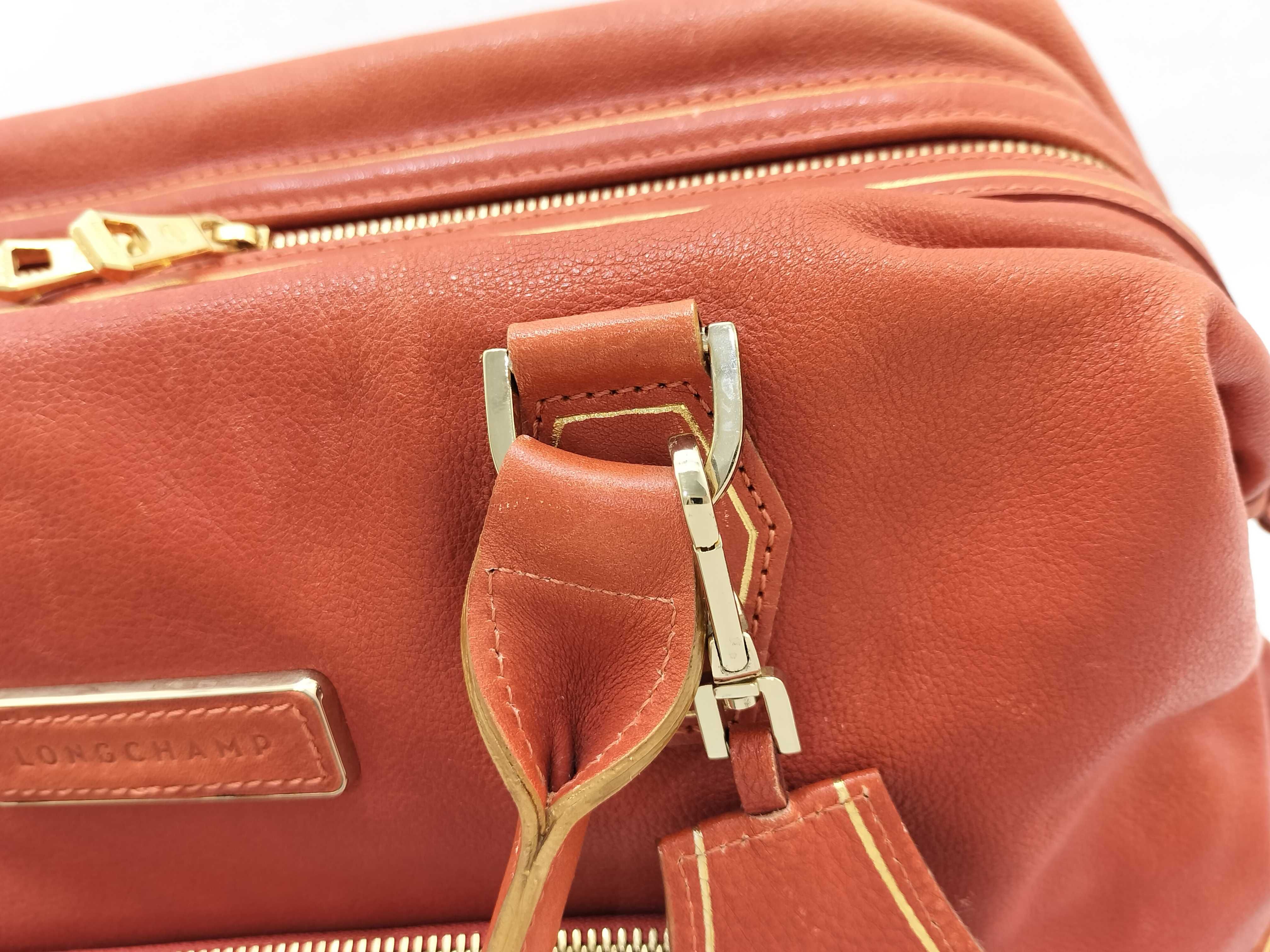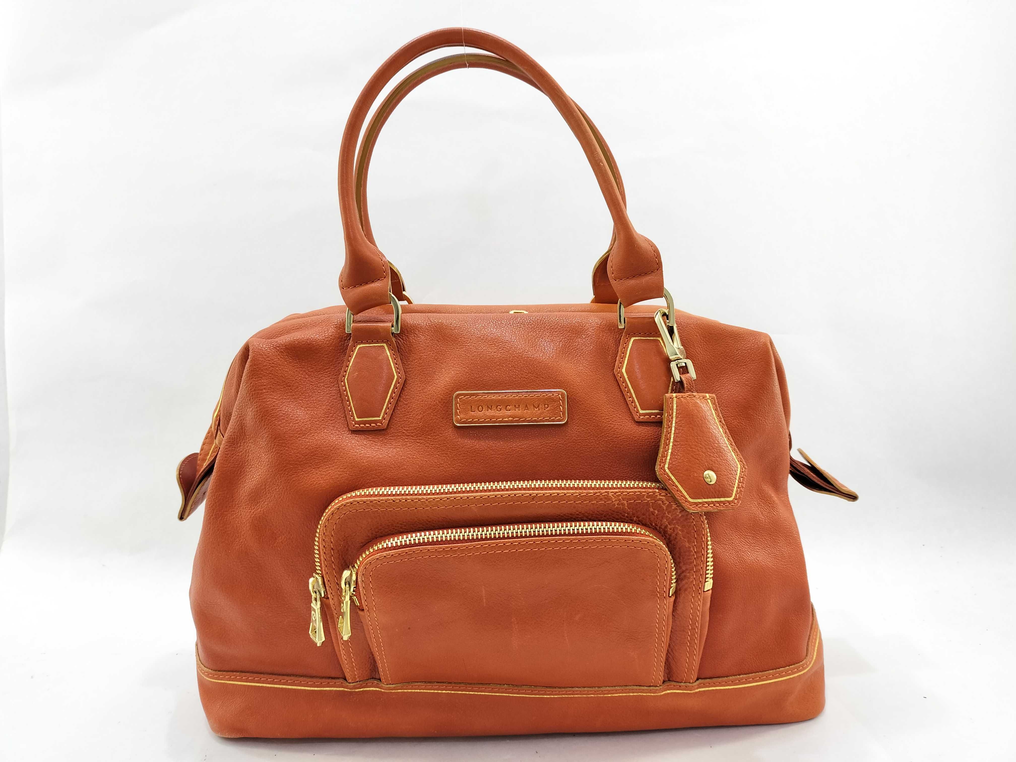 (G_0211)LONG CHAMP ロンシャン レザー ハンドバッグ オレンジ ボストンバッグ