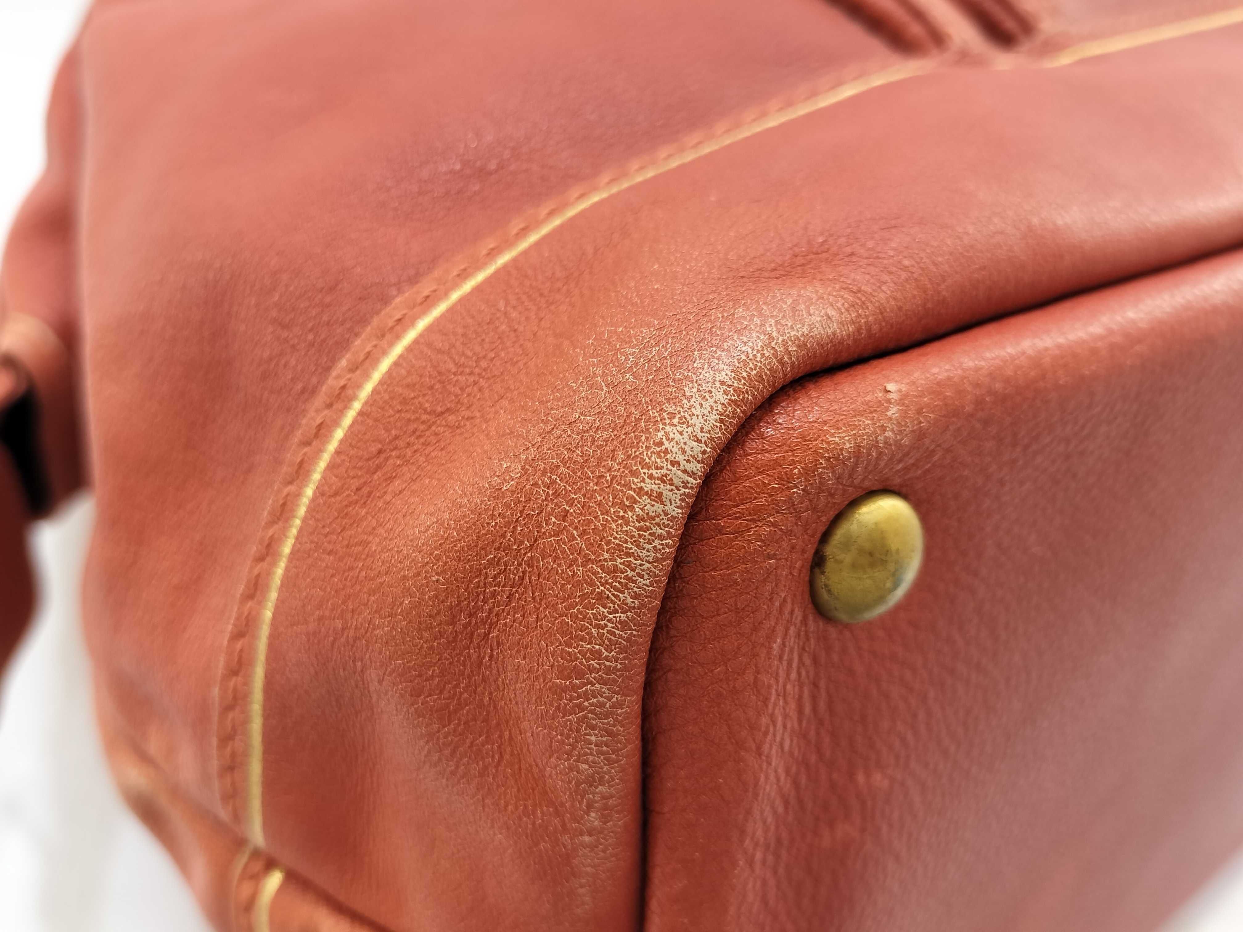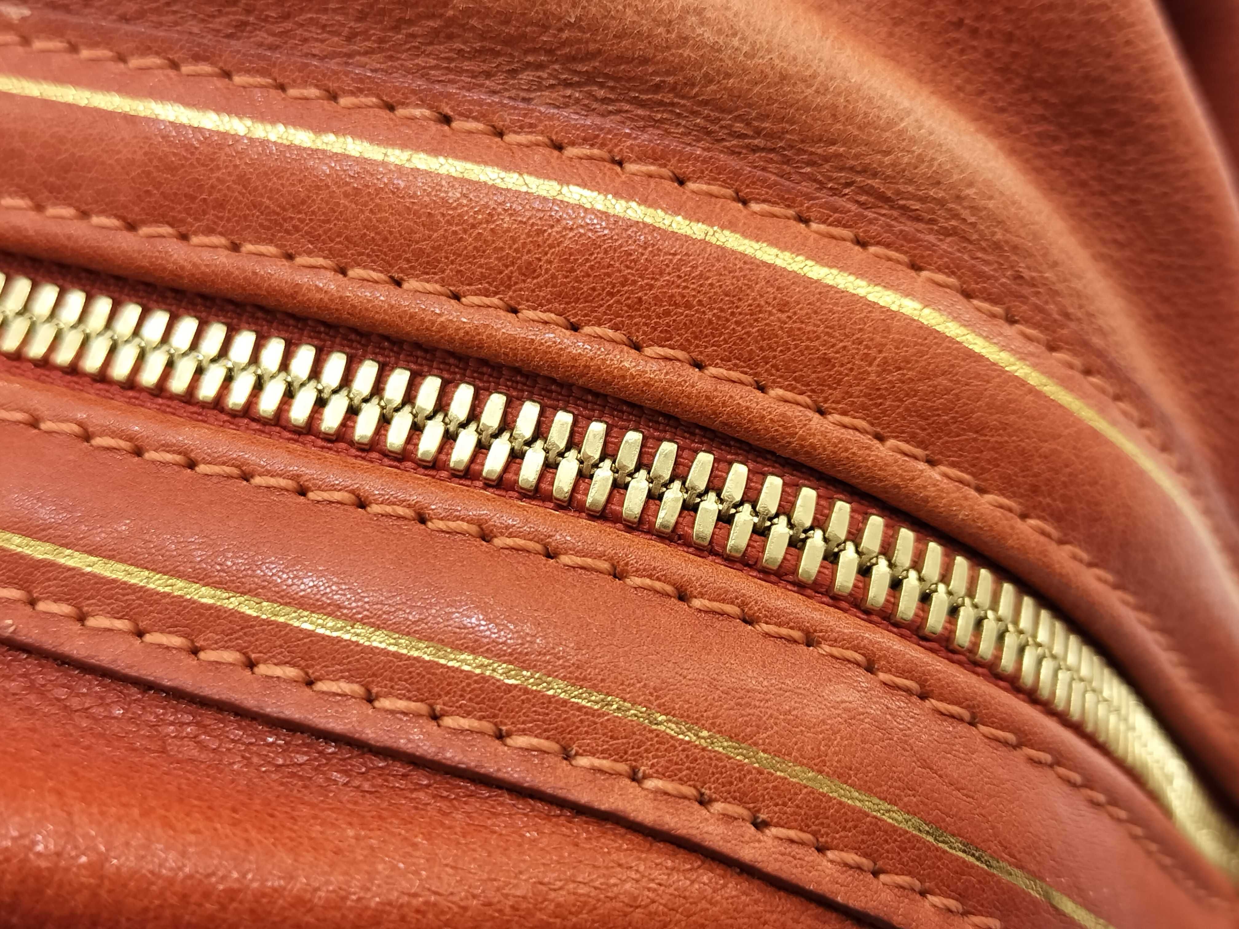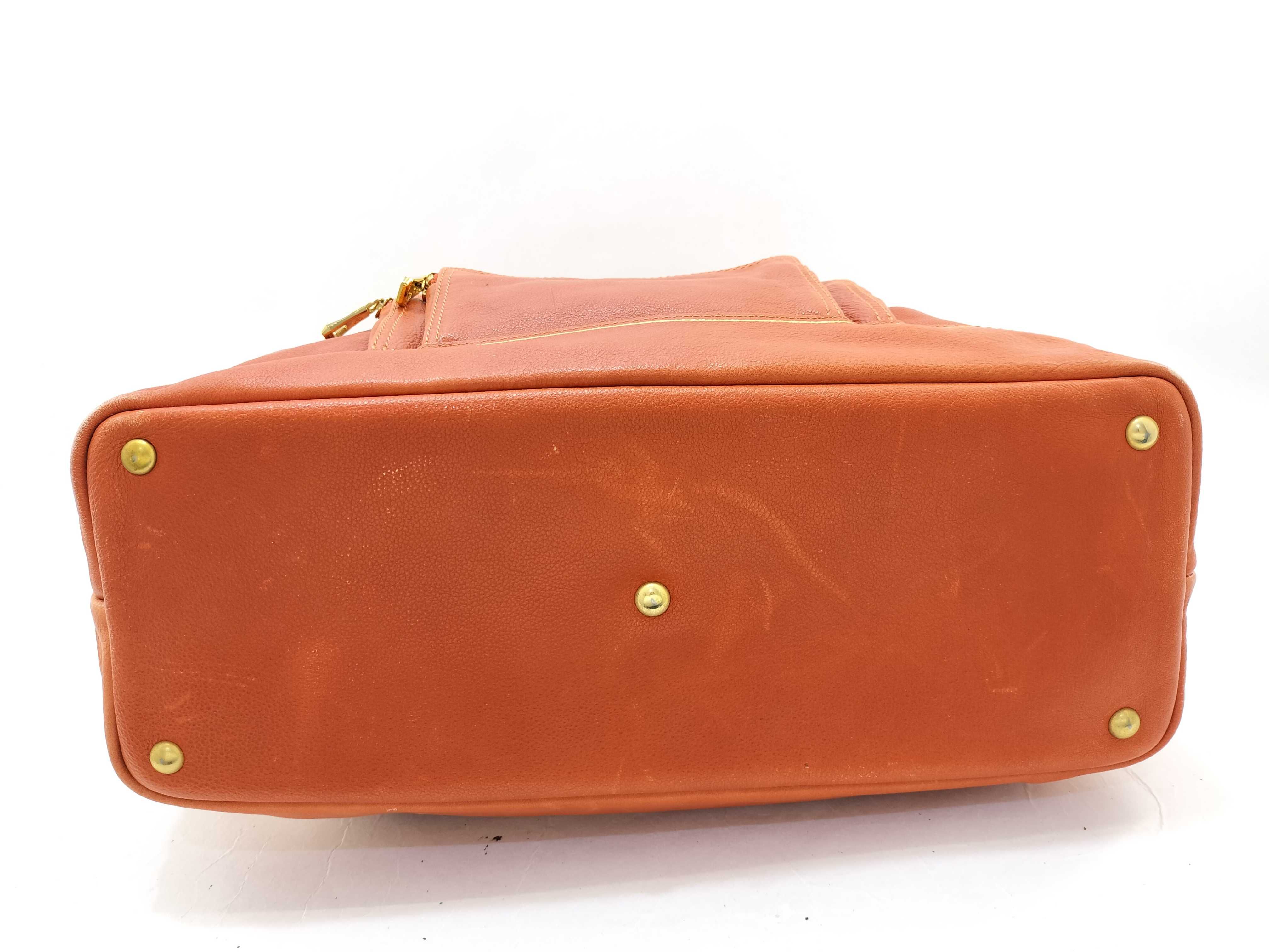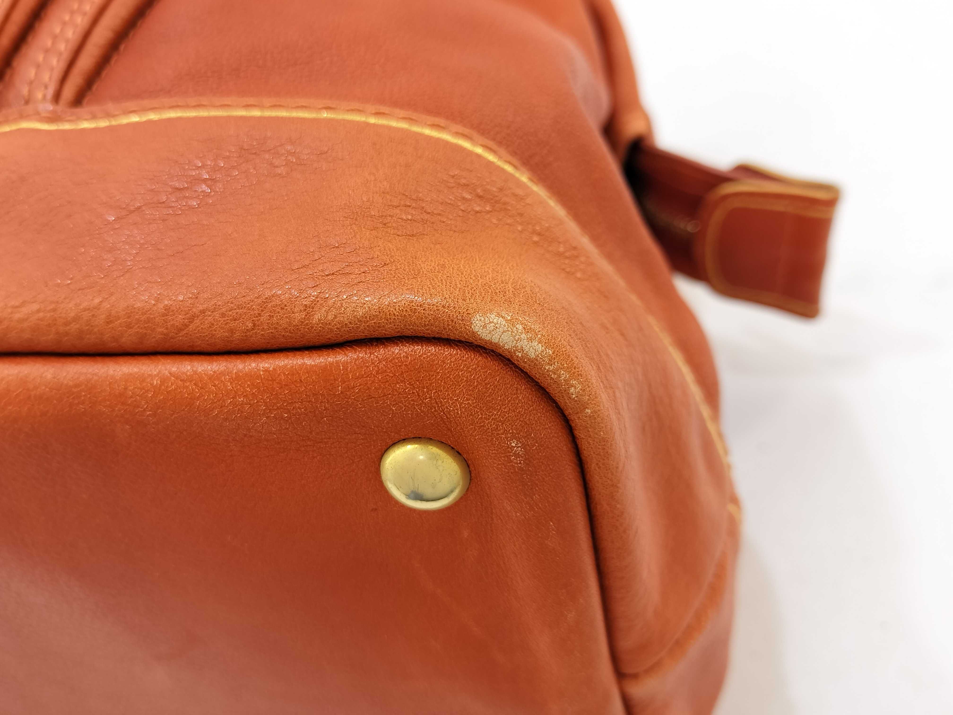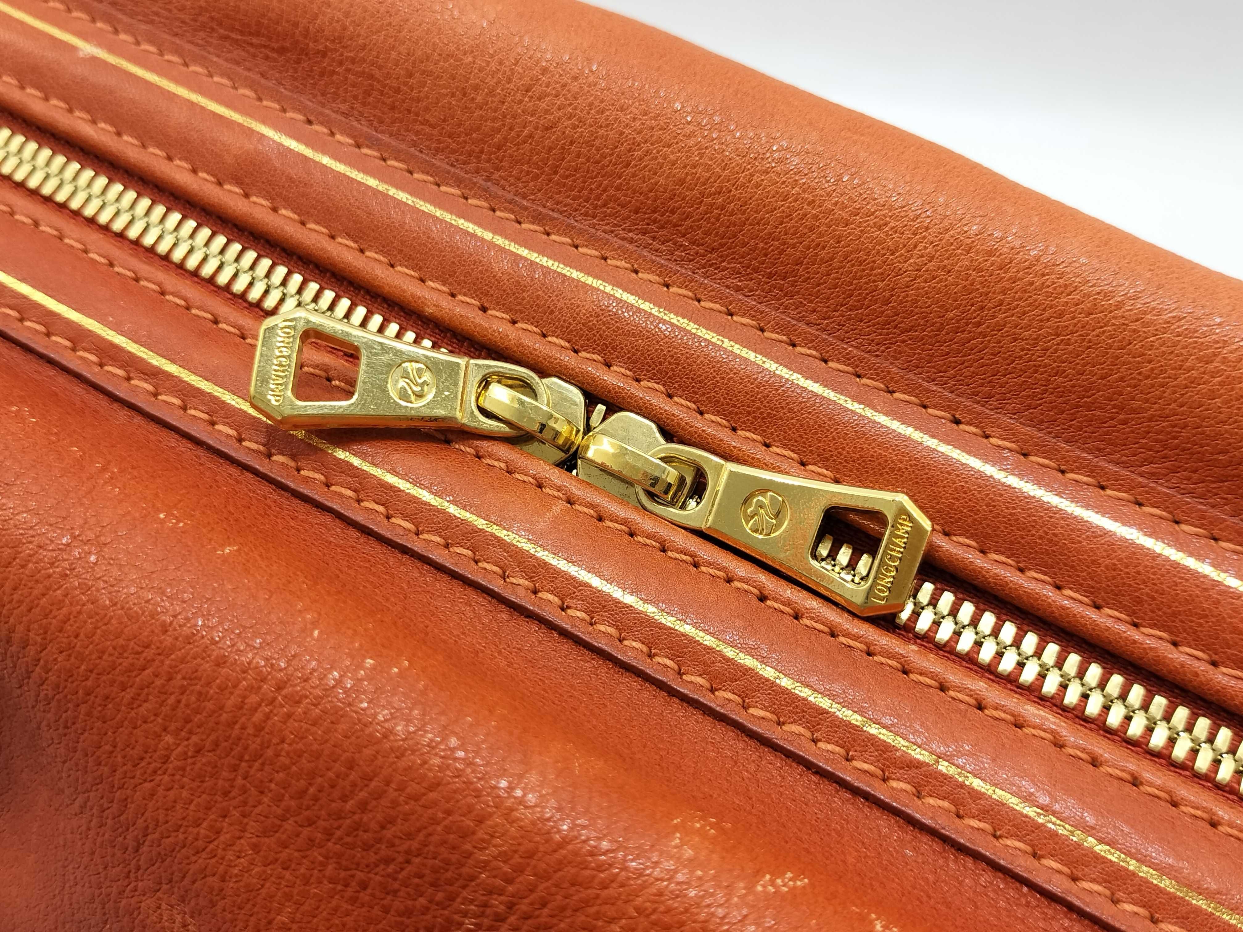 (G_0211)LONG CHAMP ロンシャン レザー ハンドバッグ オレンジ ボストンバッグ