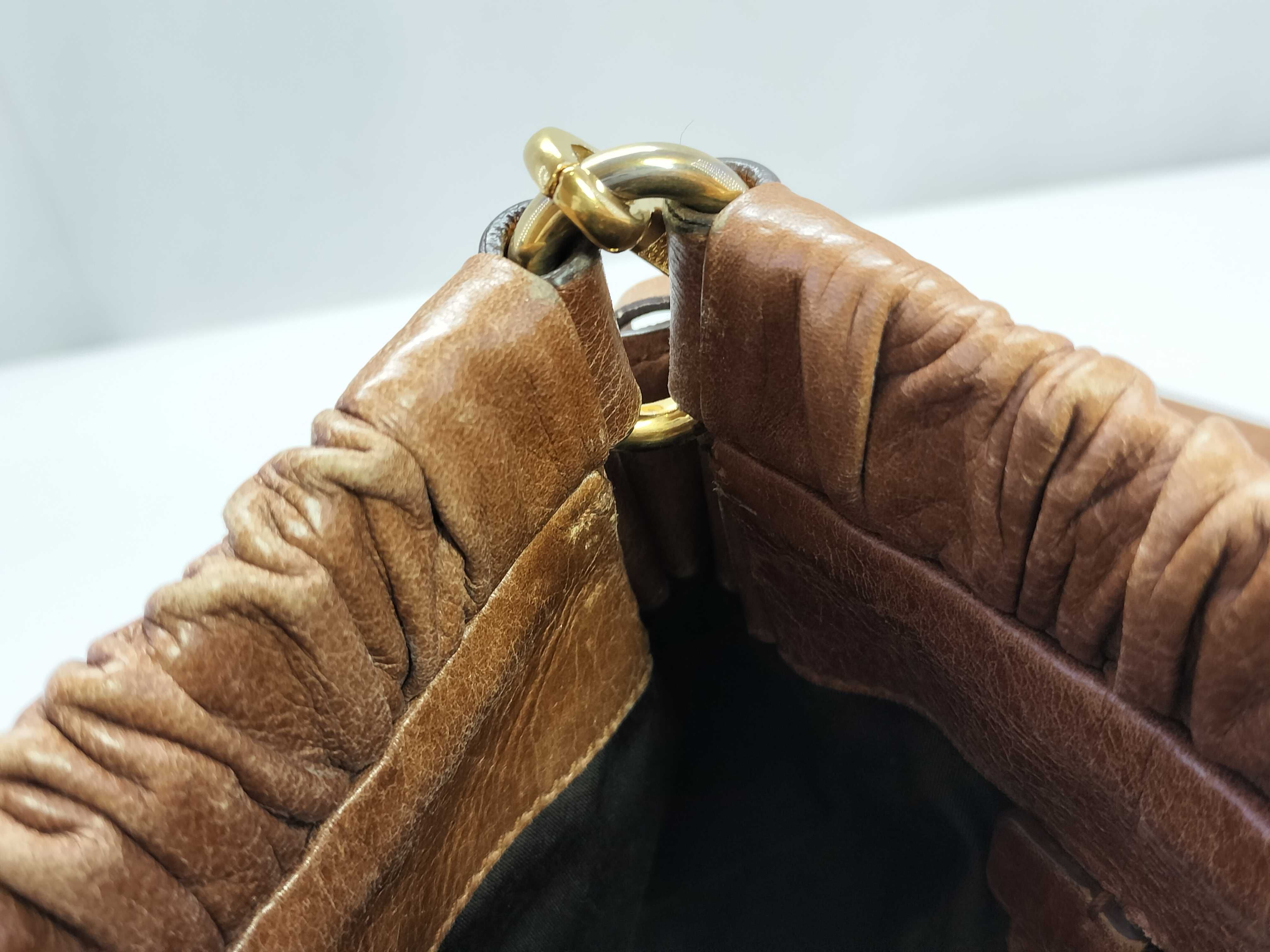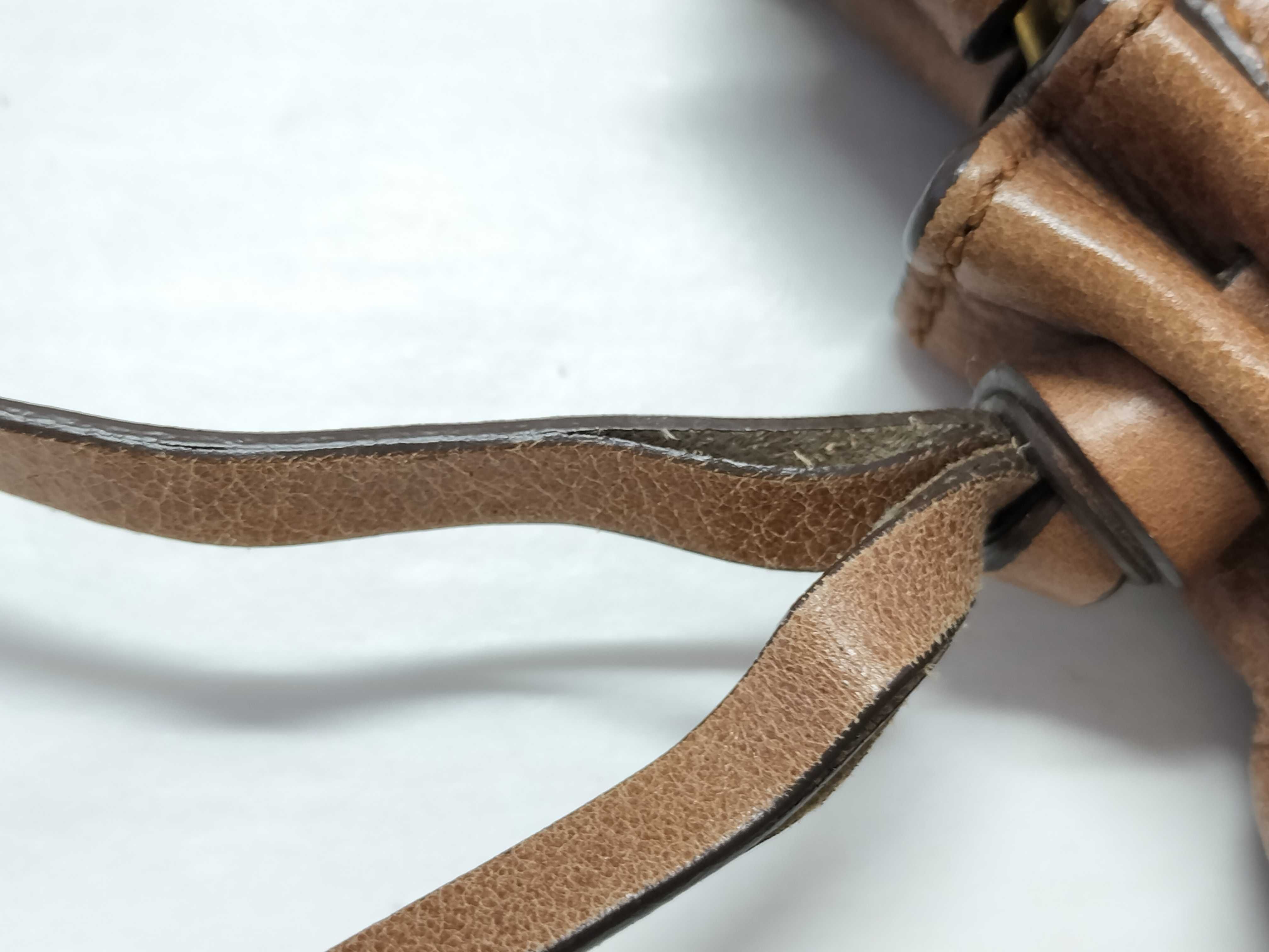 全体擦れ(中) 角擦れ(中) 持ち手ヒビ(小) 付け根伸び切れ(小) 金具キズ(小) 内側汚れ(小) ストラップ裂け(有)【付属品