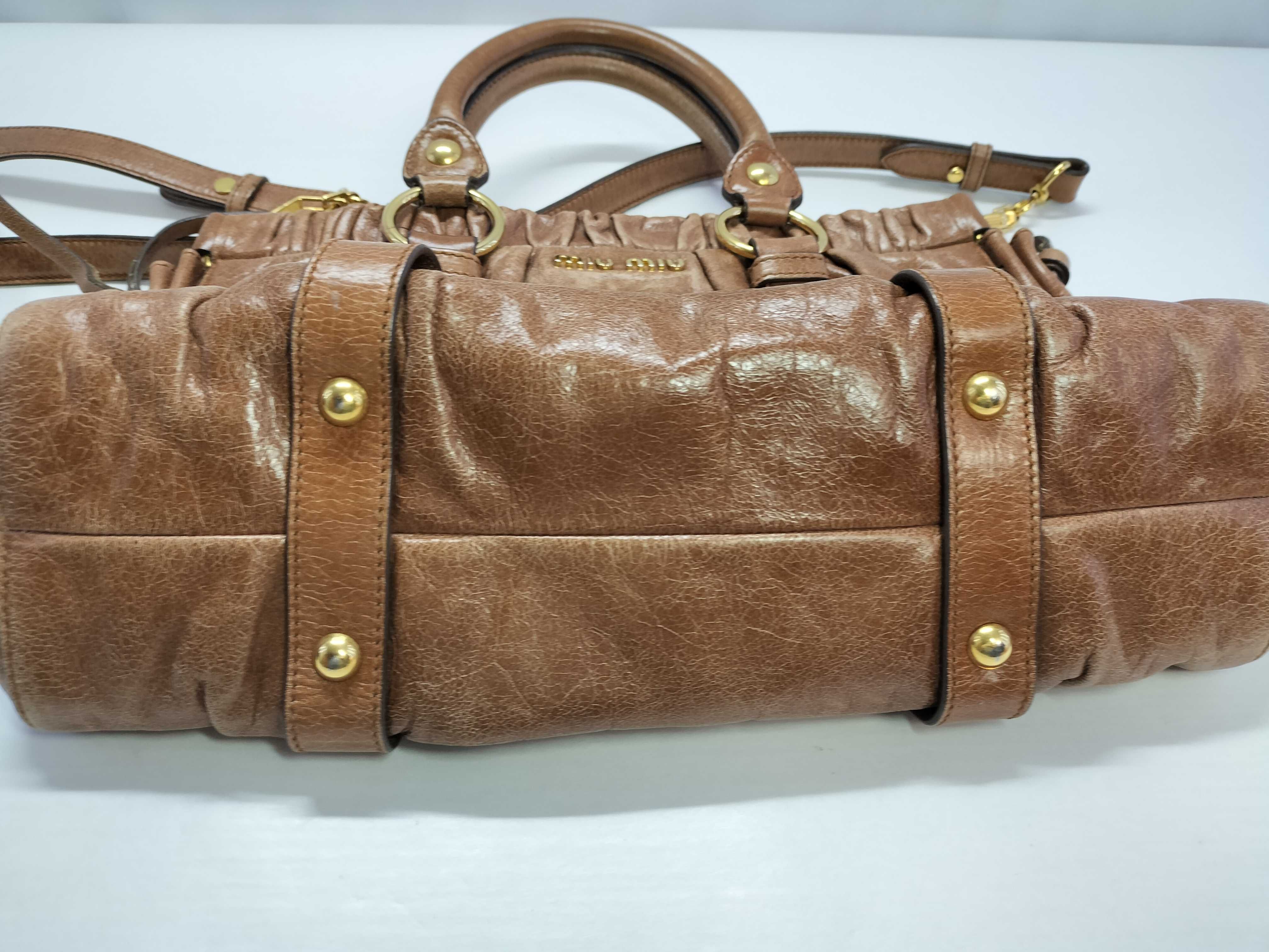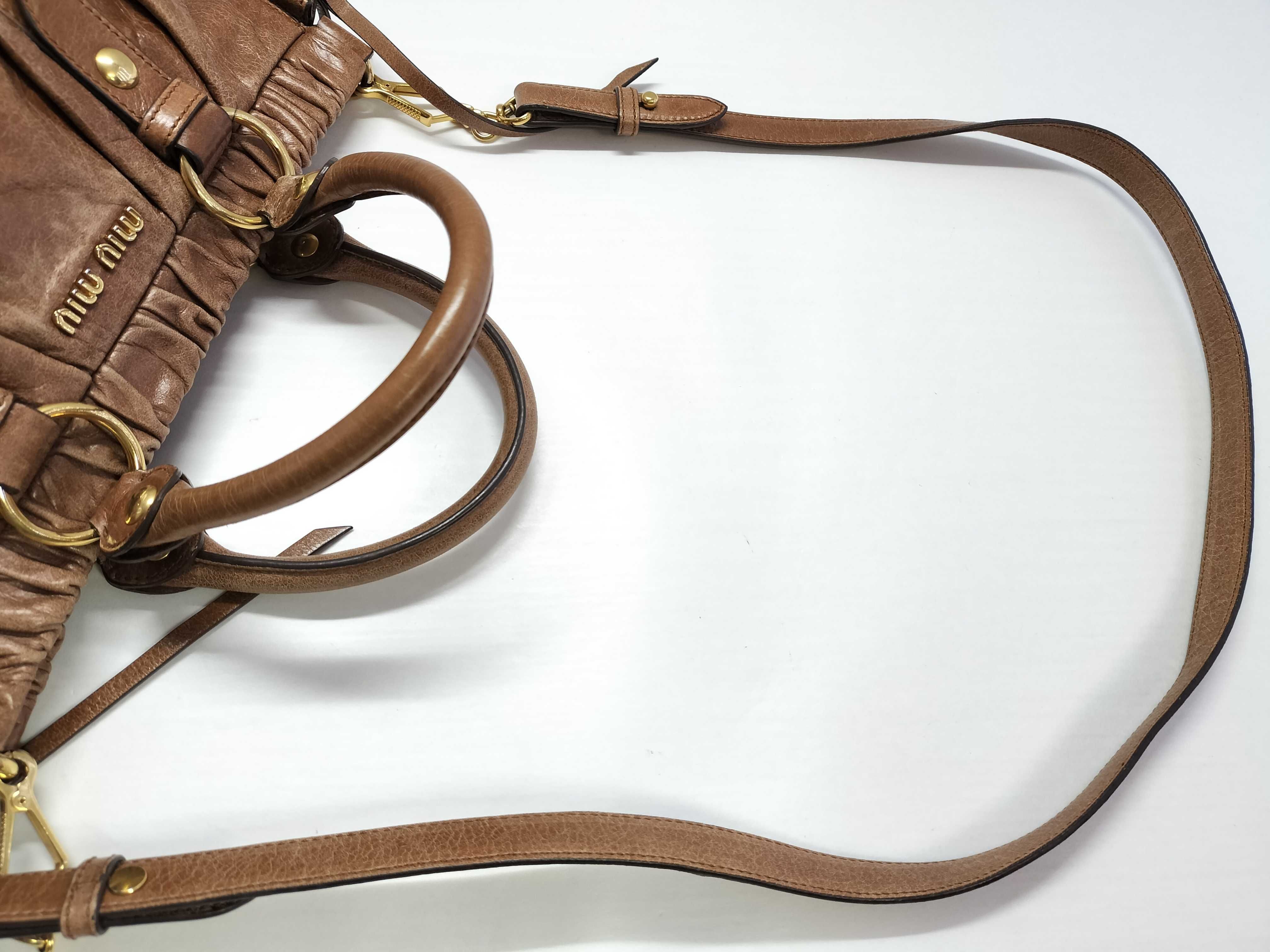 (G_0225)miu miu ミュウミュウ 2wayハンドバッグ RT0383 ヴィッテロラックス ショルダーバッグ ブラウン レザー ハンドバッグ