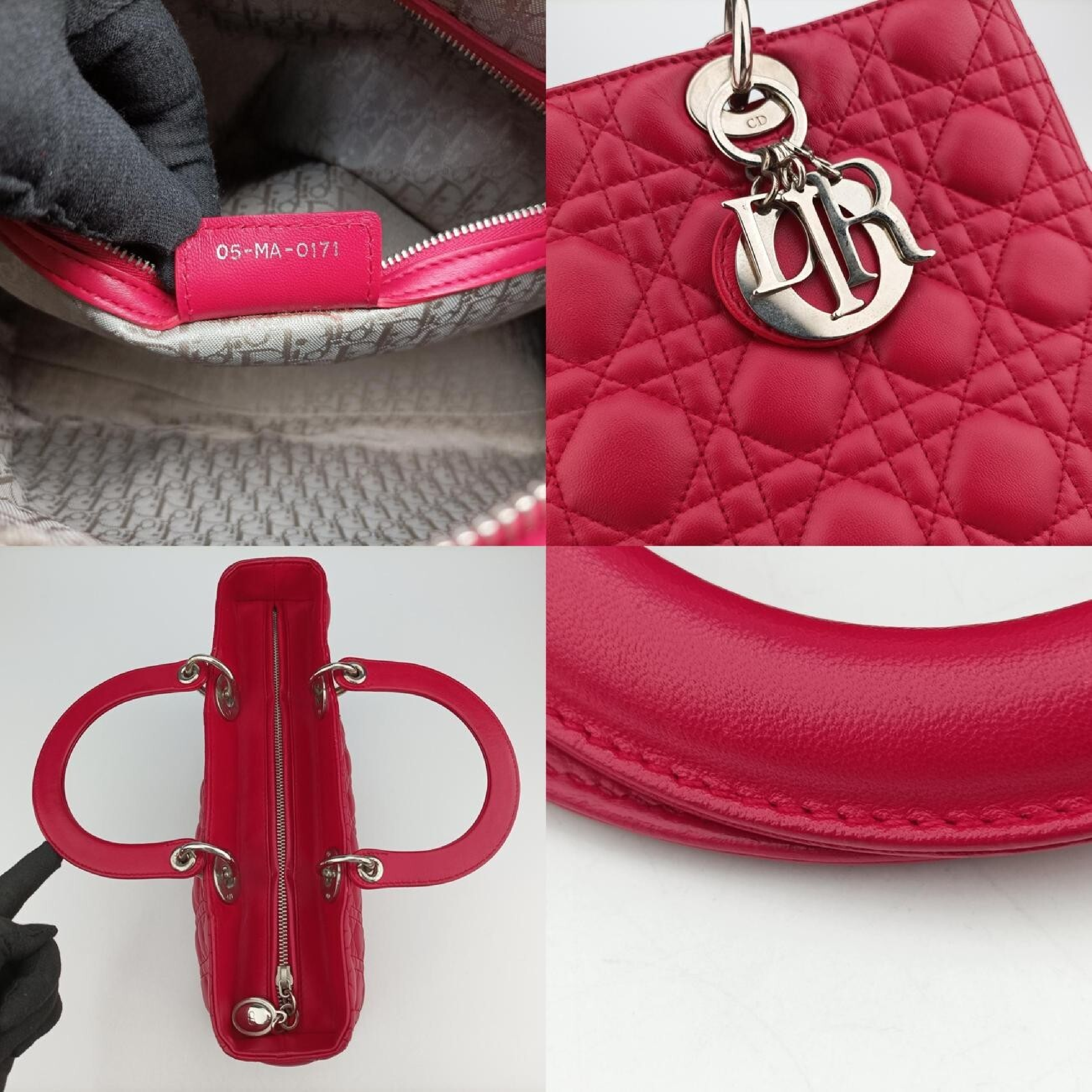 (G_0484)Dior レディディオール ローズ レッド ラムスキン 05-MA-0171 ショルダーバッグ
