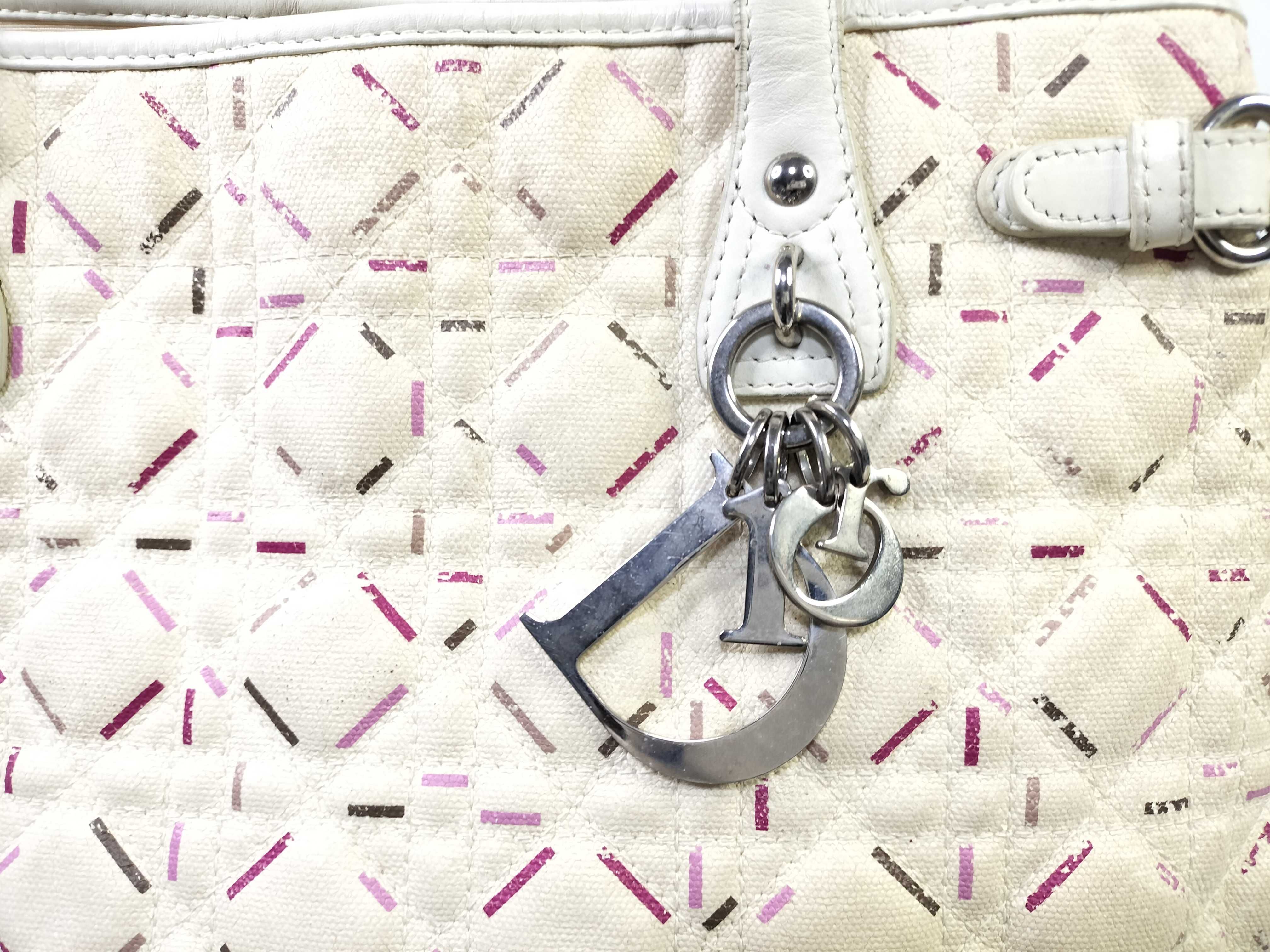 (G_0503)Dior ID-Dior Lady Dior Canage 35 Canvas White Tote Bag SHW 01-BO-0141 トートバッグ