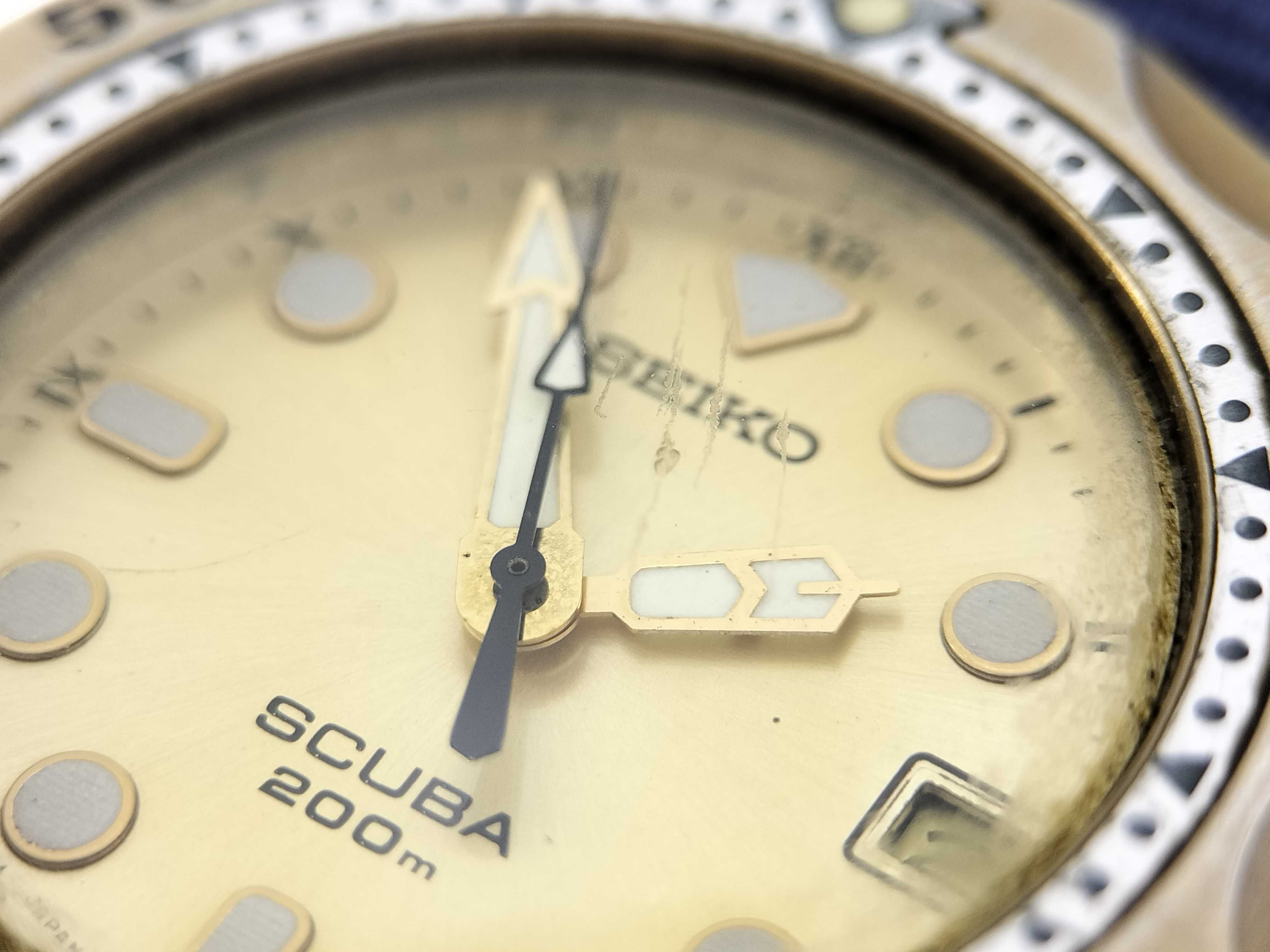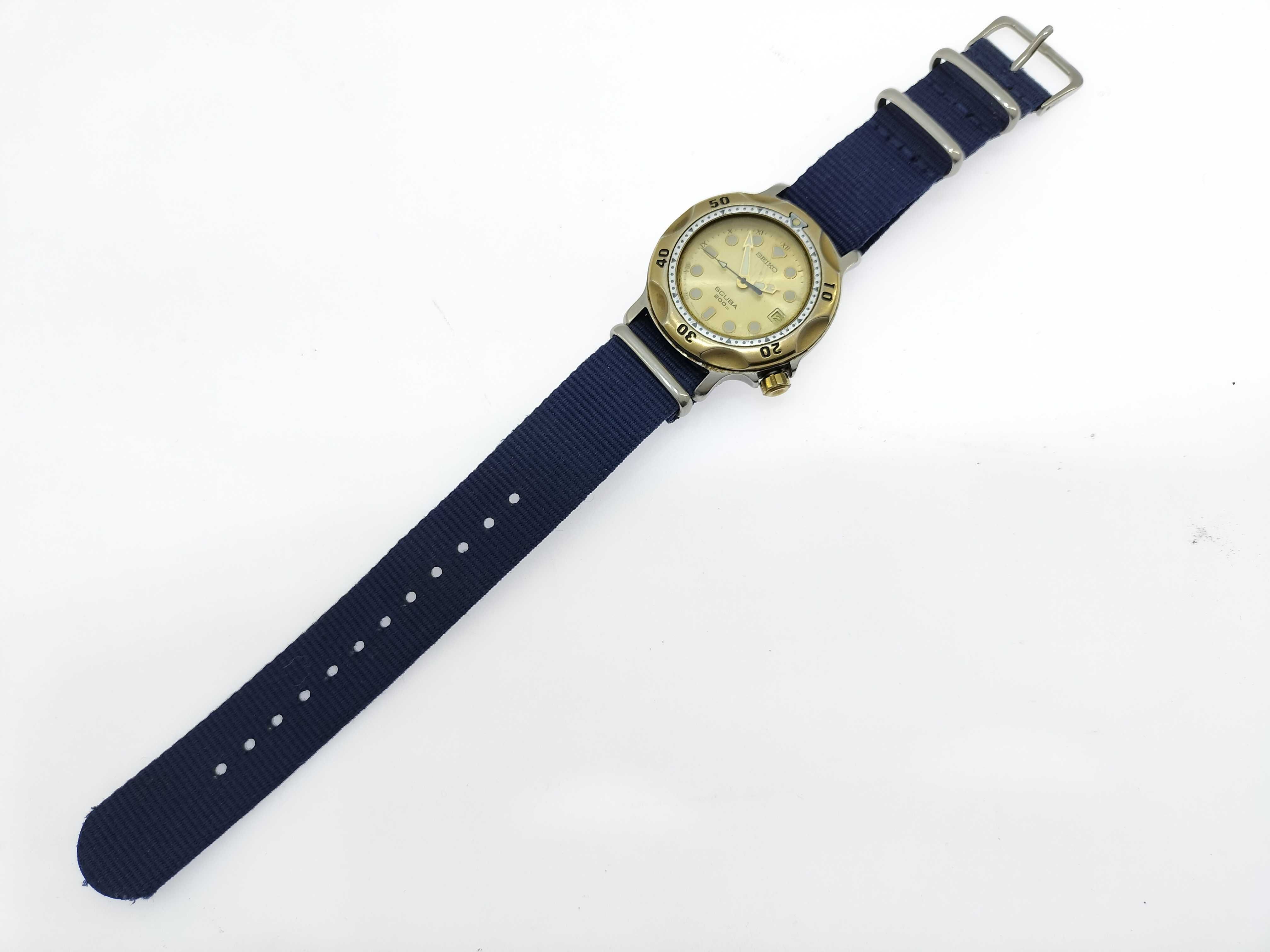 (M_0285)SEIKO セイコー スキューバ 5H25-6000 050108 SS/GP/キャンバス/QZ ゴールド文字盤 メンズ腕時計