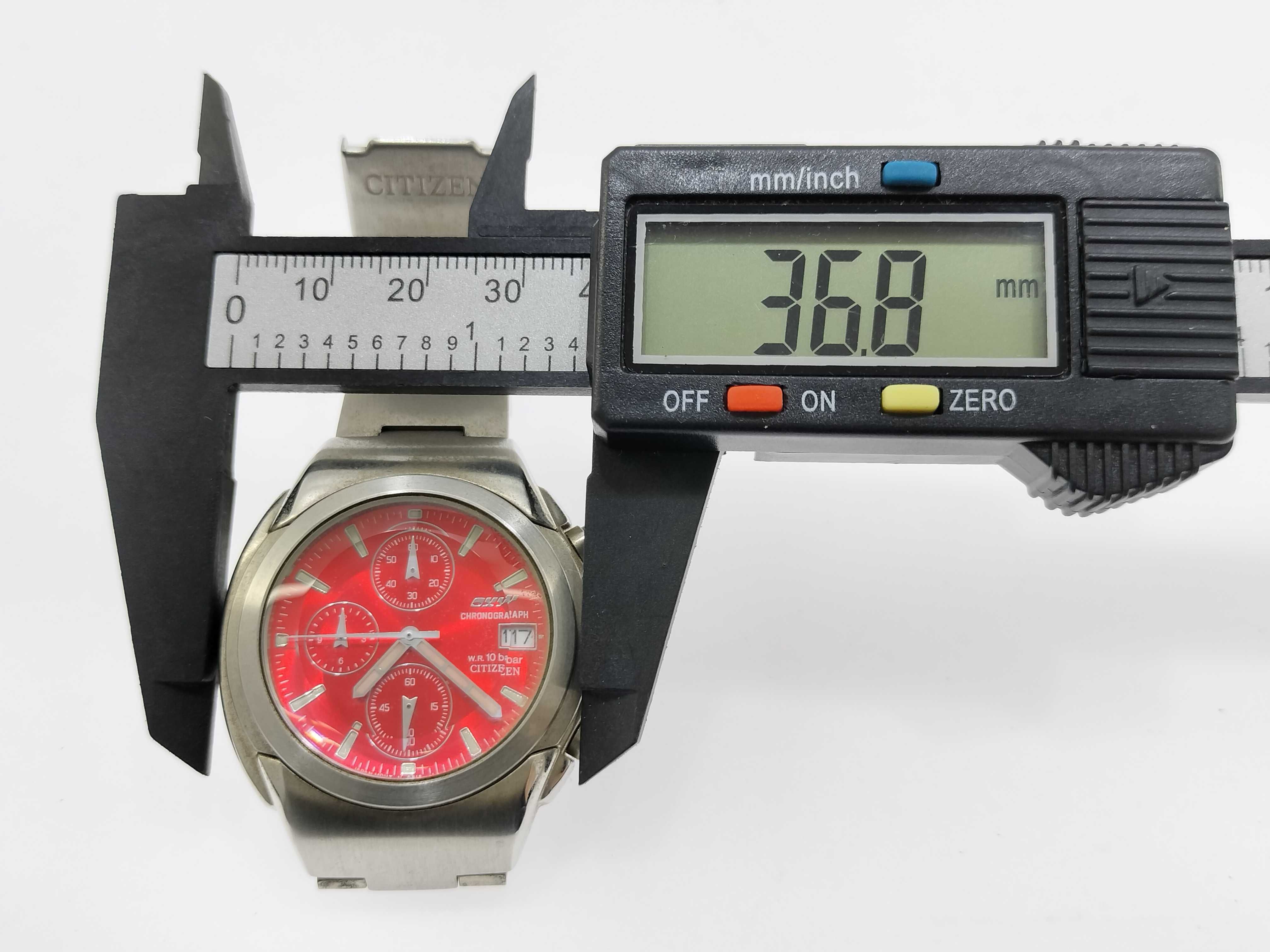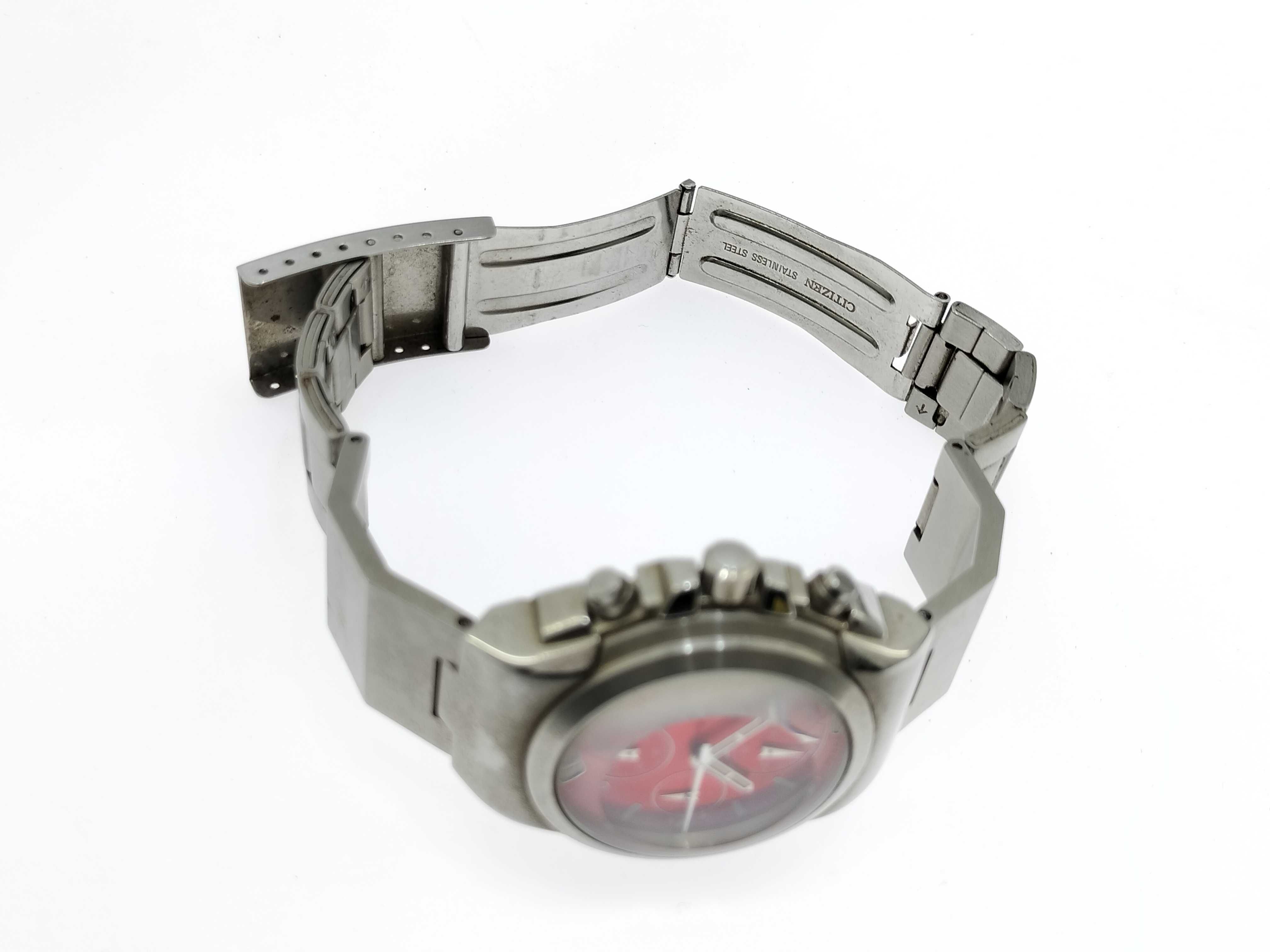 (M_0355)CITIZEN シチズン 0510-K12151 070134 SS/QZ レッド文字盤 不動 動作保証なし メンズ腕時計