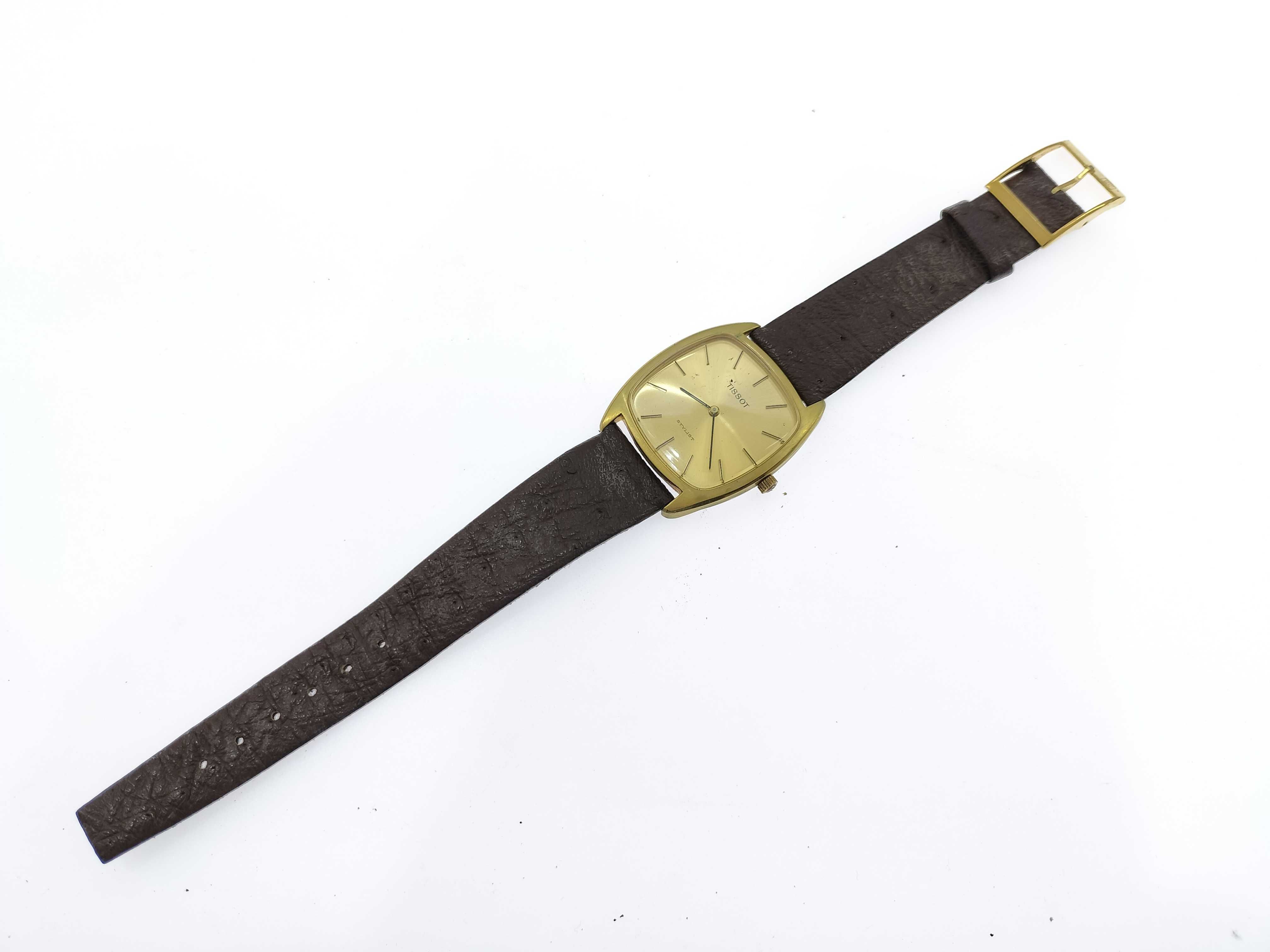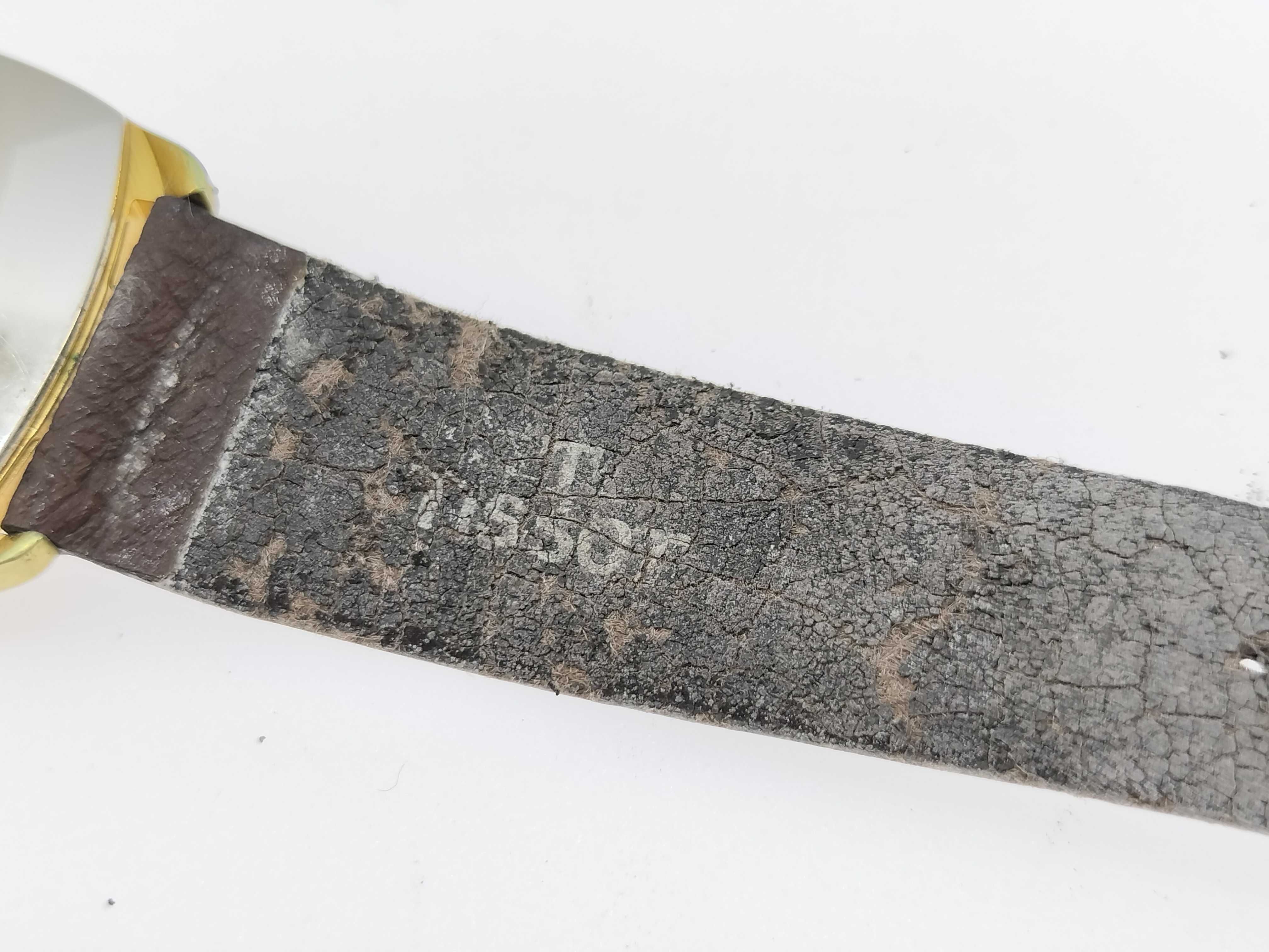 (M_0403)▼ティソ SS/GP/革/手巻き ゴールド文字盤 メンズ腕時計
