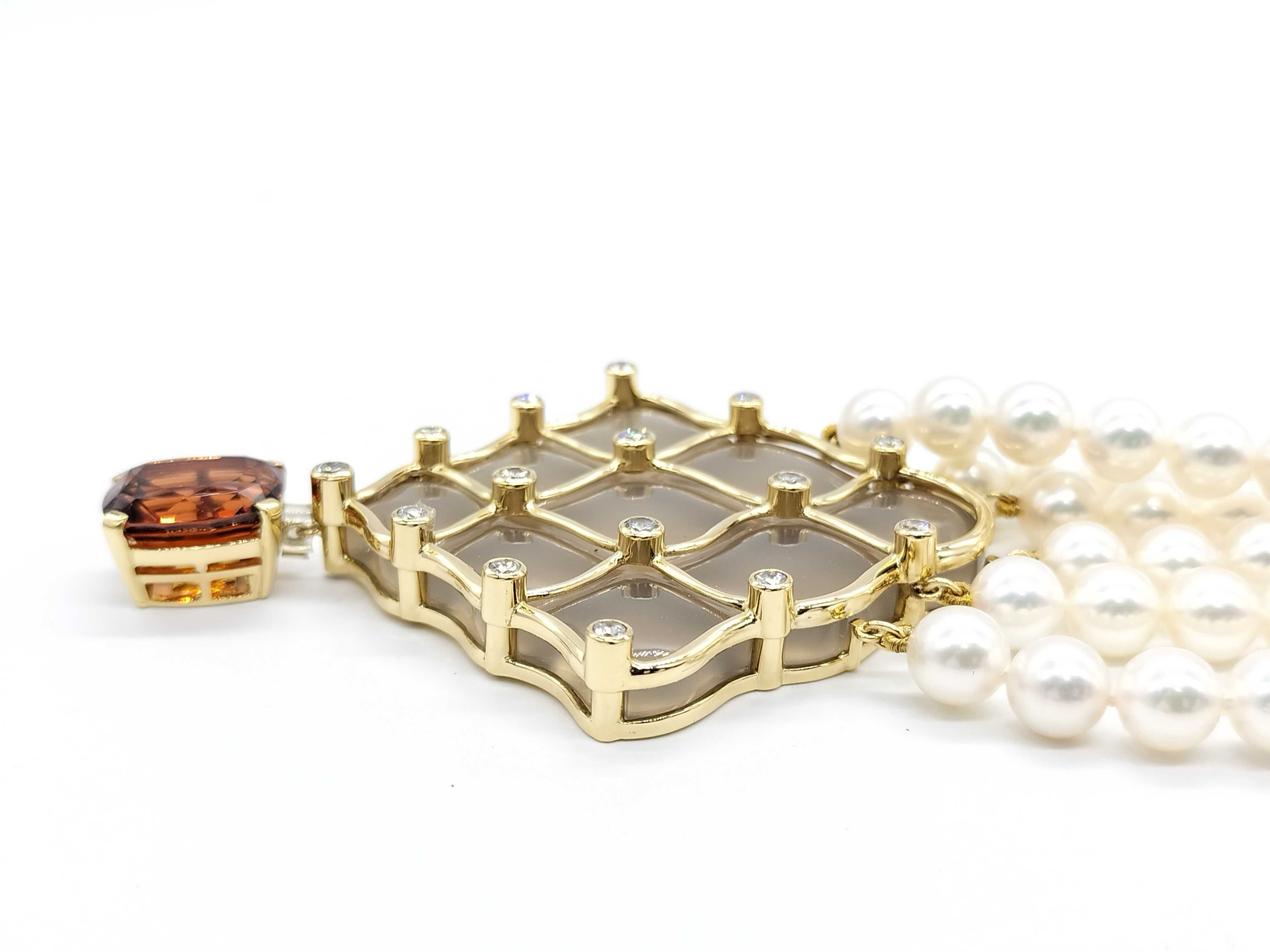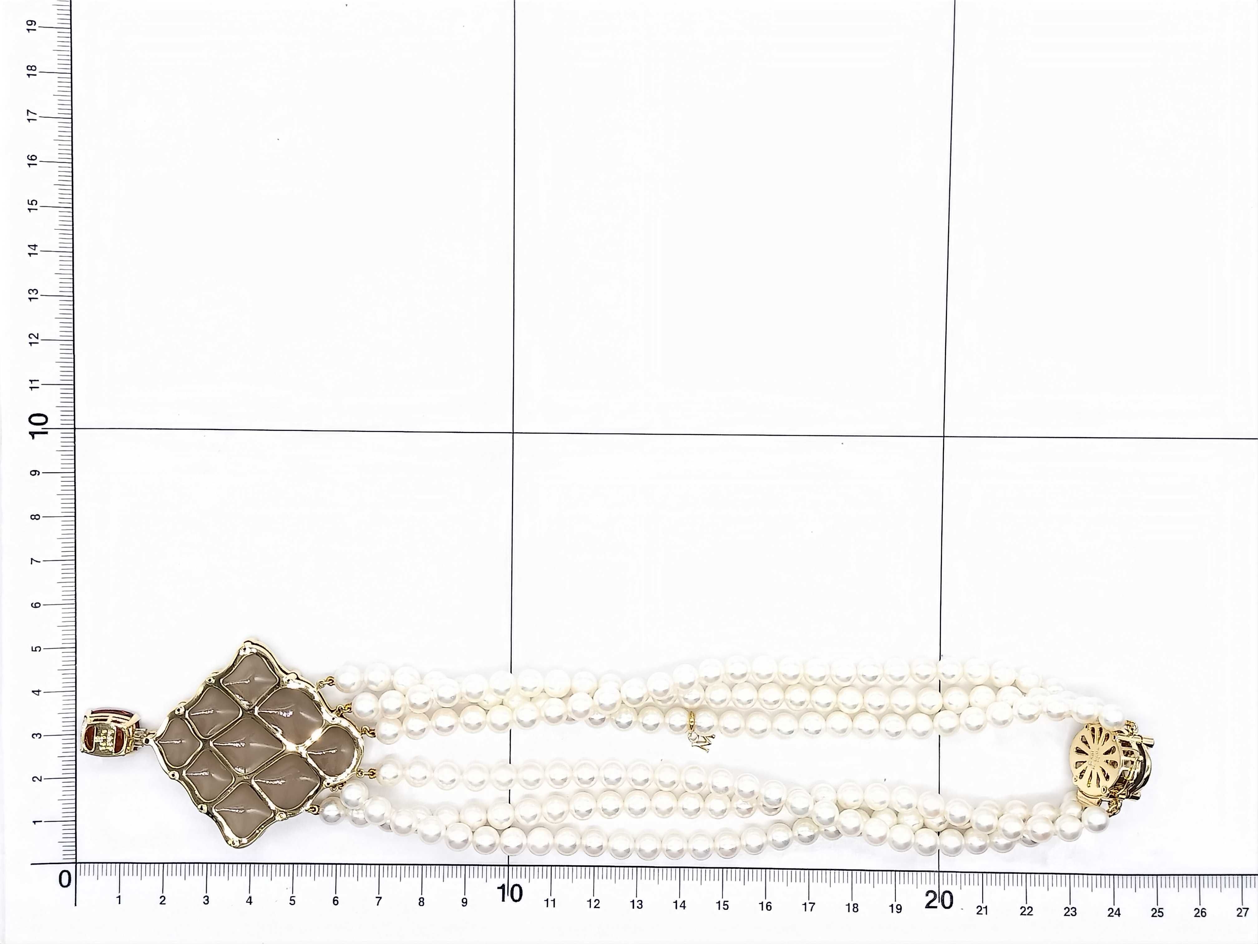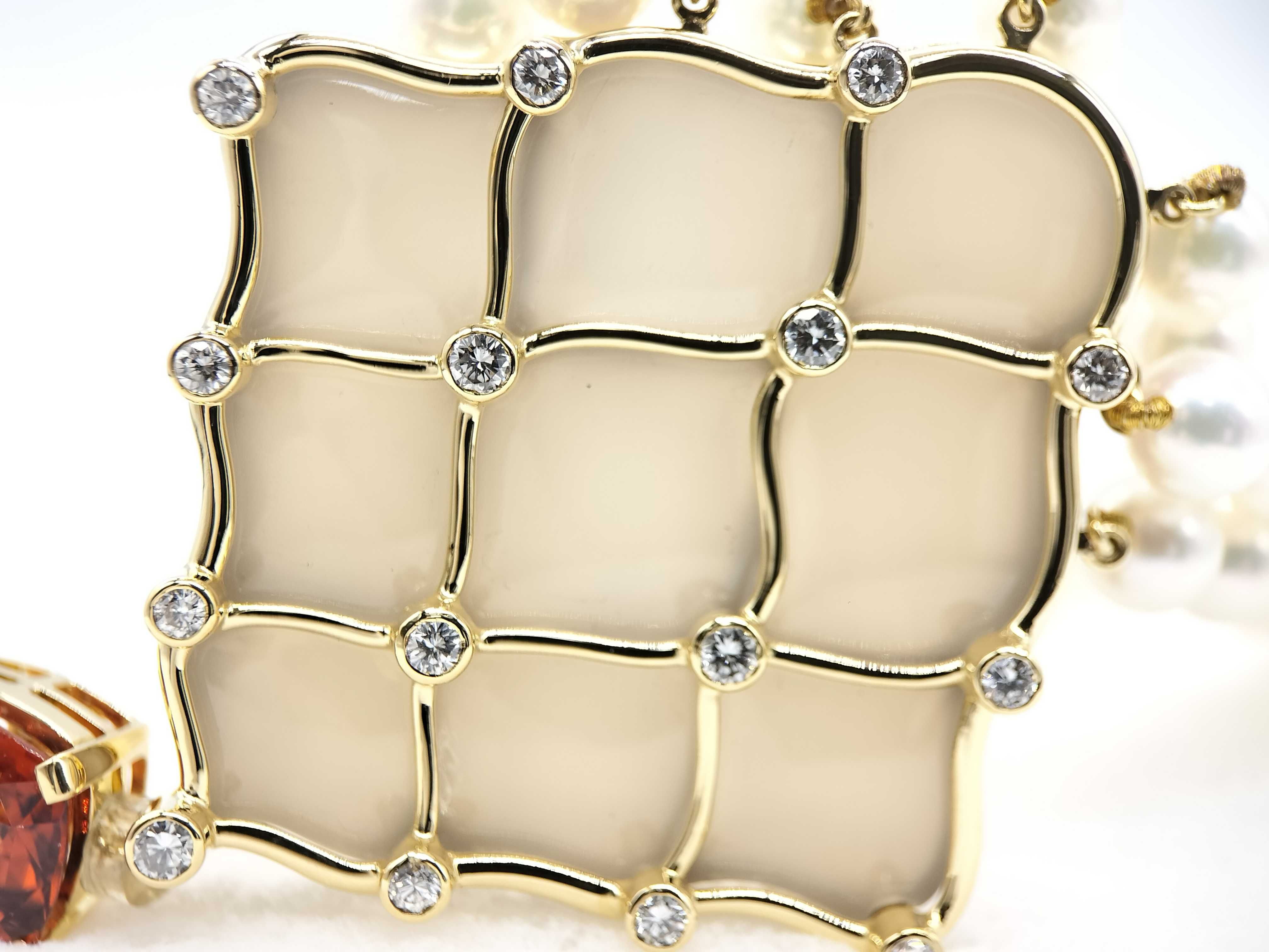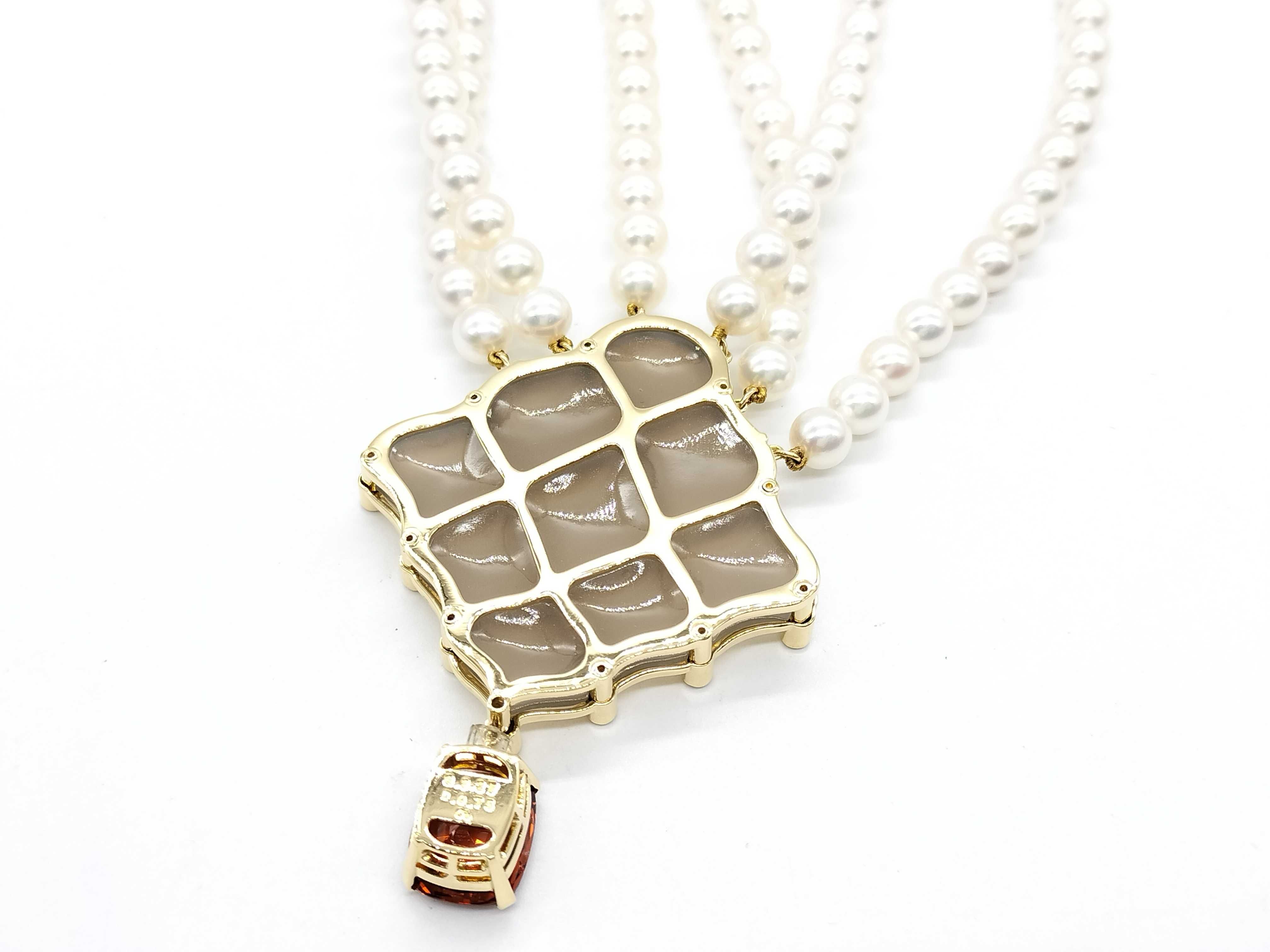 (N_0243)MIKIMOTO カルセドニー アコヤパール直径約6.0mm-6.5mm G8.27ct D0.75ct/0.24ct K18 100.7g ネックレス(貴金属)