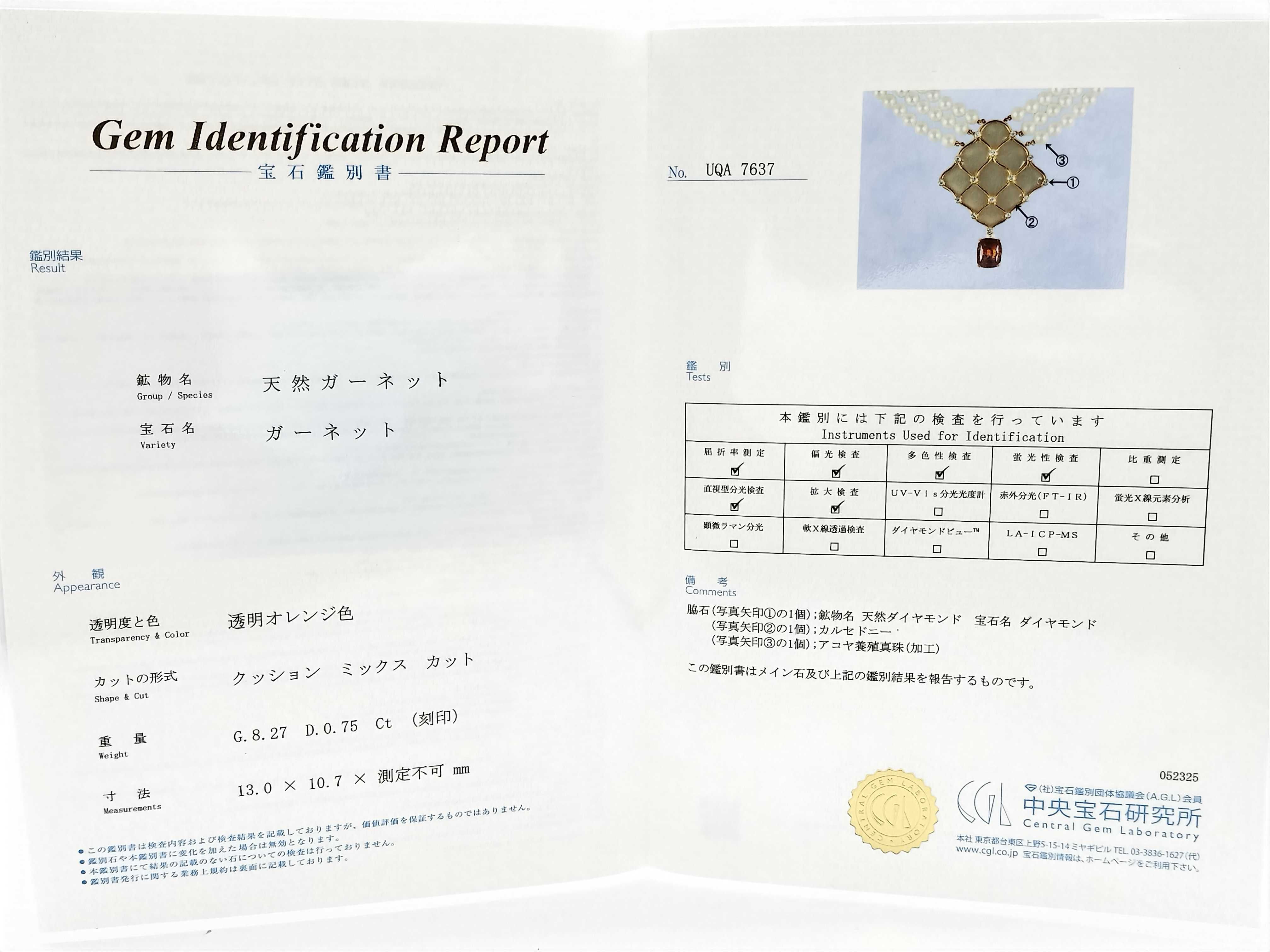 新品仕上げ済み. アコヤパール評価=A. ガーネット評価=【色