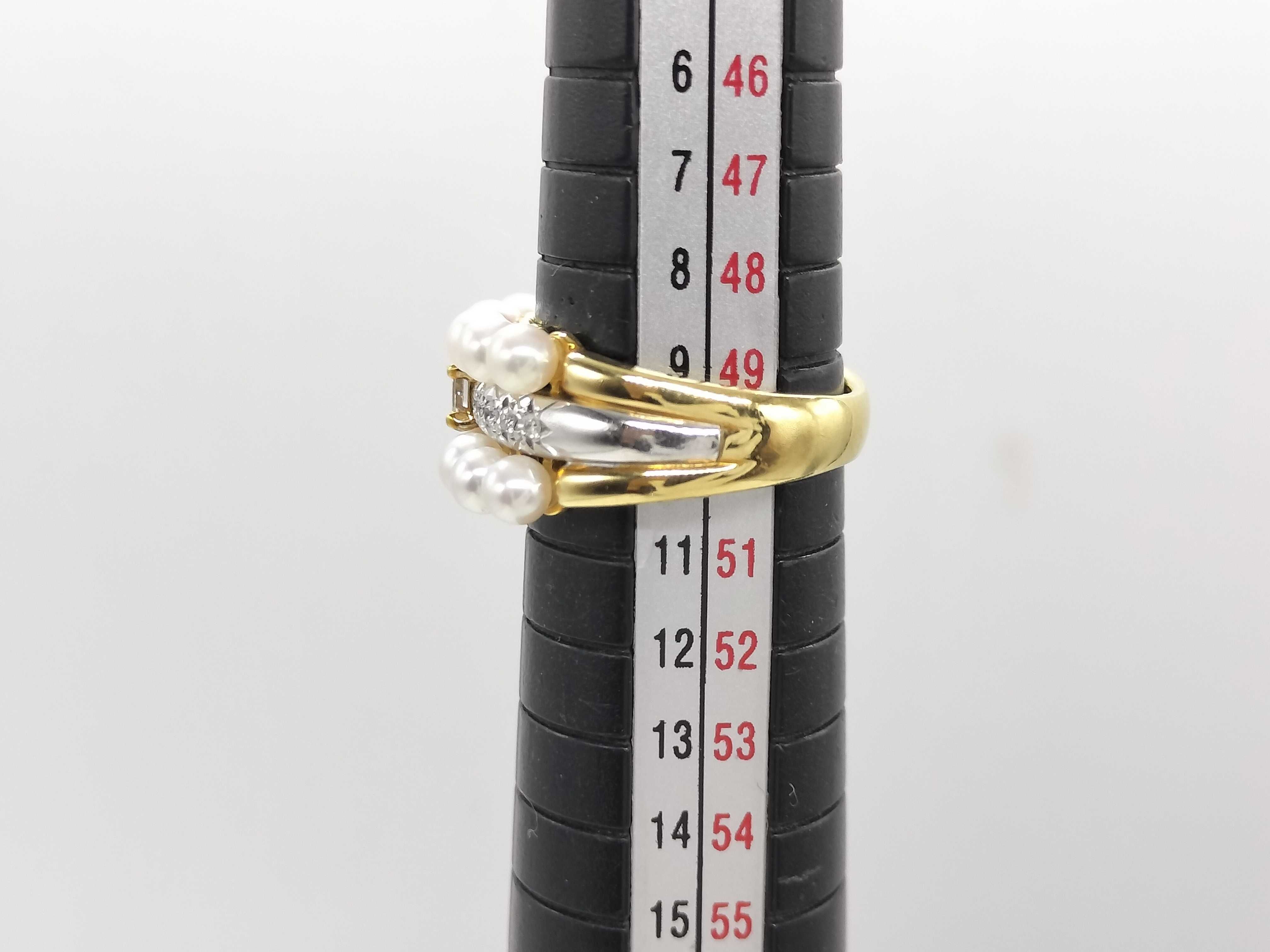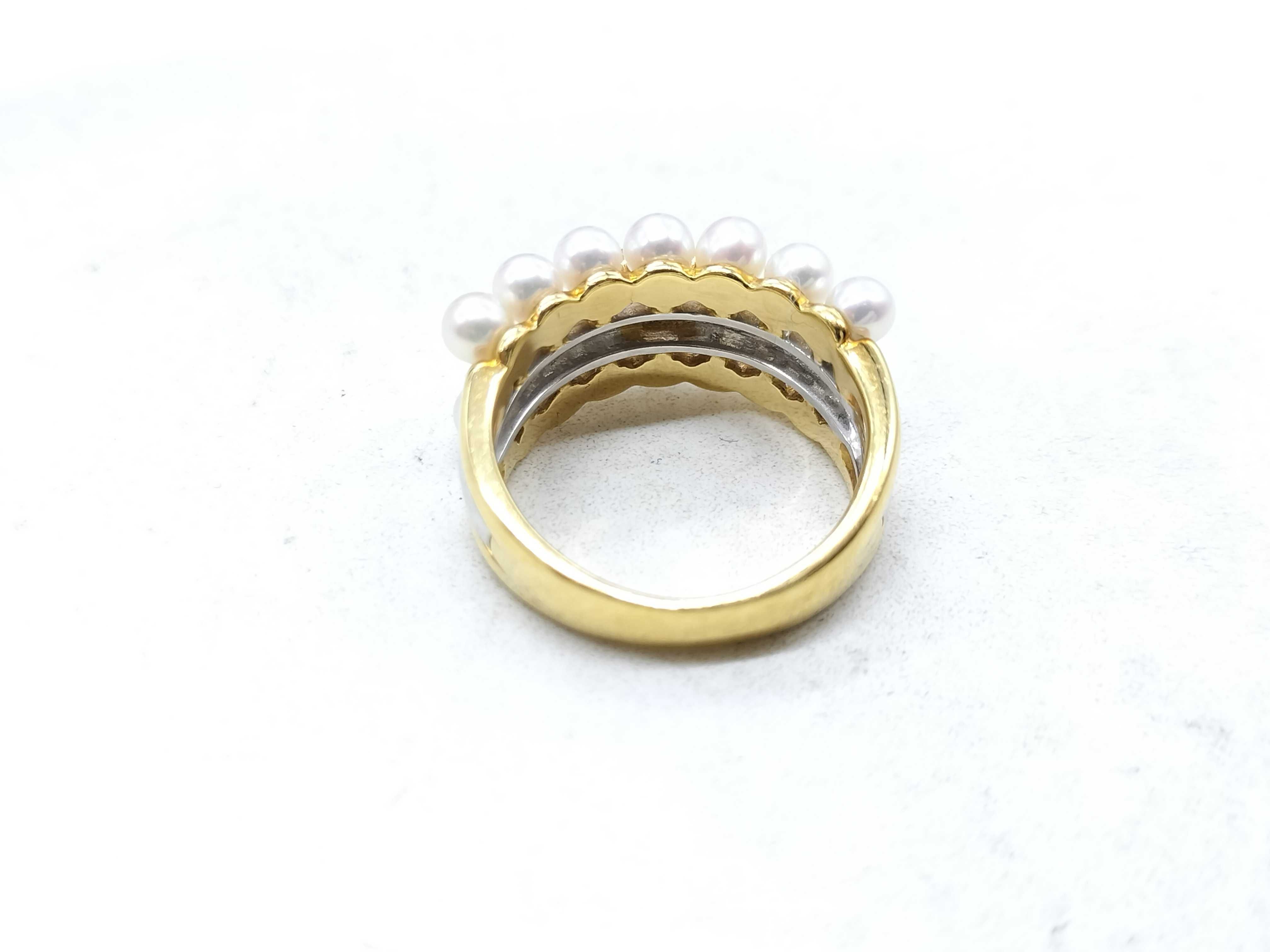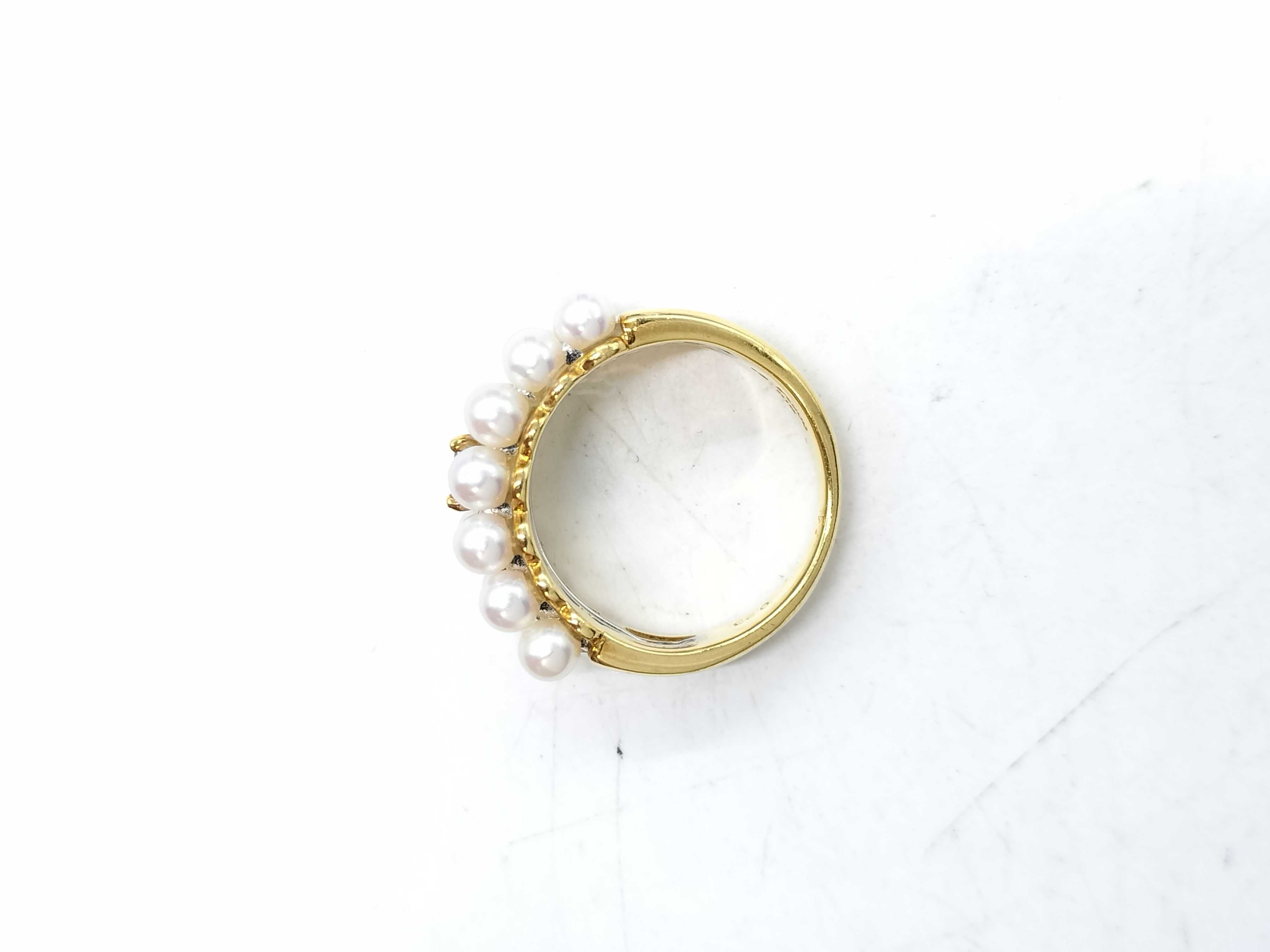 (N_0276)TASAKI アコヤパール 直径約3.2mm-3.5mm D0.23ct K18/Pt900 8.2g リング(貴金属)