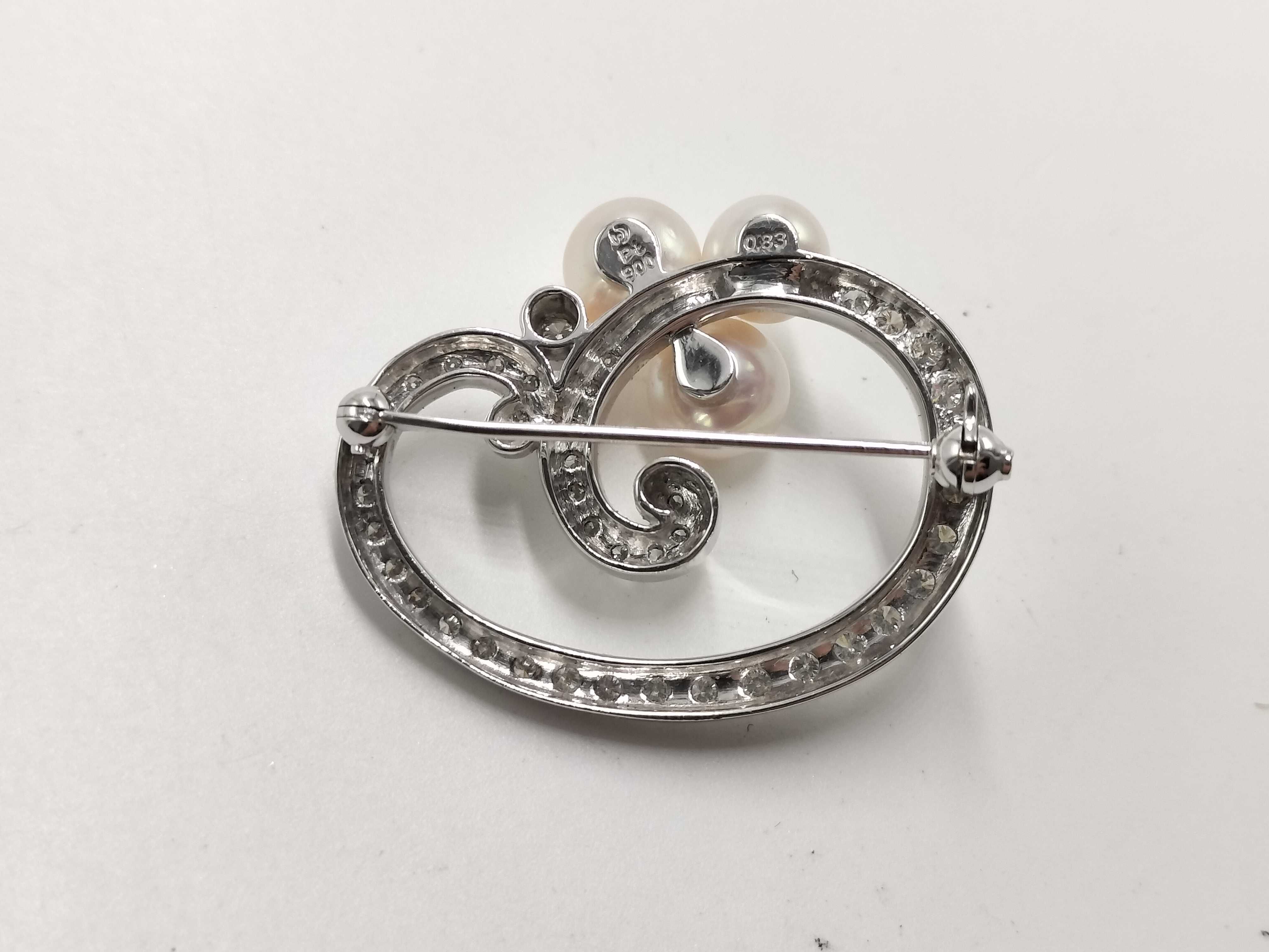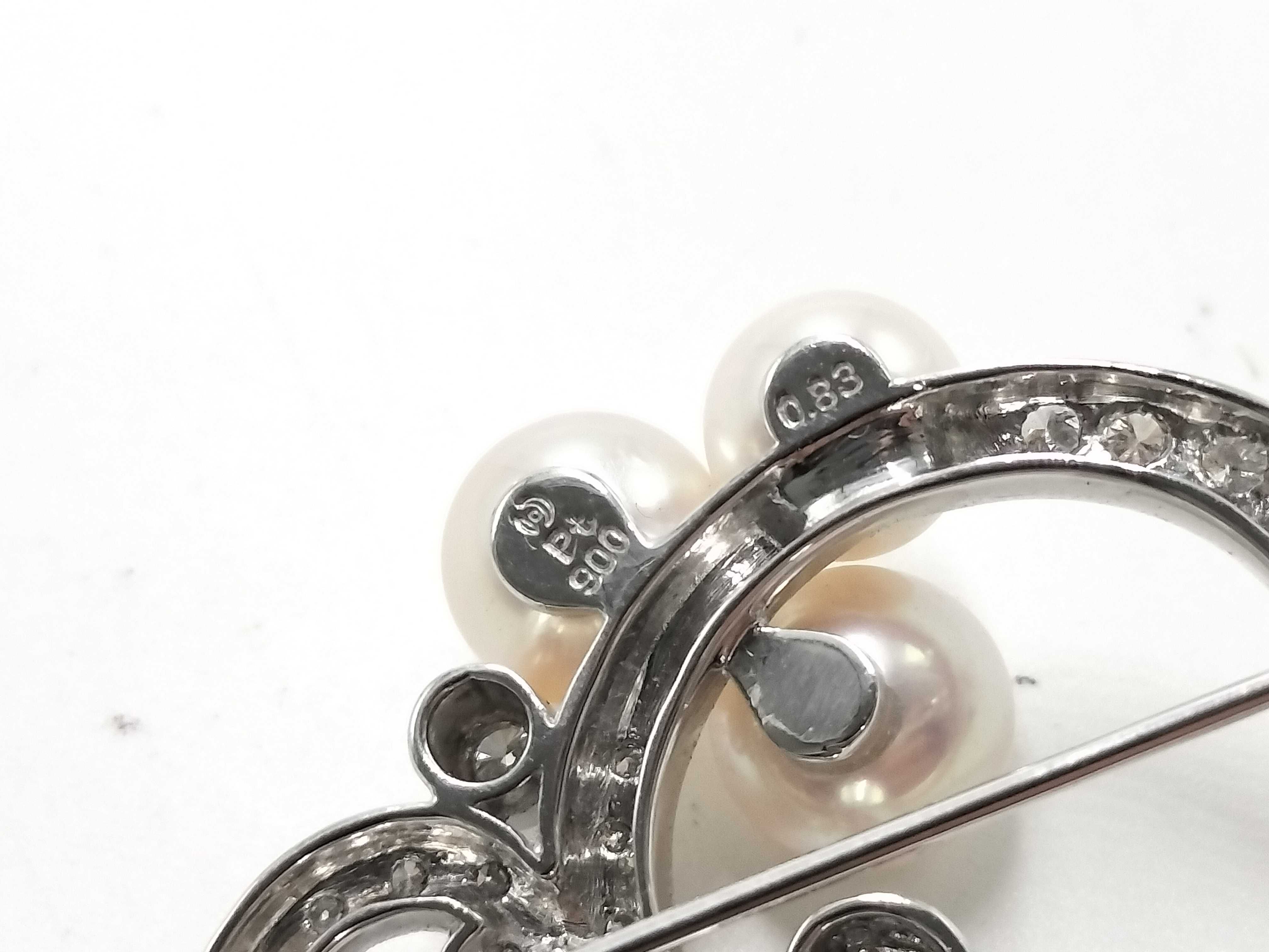 (N_0279)TASAKI アコヤパール直径 約6.7mm-7.5mm D0.83ct PT900 12.3g ブローチ(貴金属)