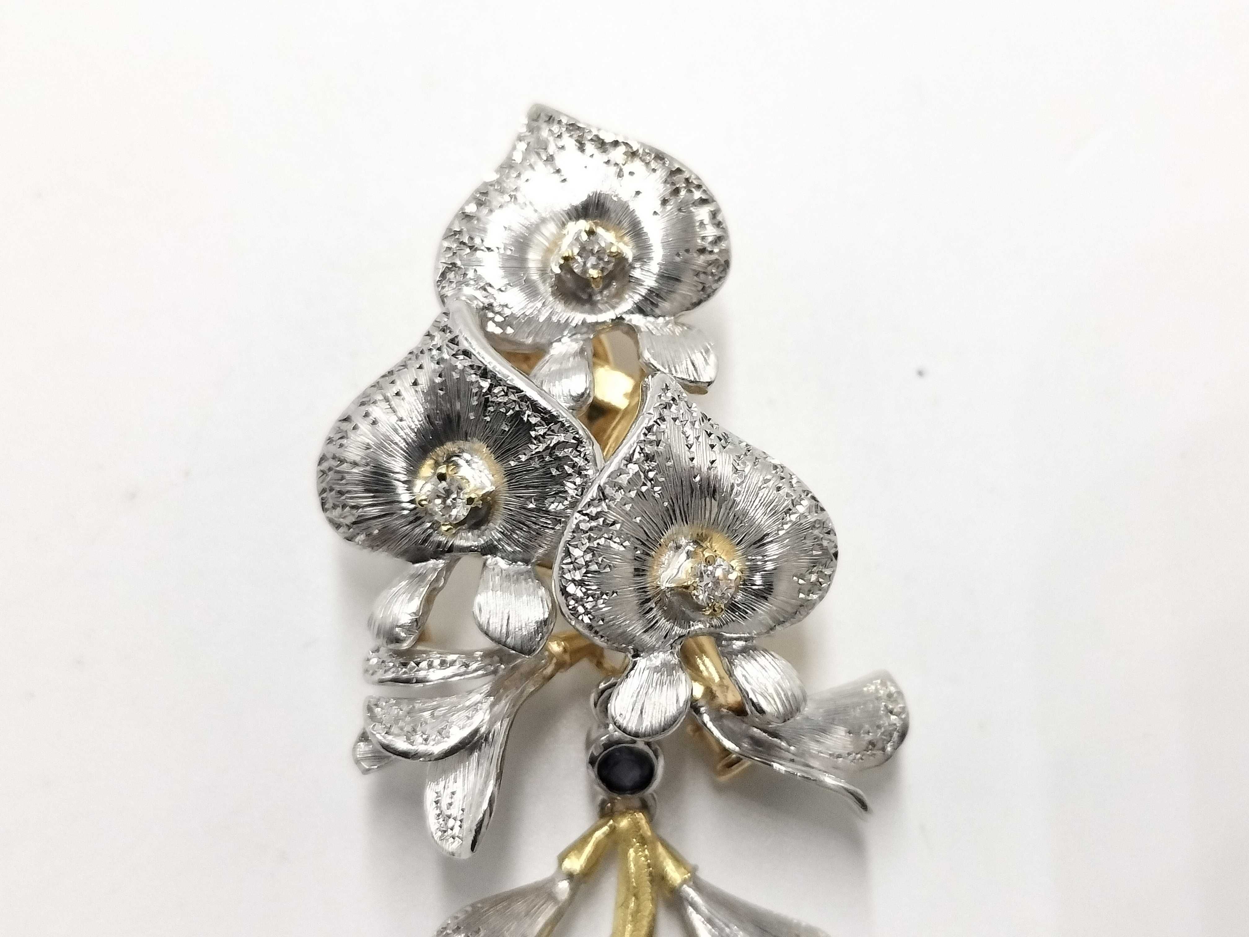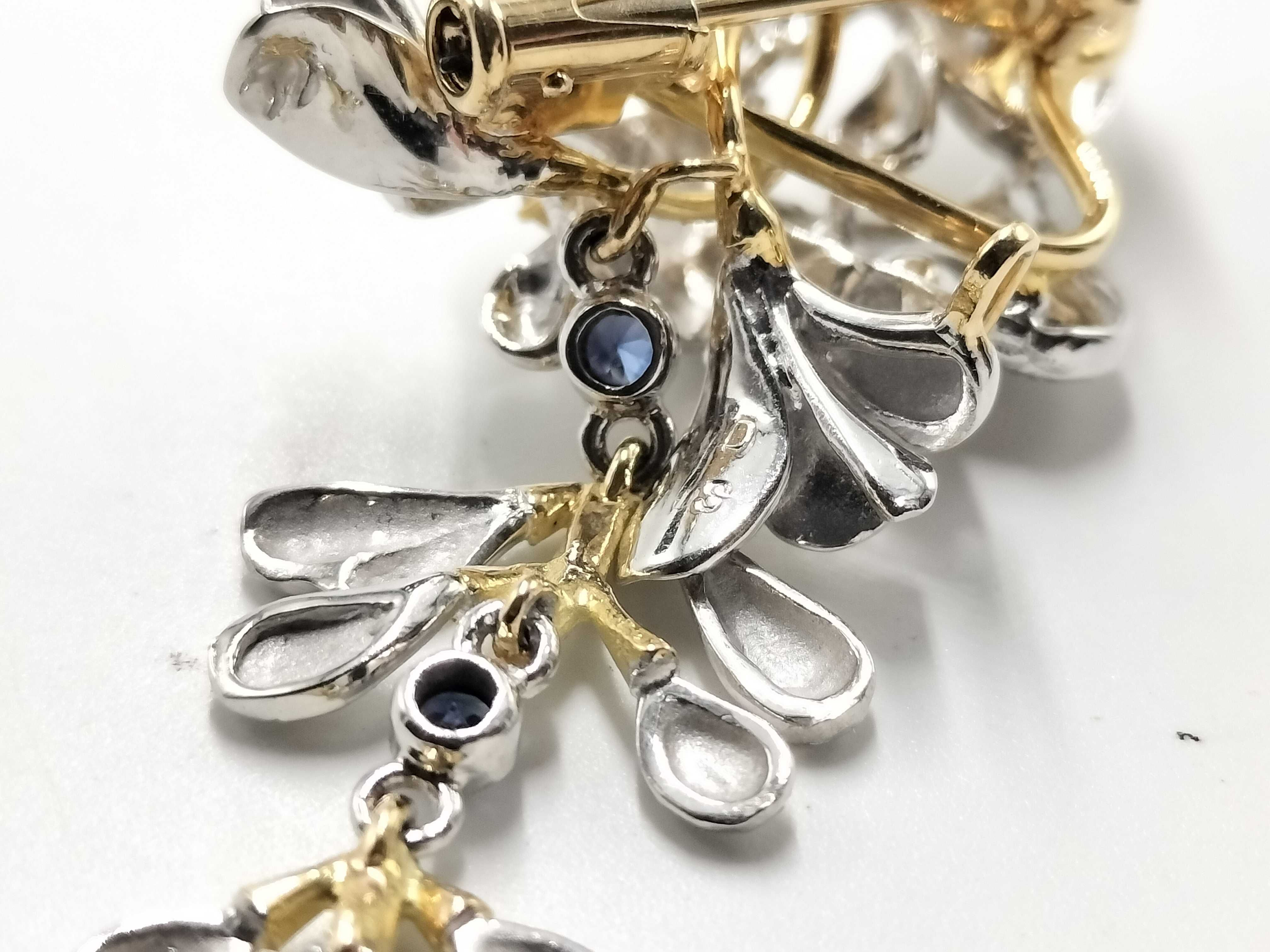 (N_0327)石川 暢子 as Time サファイア ダイヤ K18/K18WG 9.4g ブローチ(貴金属)