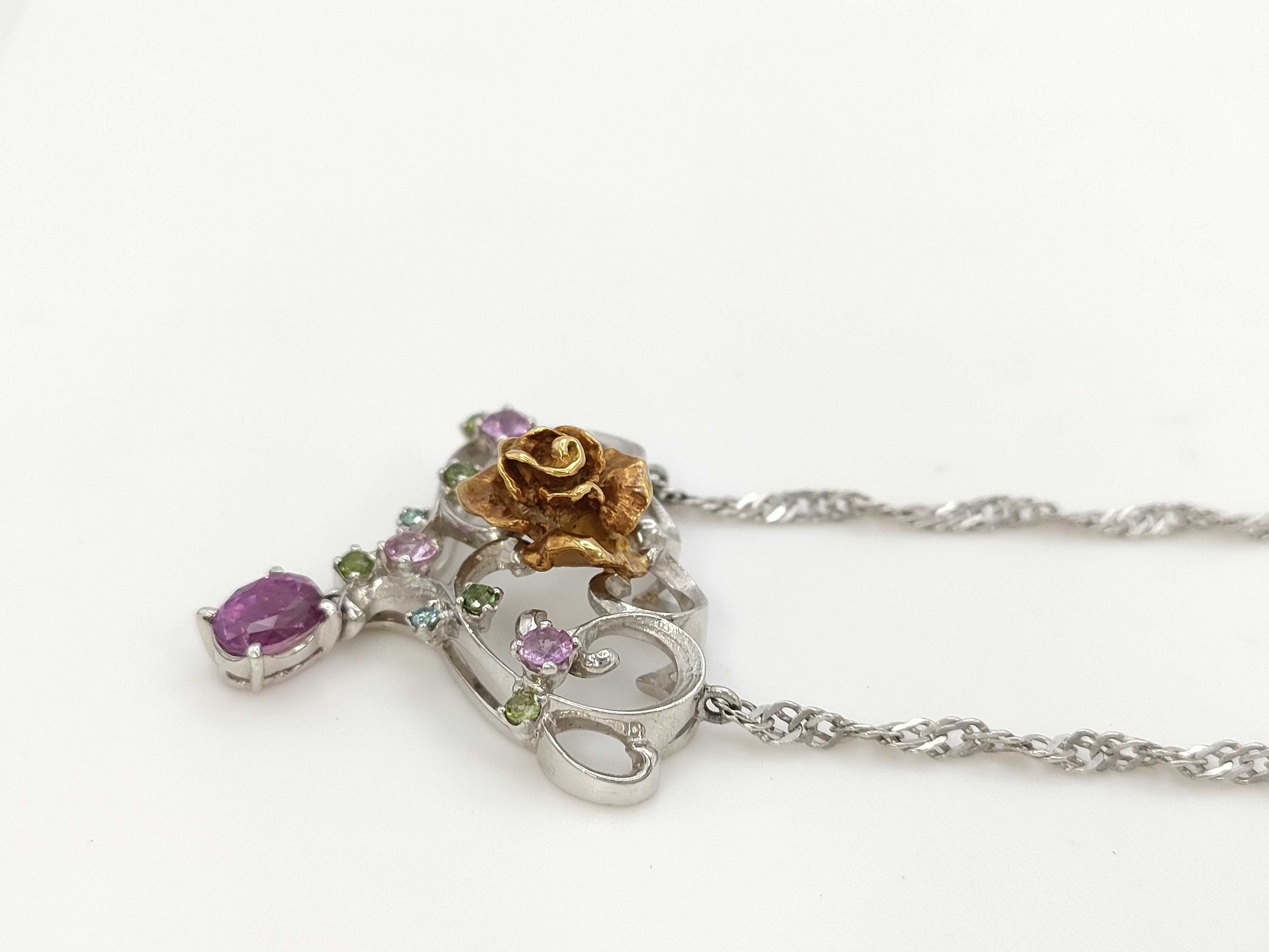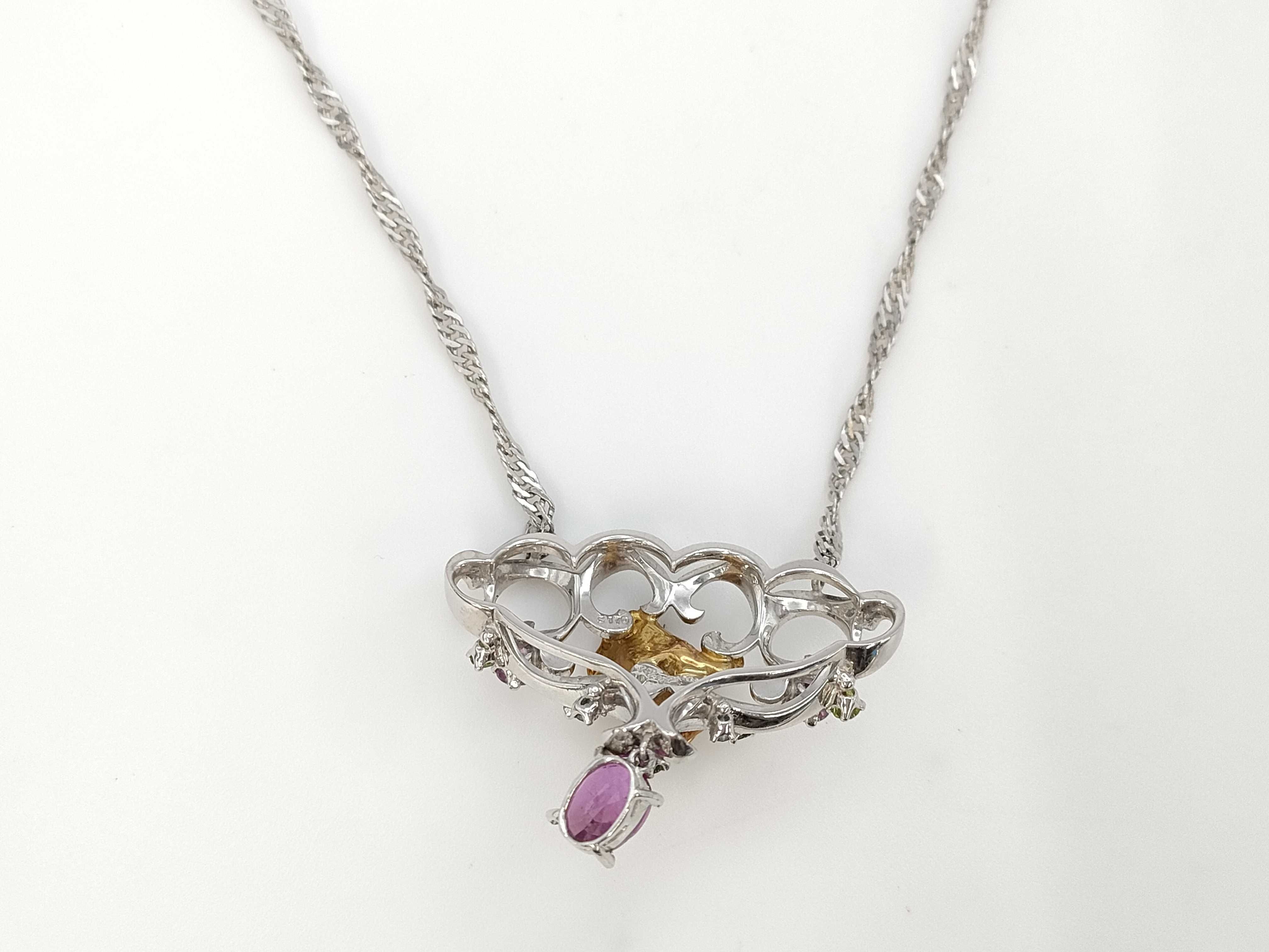(N_0336)岩倉 康二 S1.70ct 色石 PT900/K18/PT850 19.0g ネックレス(貴金属)