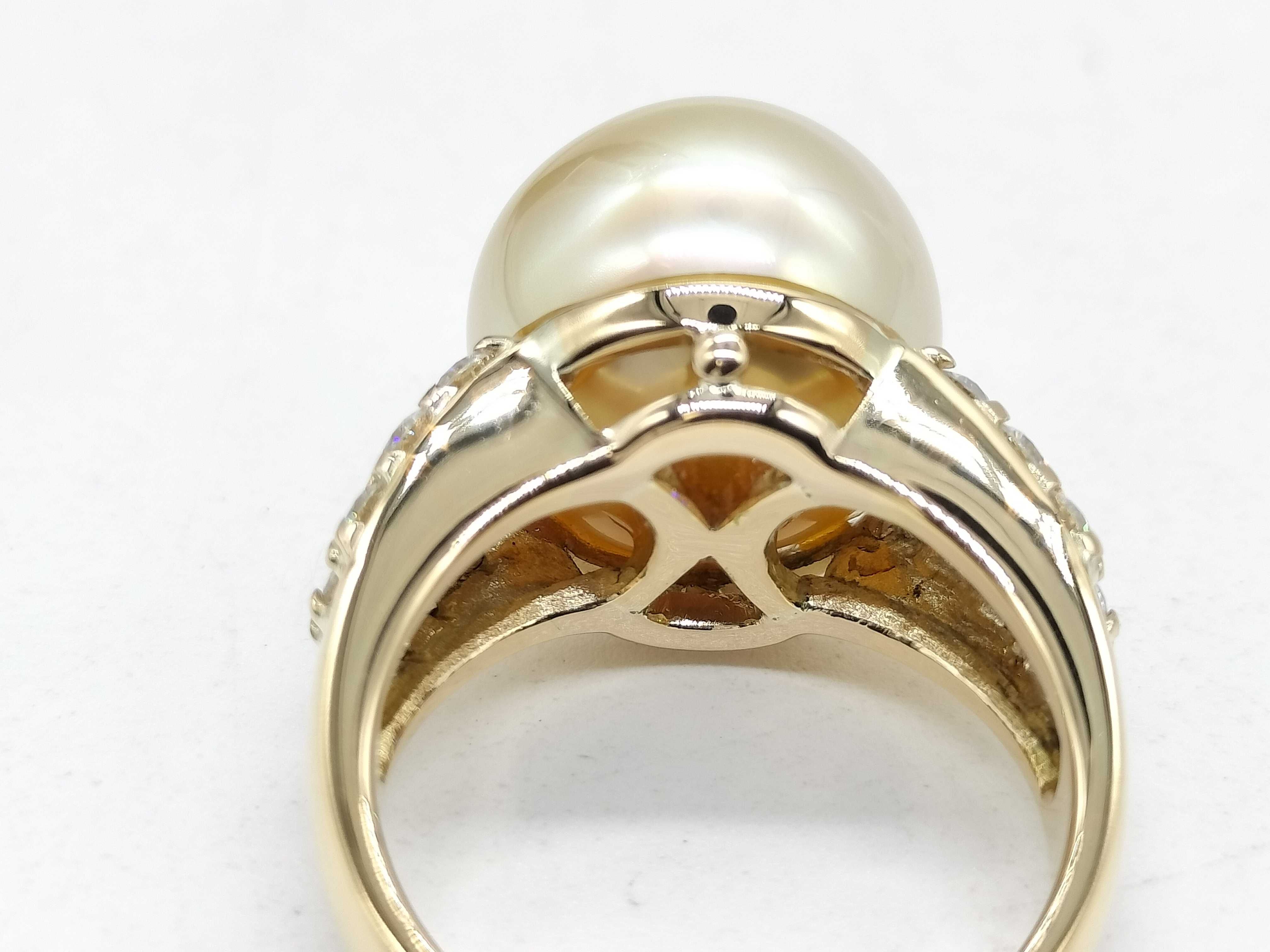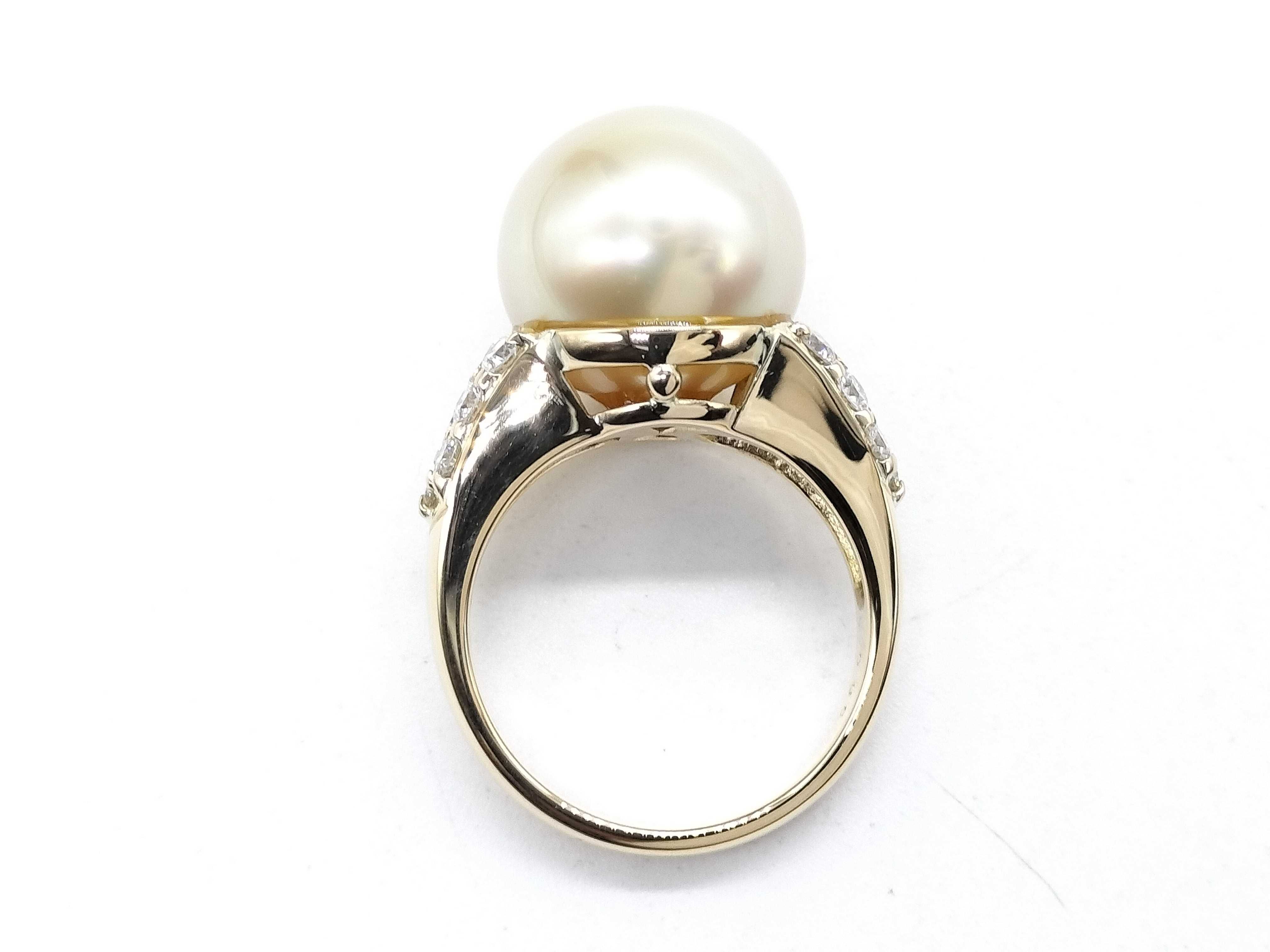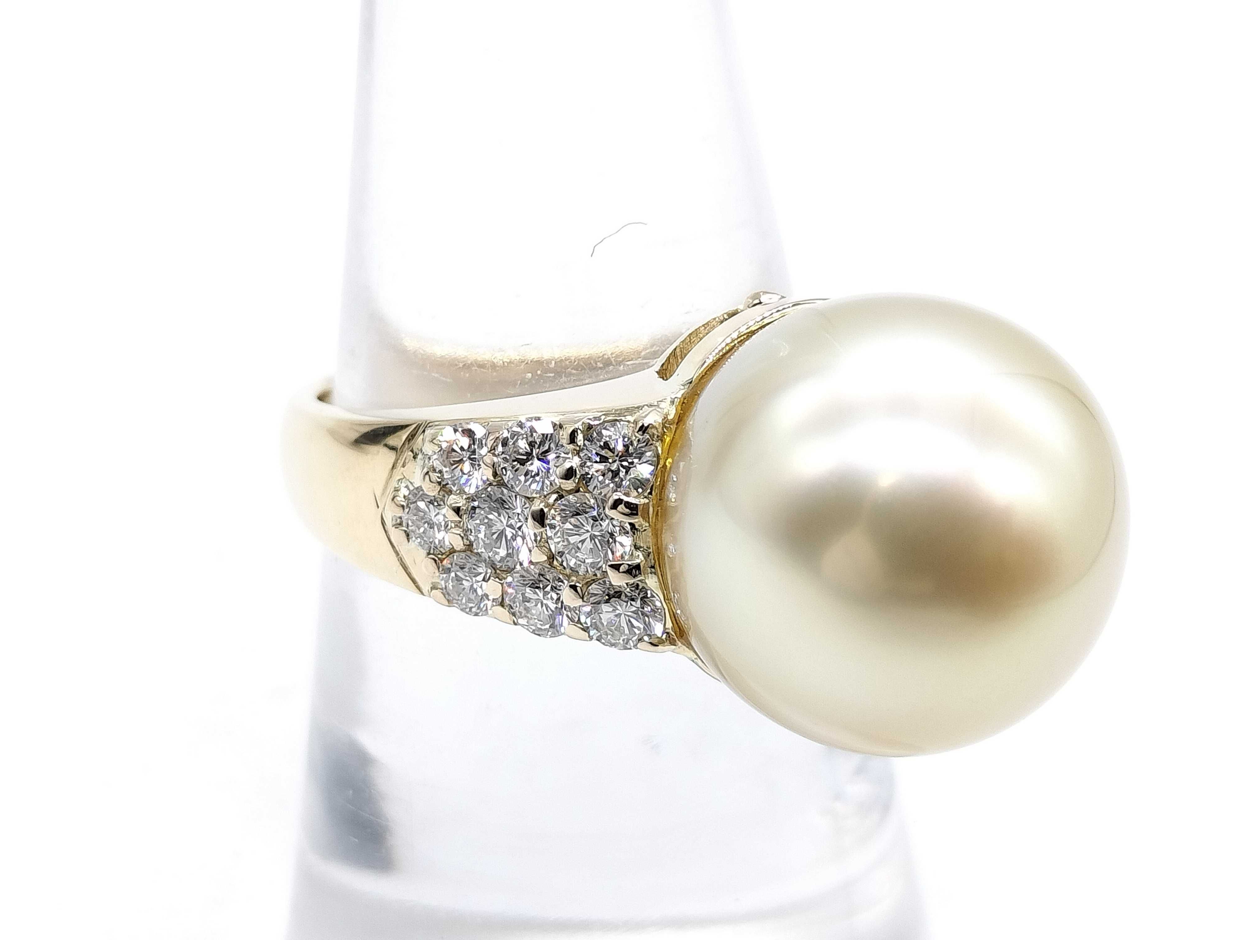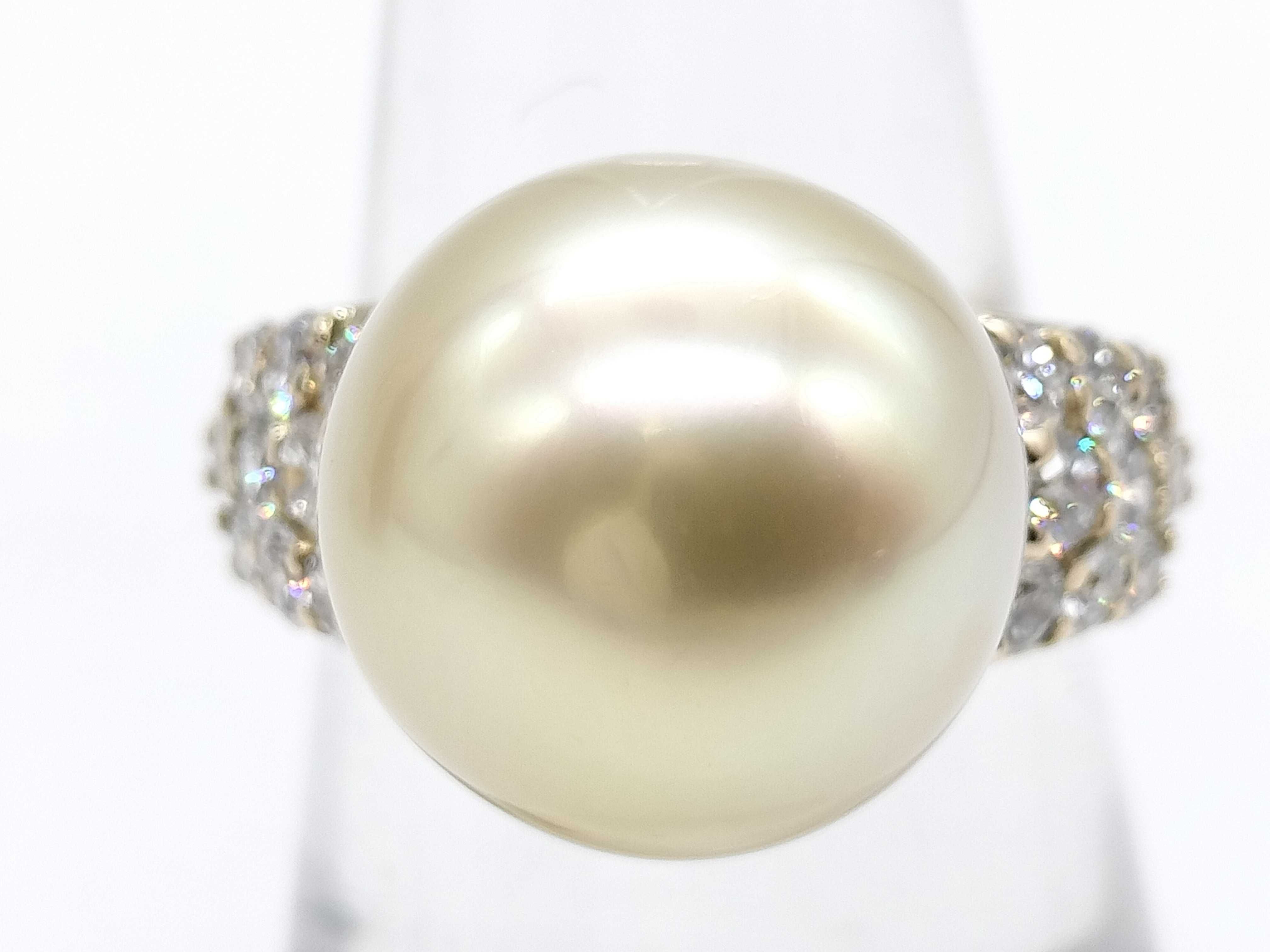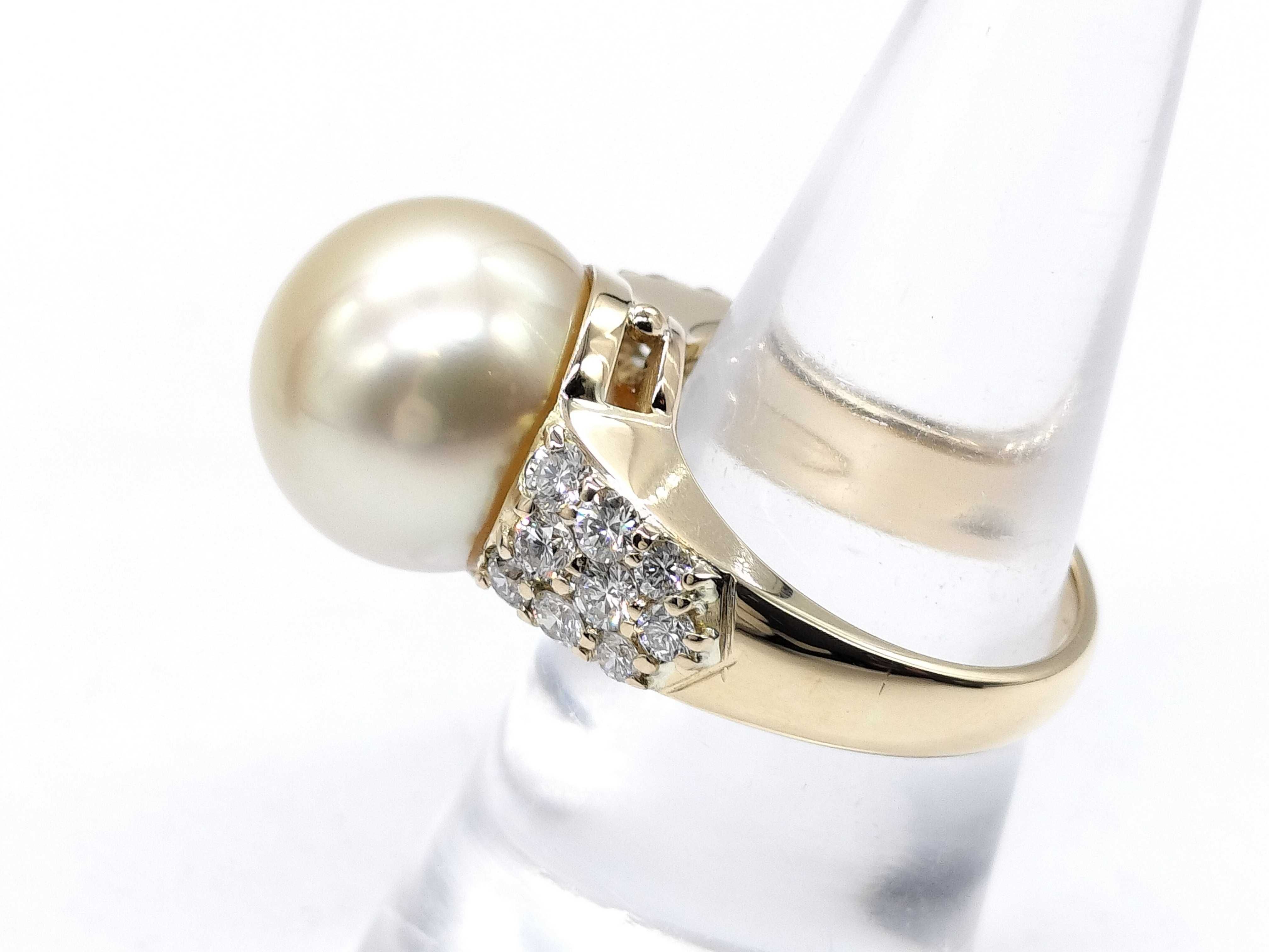 (N_0370)南洋パール 直径約13.2mm*13.4mm D0.86ct K18 9.7g リング(貴金属)