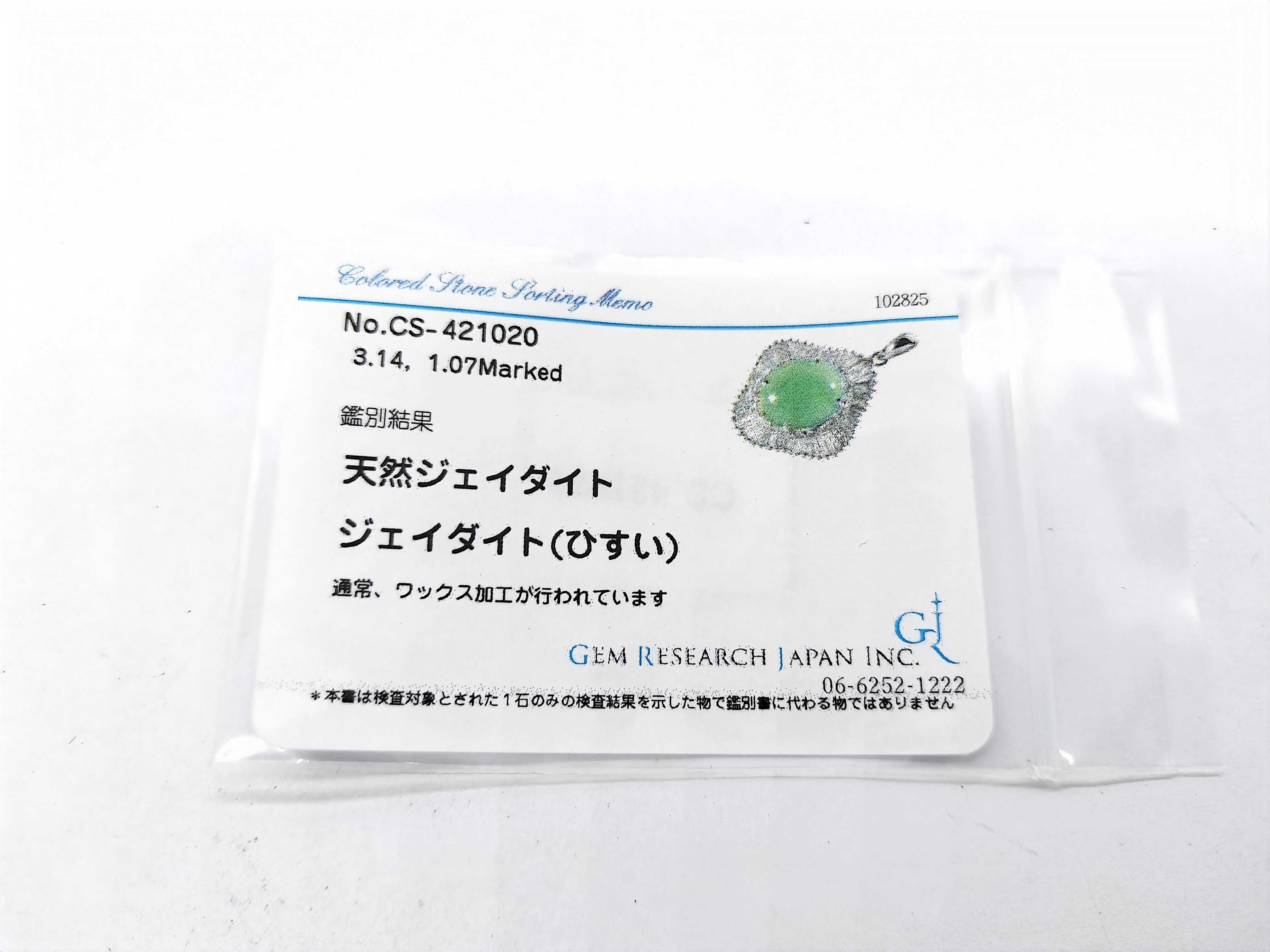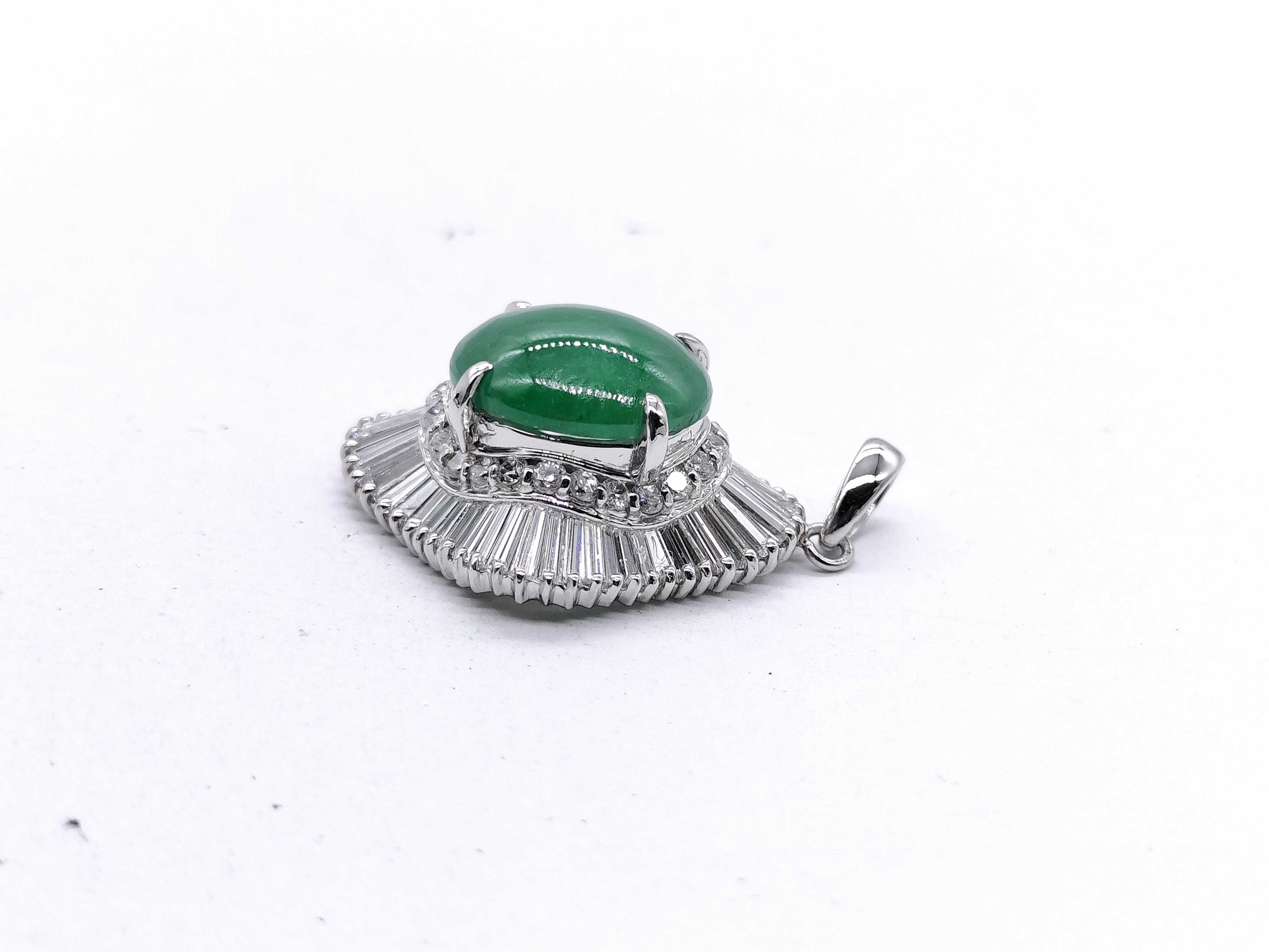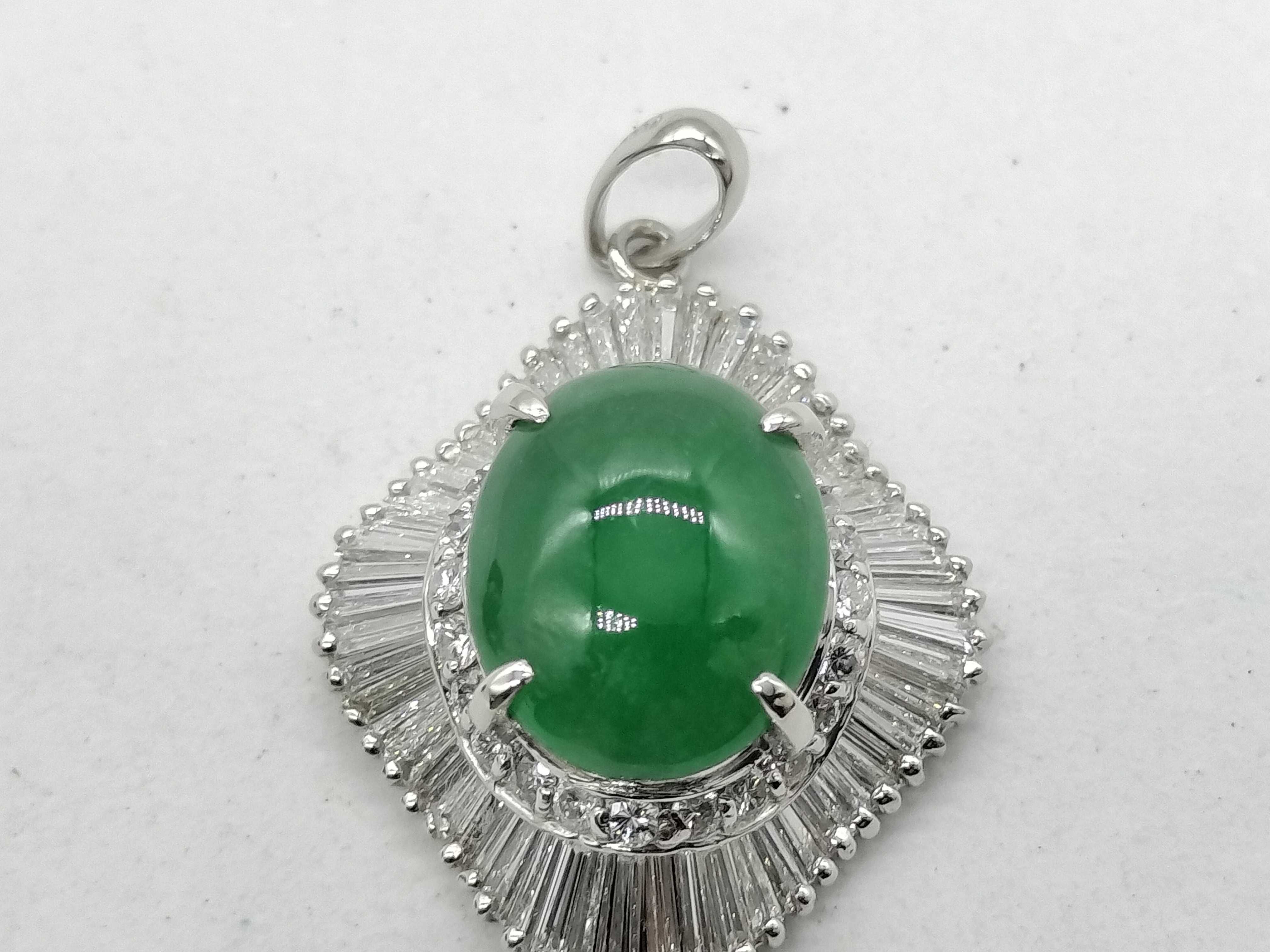 (N_0390)翡翠3.14ct D1.07ct Pt900 5.8g ペンダントトップ(貴金属)
