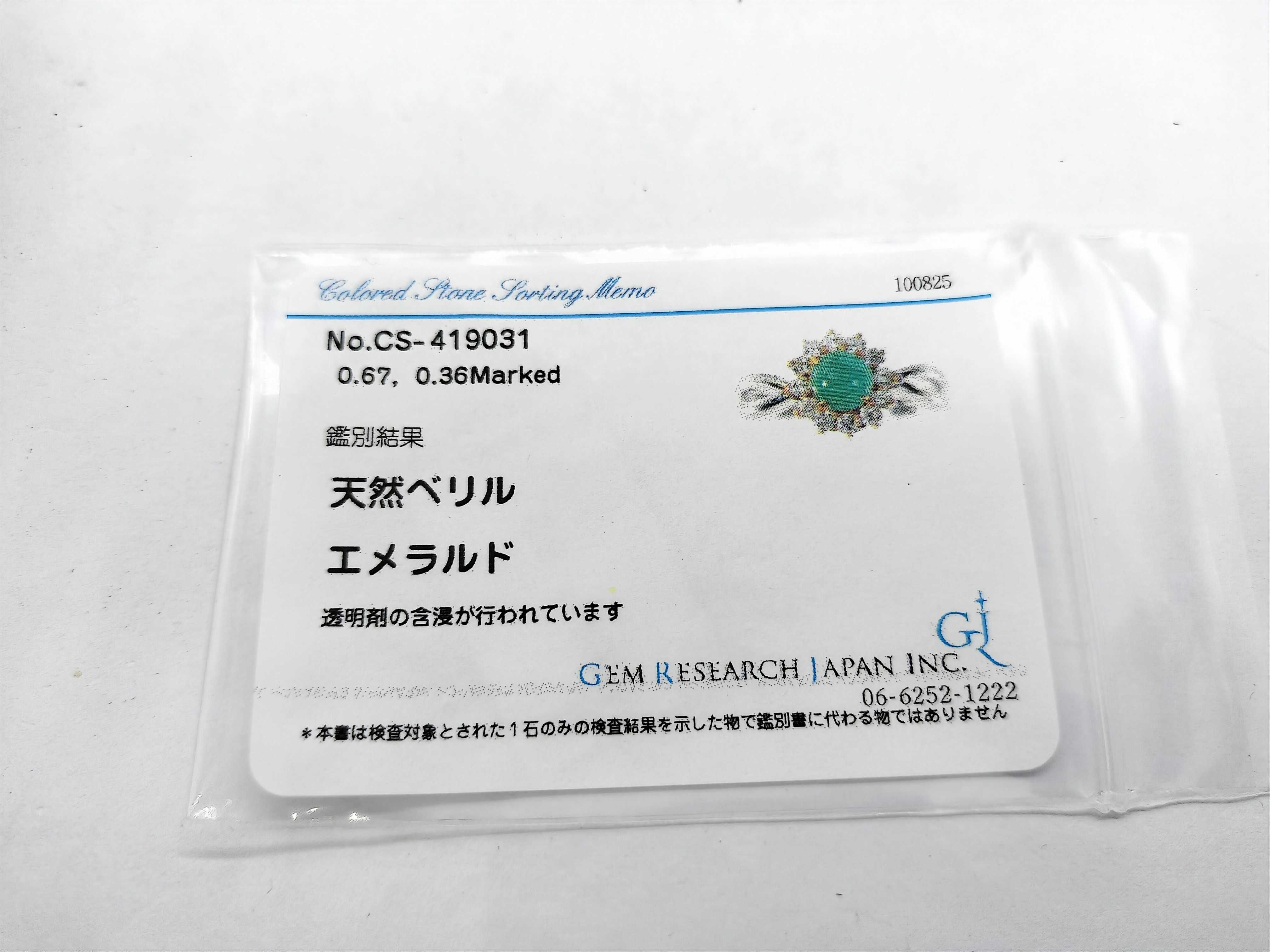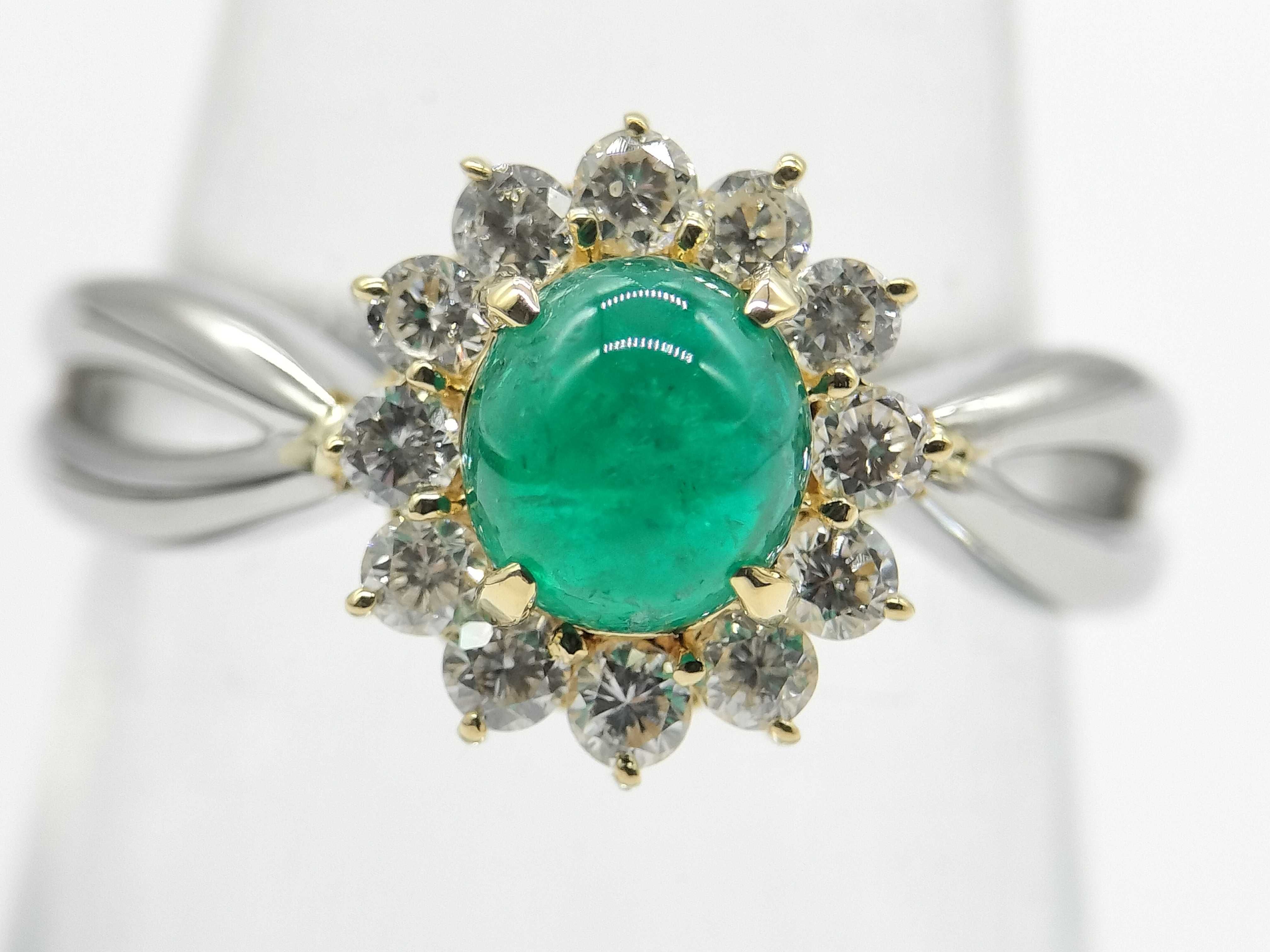 新品仕上げ済み. カボションエメラルド評価=B(GRJソ). ダイヤ評価=B(数石面カケあり). 【付属品