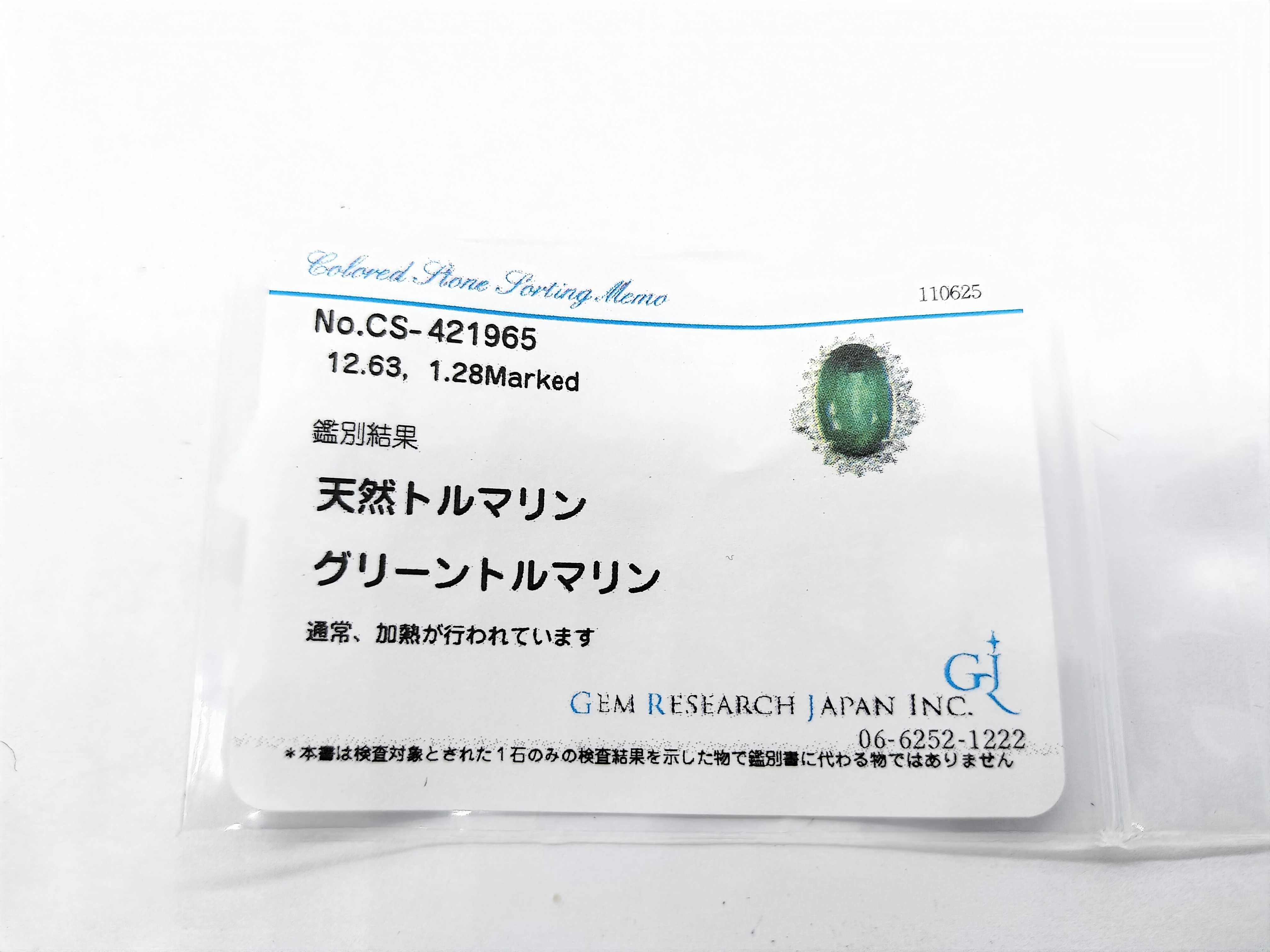 新品仕上げ済み. グリーントルマリン評価 【色