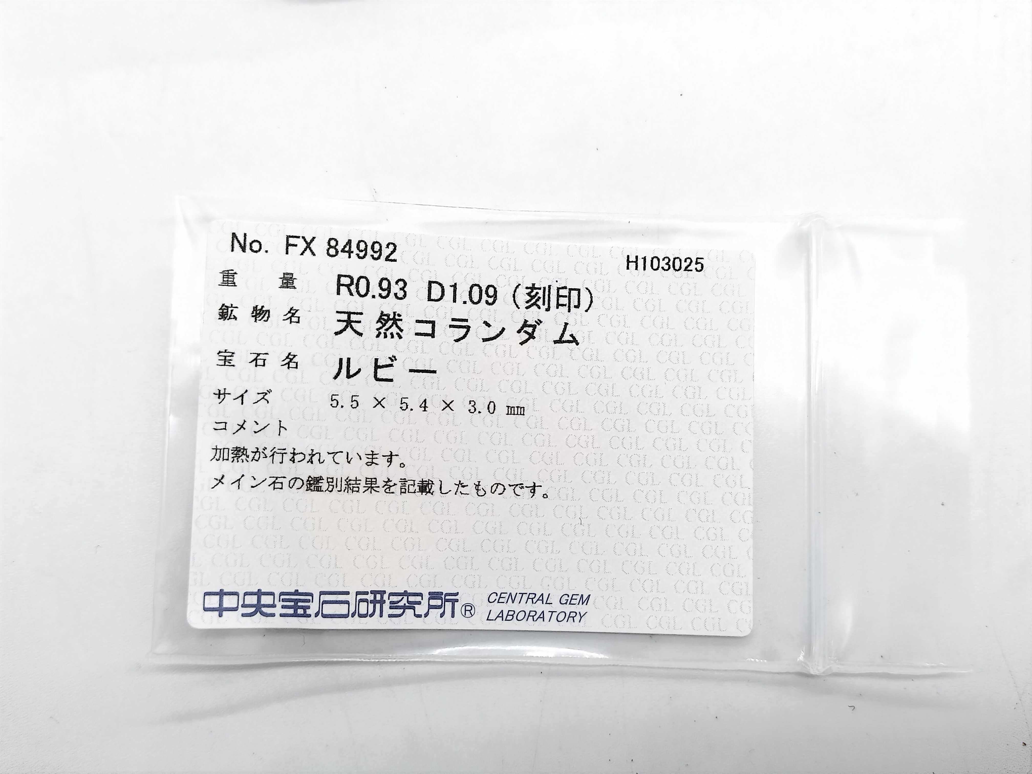 新品仕上げ済み. ルビー評価 B(CGLソ/面キズあり). ダイヤ評価 B【付属品