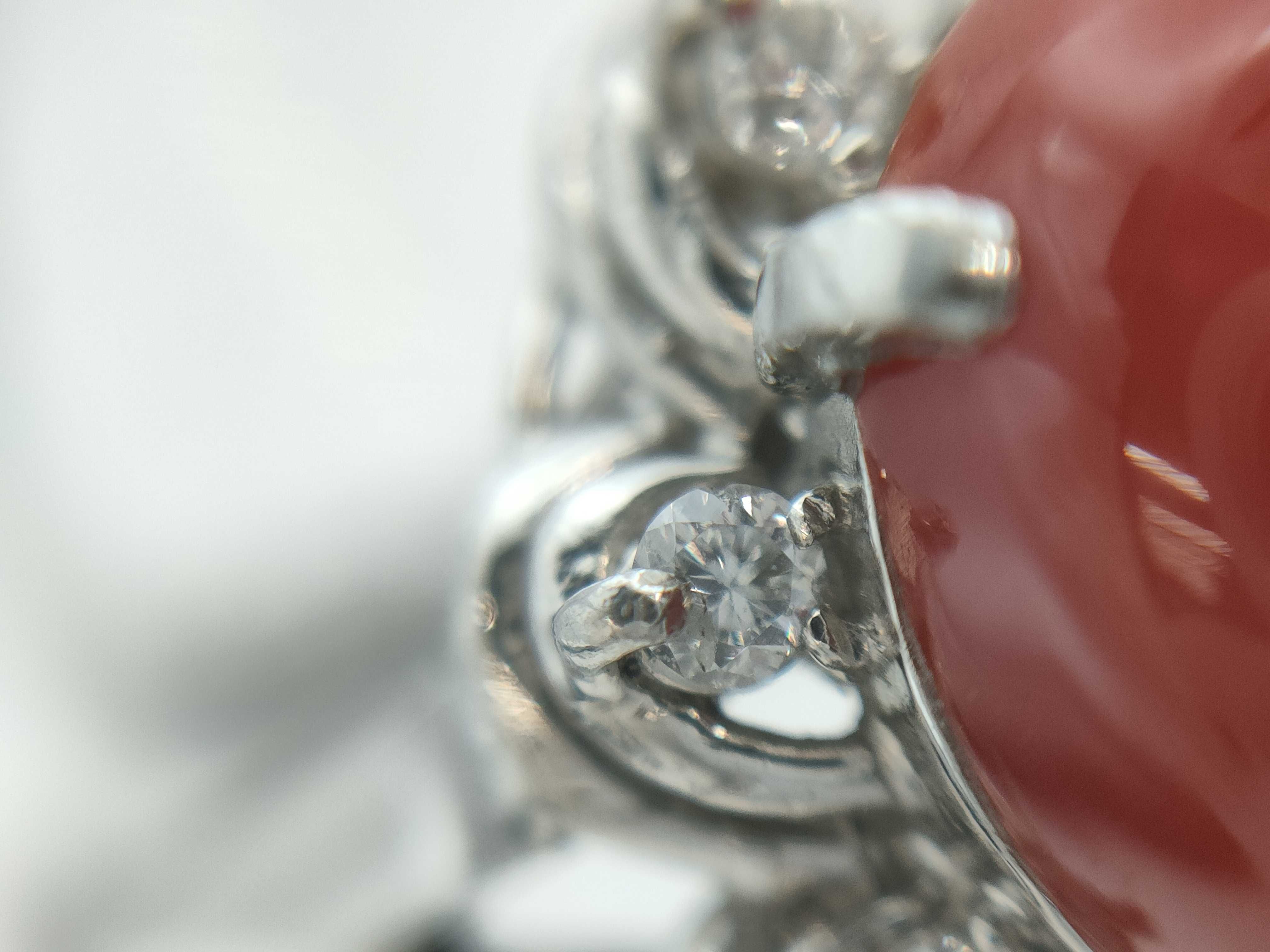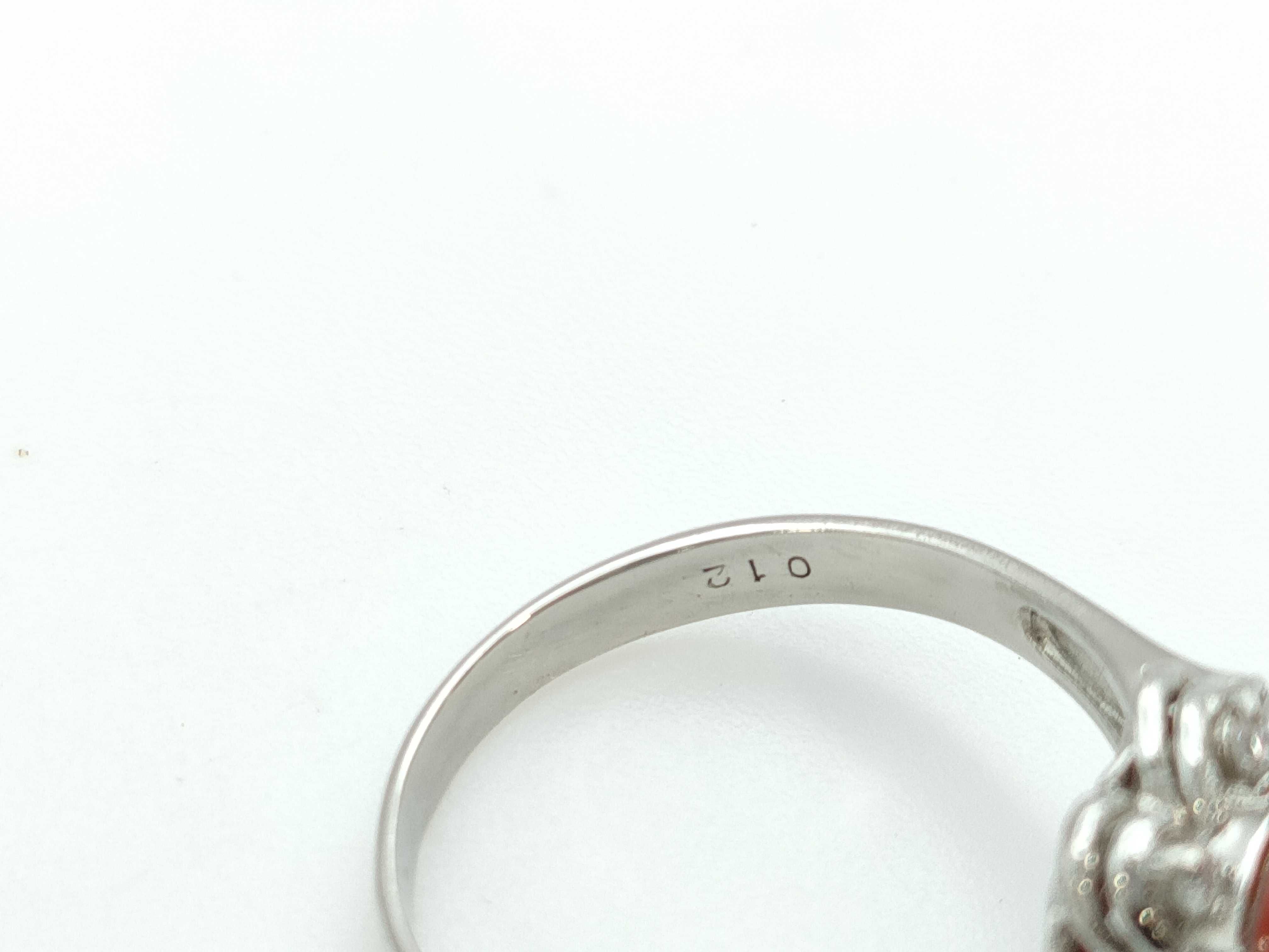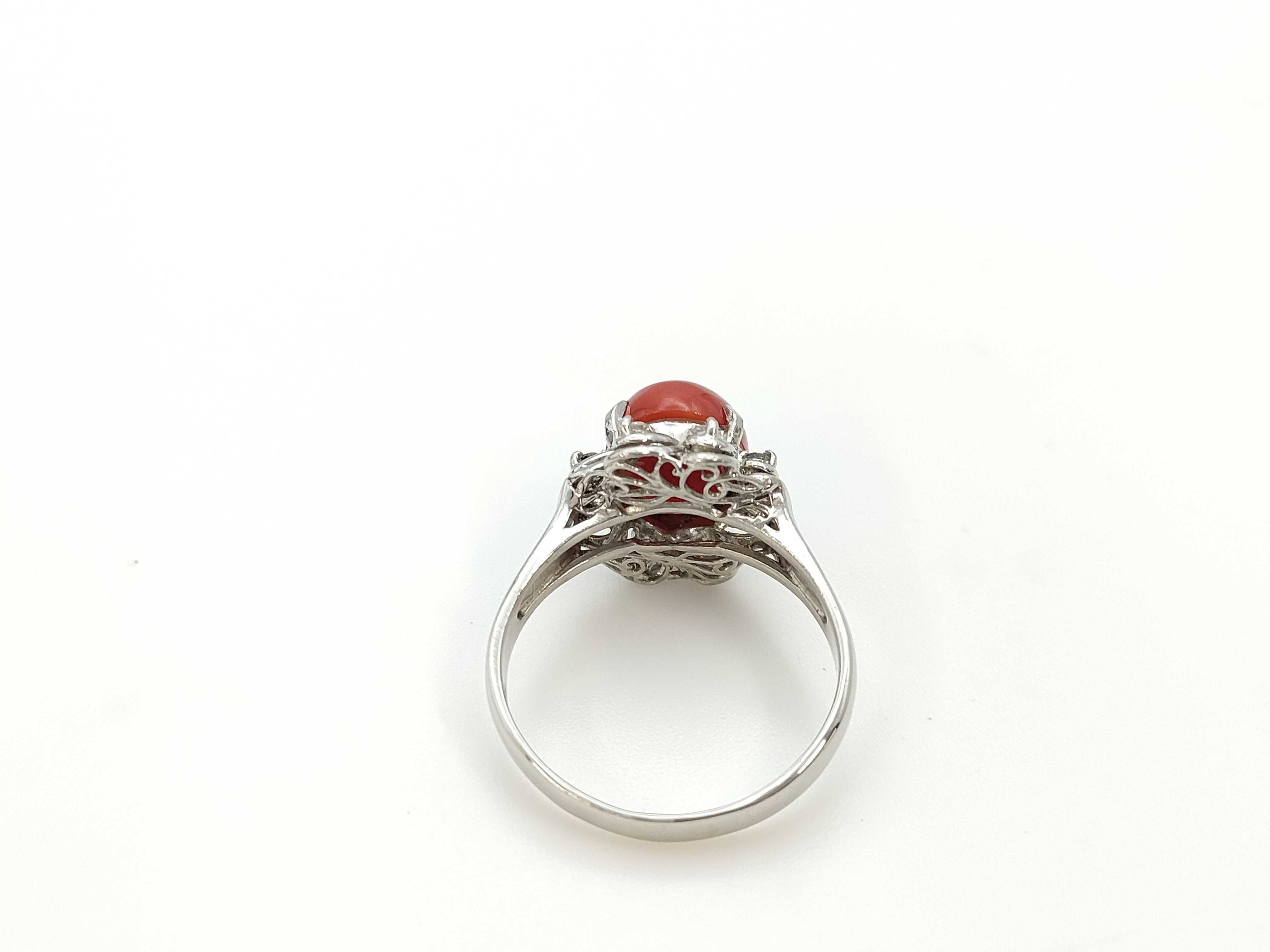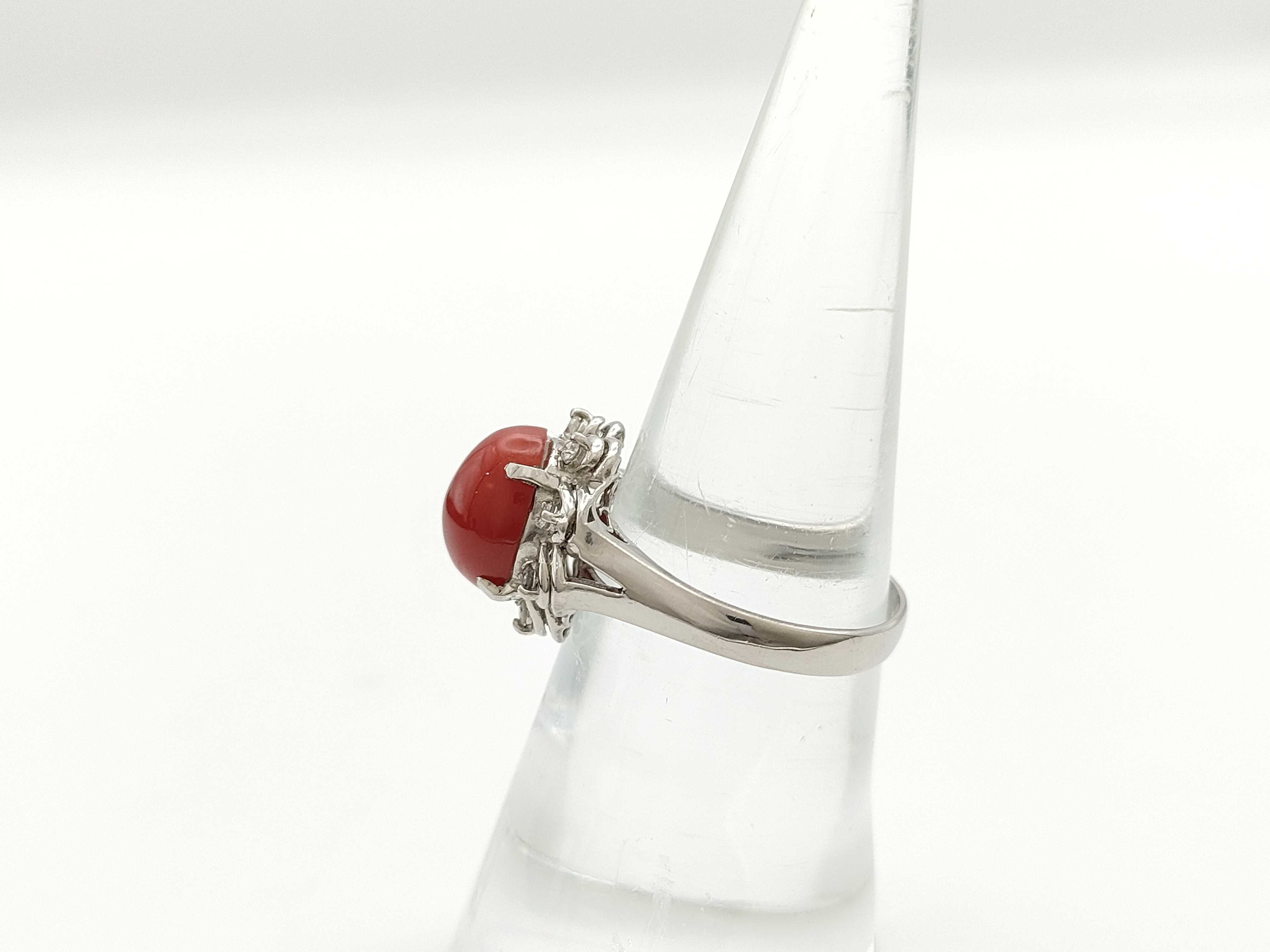 (N_0570)▼珊瑚 D0.12ct Pt900 4.8g リング(貴金属)