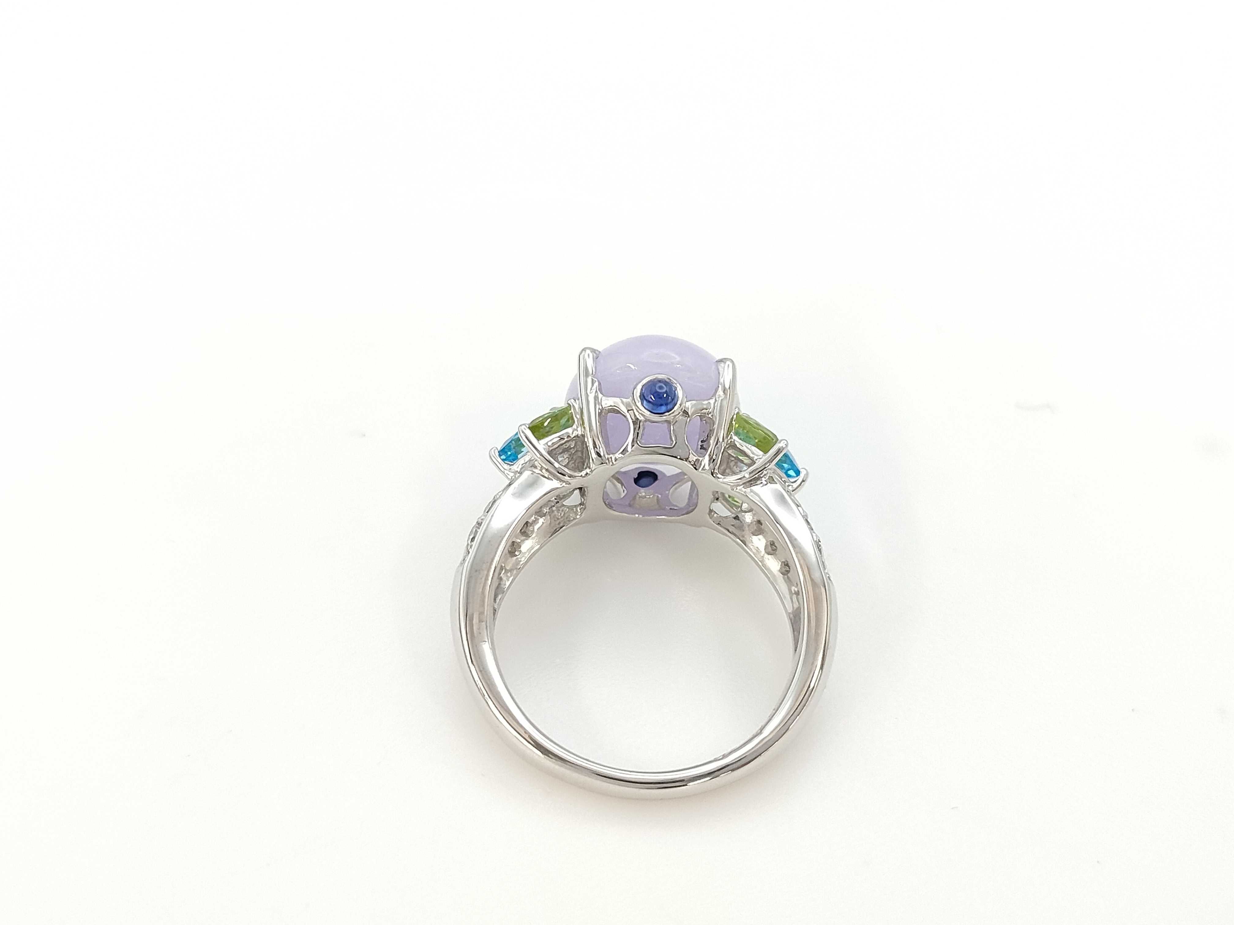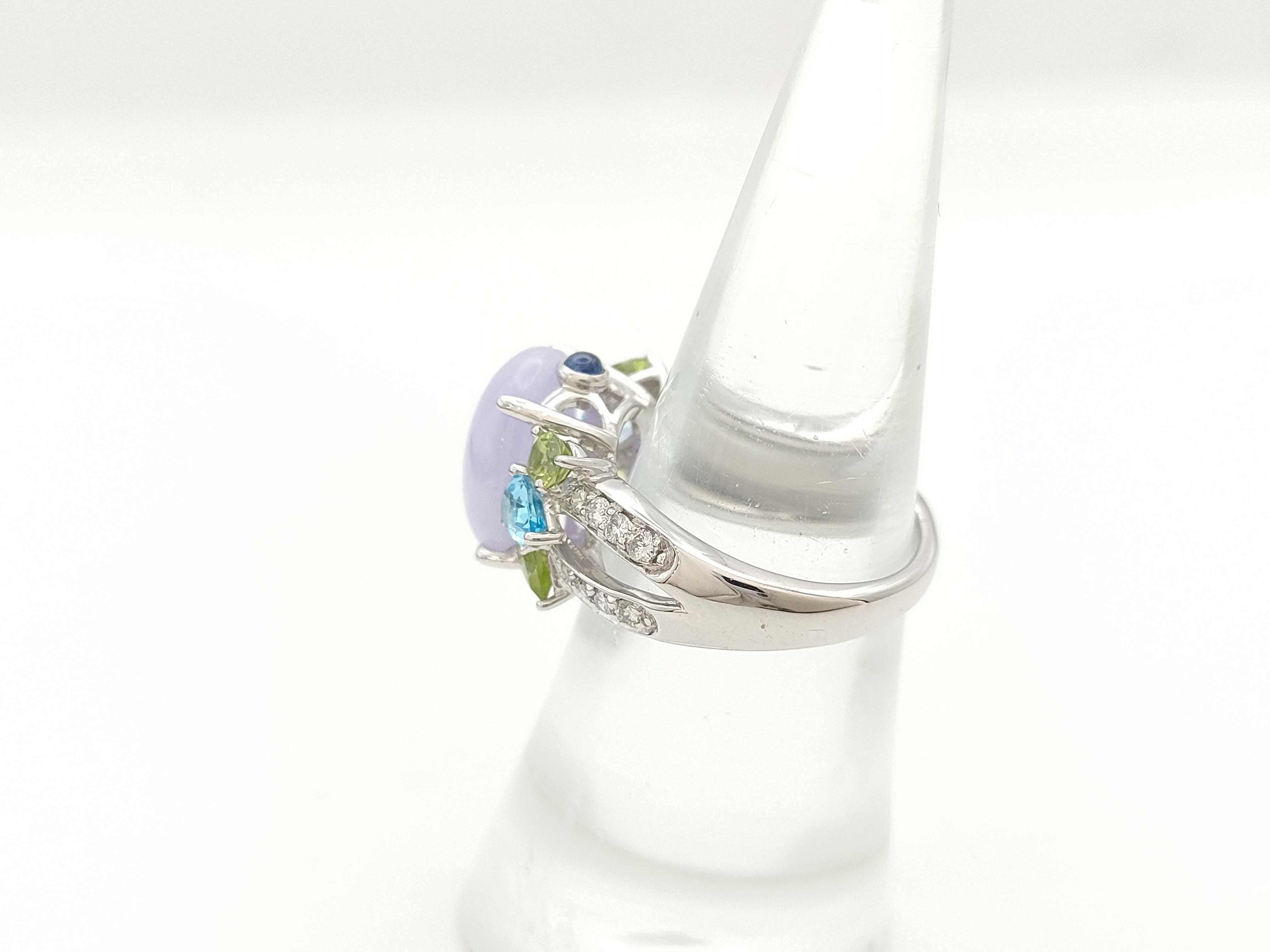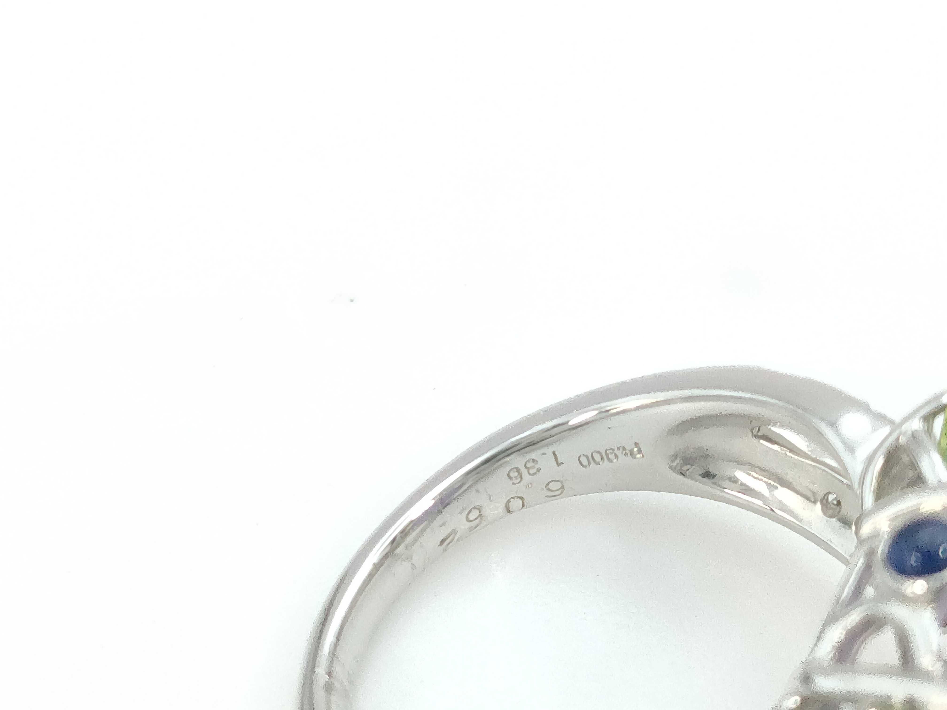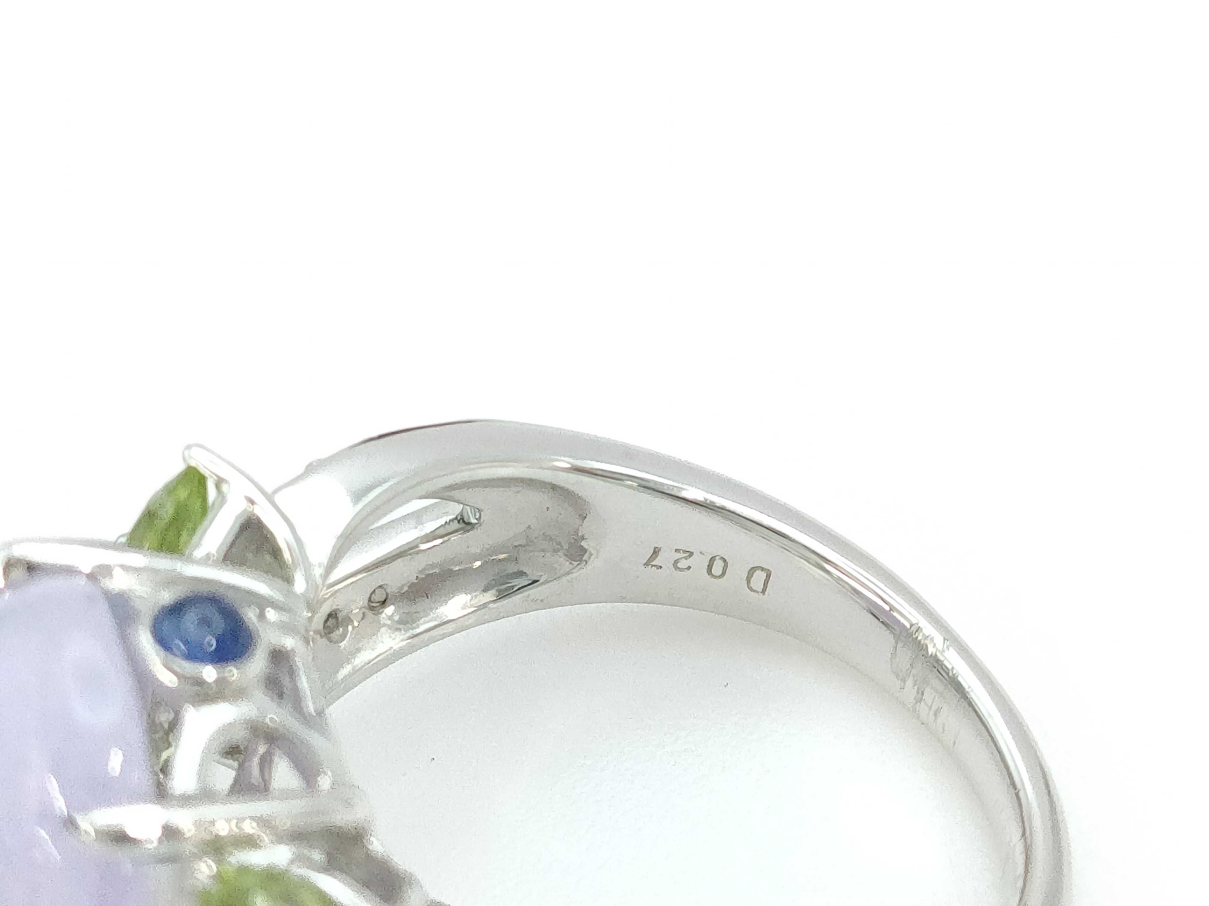 (O_0307)ブルートパーズ ペリドット サファイア 翡翠6.062ct D0.27ct Pt900 9.7g リング(貴金属)