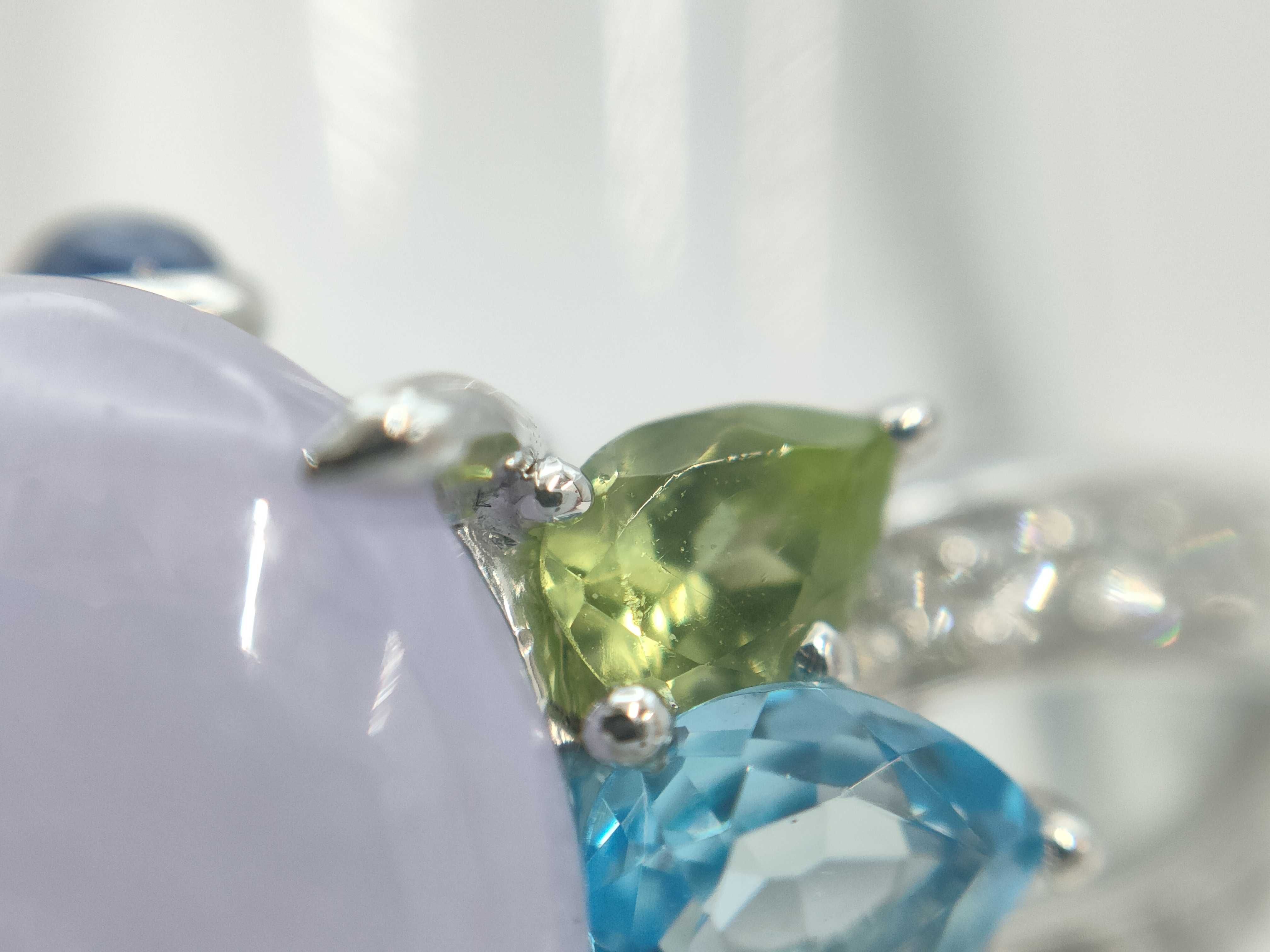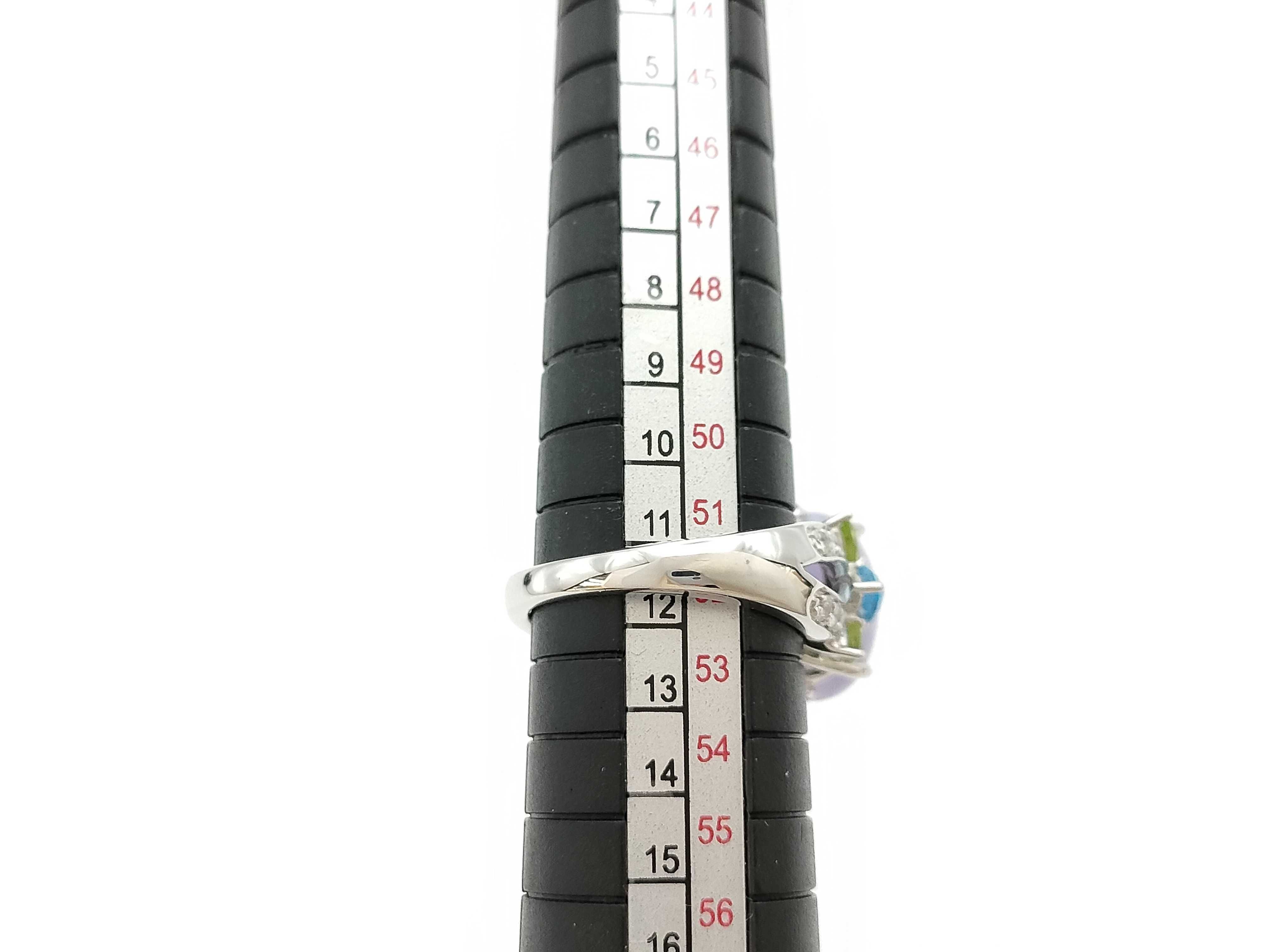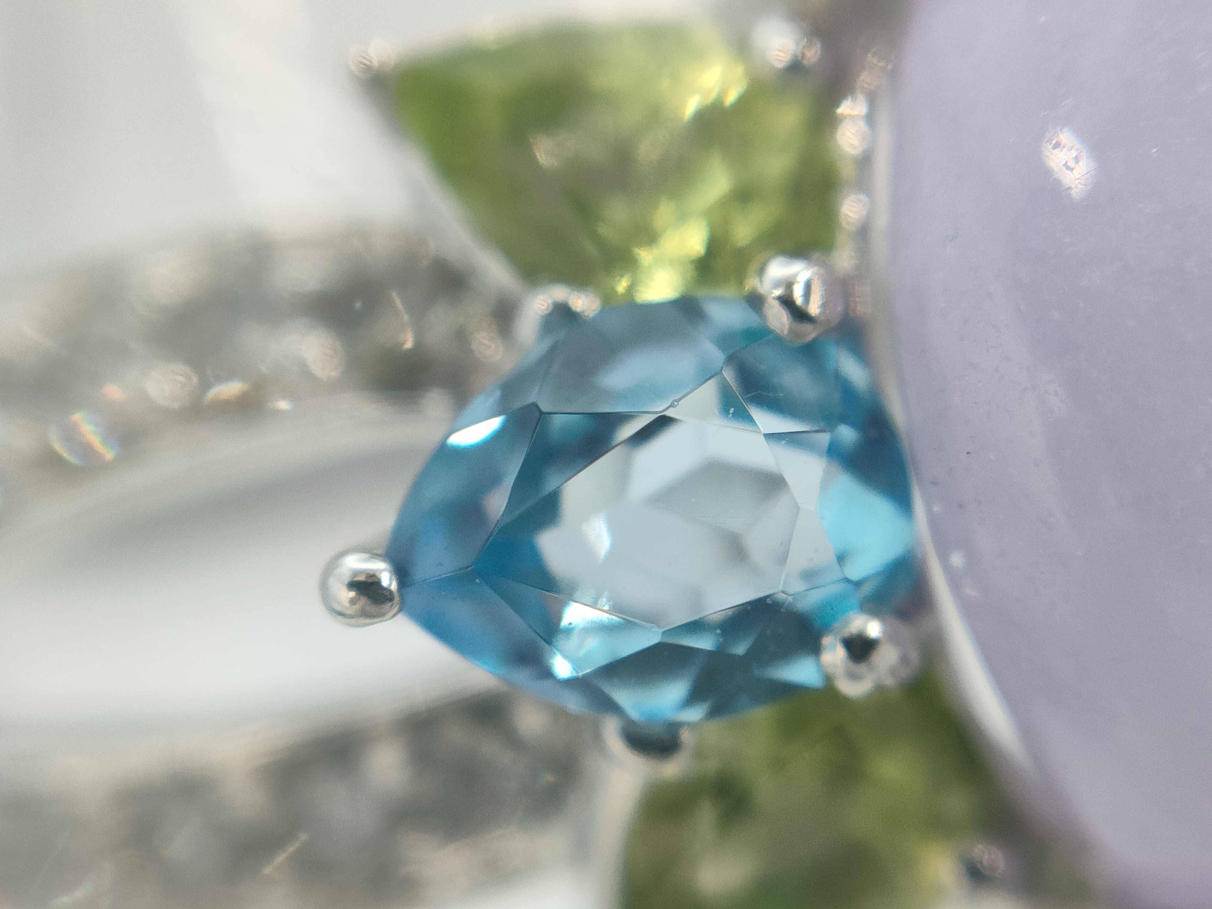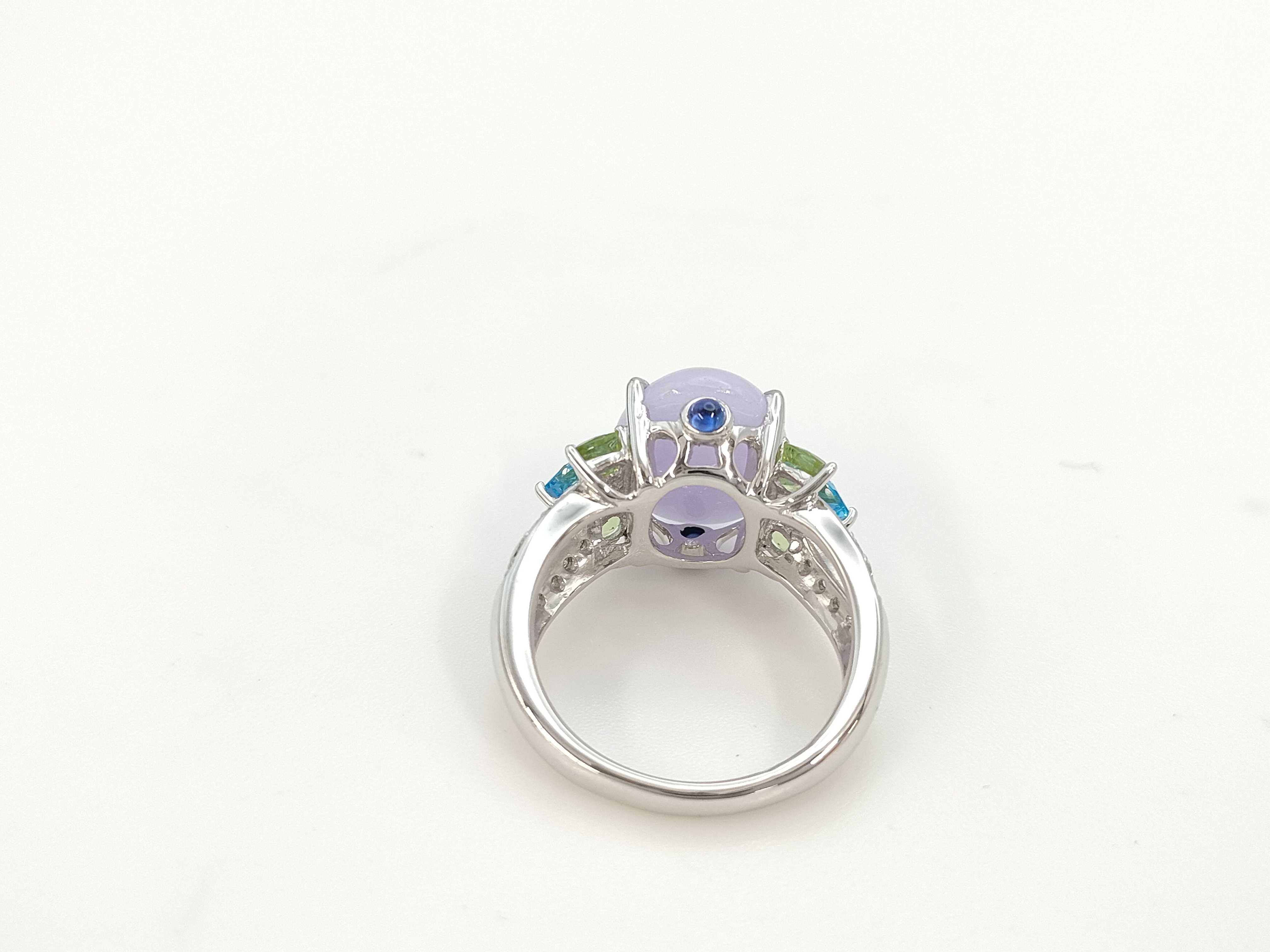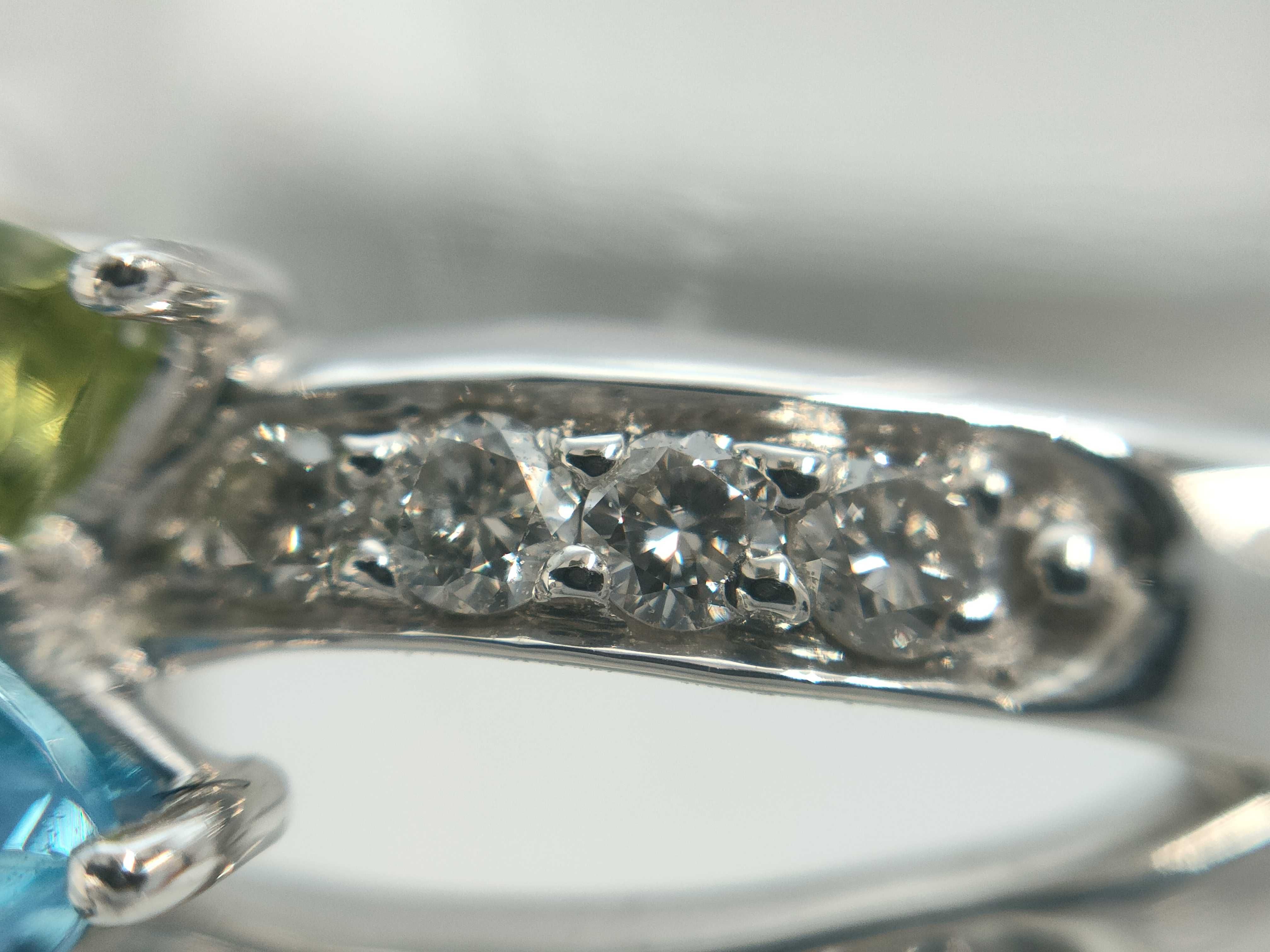 (O_0307)ブルートパーズ ペリドット サファイア 翡翠6.062ct D0.27ct Pt900 9.7g リング(貴金属)