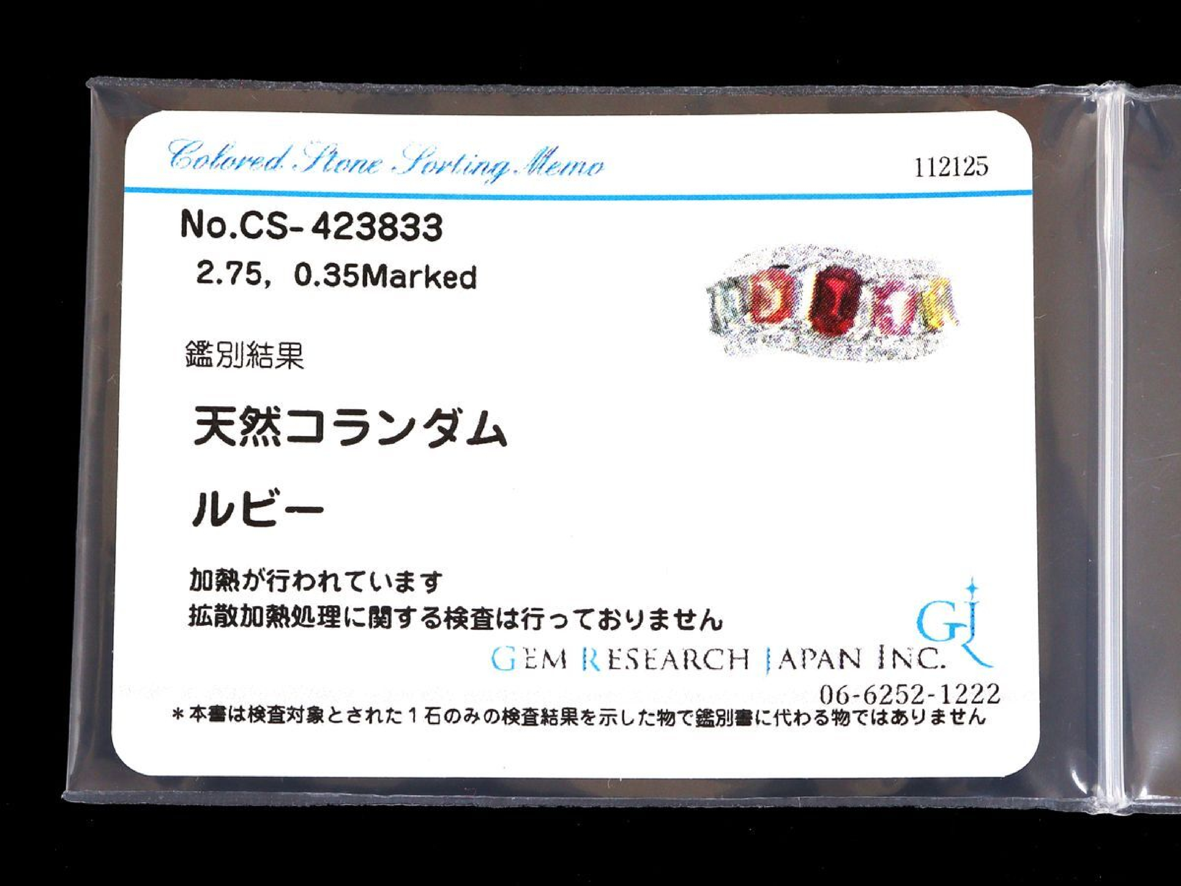 ダイヤ評価=C(面カケあり).【付属品