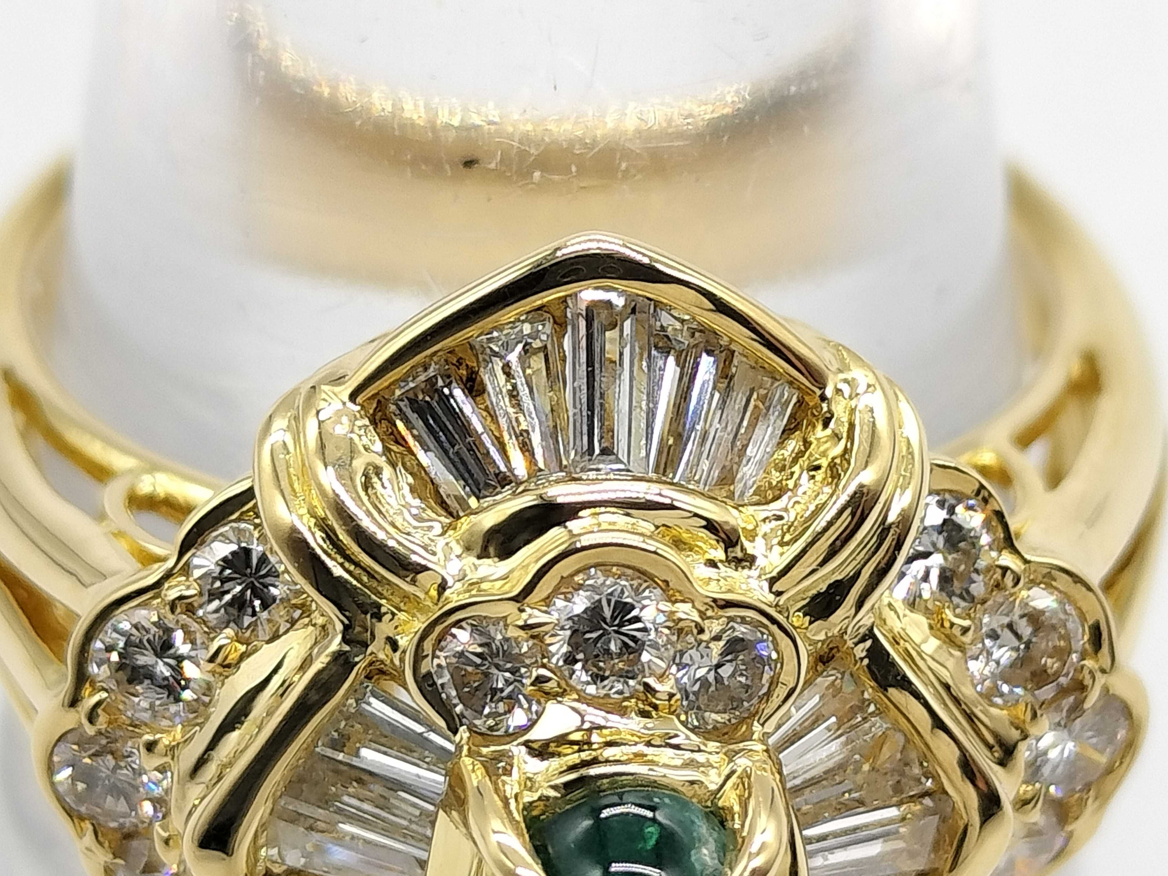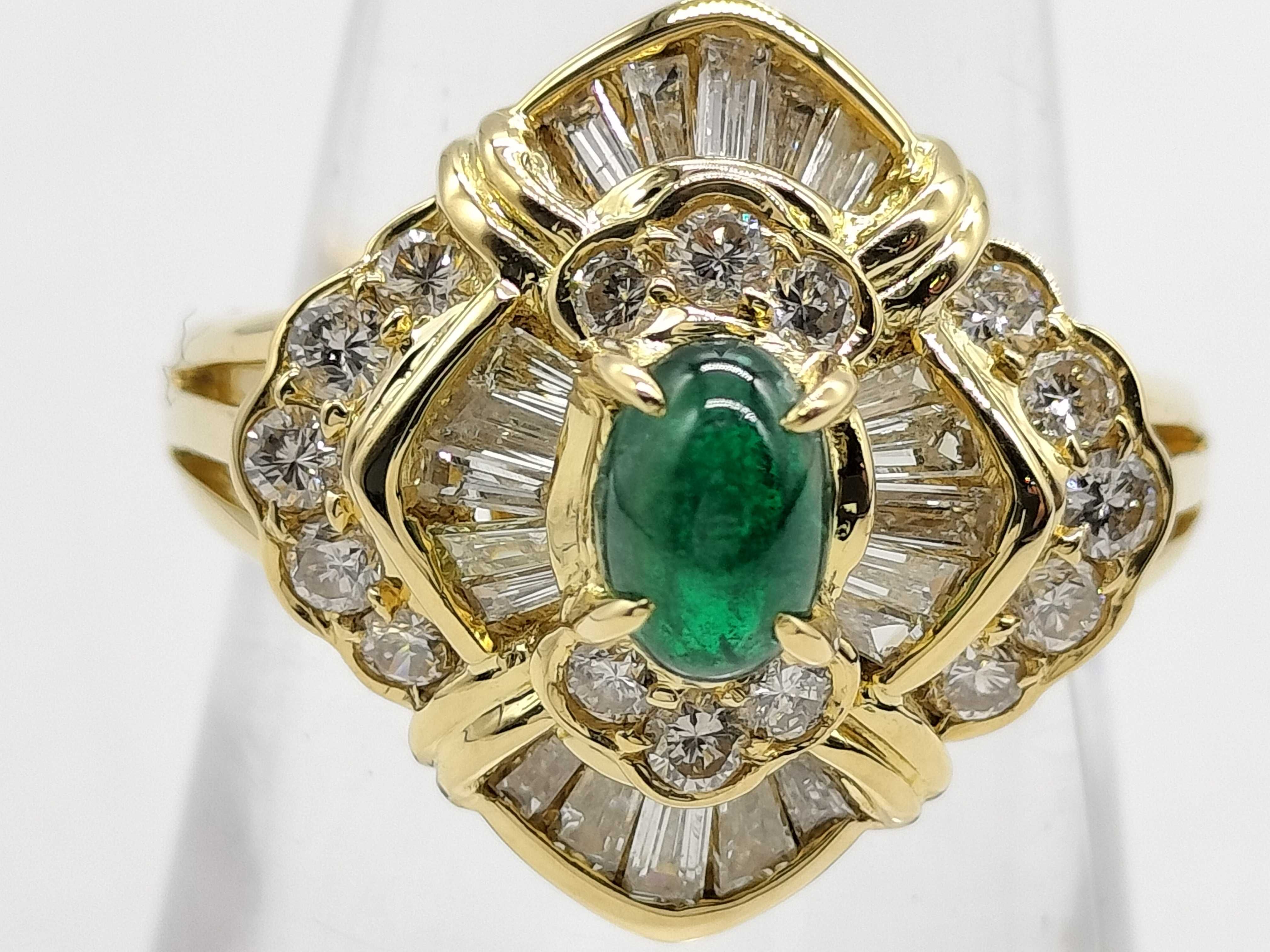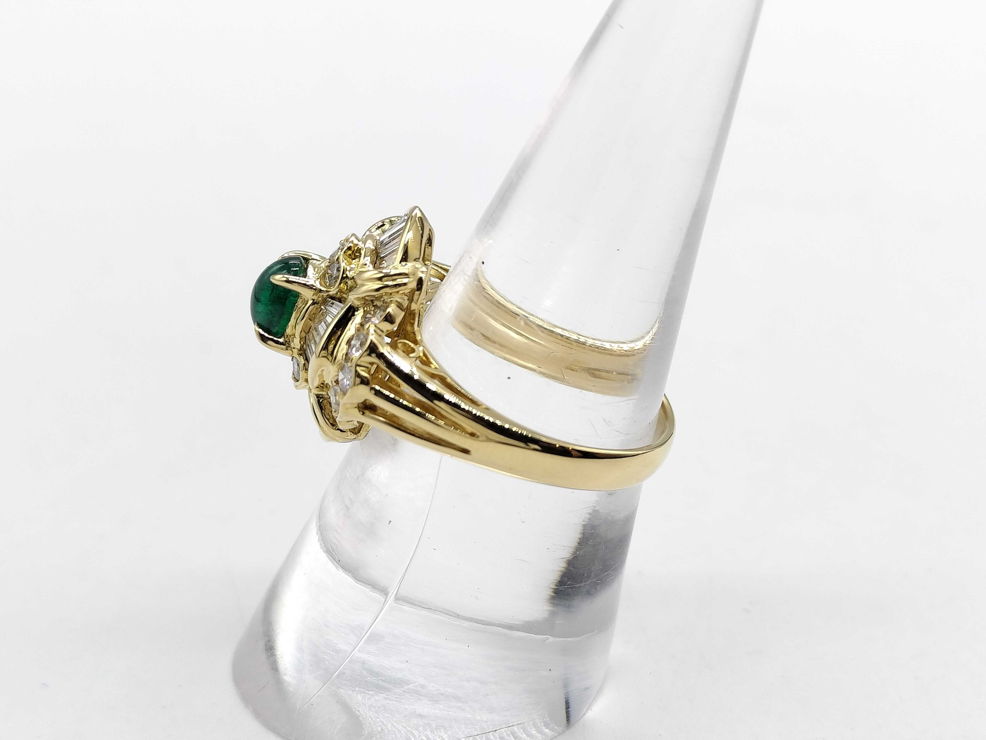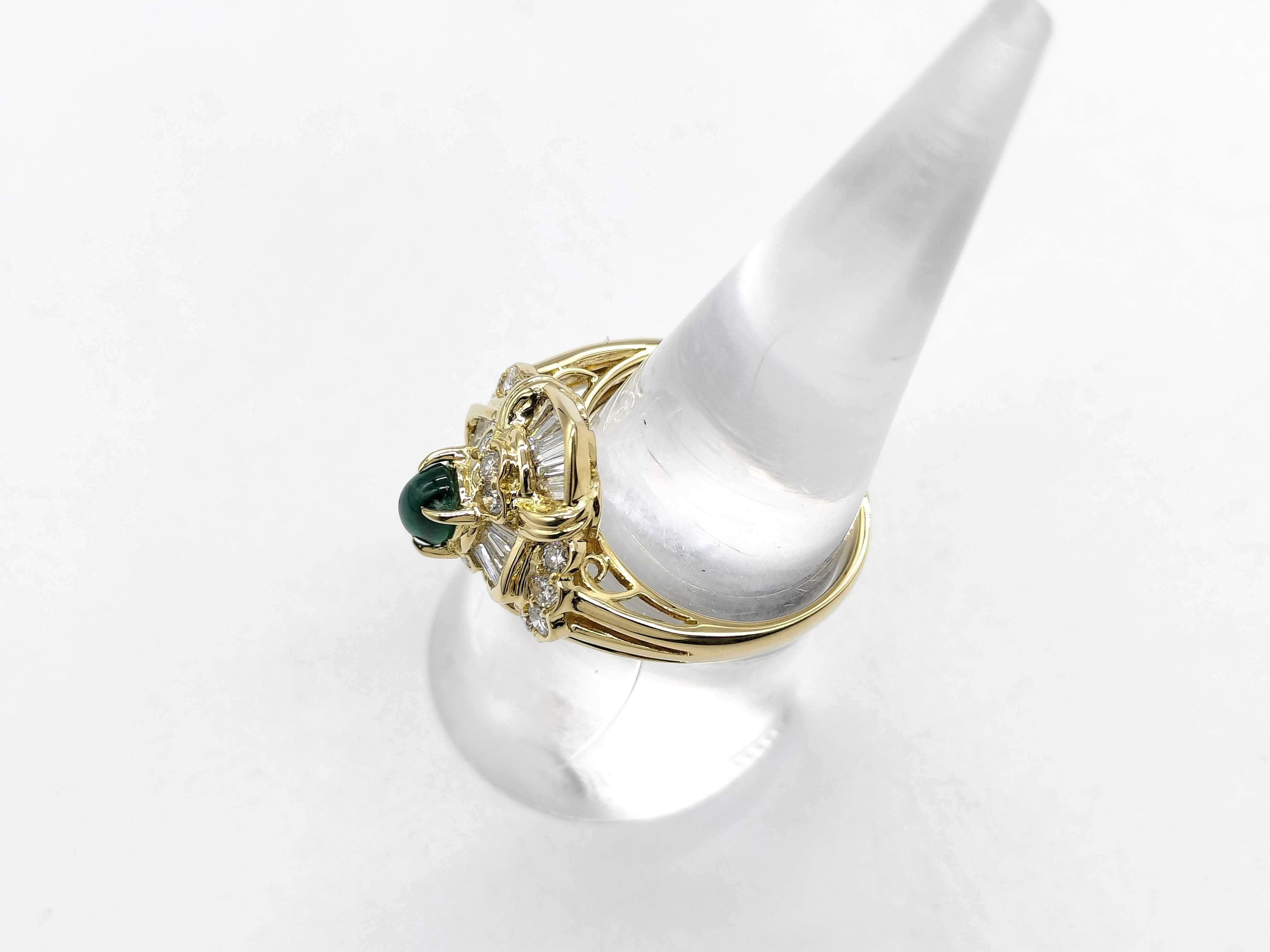 (P_0103)カボションエメラルド0.47ct D1.00ct K18 6.3g リング(貴金属)